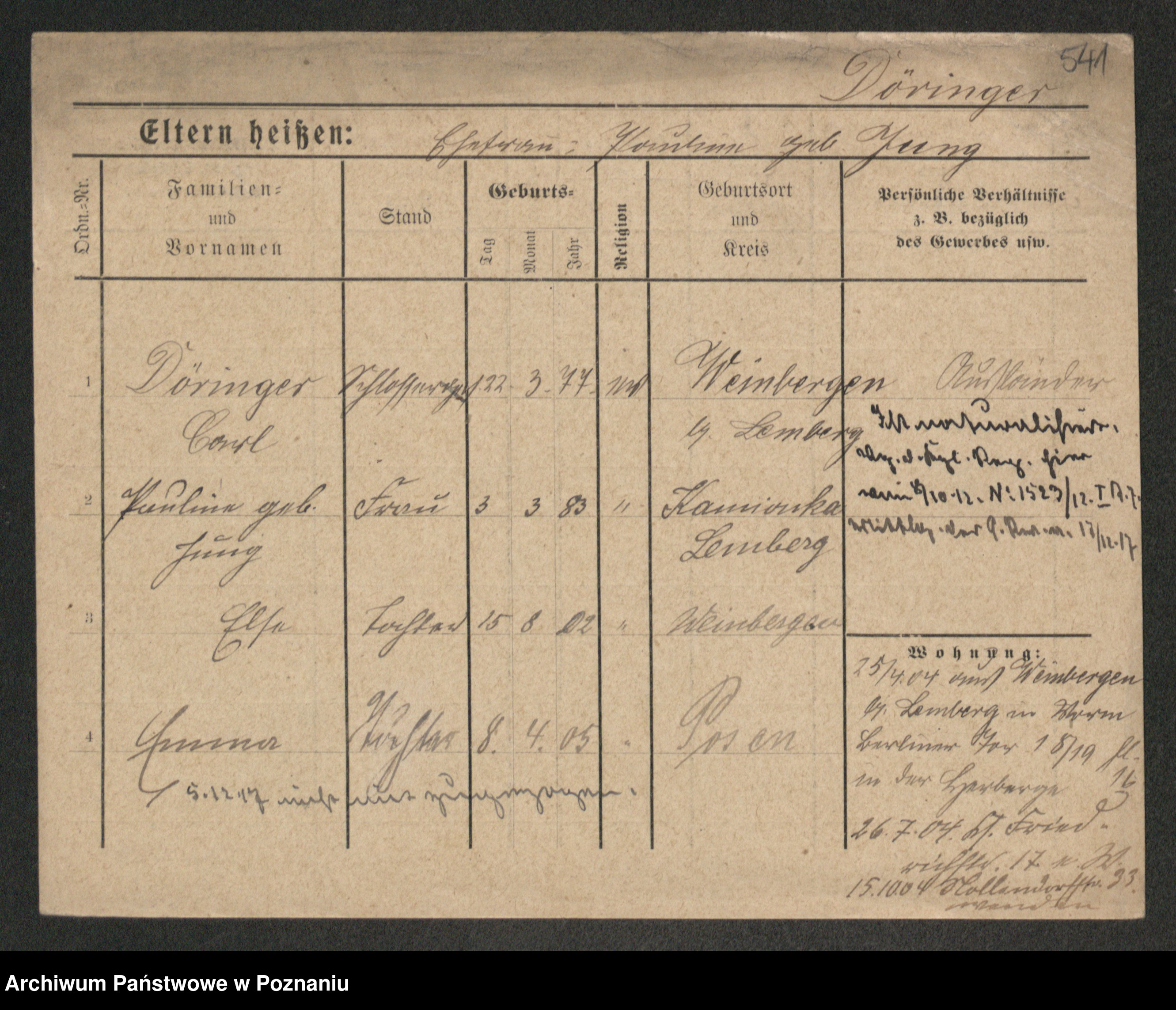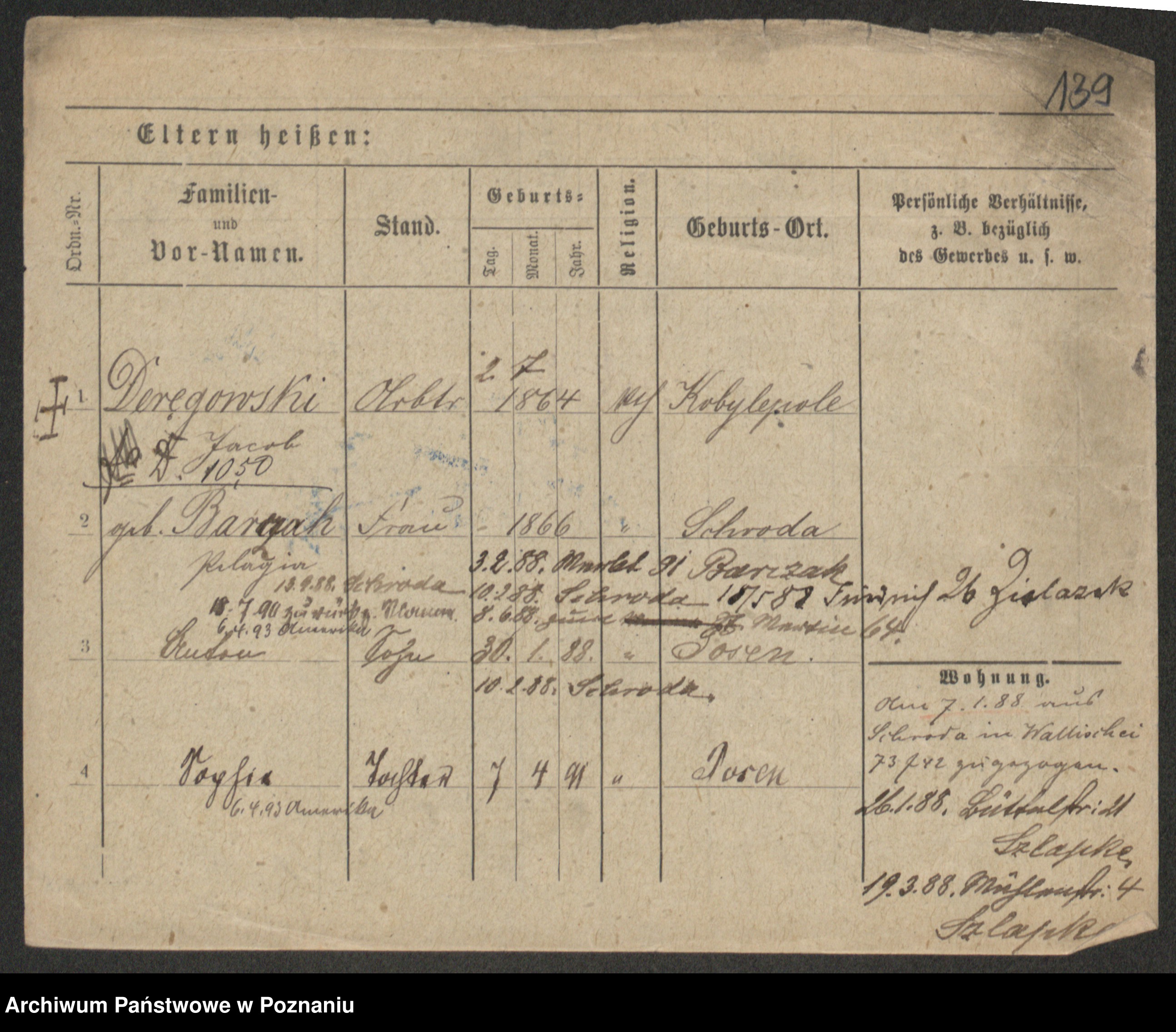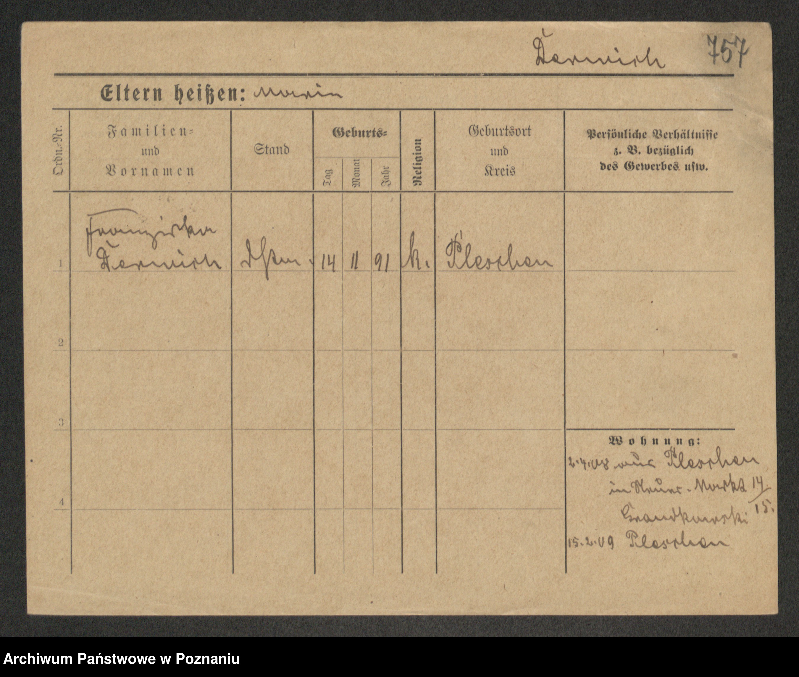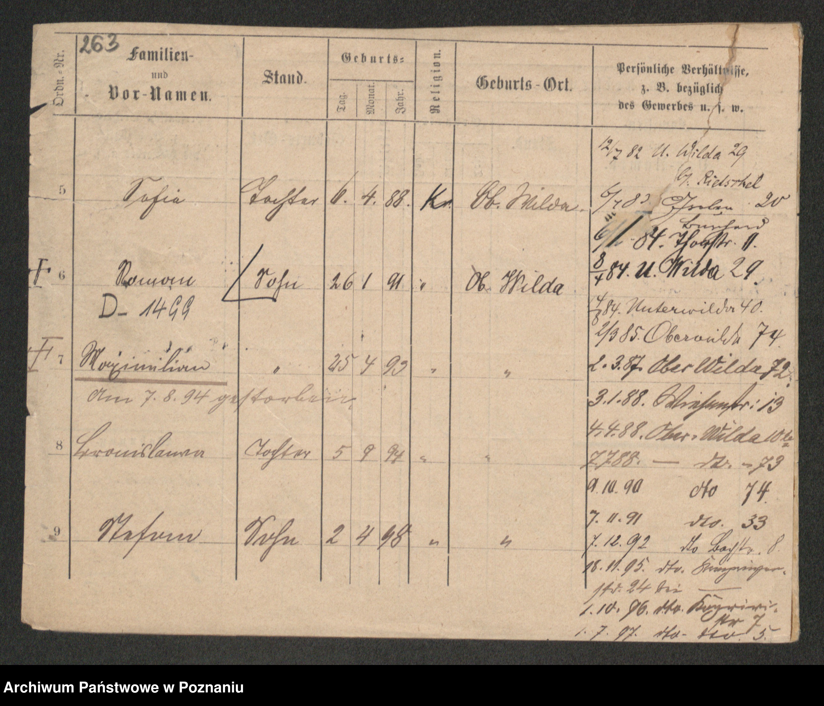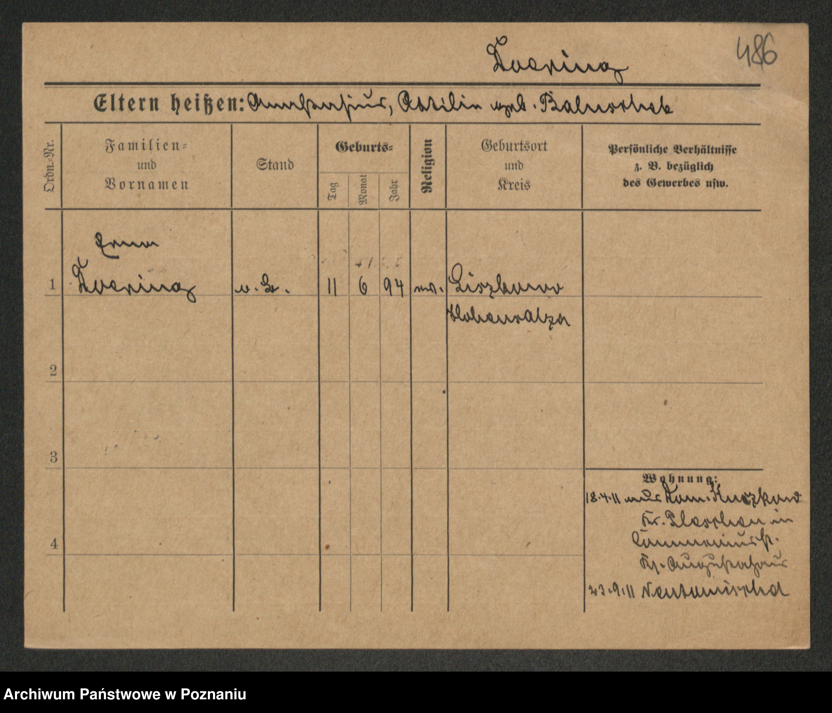 Podgląd karty osobowej dostępny jest po kliknięciu na nazwisko lub ikonkę karty. Można dokonywać powiększenia (ikony na górze) lub przechodzić między kolejnymi skanami (strzałki po bokach).
