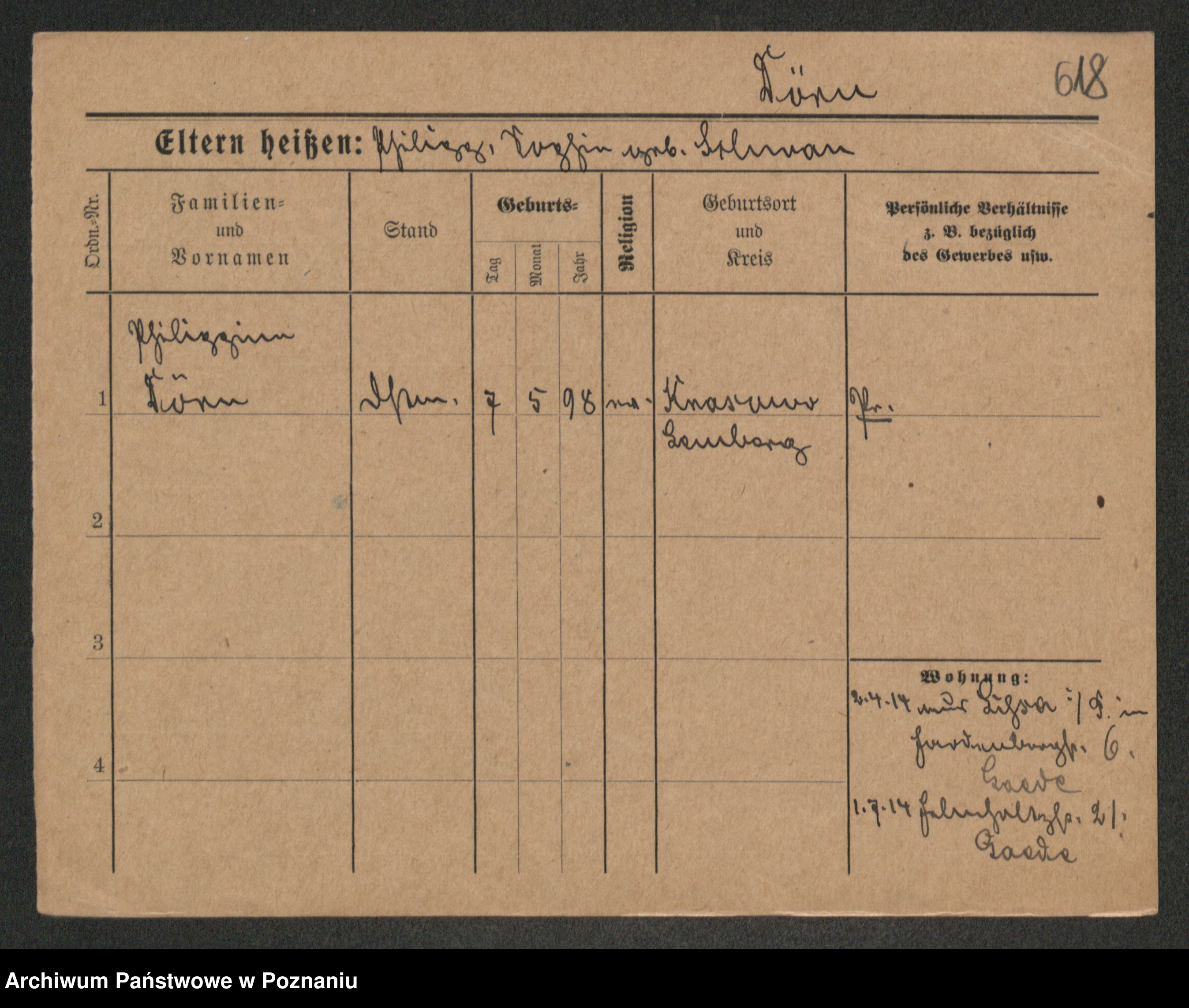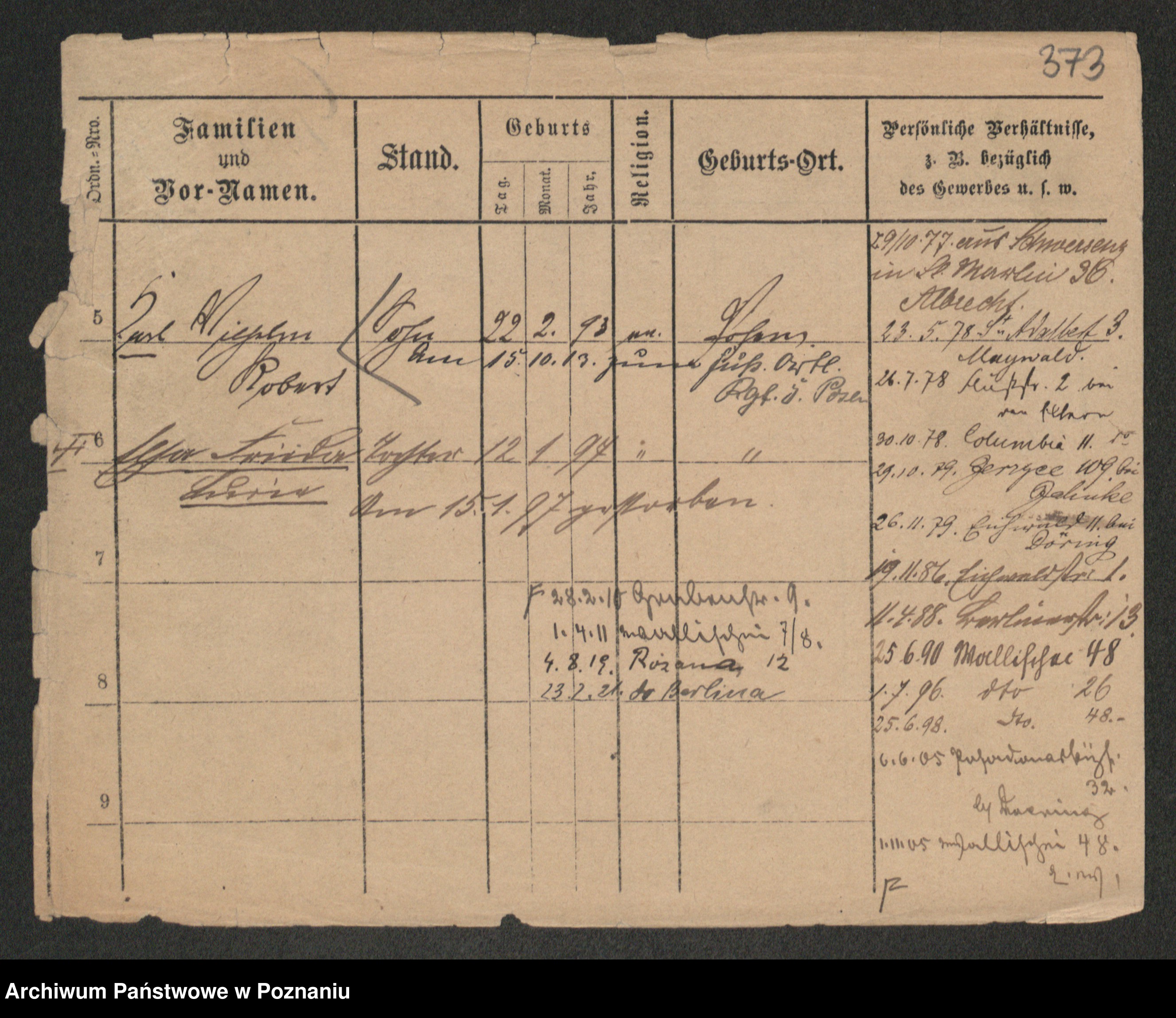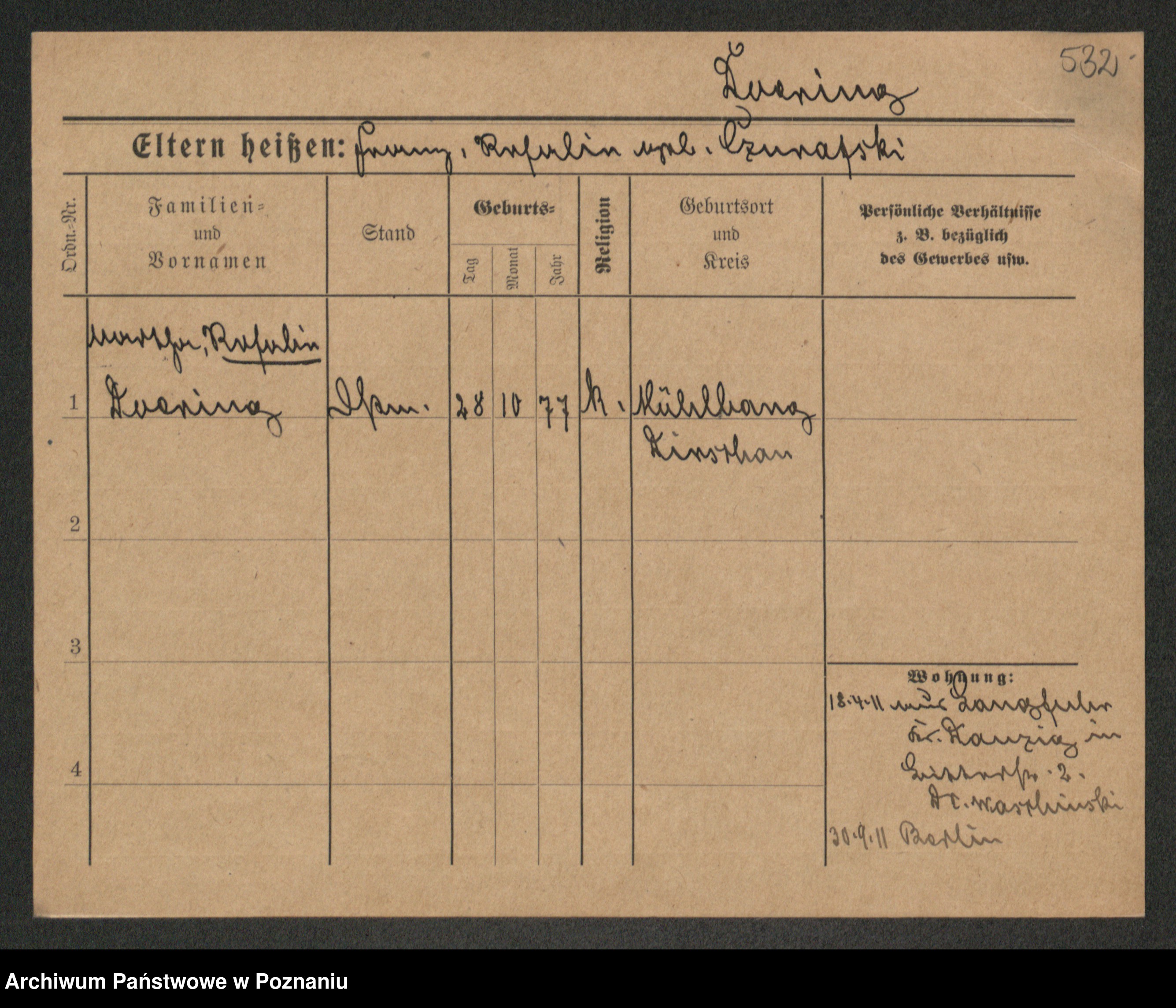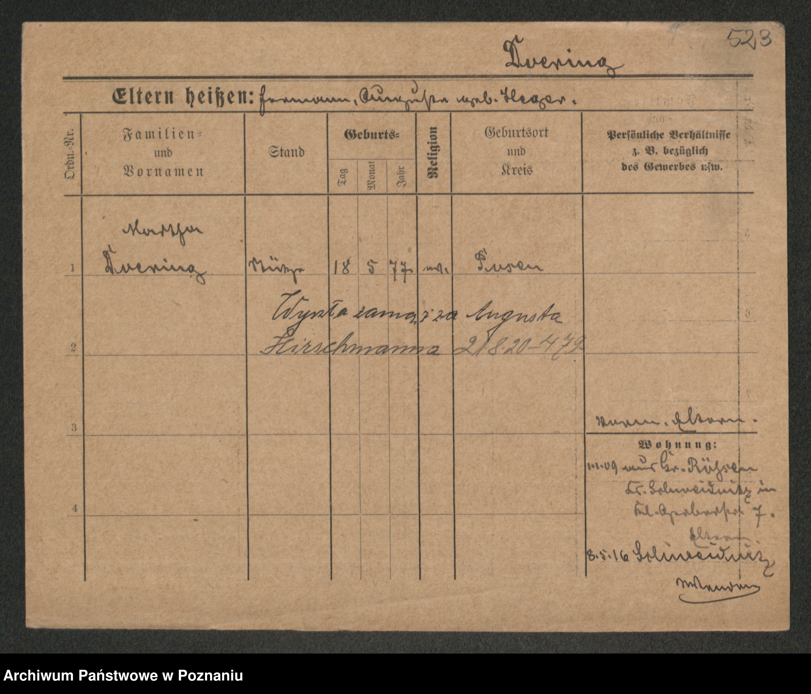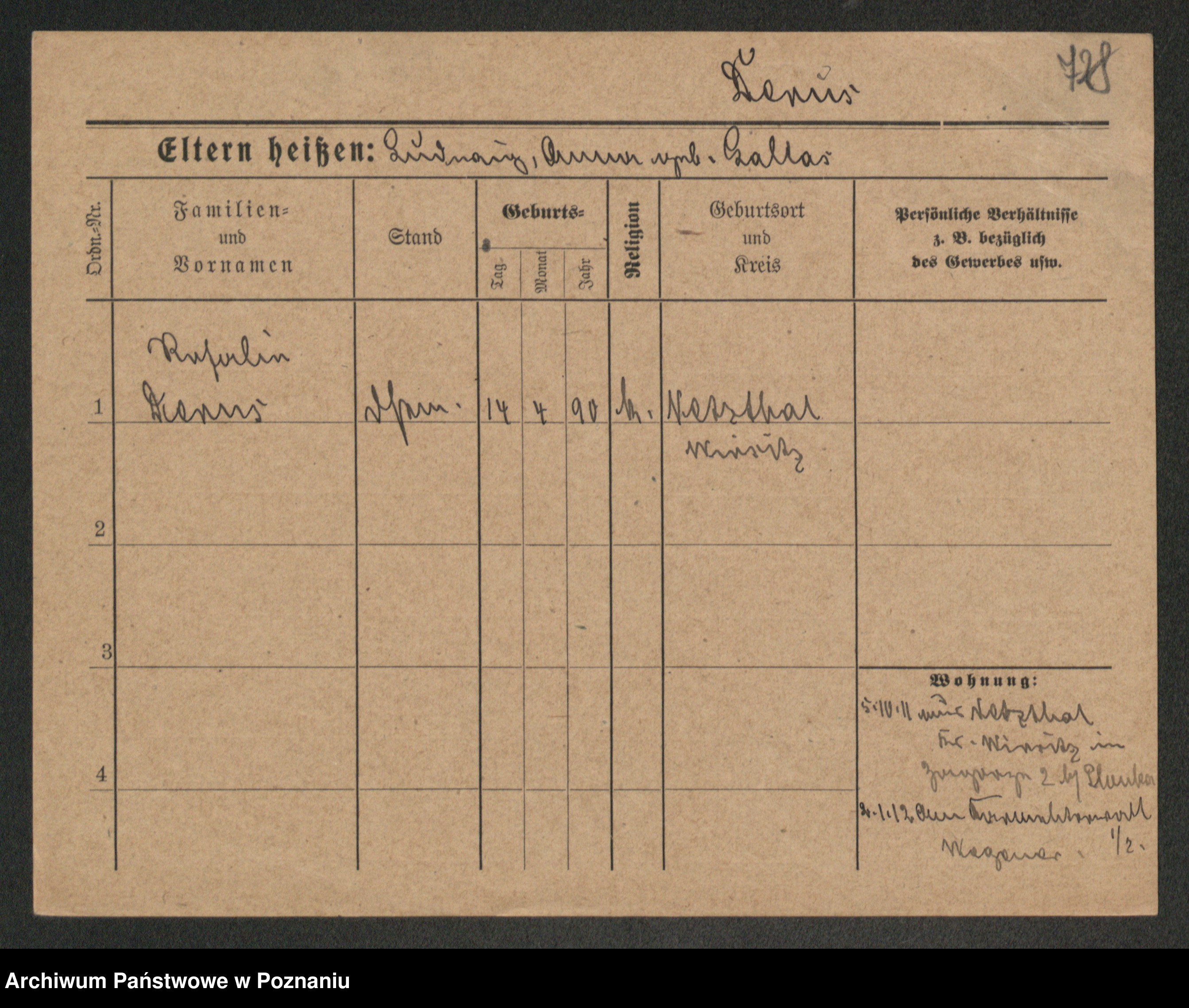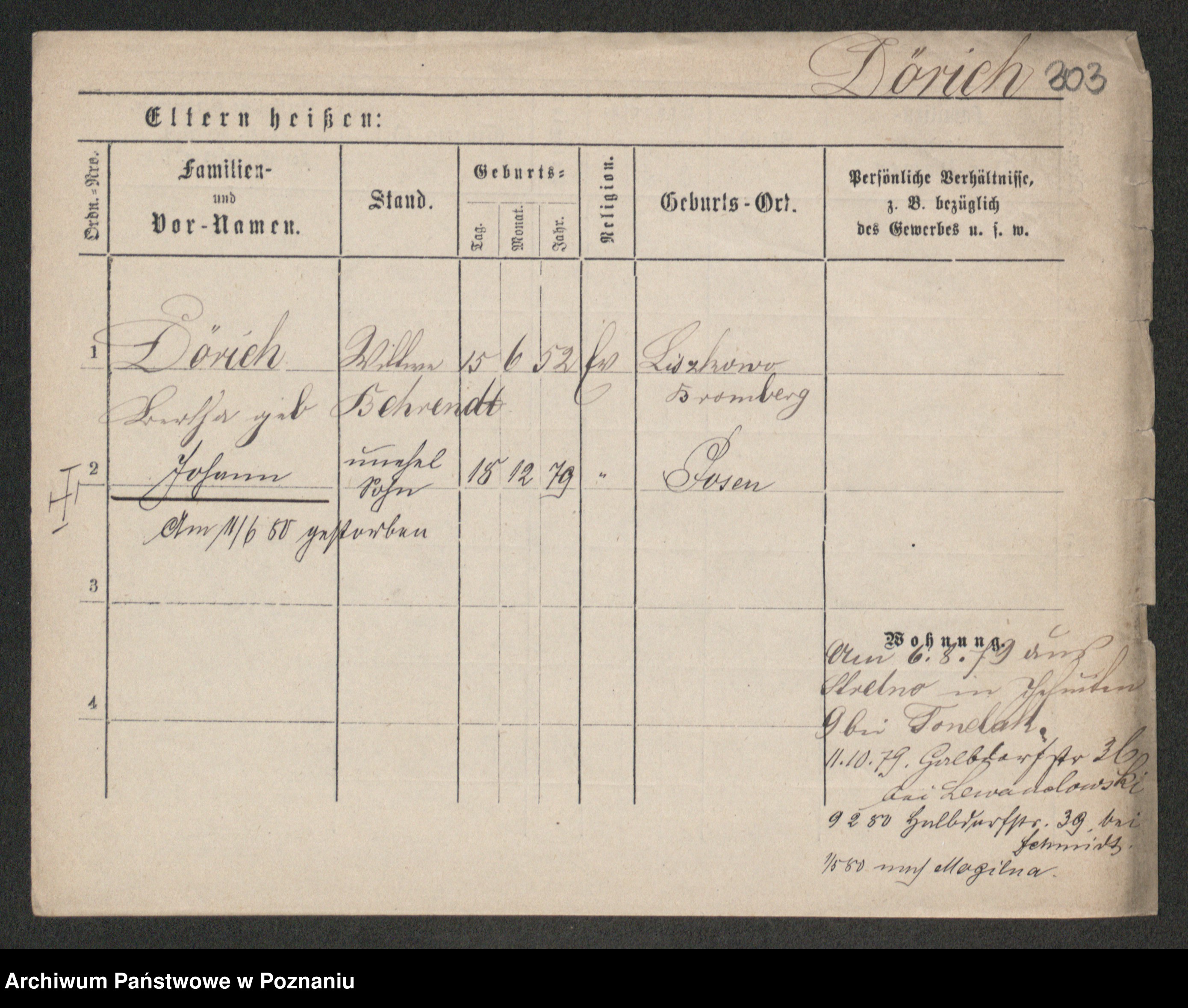 Podgląd karty osobowej dostępny jest po kliknięciu na nazwisko lub ikonkę karty. Można dokonywać powiększenia (ikony na górze) lub przechodzić między kolejnymi skanami (strzałki po bokach).