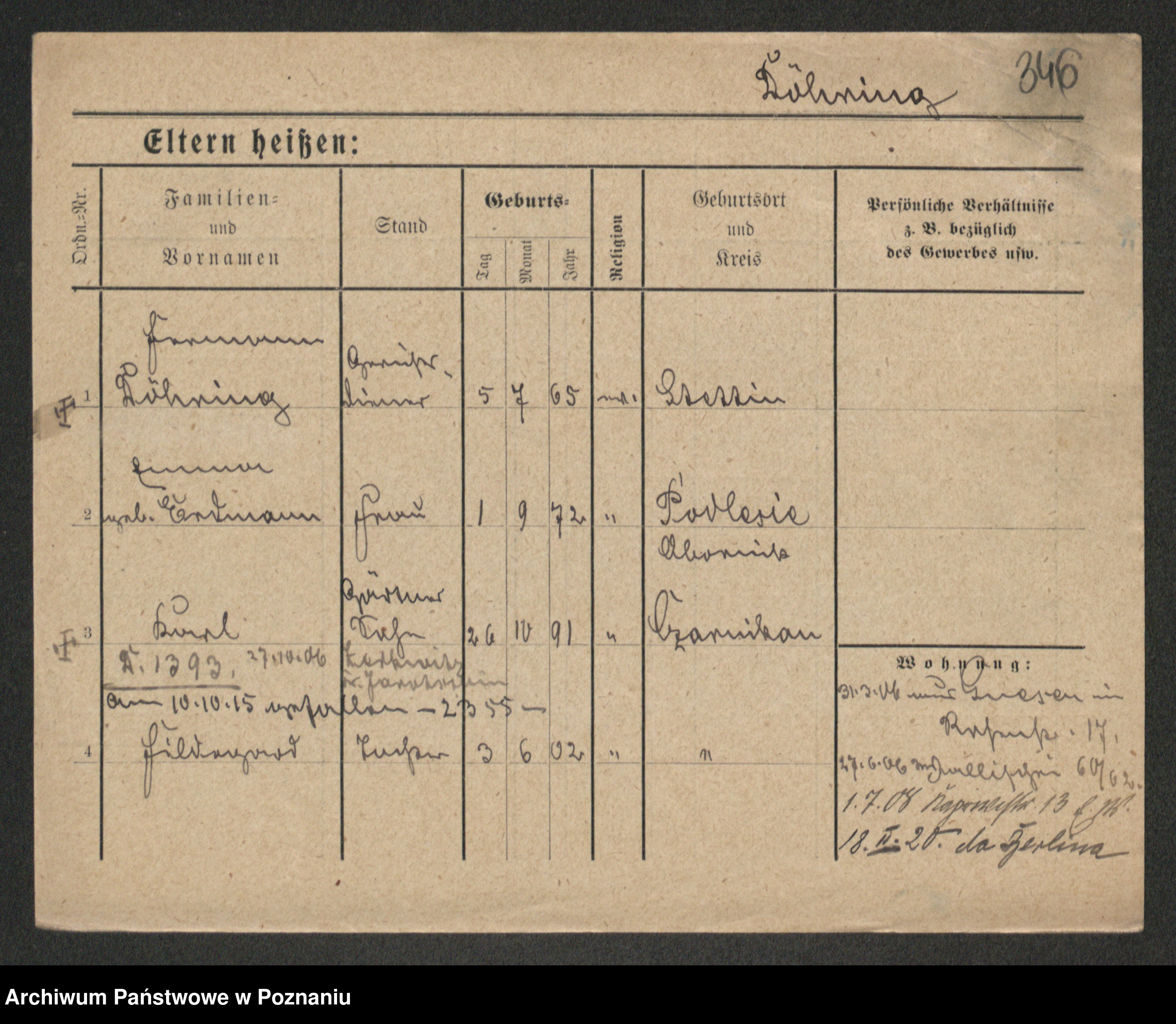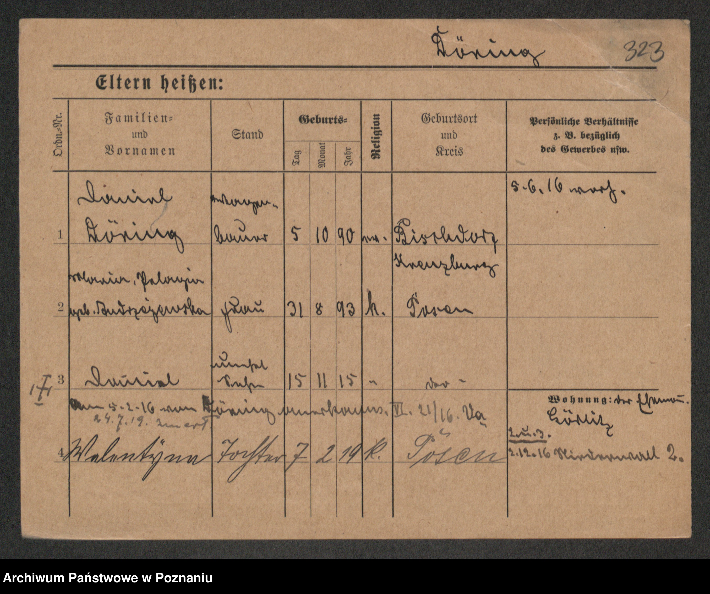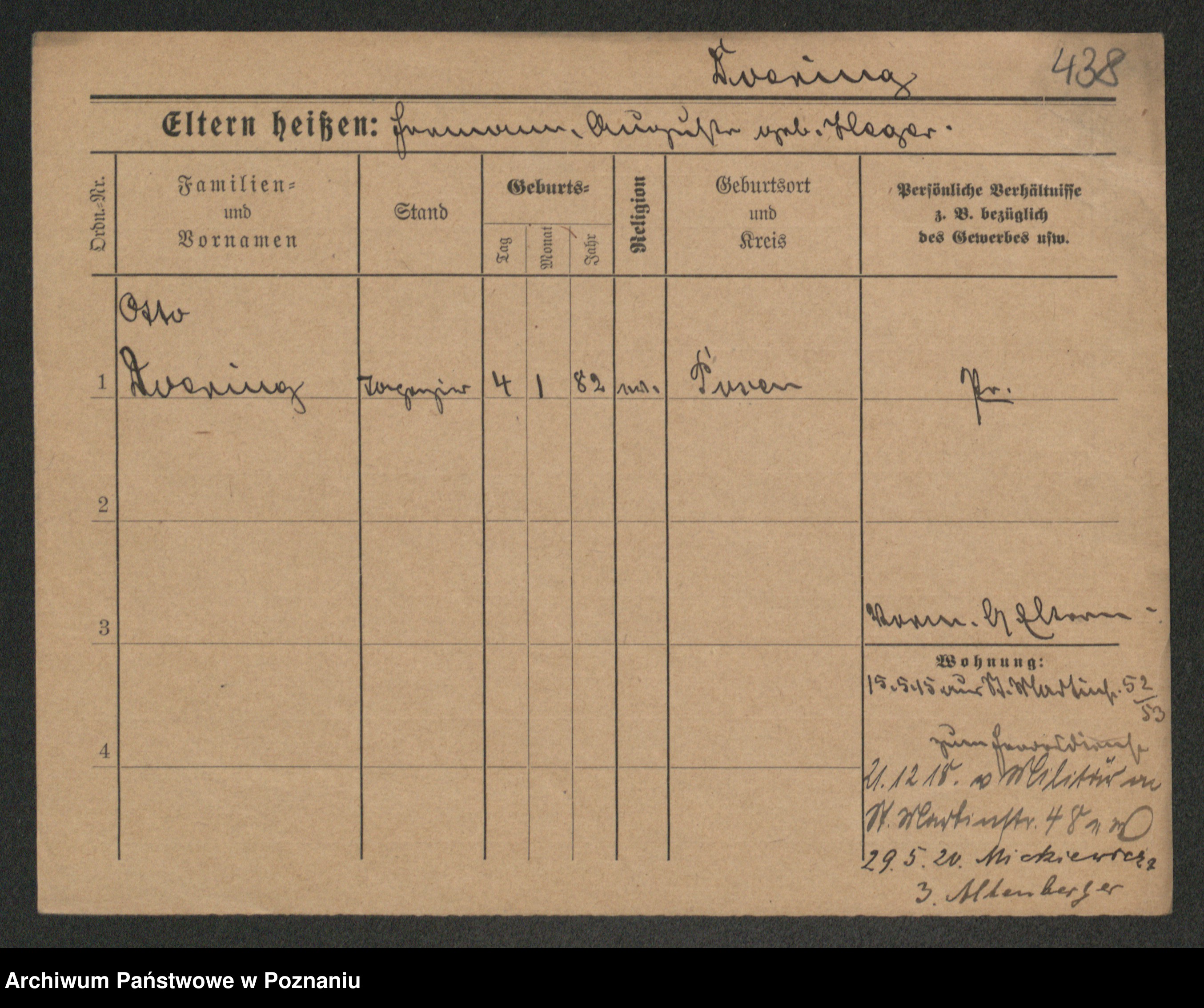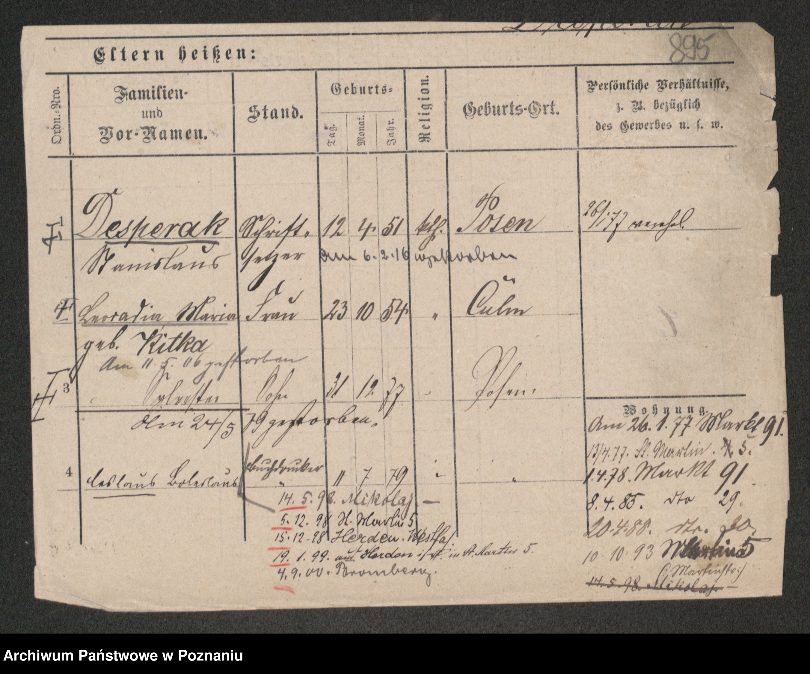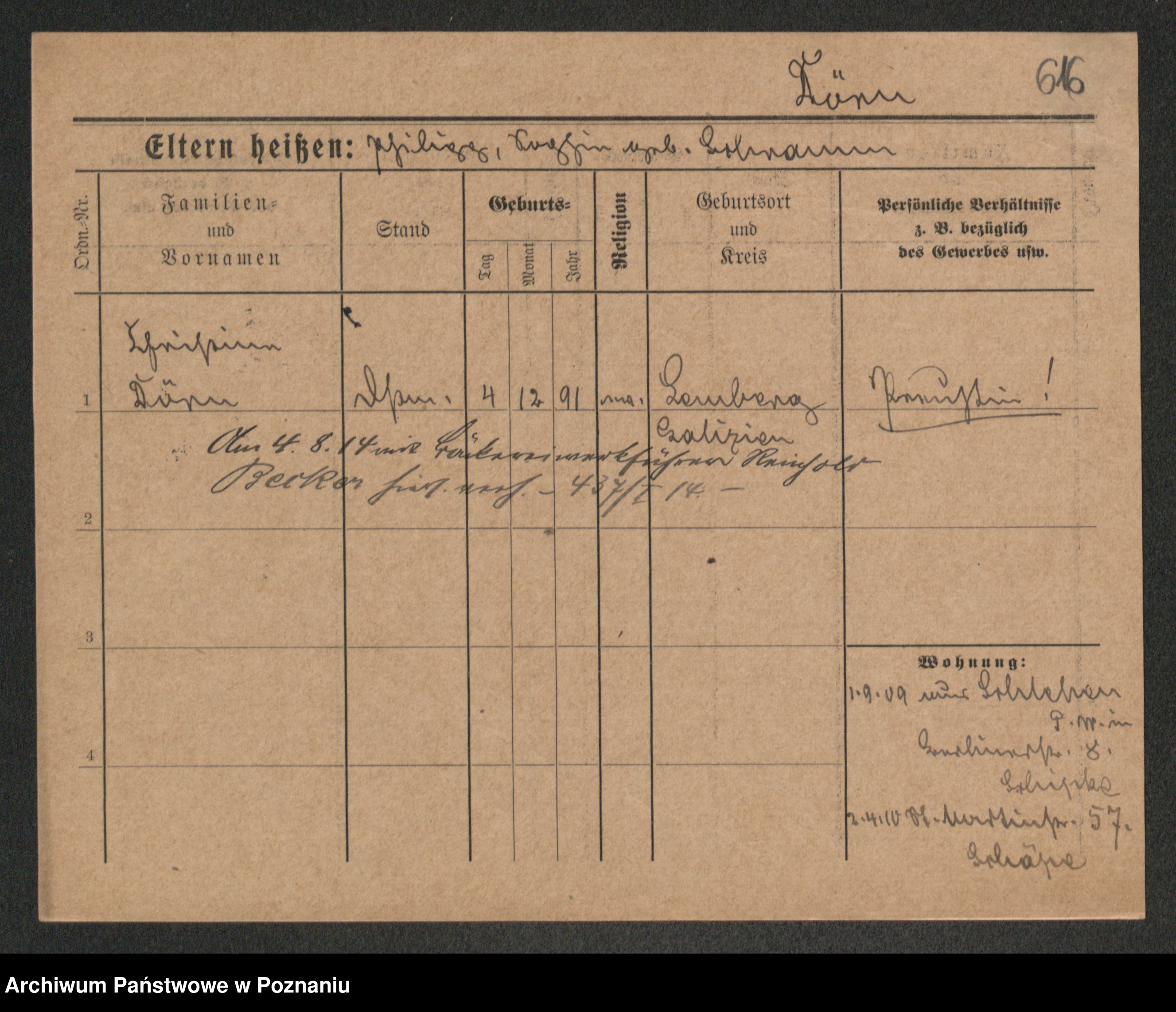 Podgląd karty osobowej dostępny jest po kliknięciu na nazwisko lub ikonkę karty. Można dokonywać powiększenia (ikony na górze) lub przechodzić między kolejnymi skanami (strzałki po bokach).