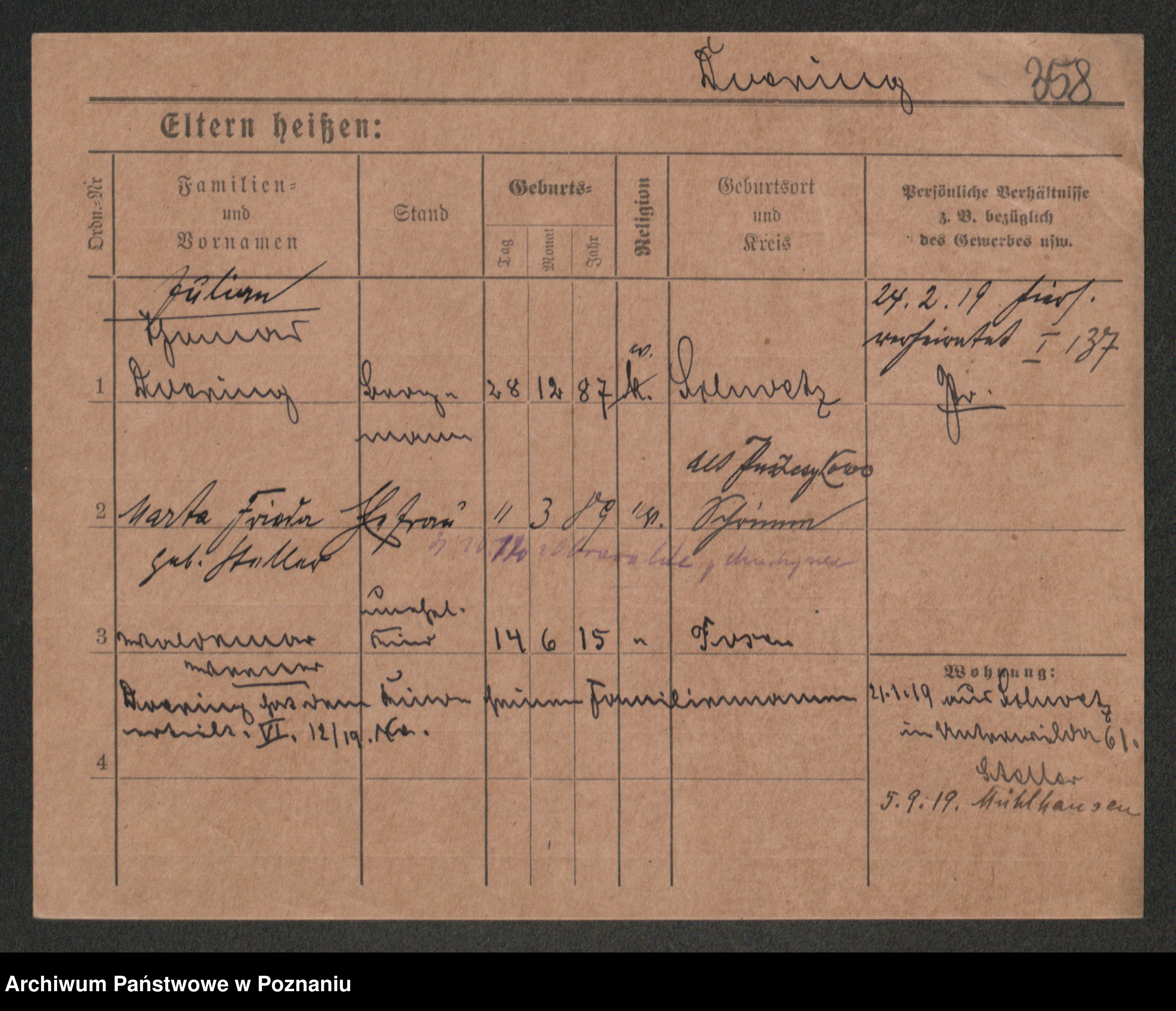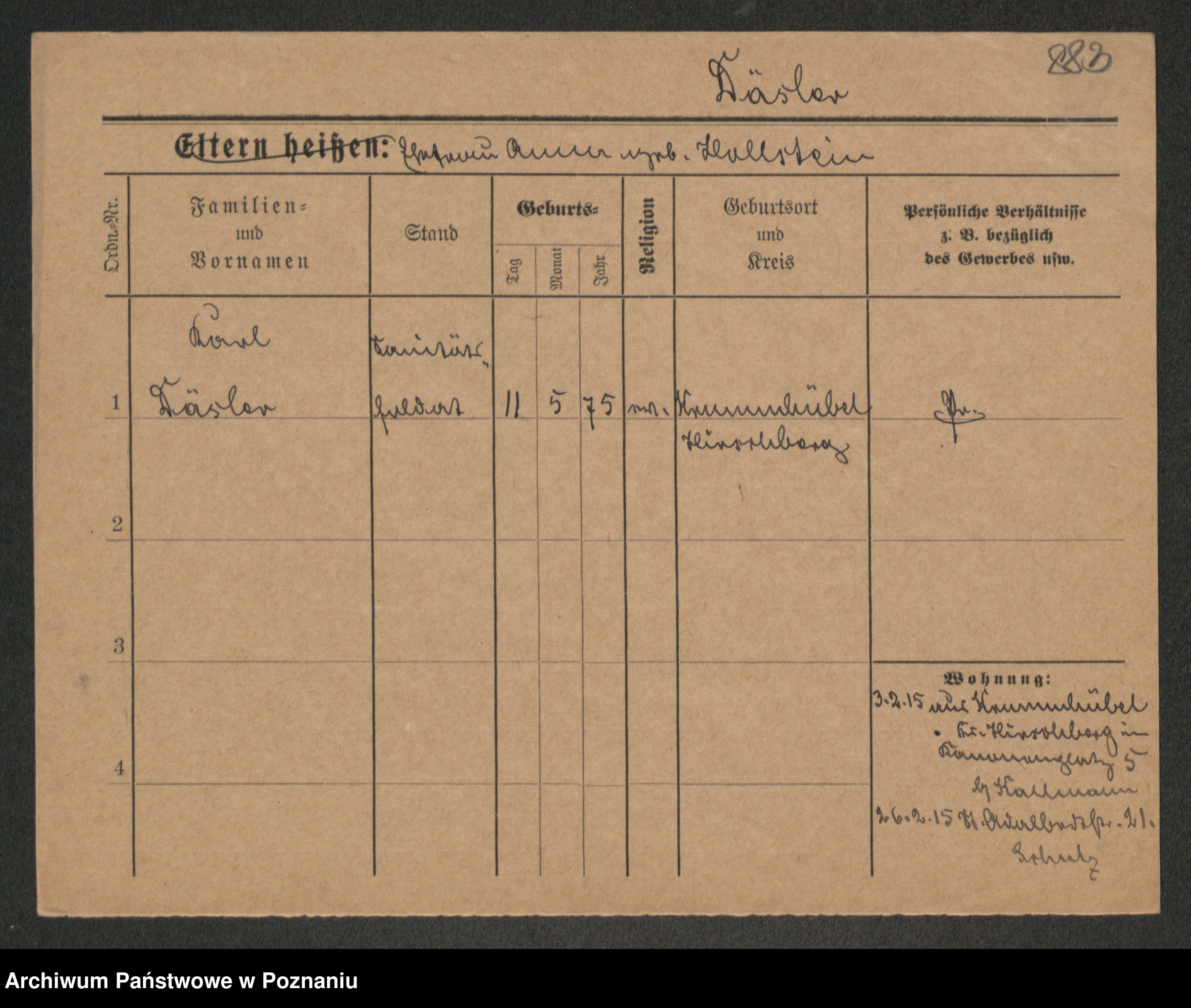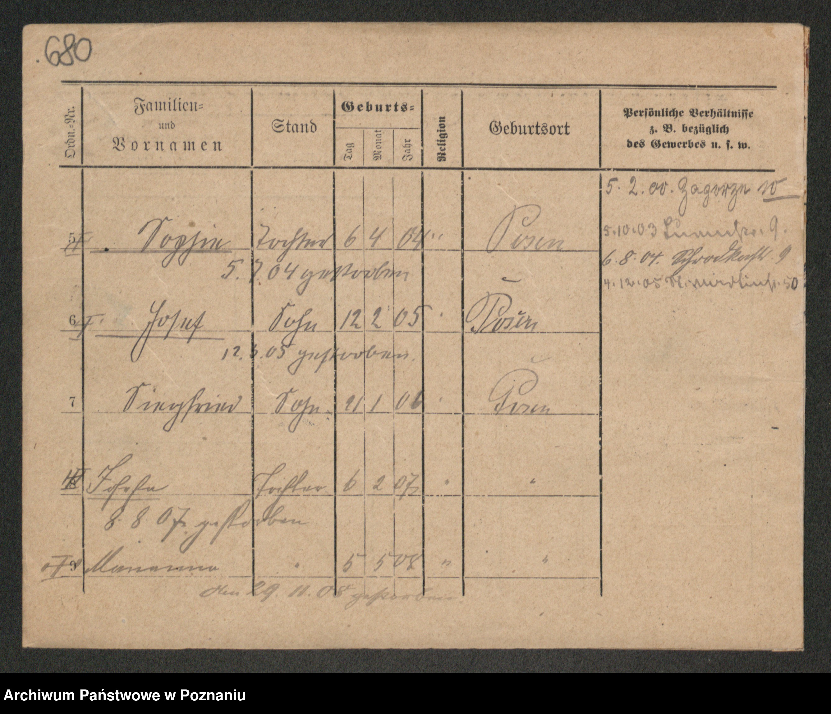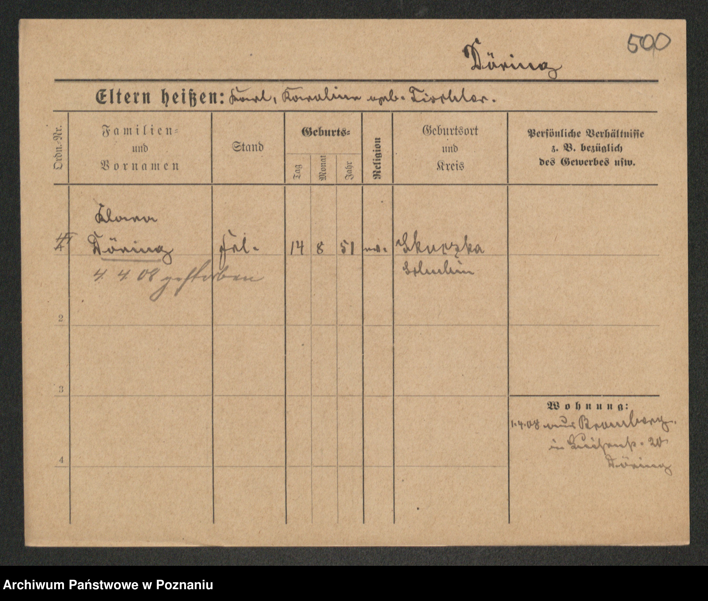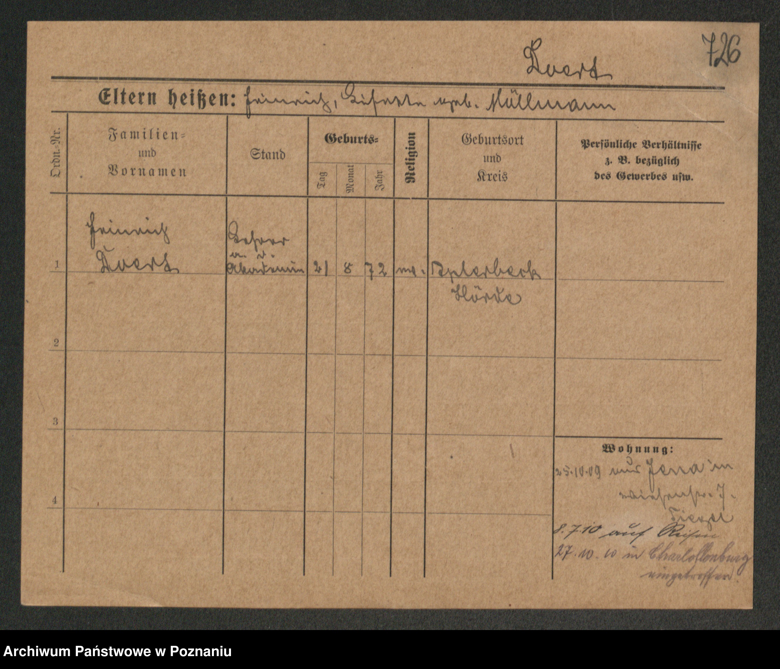 Podgląd karty osobowej dostępny jest po kliknięciu na nazwisko lub ikonkę karty. Można dokonywać powiększenia (ikony na górze) lub przechodzić między kolejnymi skanami (strzałki po bokach).