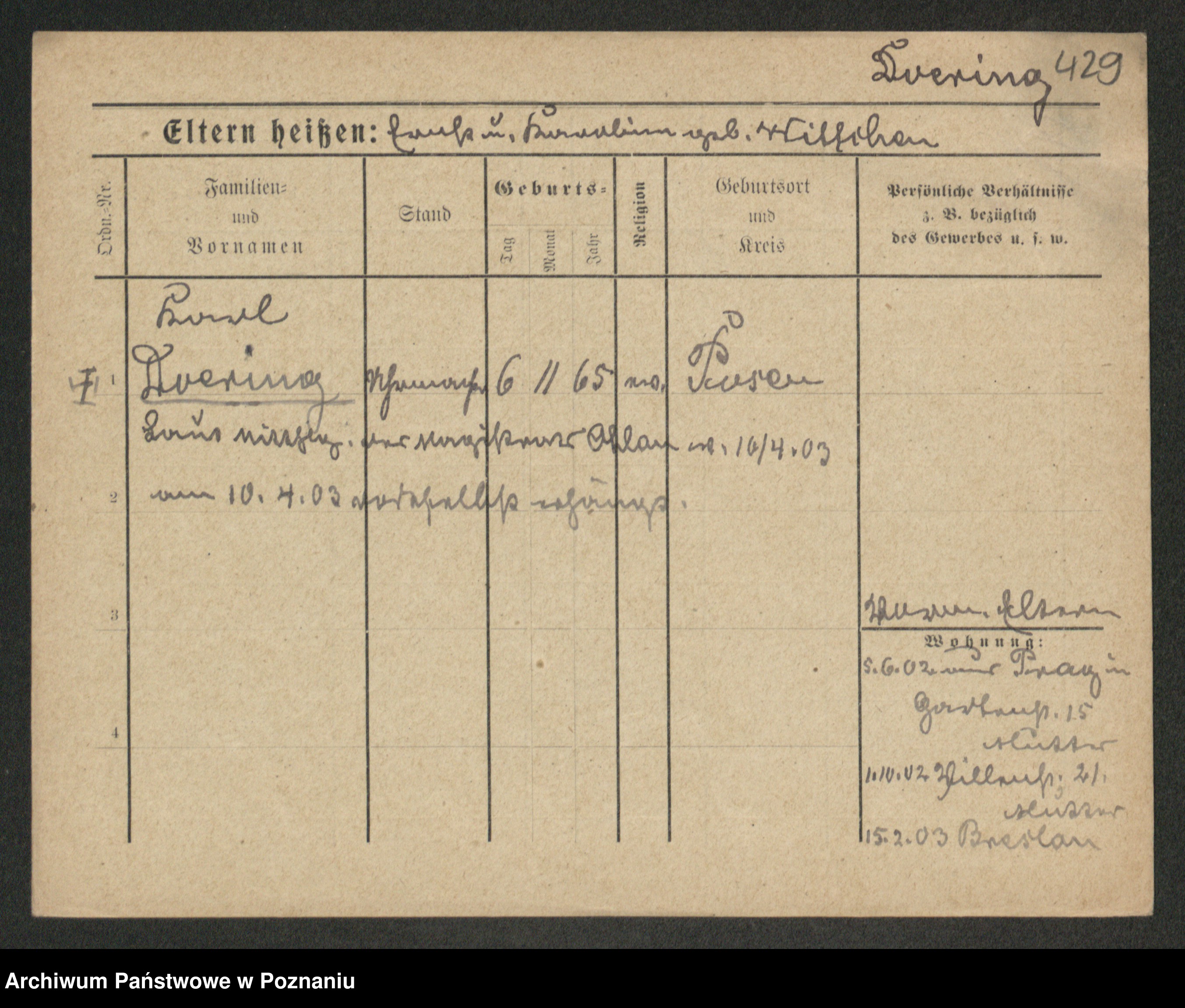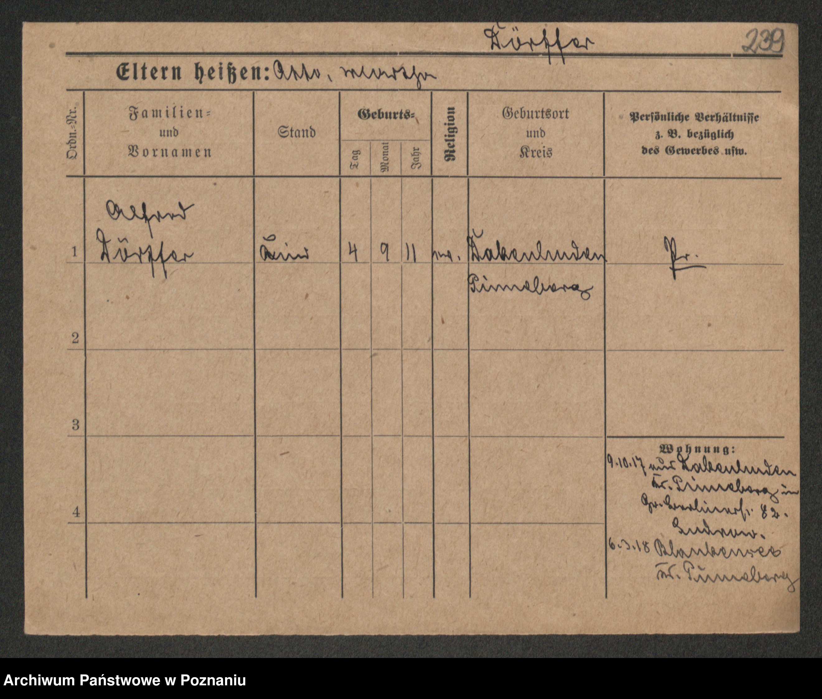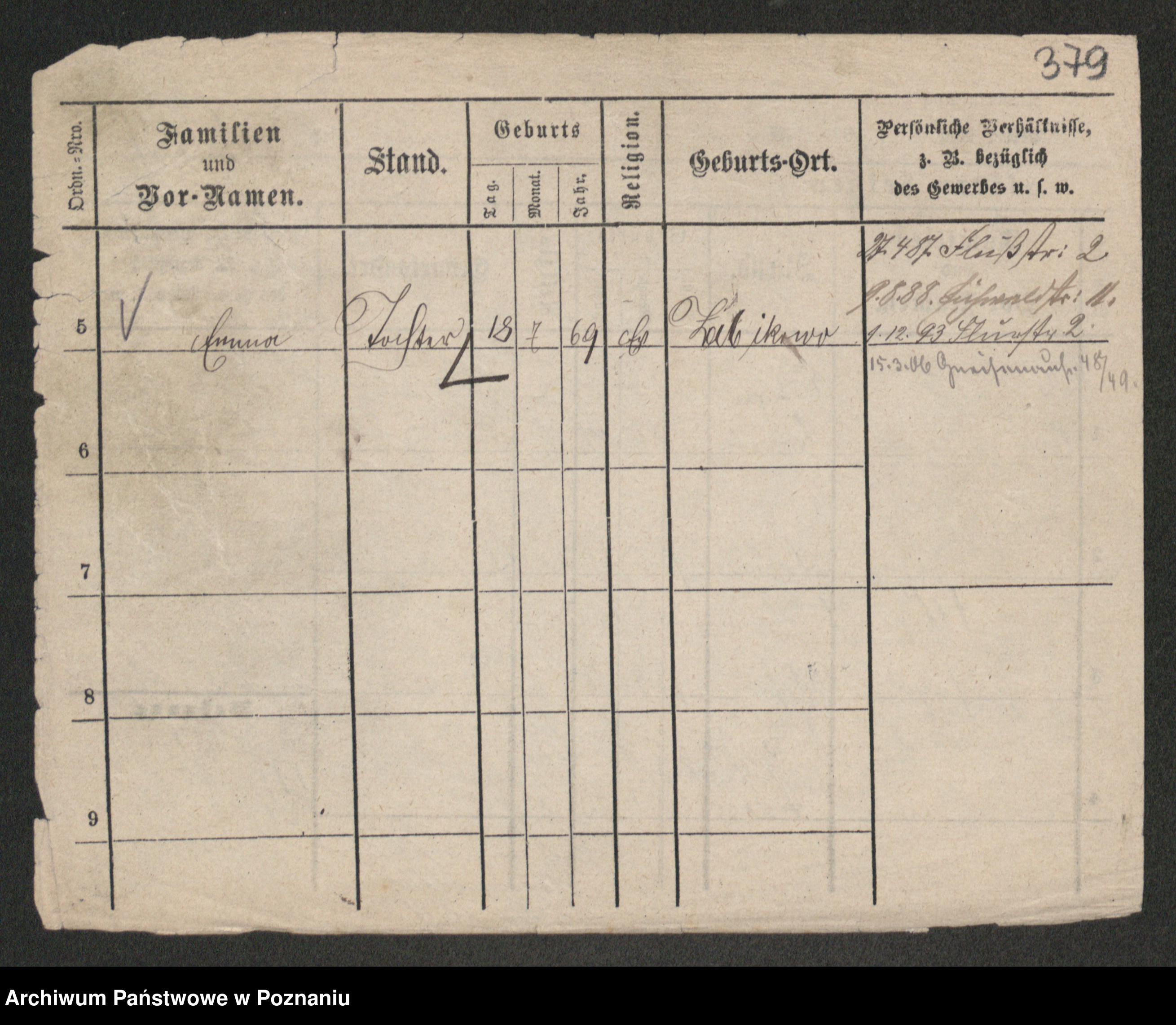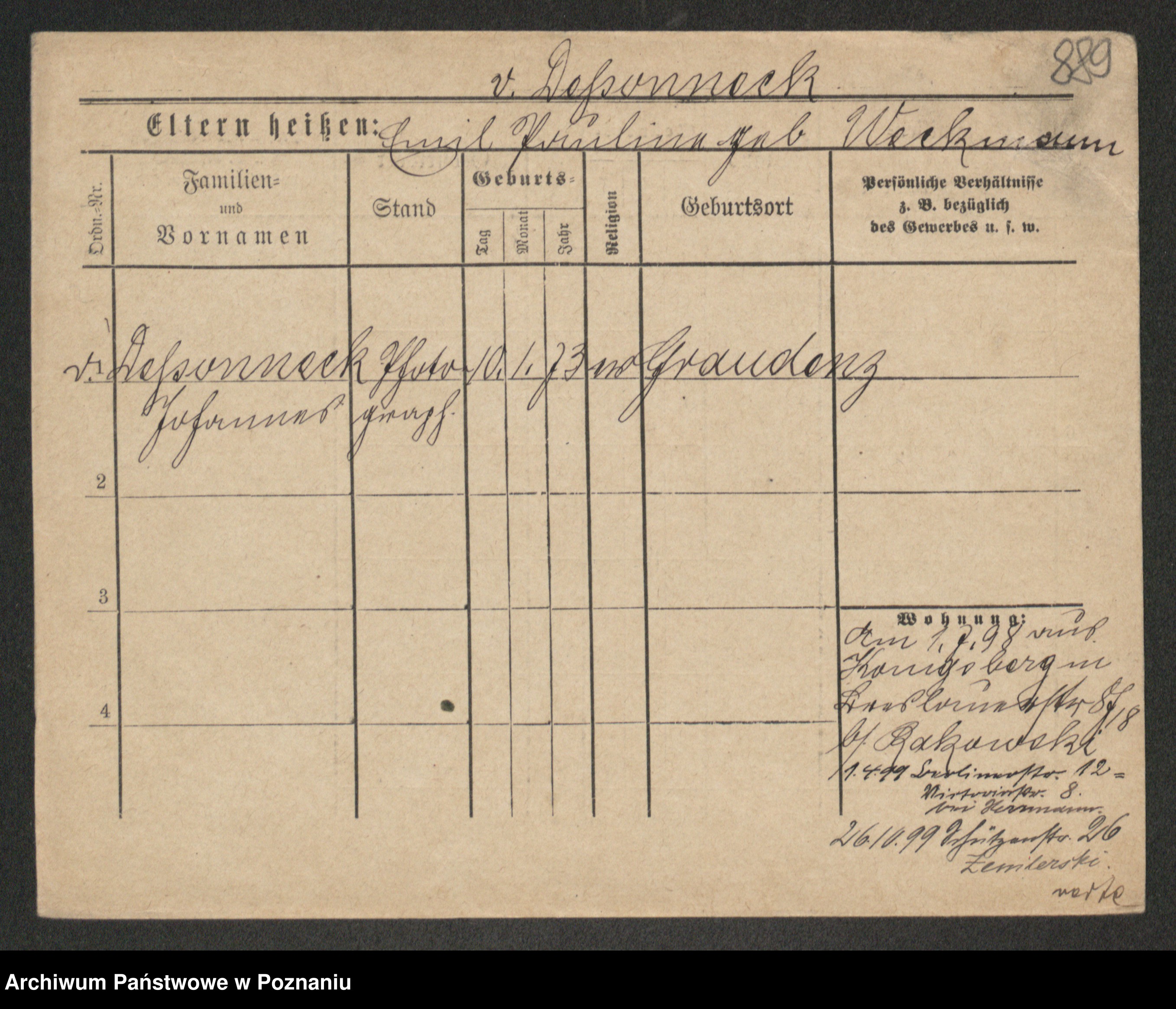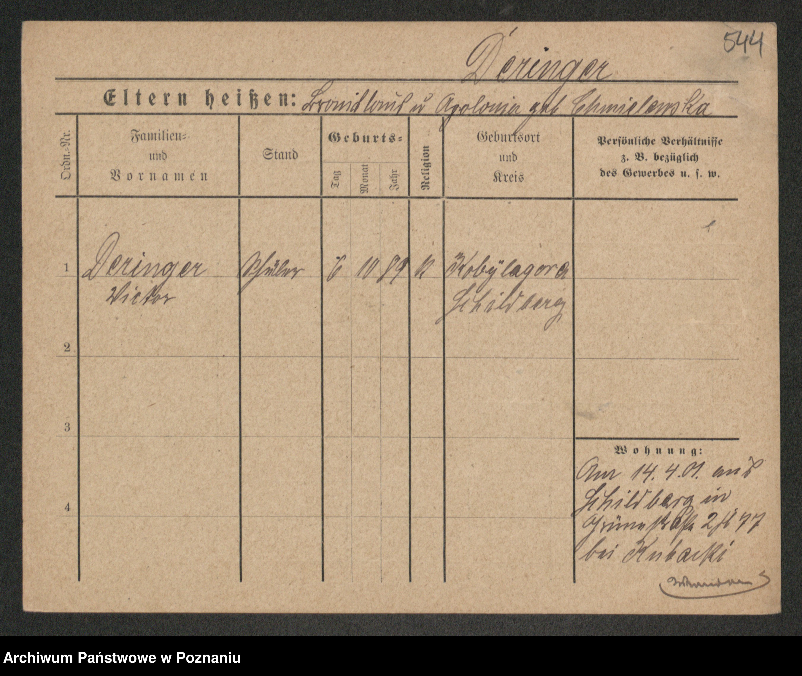 Podgląd karty osobowej dostępny jest po kliknięciu na nazwisko lub ikonkę karty. Można dokonywać powiększenia (ikony na górze) lub przechodzić między kolejnymi skanami (strzałki po bokach).