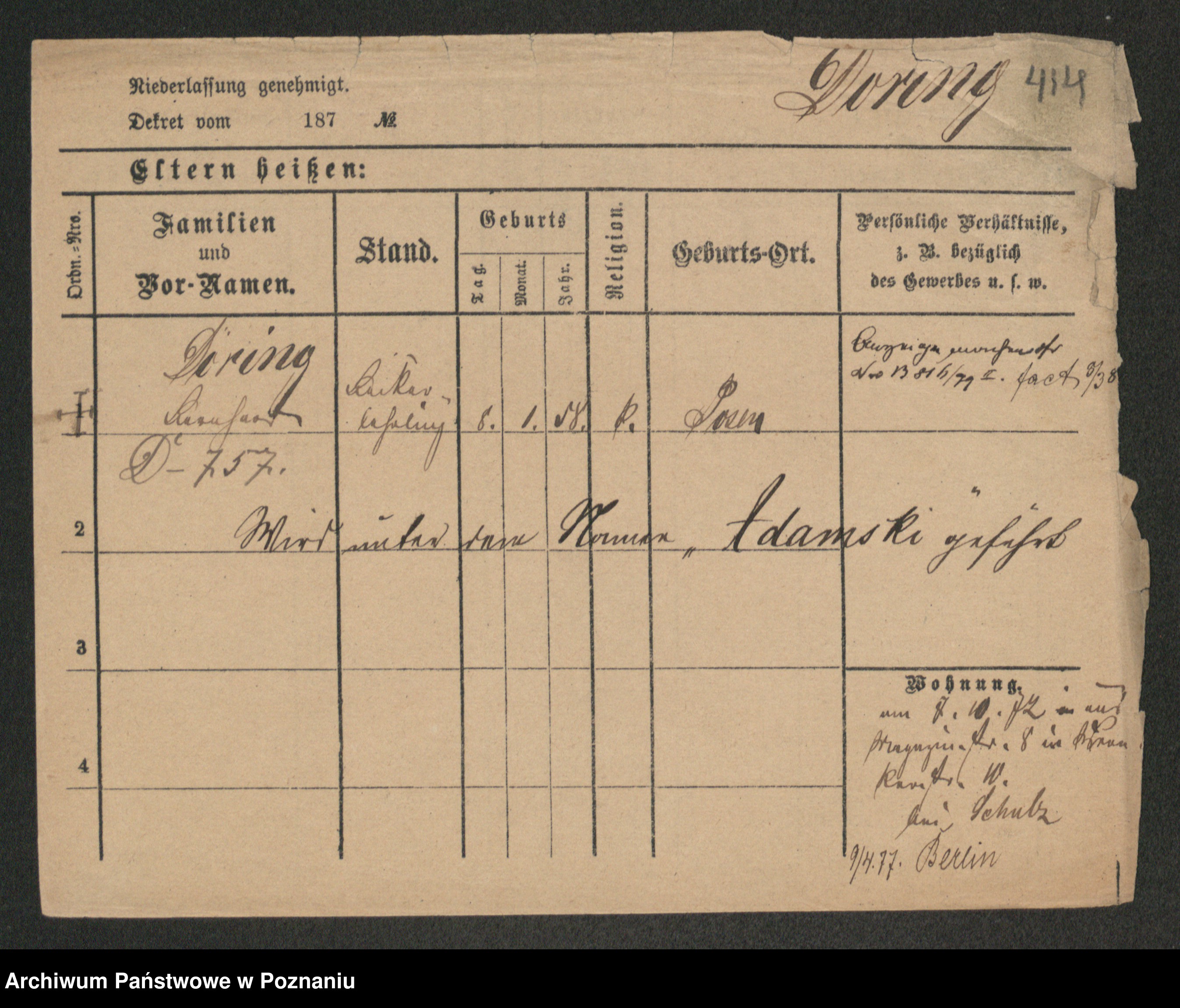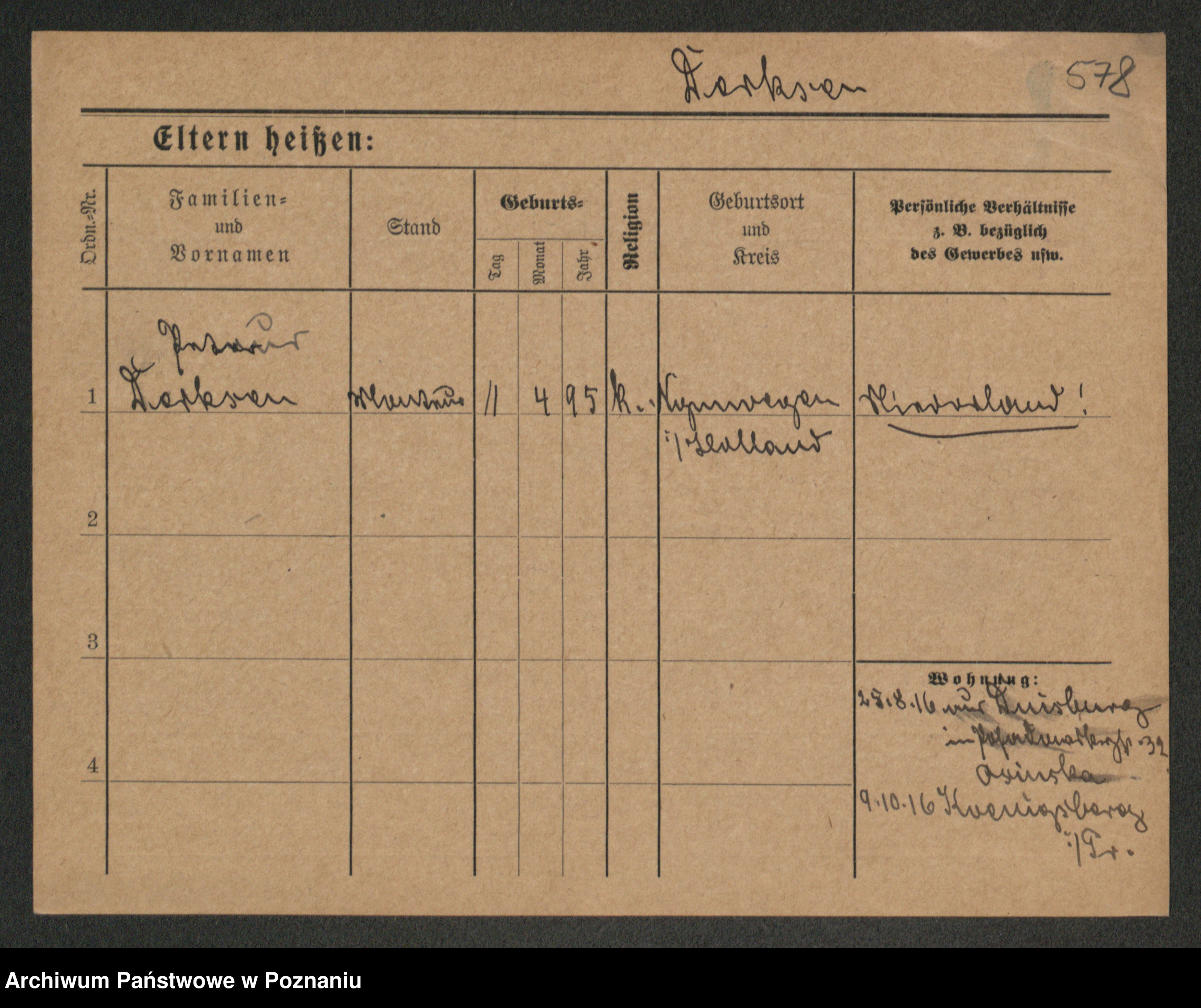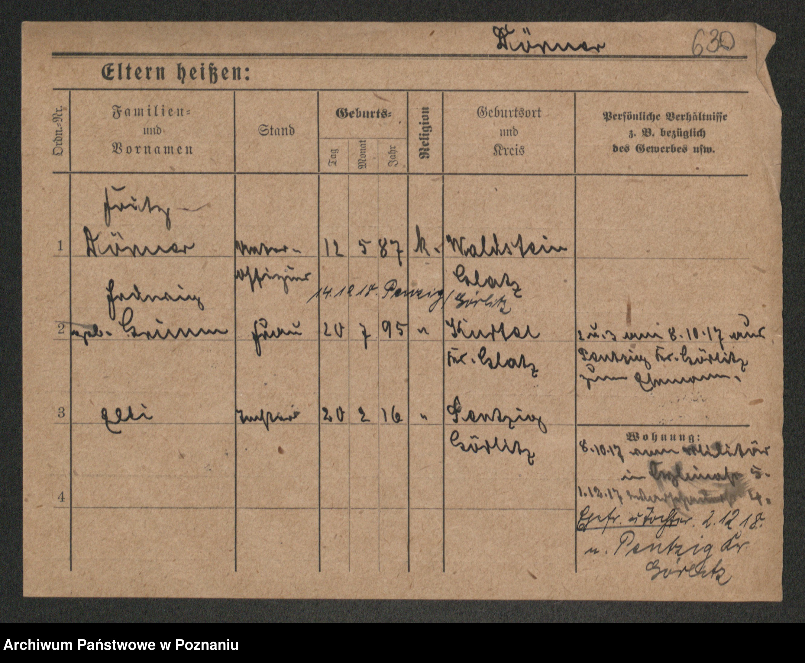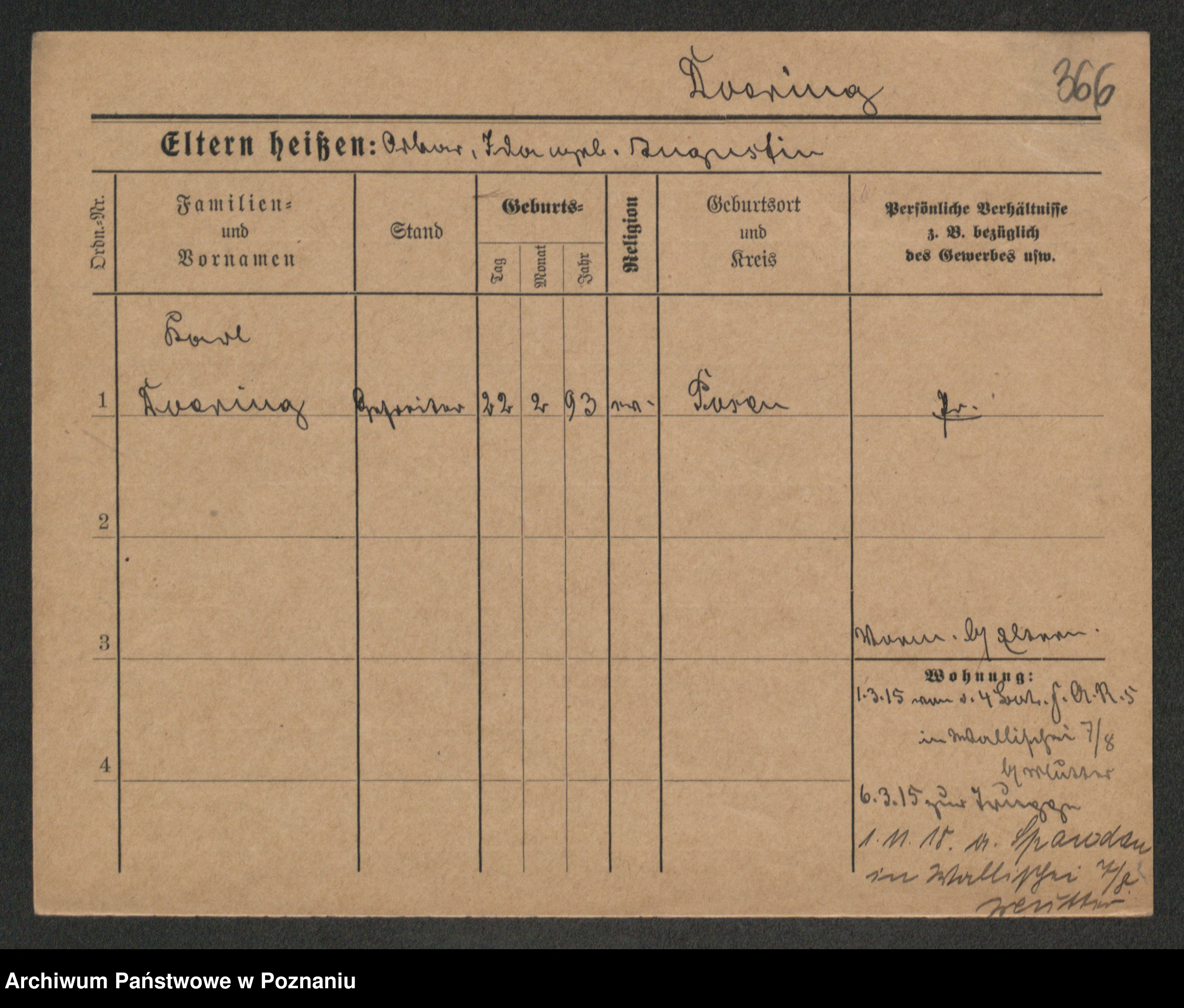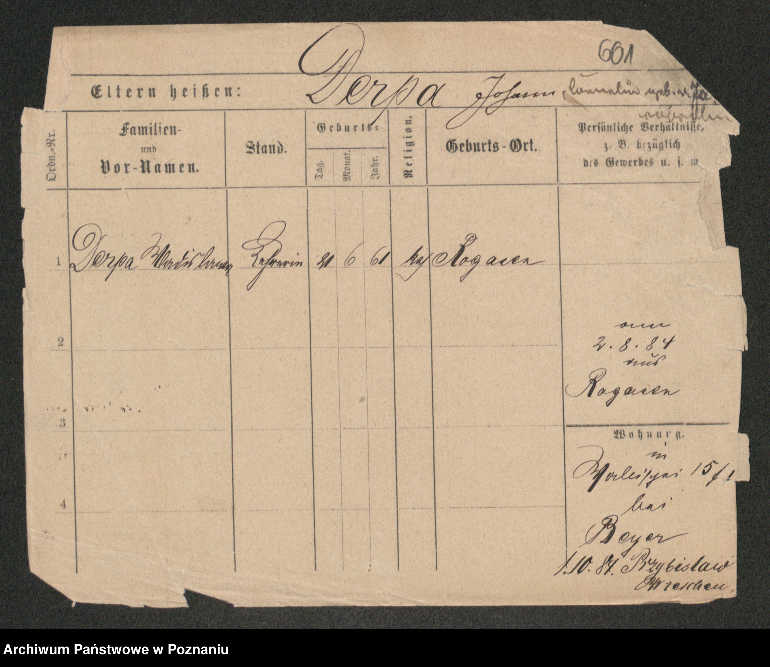 Podgląd karty osobowej dostępny jest po kliknięciu na nazwisko lub ikonkę karty. Można dokonywać powiększenia (ikony na górze) lub przechodzić między kolejnymi skanami (strzałki po bokach).