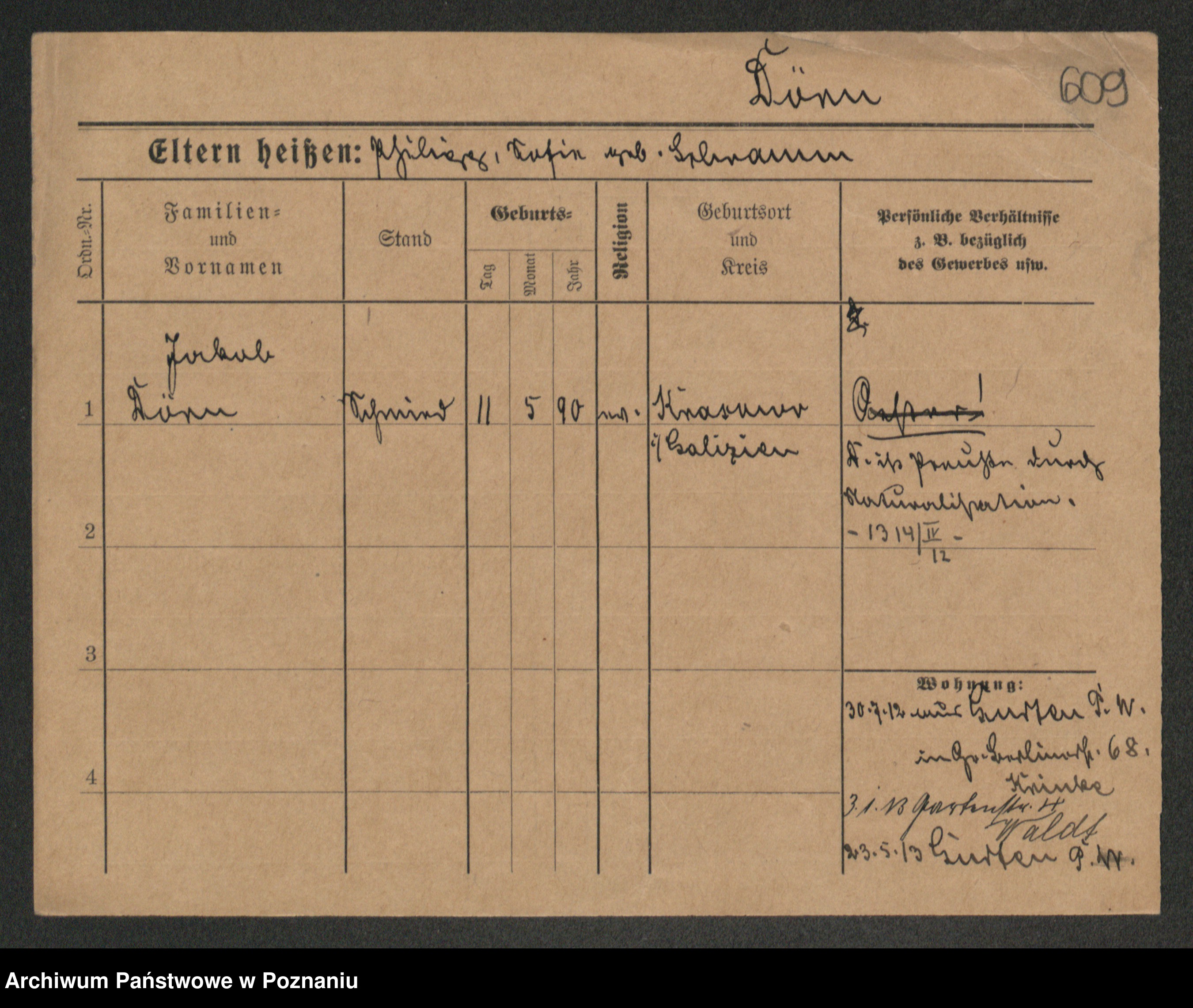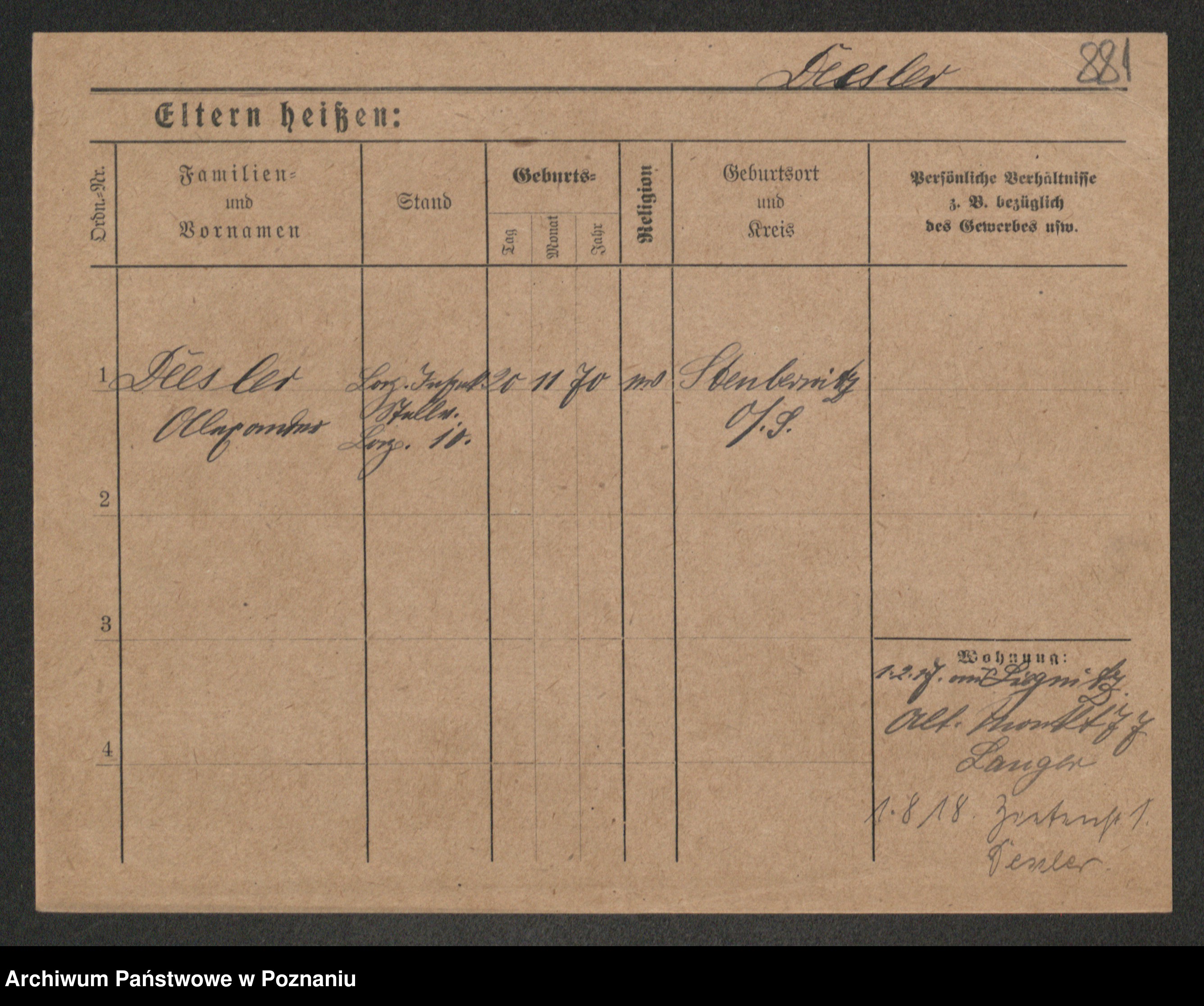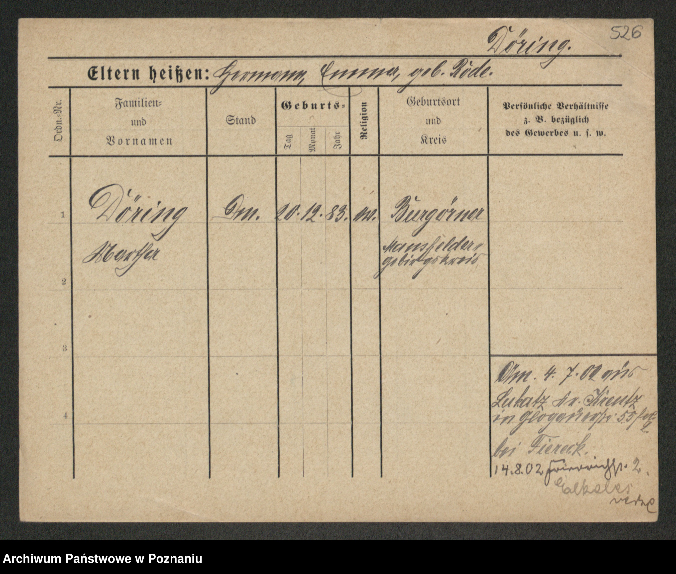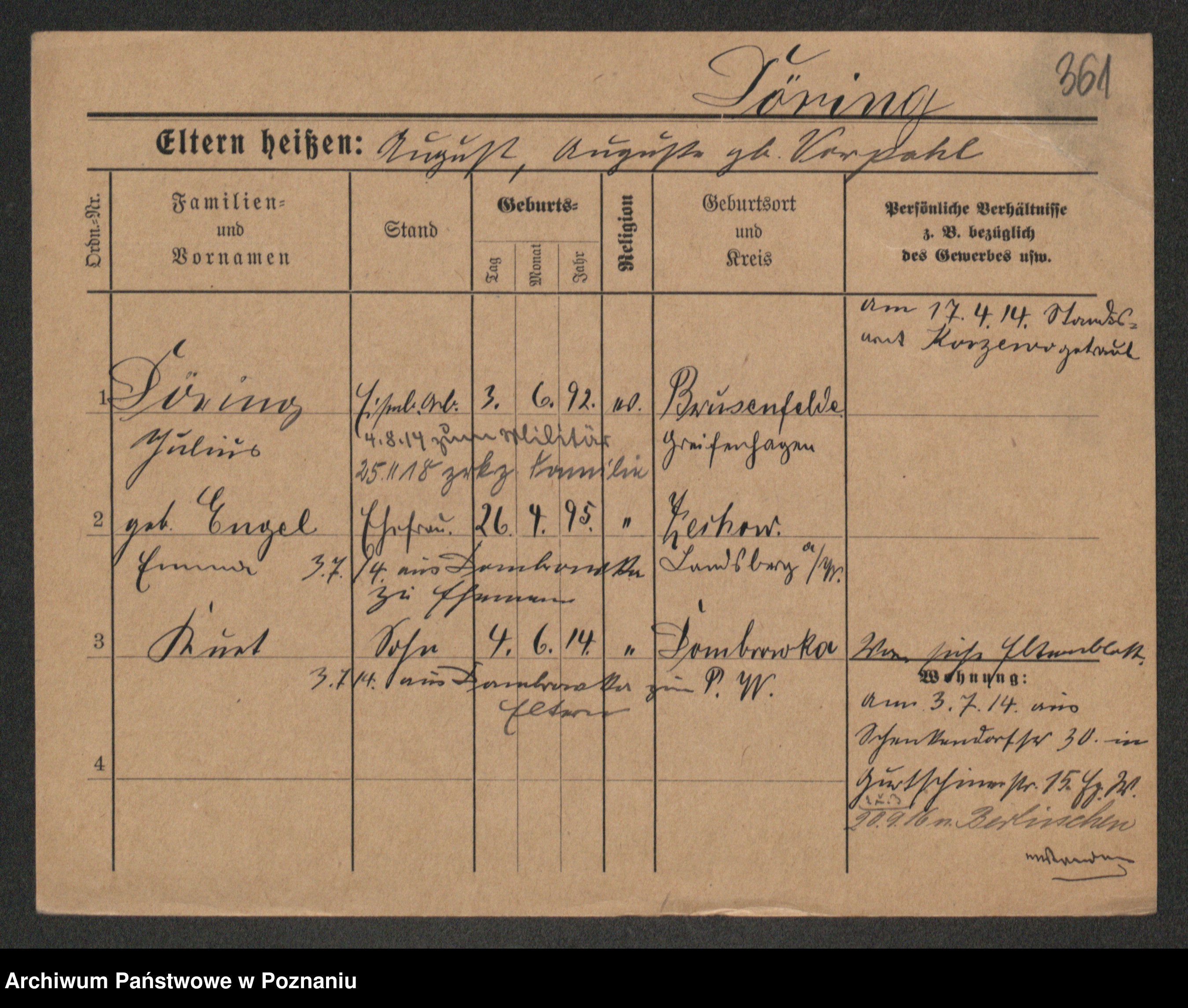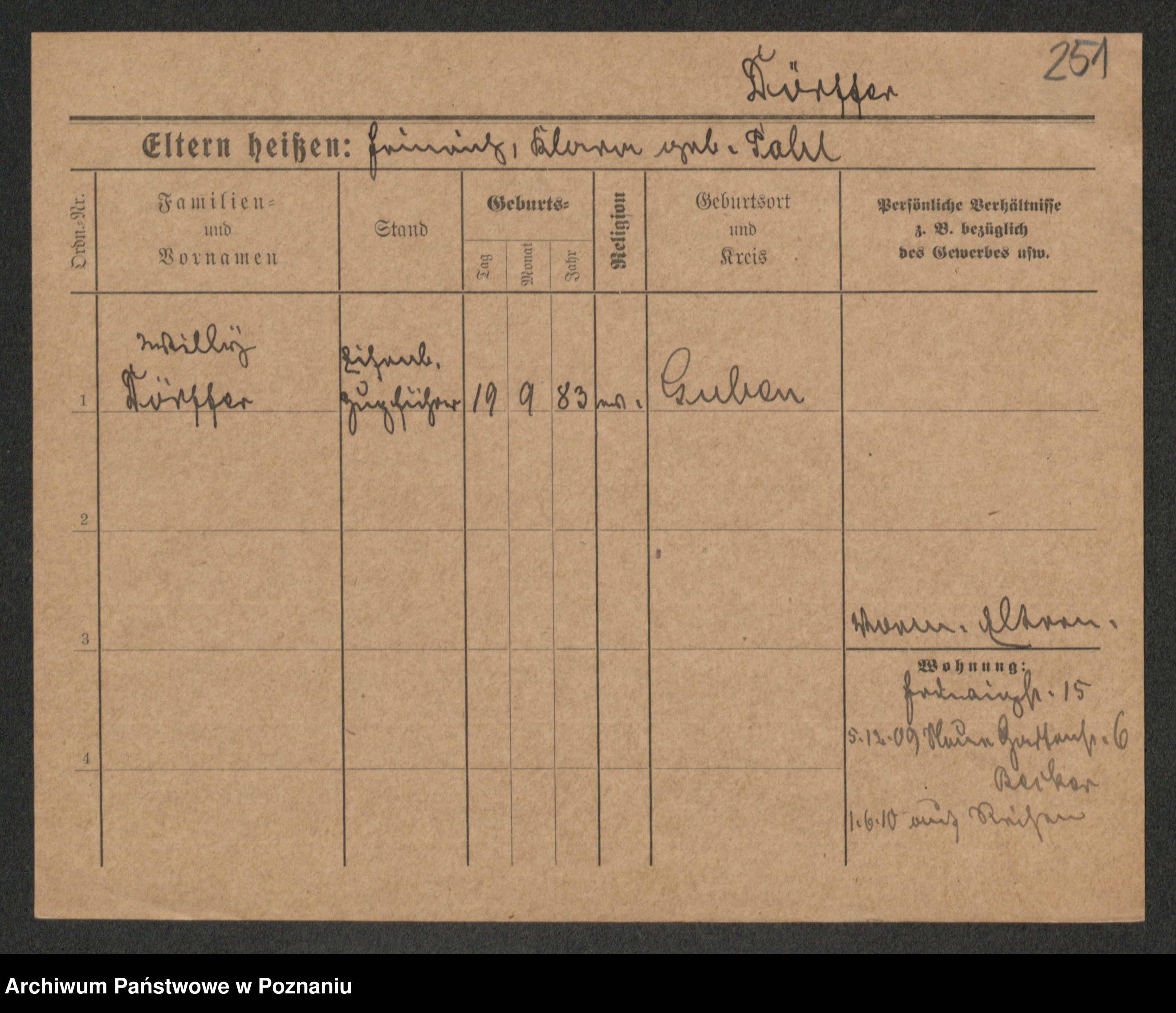 Podgląd karty osobowej dostępny jest po kliknięciu na nazwisko lub ikonkę karty. Można dokonywać powiększenia (ikony na górze) lub przechodzić między kolejnymi skanami (strzałki po bokach).
