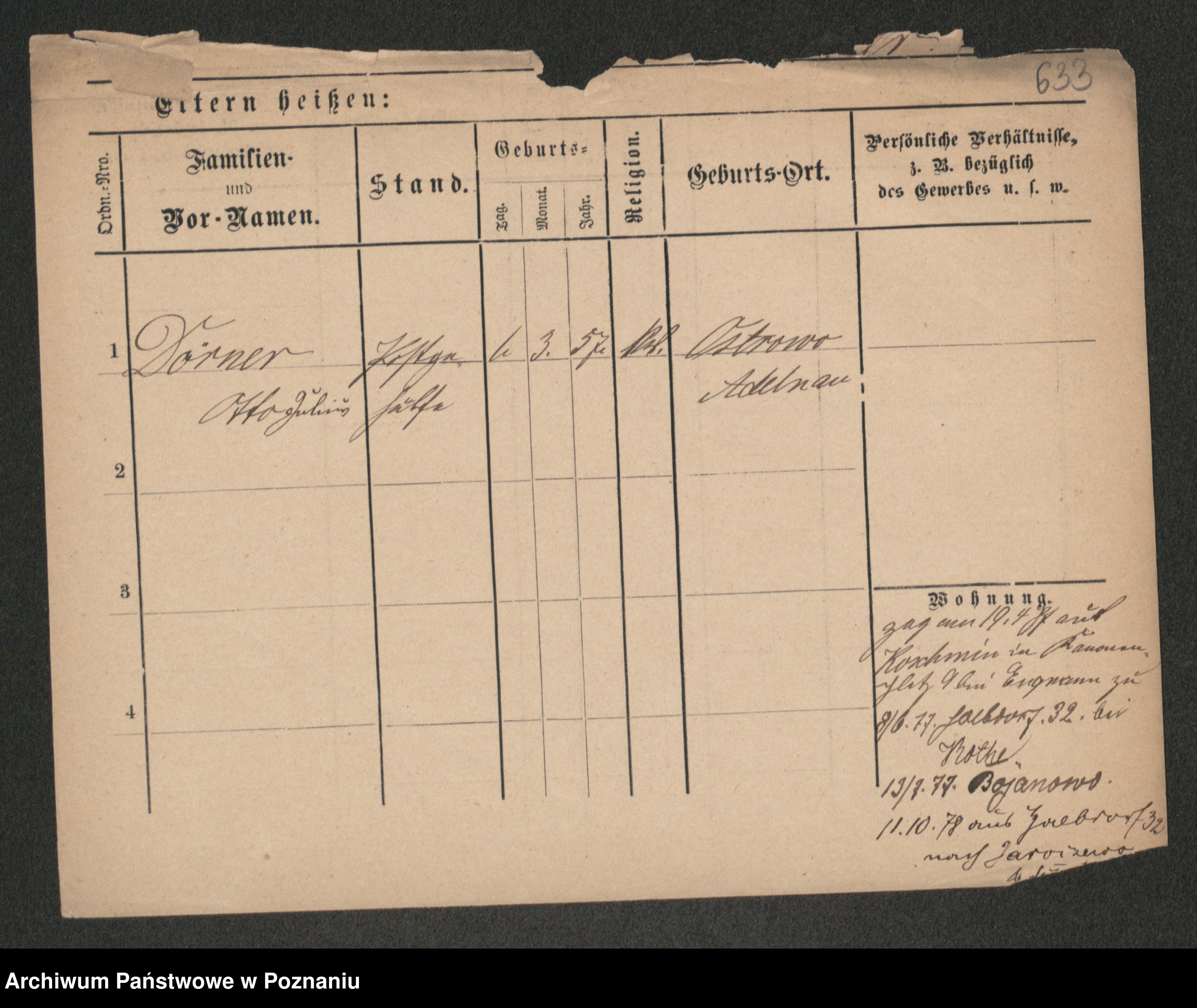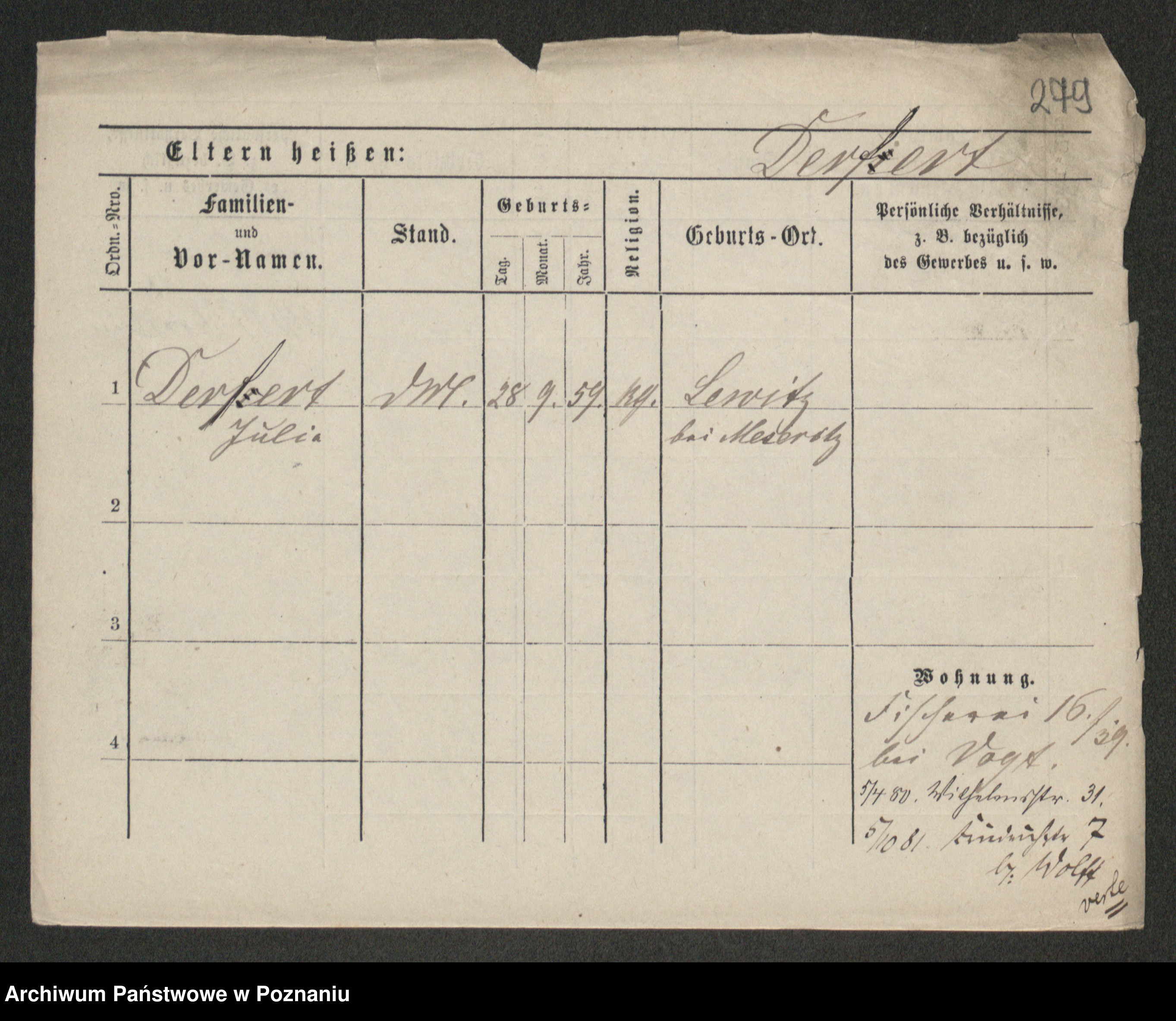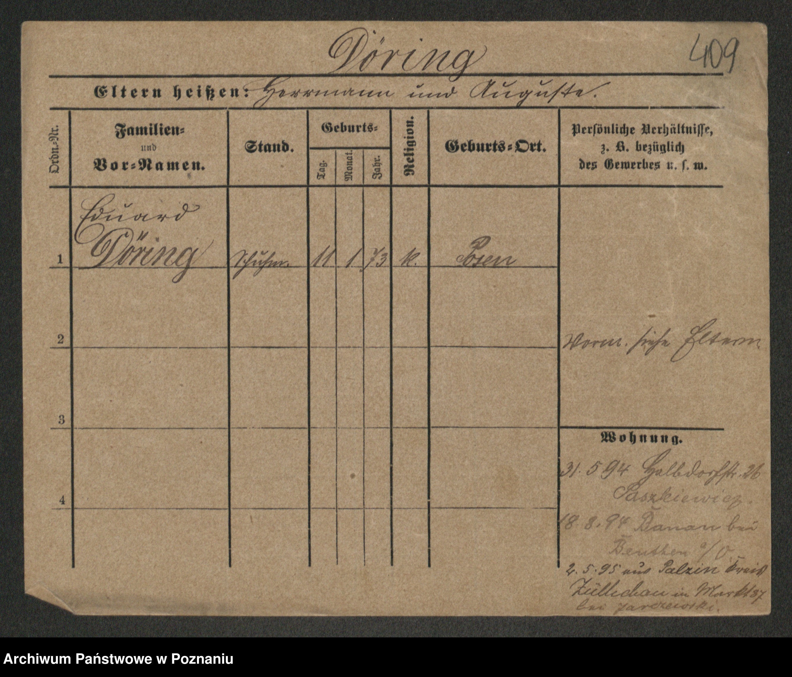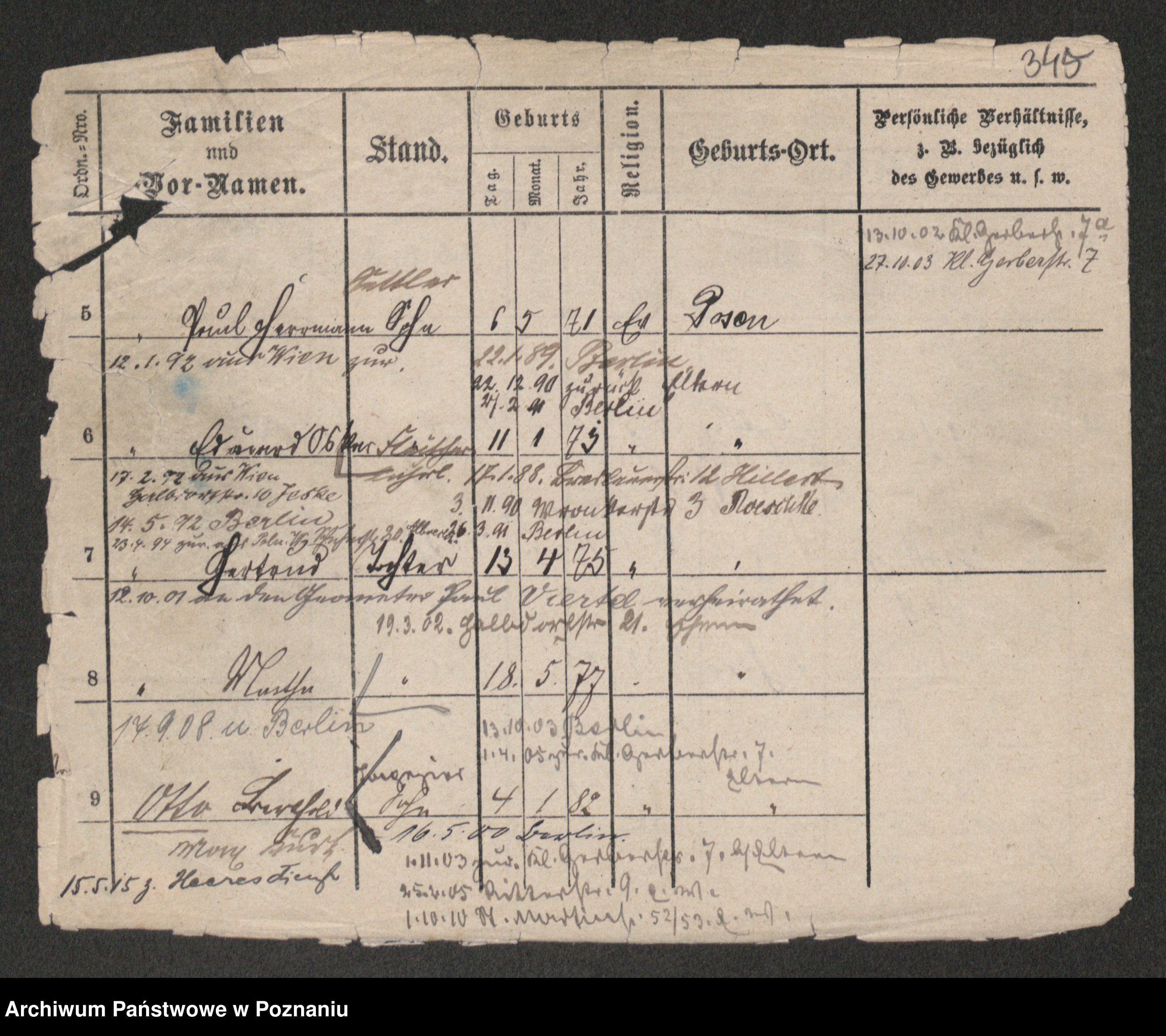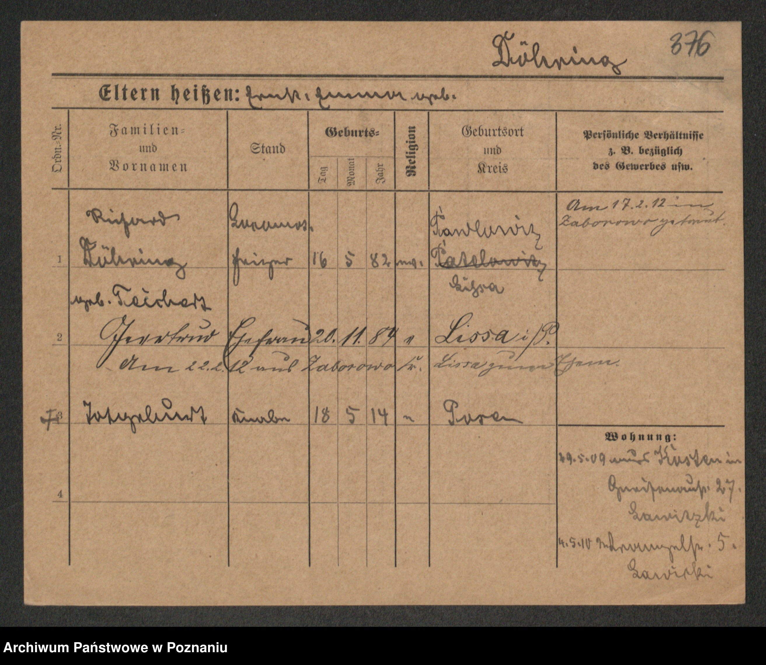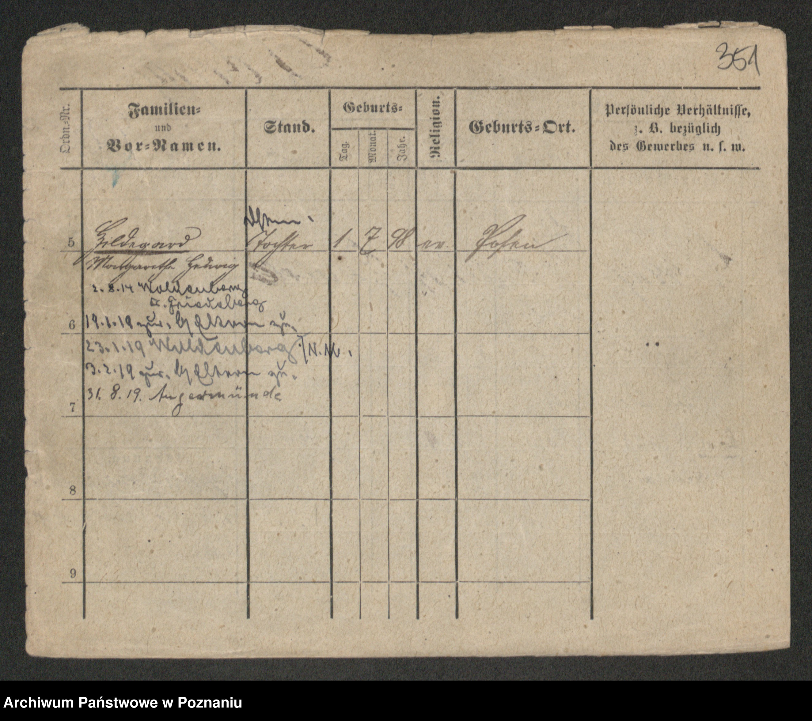 Podgląd karty osobowej dostępny jest po kliknięciu na nazwisko lub ikonkę karty. Można dokonywać powiększenia (ikony na górze) lub przechodzić między kolejnymi skanami (strzałki po bokach).