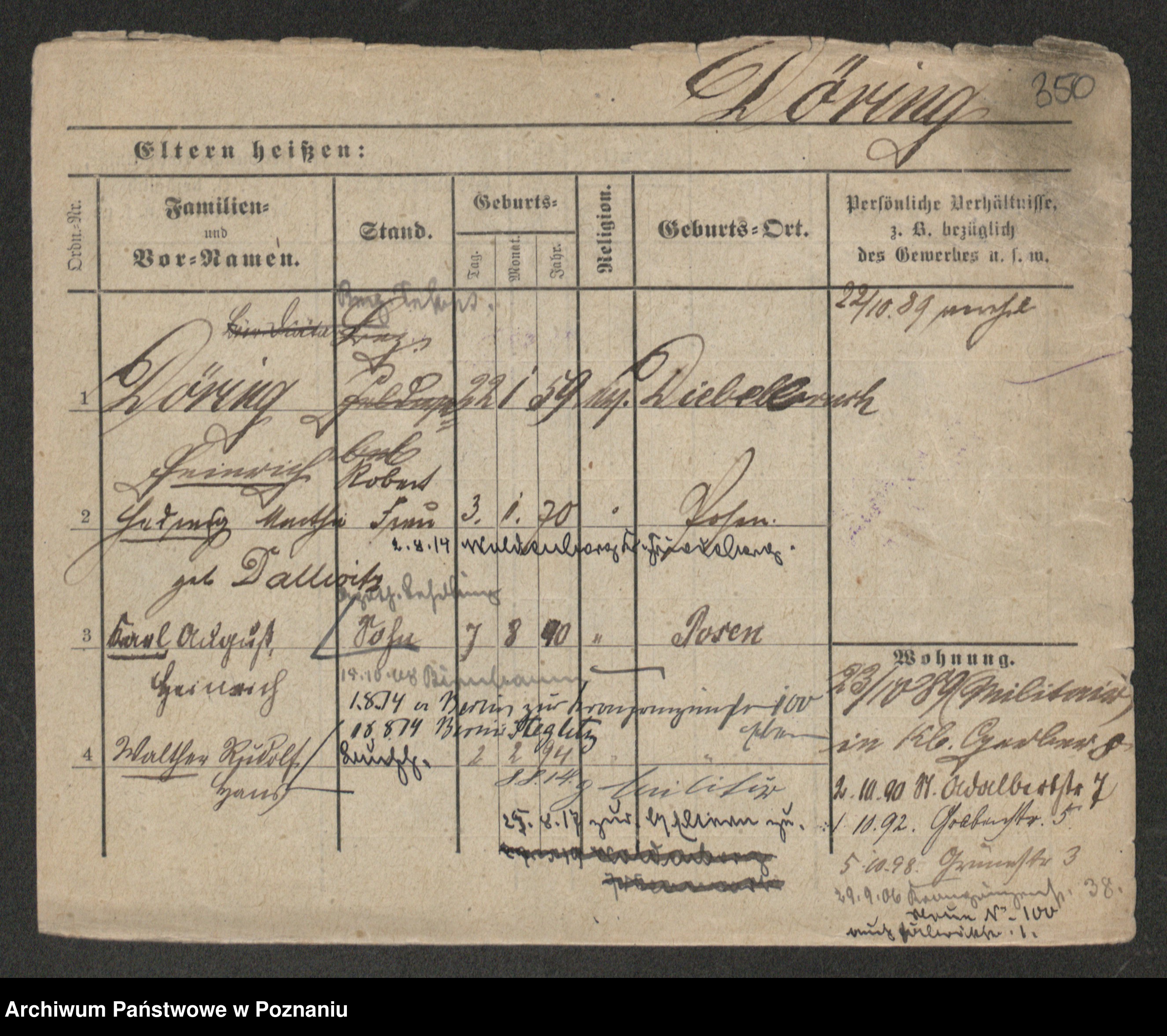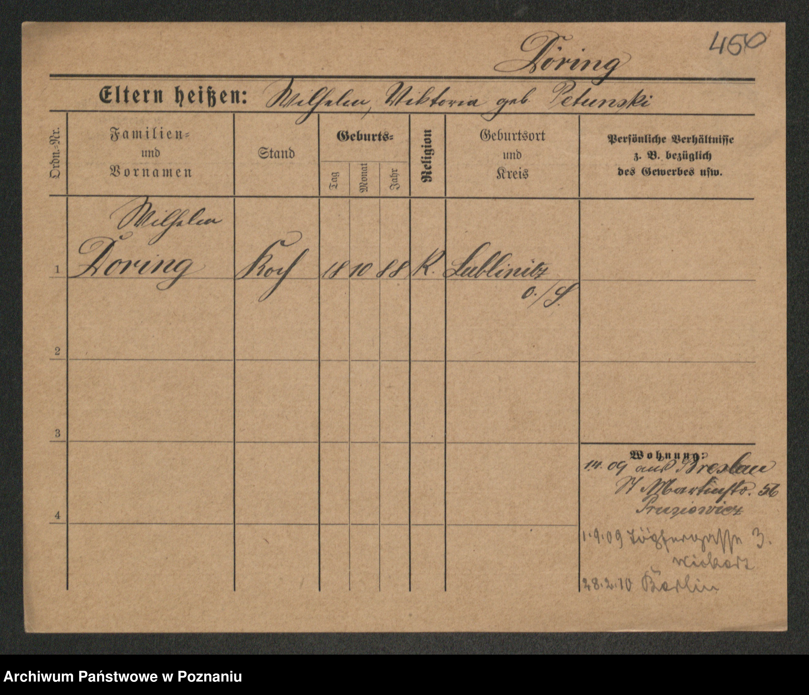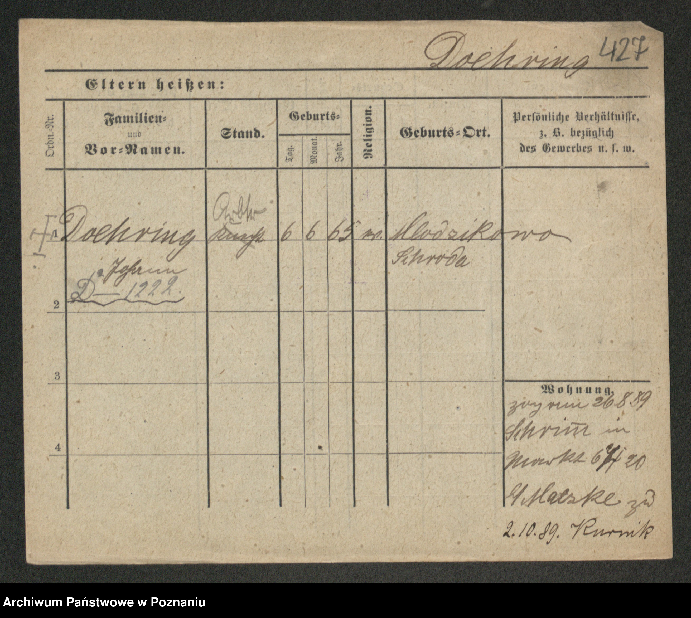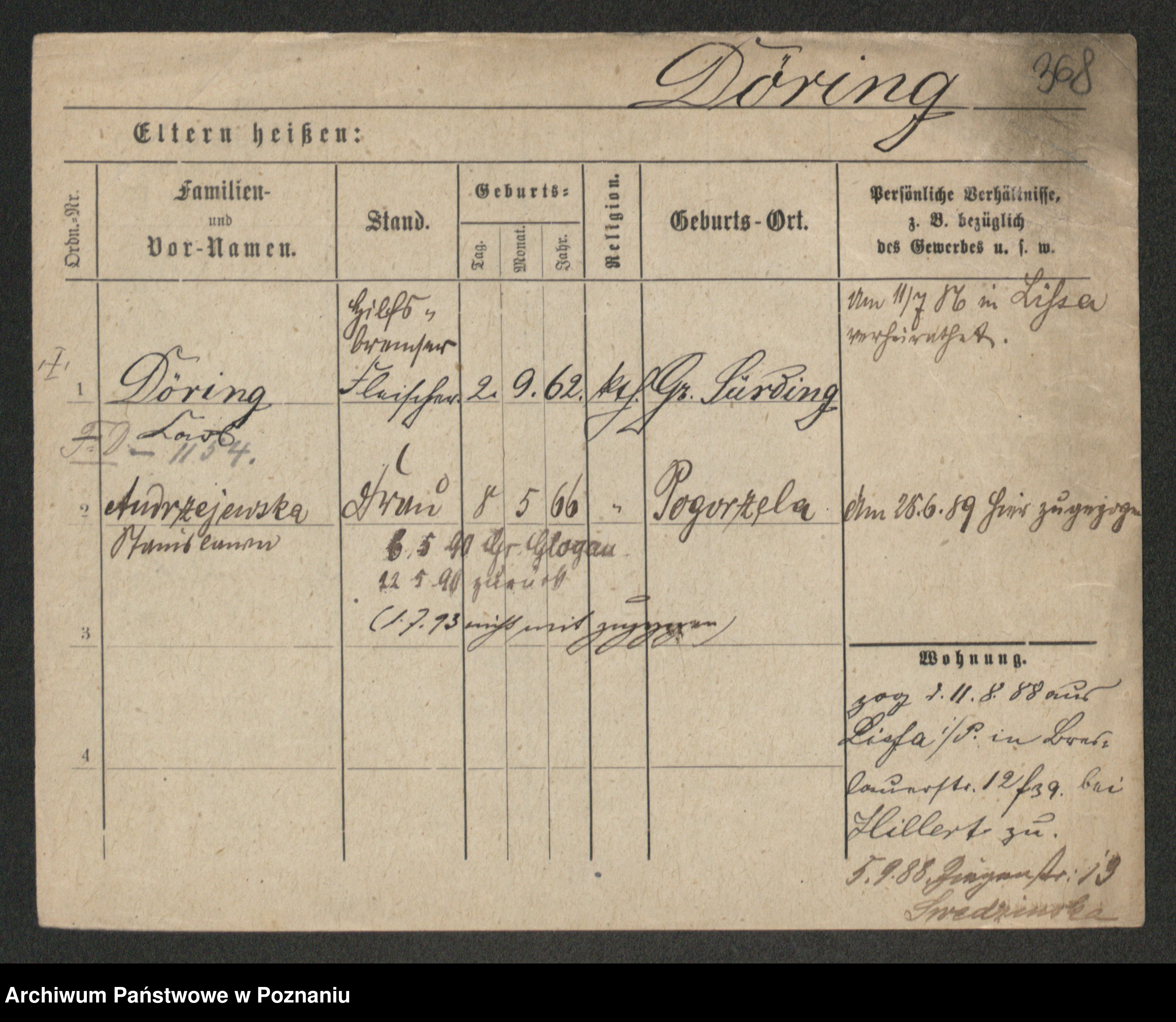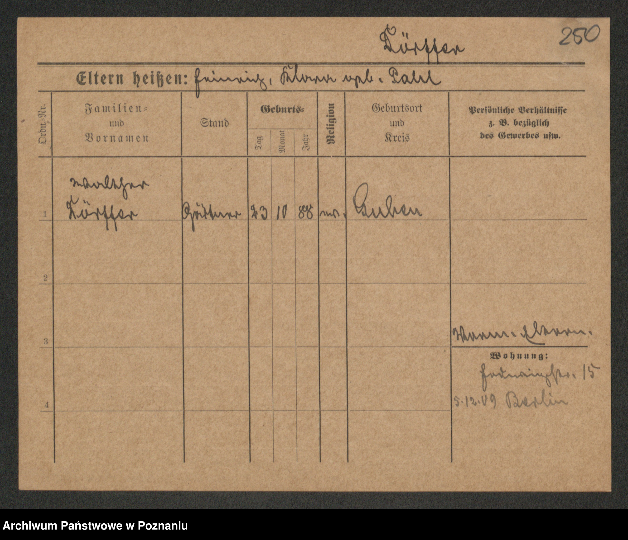 Podgląd karty osobowej dostępny jest po kliknięciu na nazwisko lub ikonkę karty. Można dokonywać powiększenia (ikony na górze) lub przechodzić między kolejnymi skanami (strzałki po bokach).