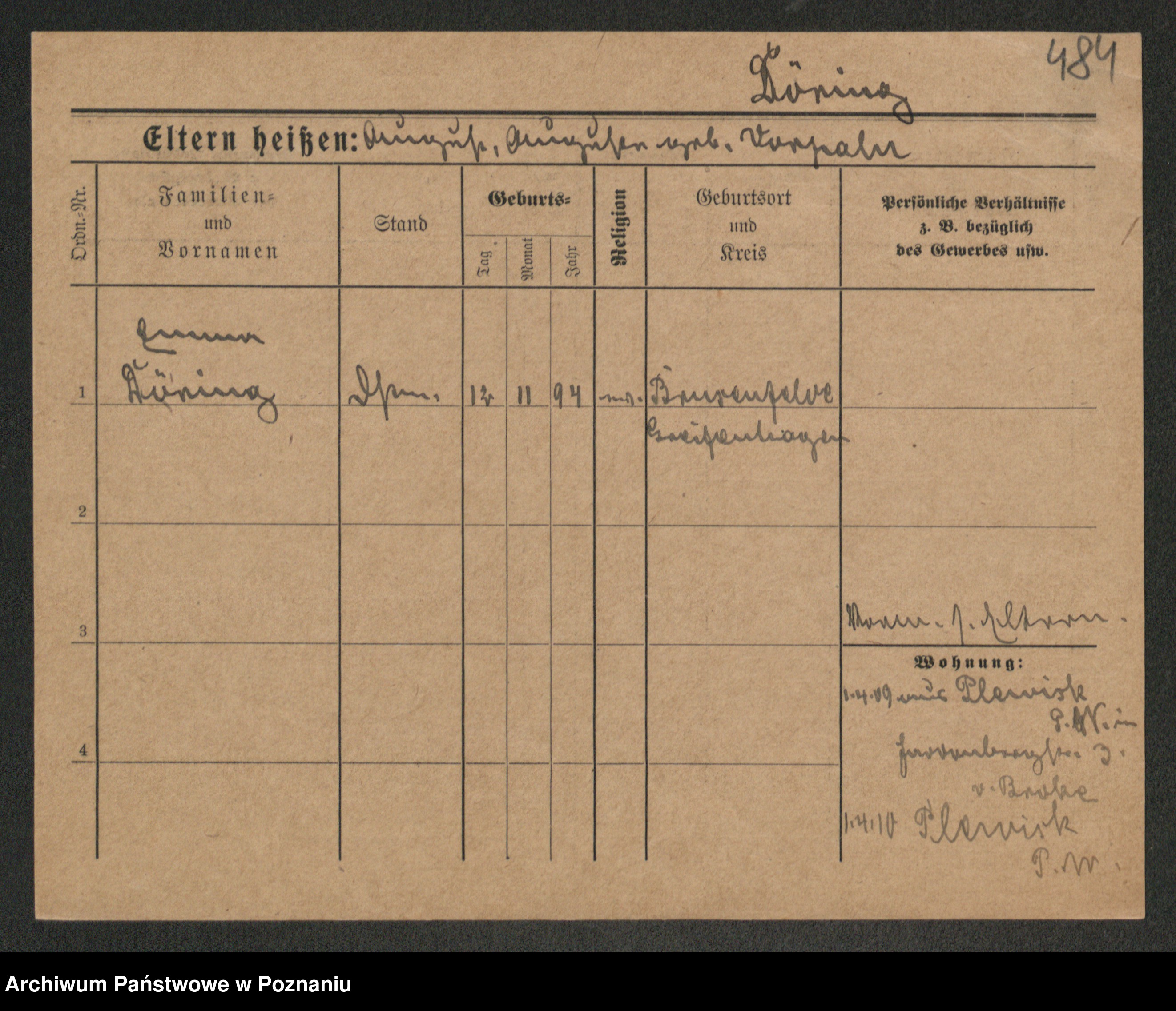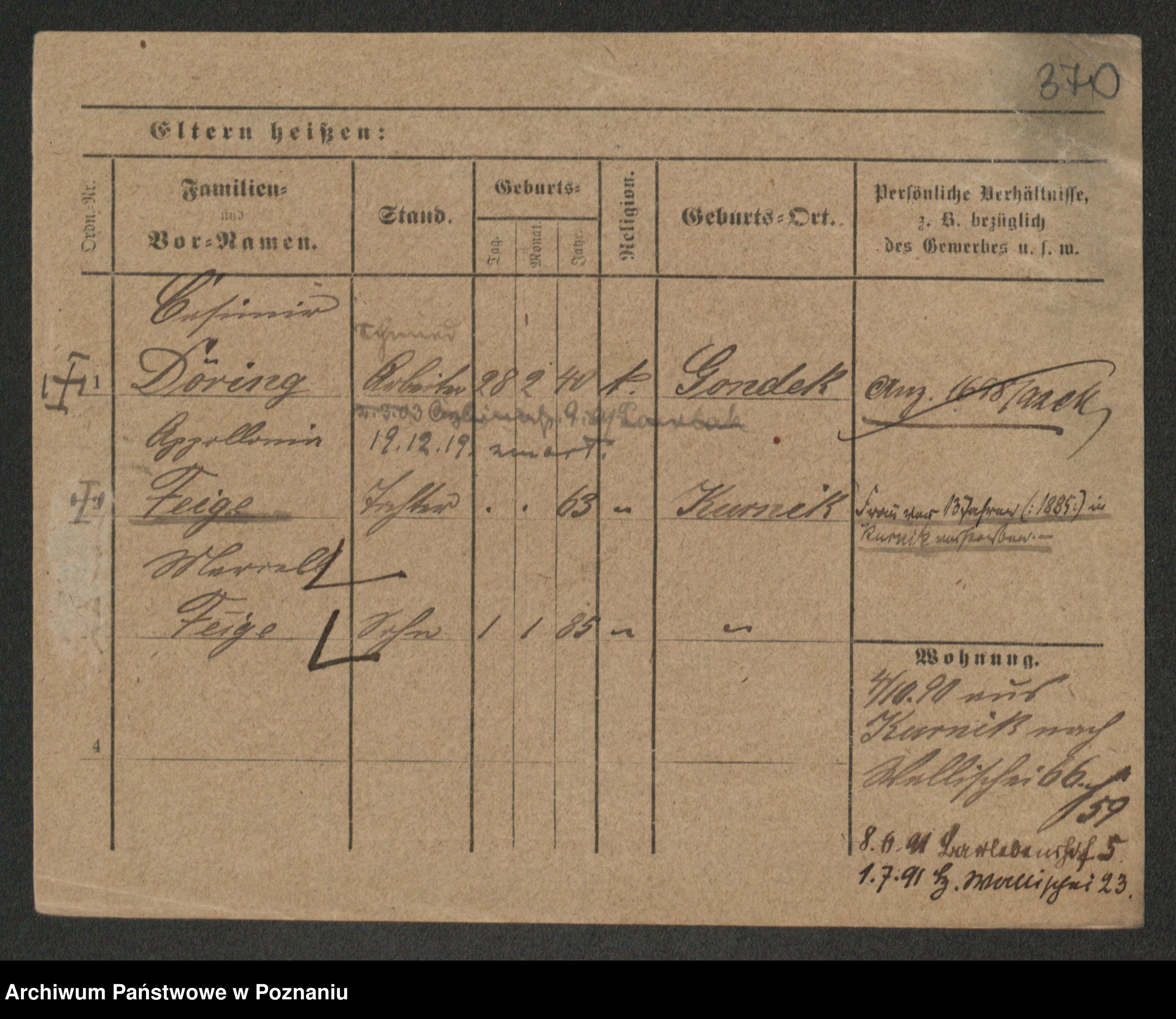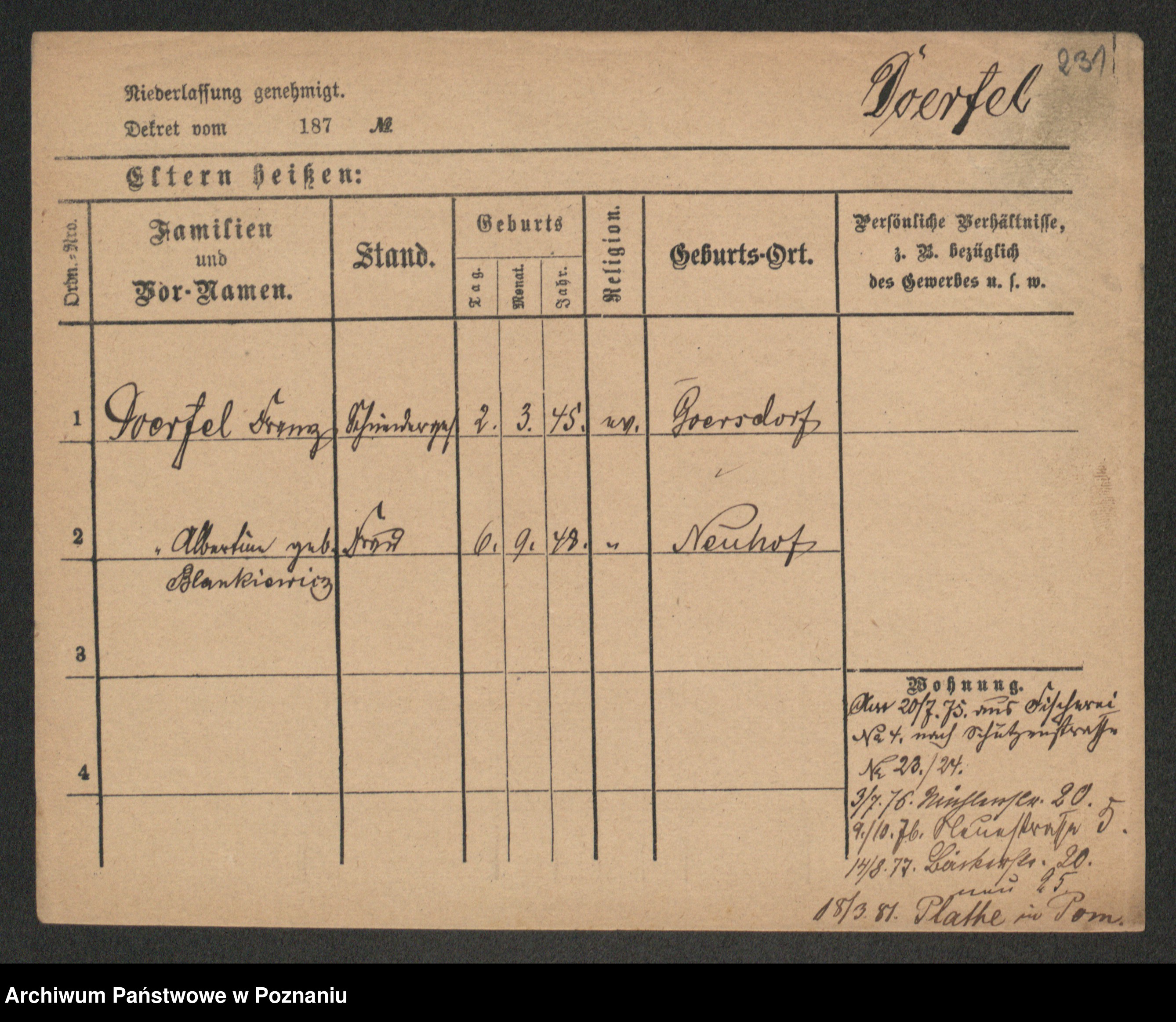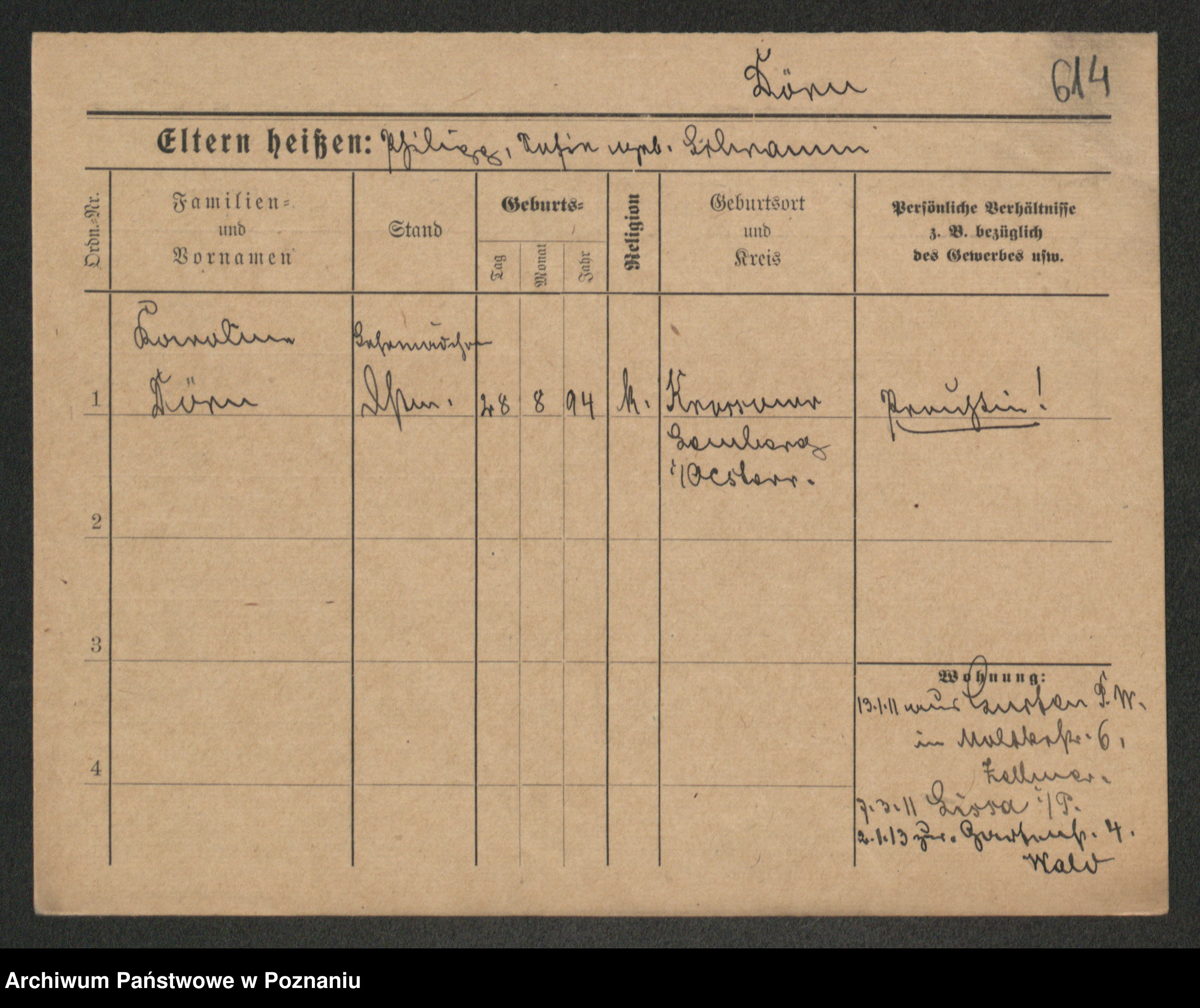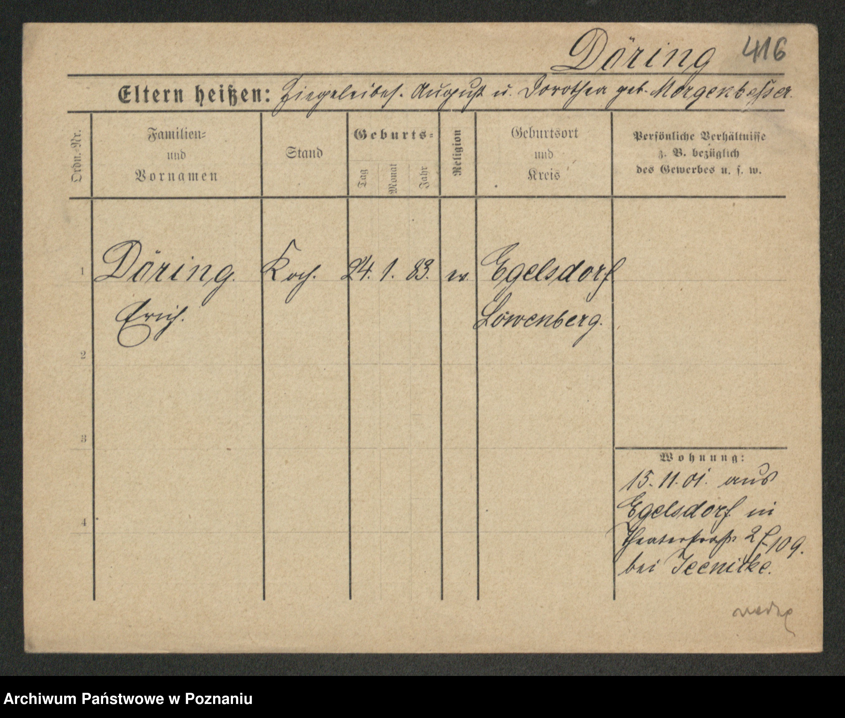 Podgląd karty osobowej dostępny jest po kliknięciu na nazwisko lub ikonkę karty. Można dokonywać powiększenia (ikony na górze) lub przechodzić między kolejnymi skanami (strzałki po bokach).
