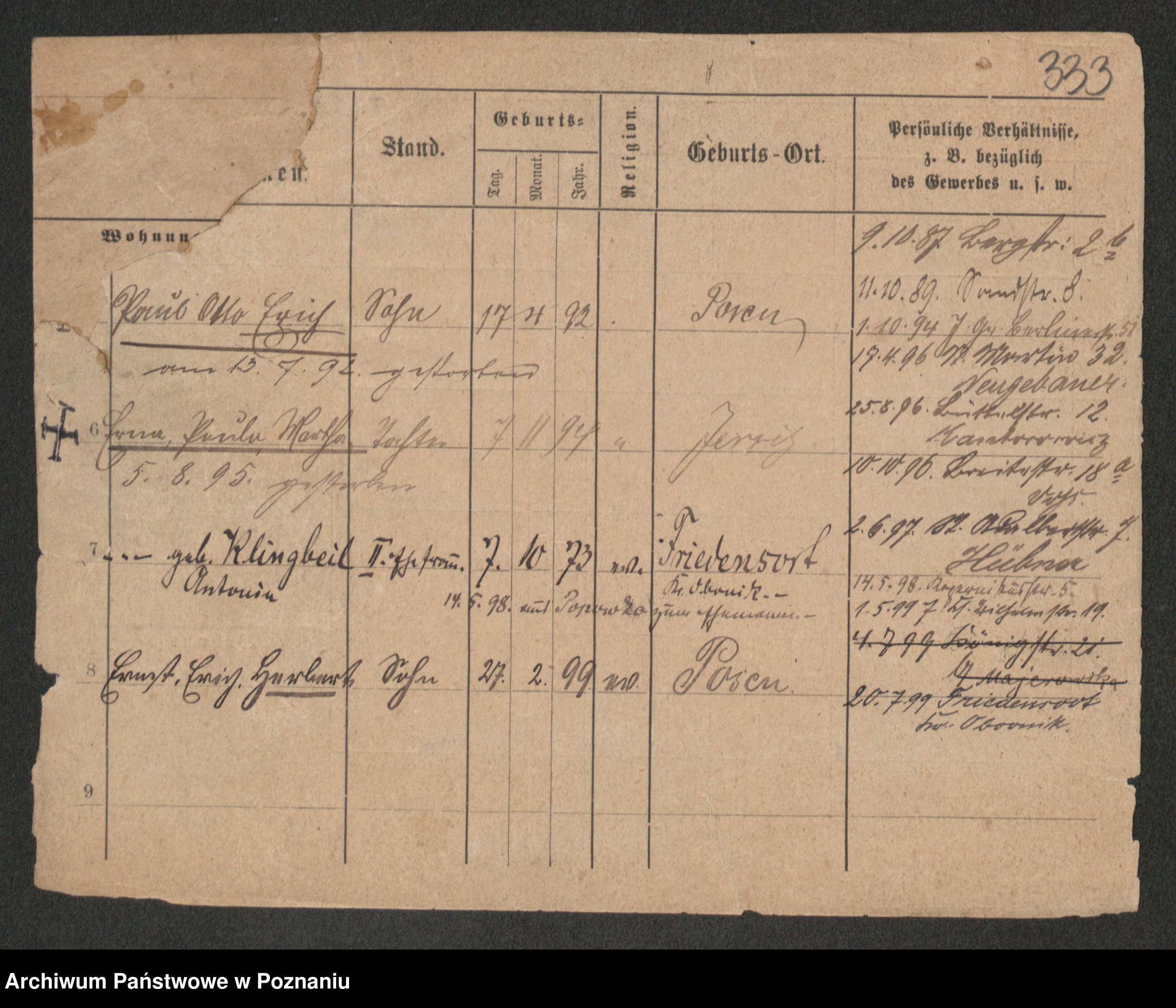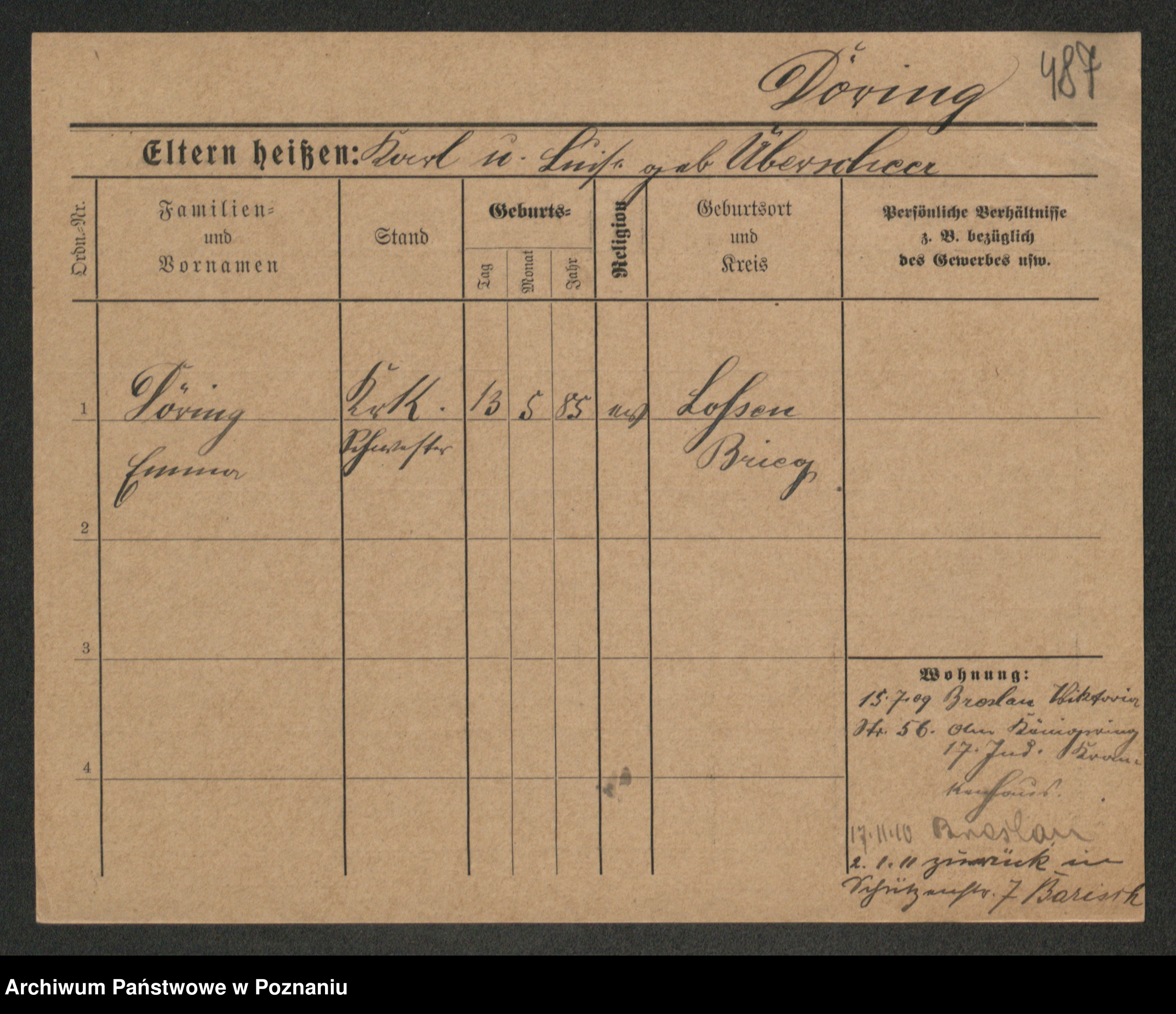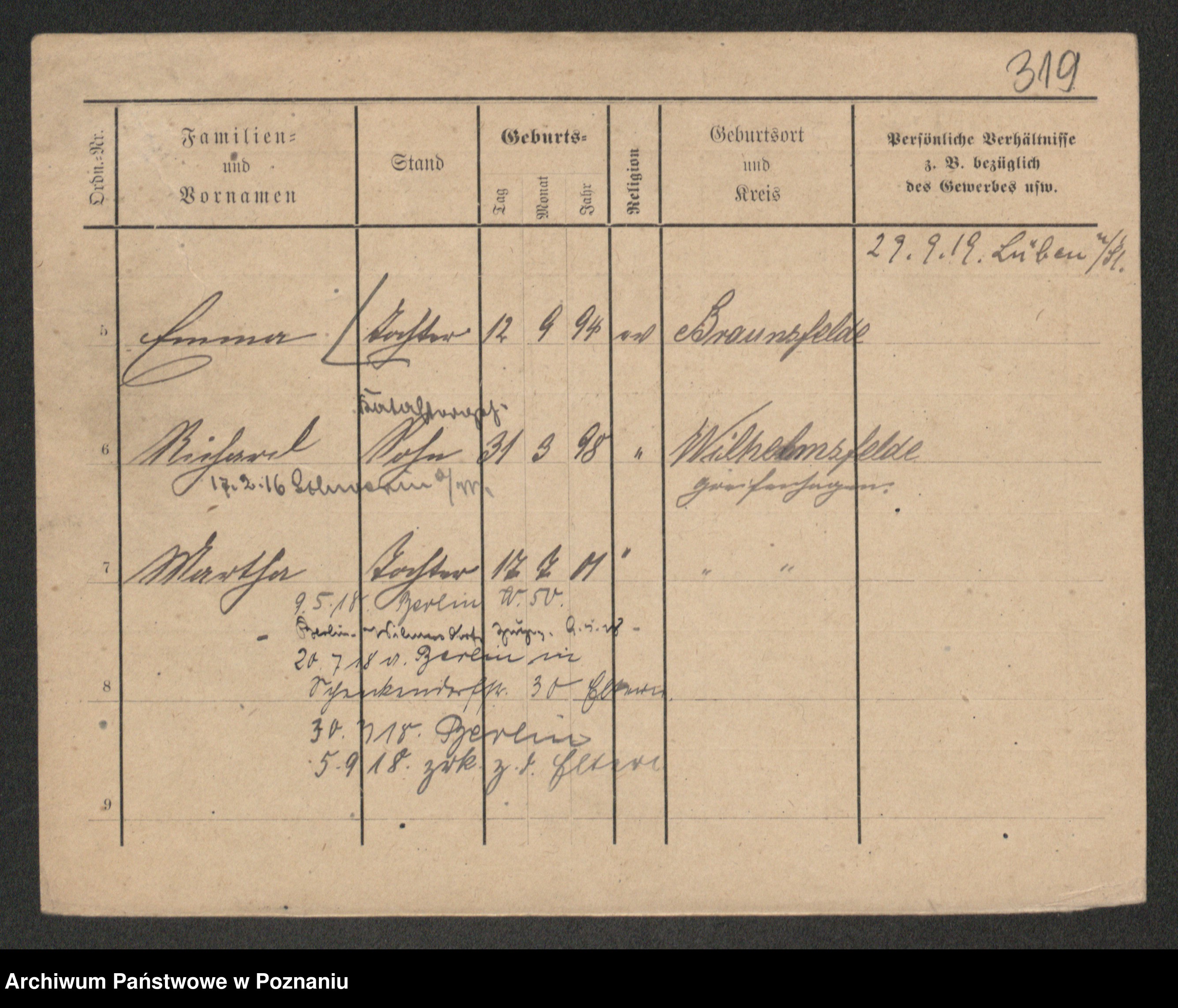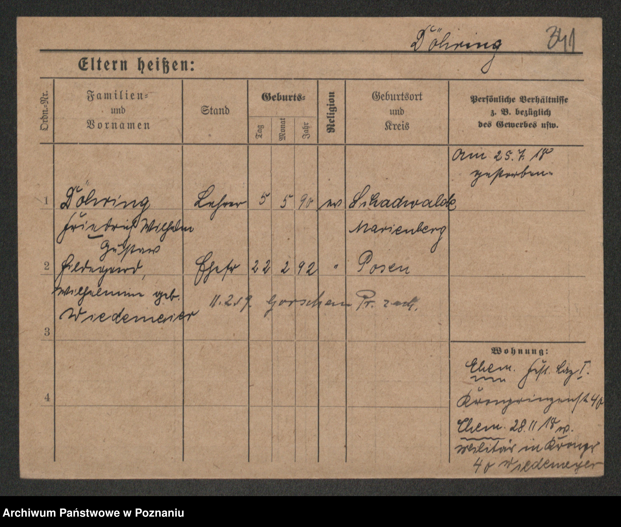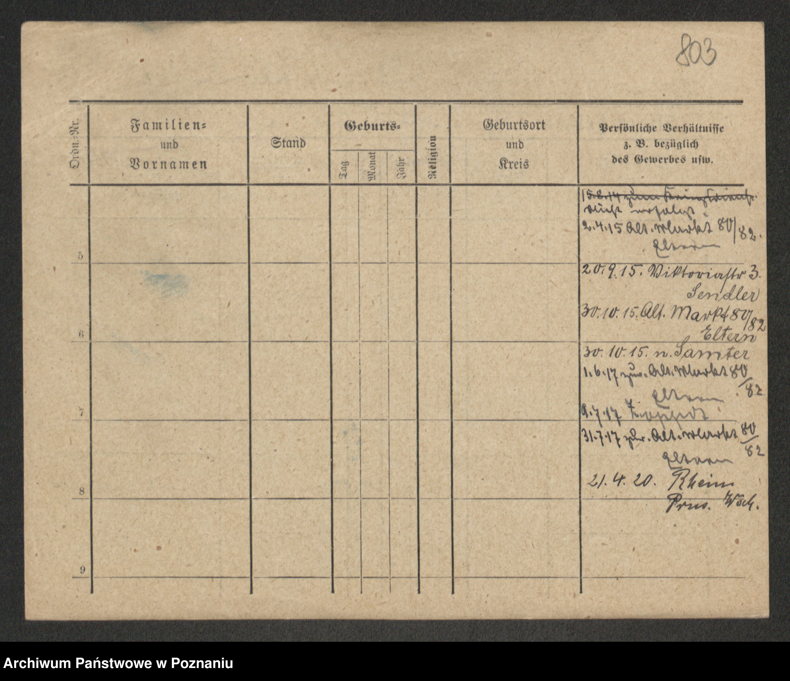 Podgląd karty osobowej dostępny jest po kliknięciu na nazwisko lub ikonkę karty. Można dokonywać powiększenia (ikony na górze) lub przechodzić między kolejnymi skanami (strzałki po bokach).