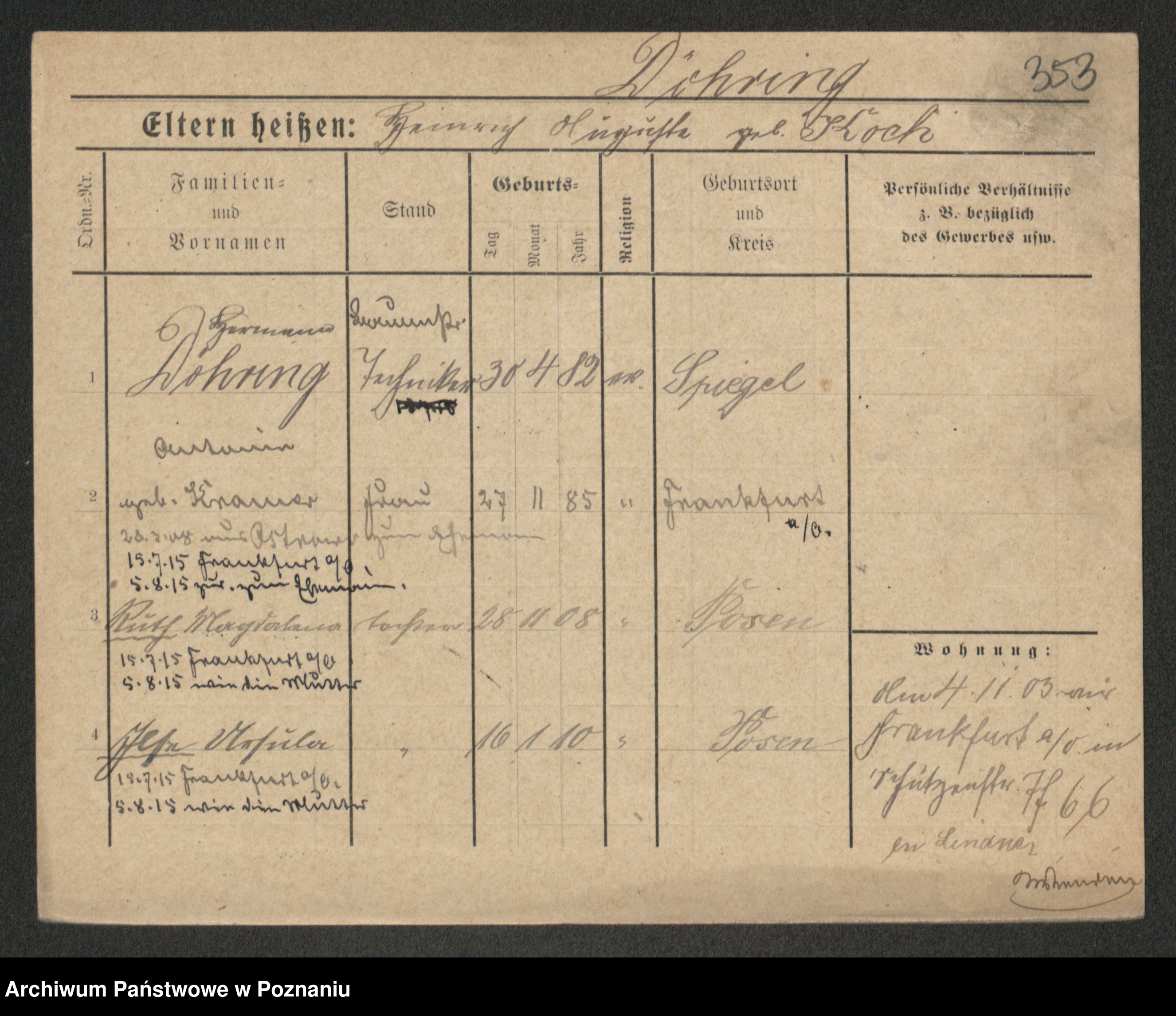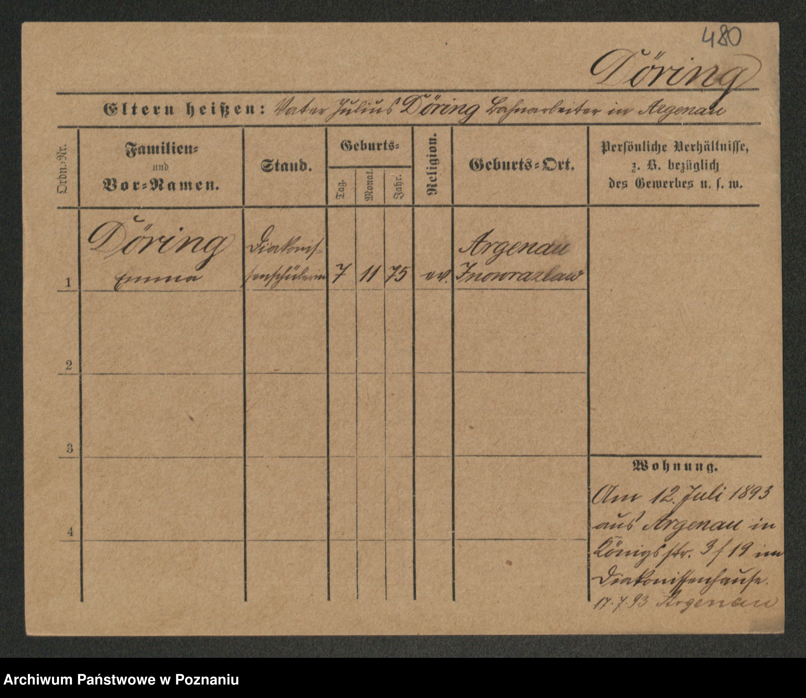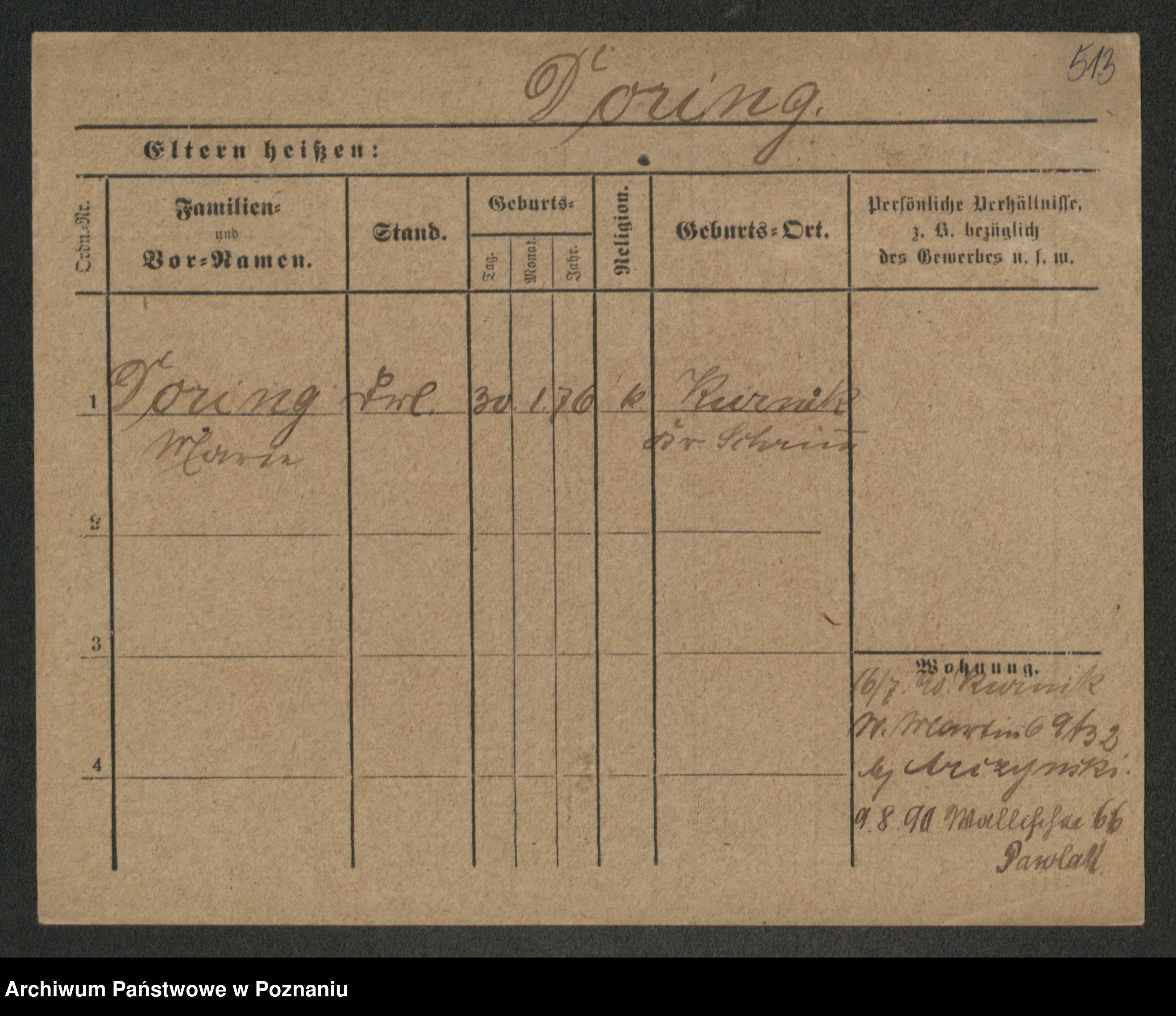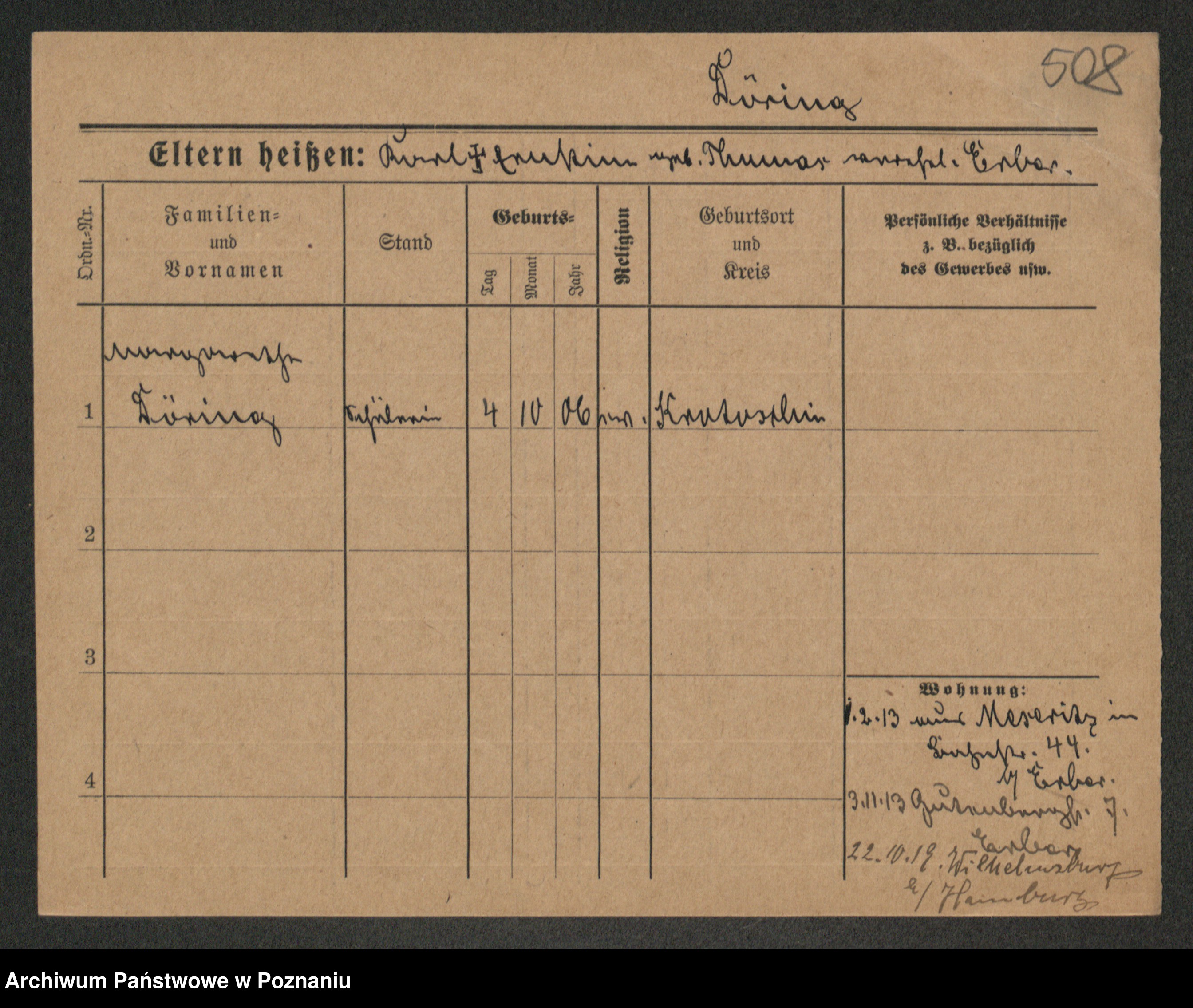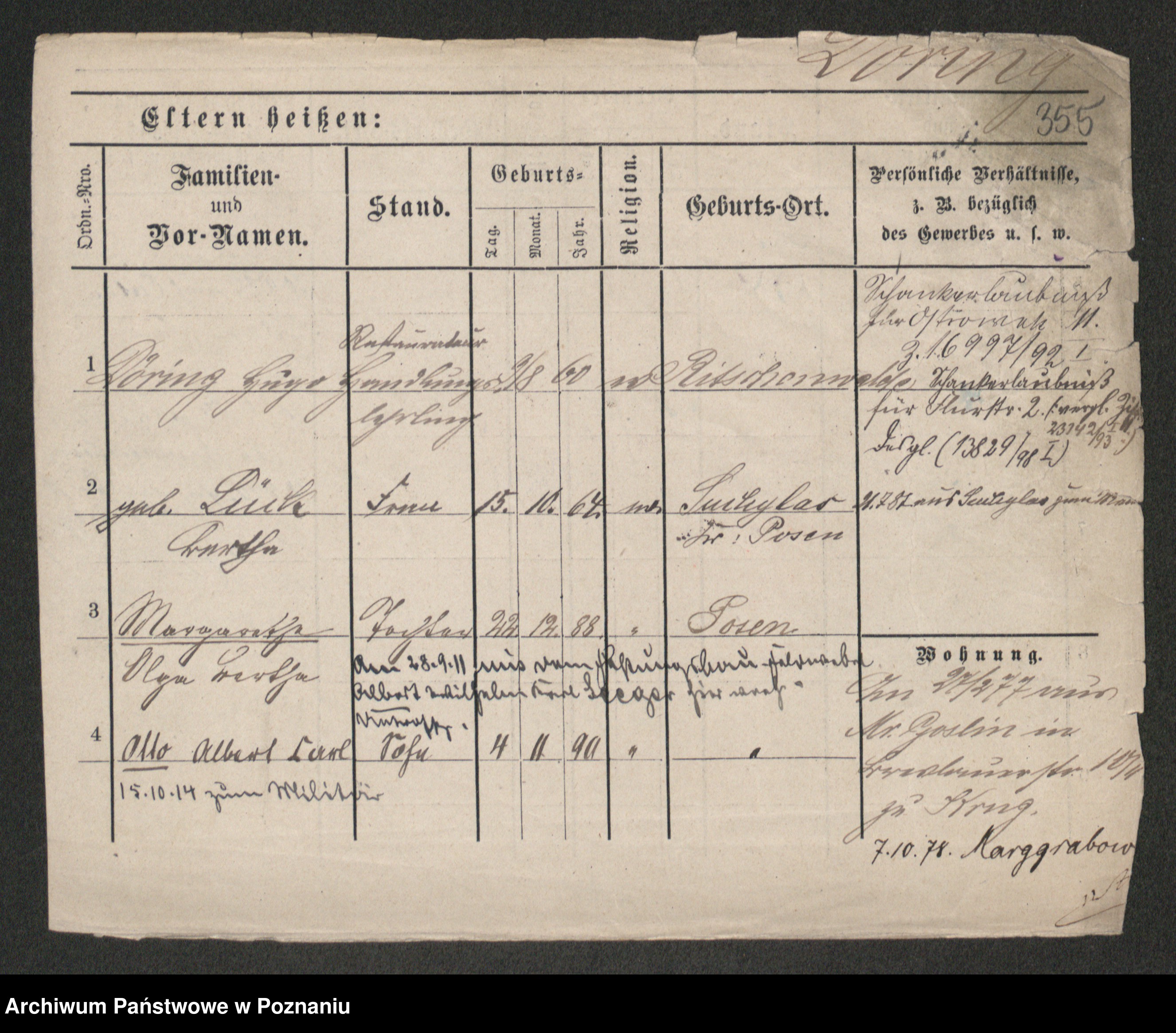 Podgląd karty osobowej dostępny jest po kliknięciu na nazwisko lub ikonkę karty. Można dokonywać powiększenia (ikony na górze) lub przechodzić między kolejnymi skanami (strzałki po bokach).