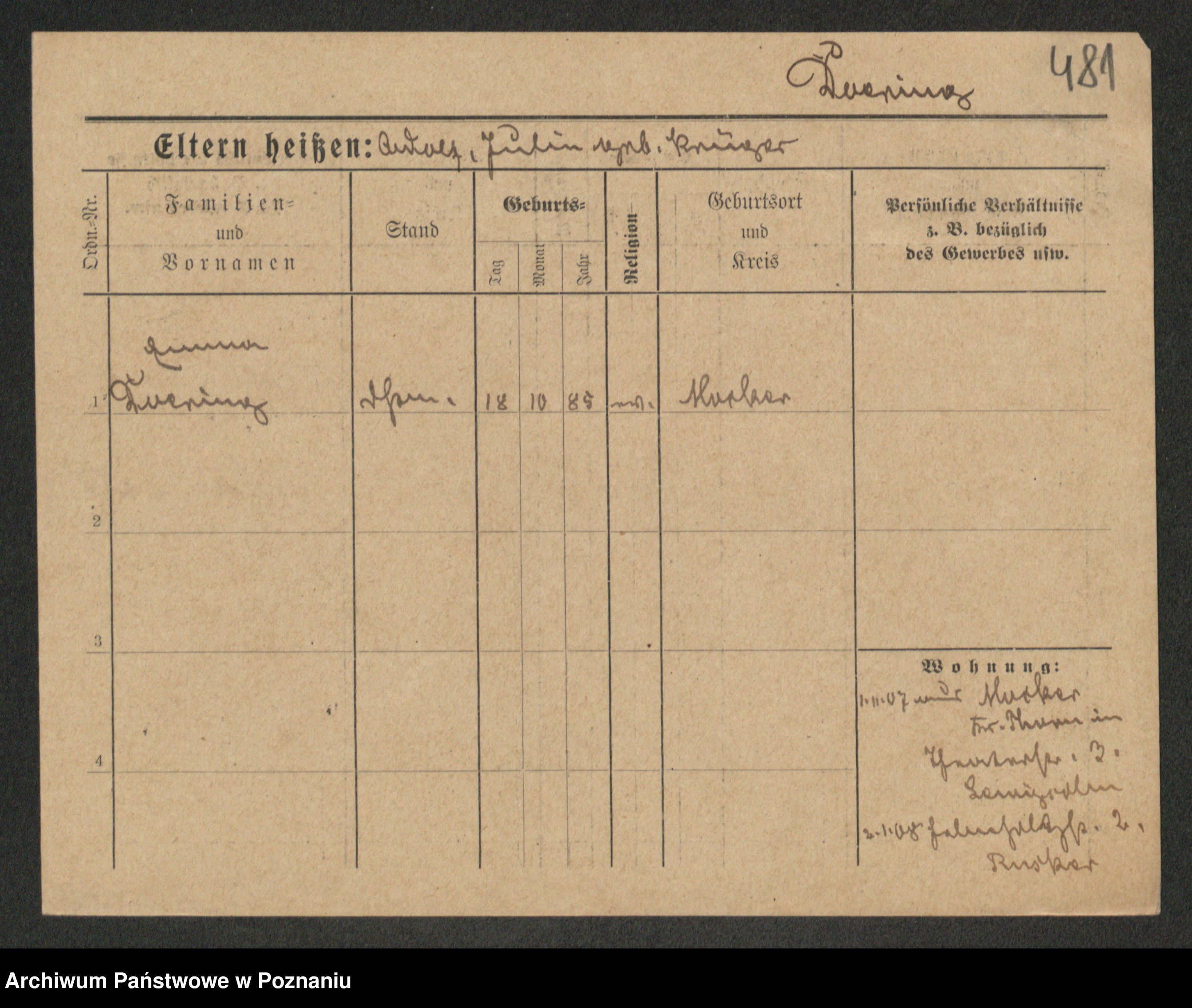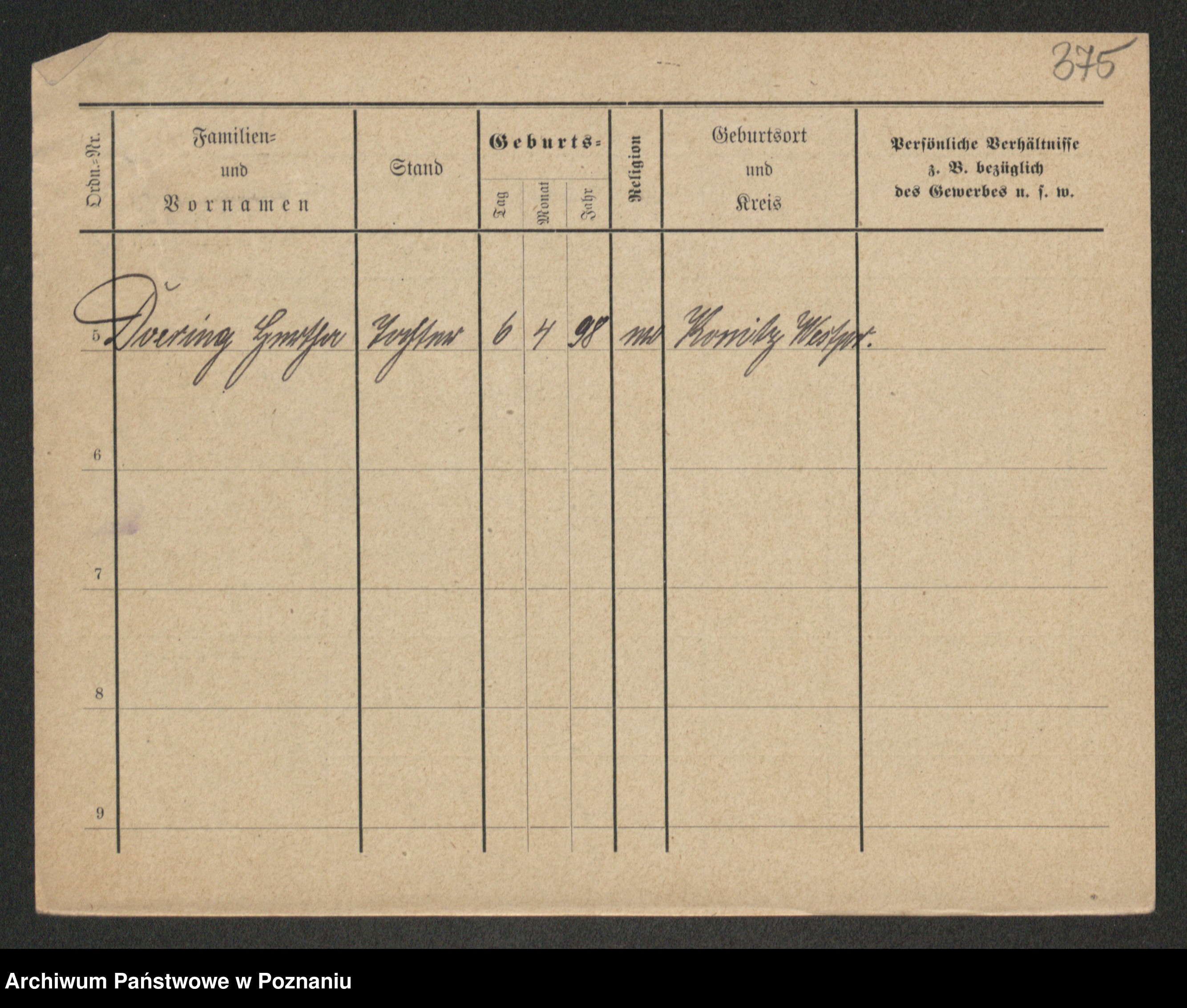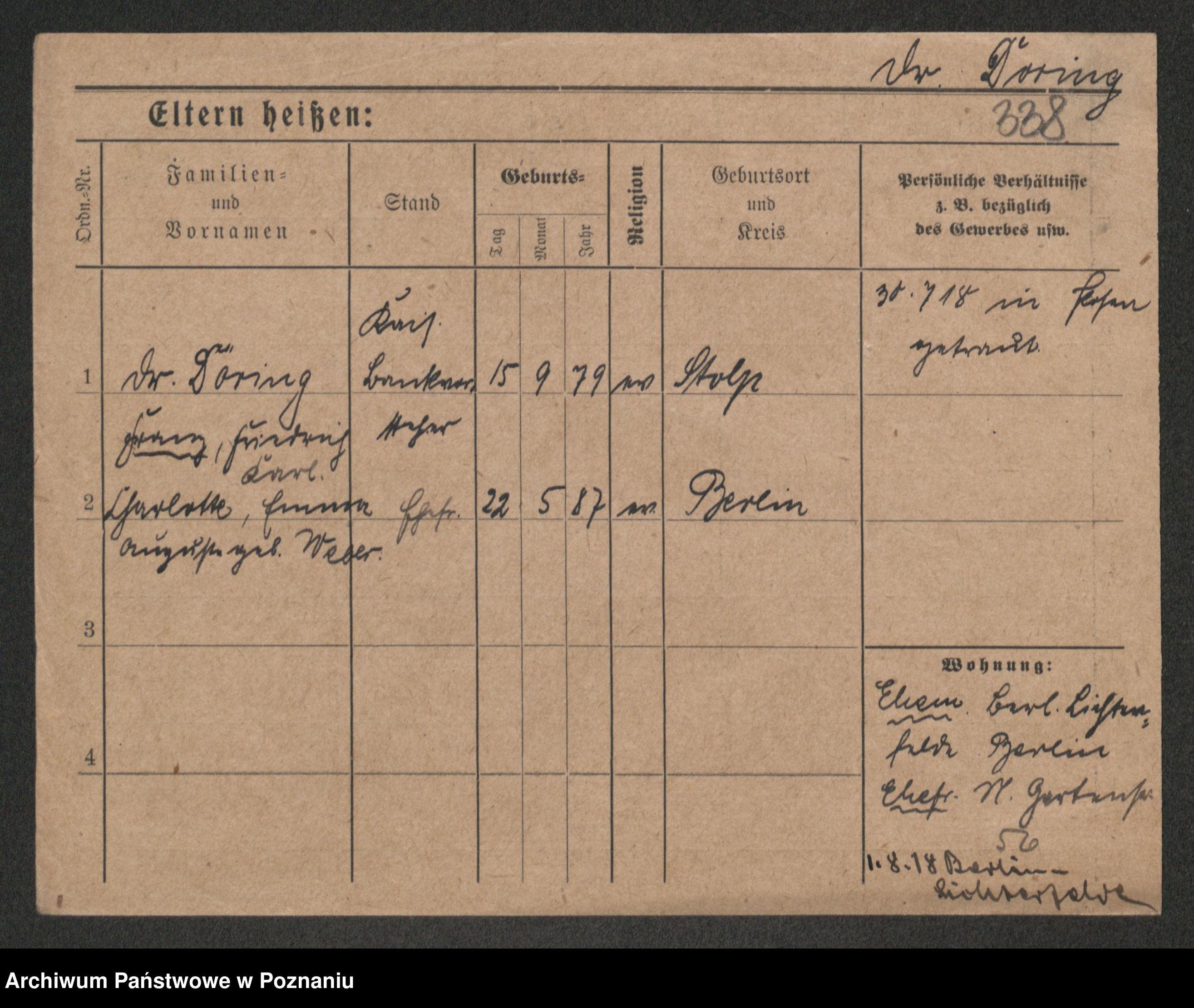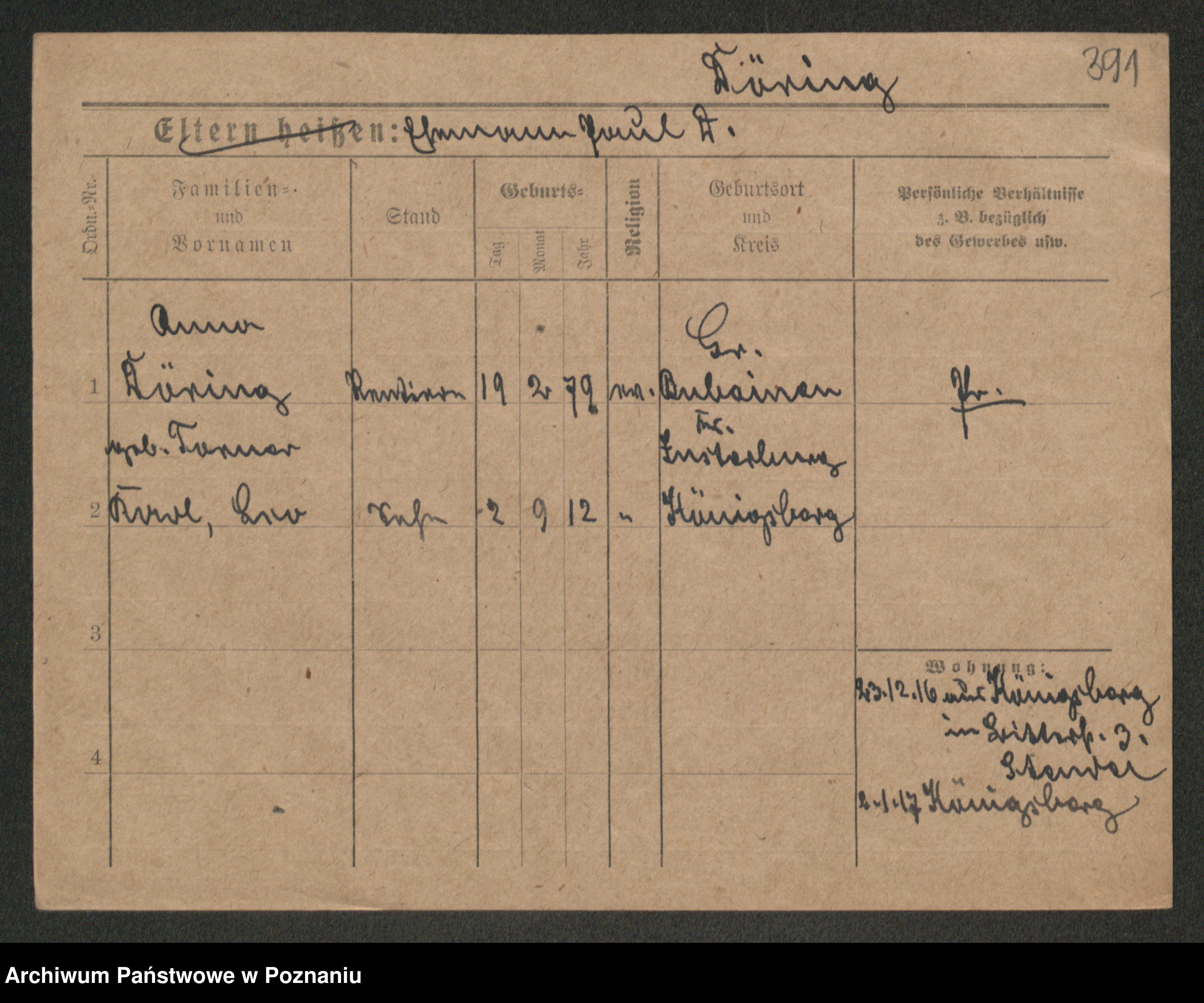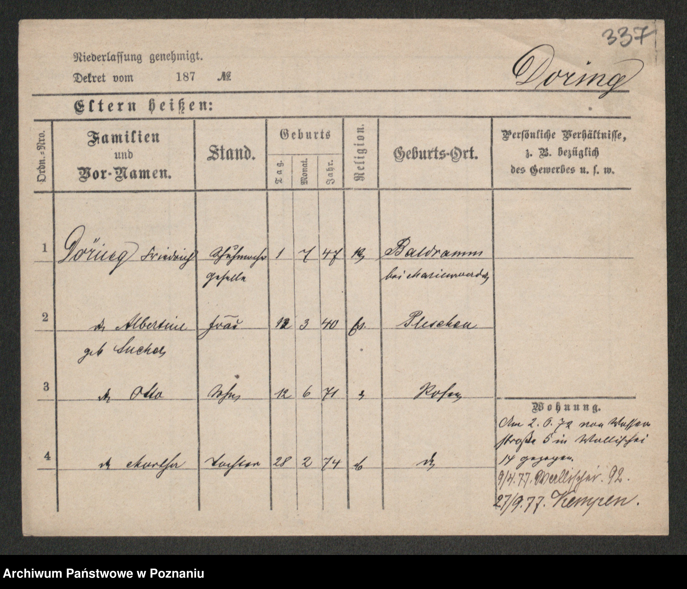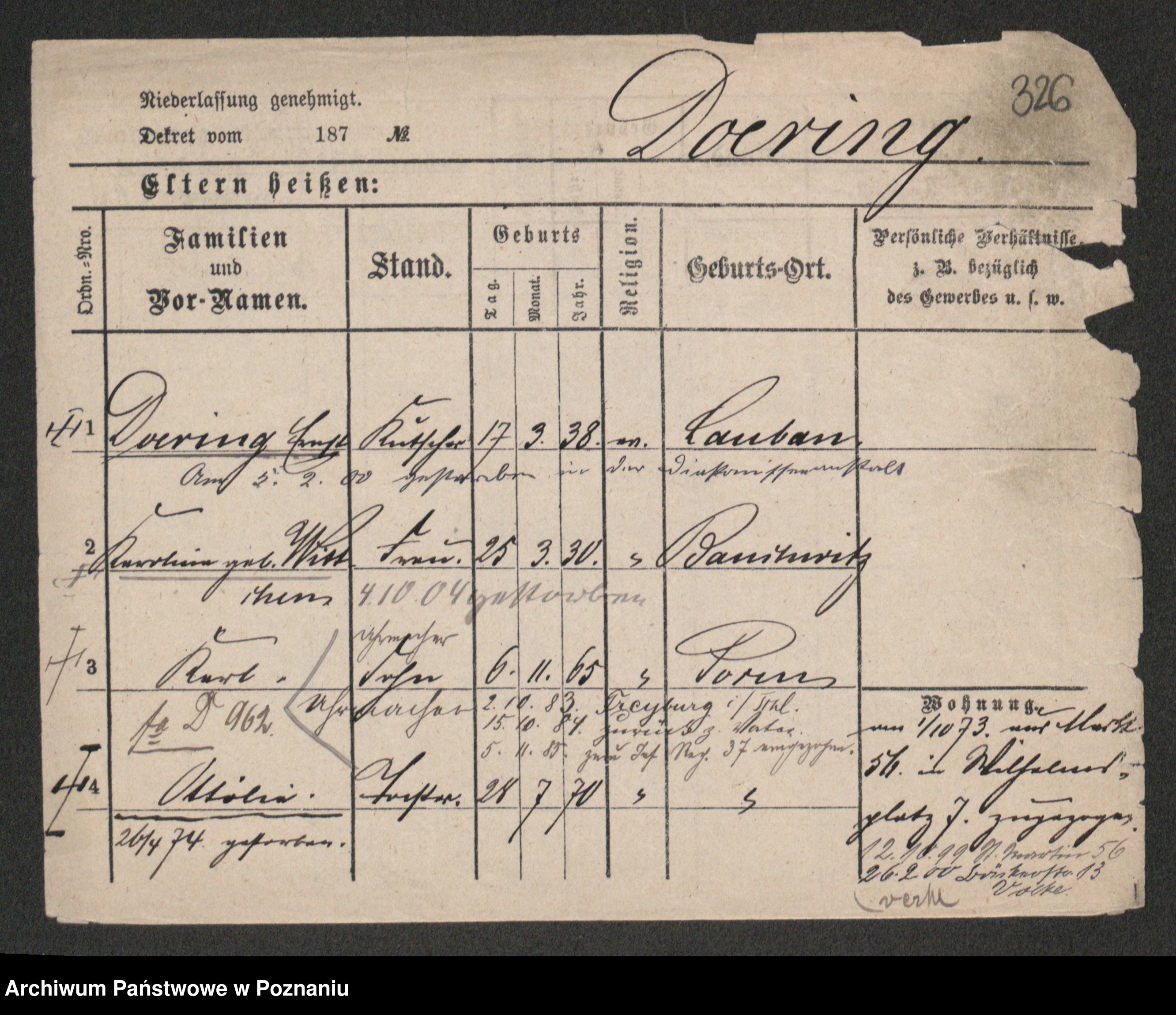 Podgląd karty osobowej dostępny jest po kliknięciu na nazwisko lub ikonkę karty. Można dokonywać powiększenia (ikony na górze) lub przechodzić między kolejnymi skanami (strzałki po bokach).