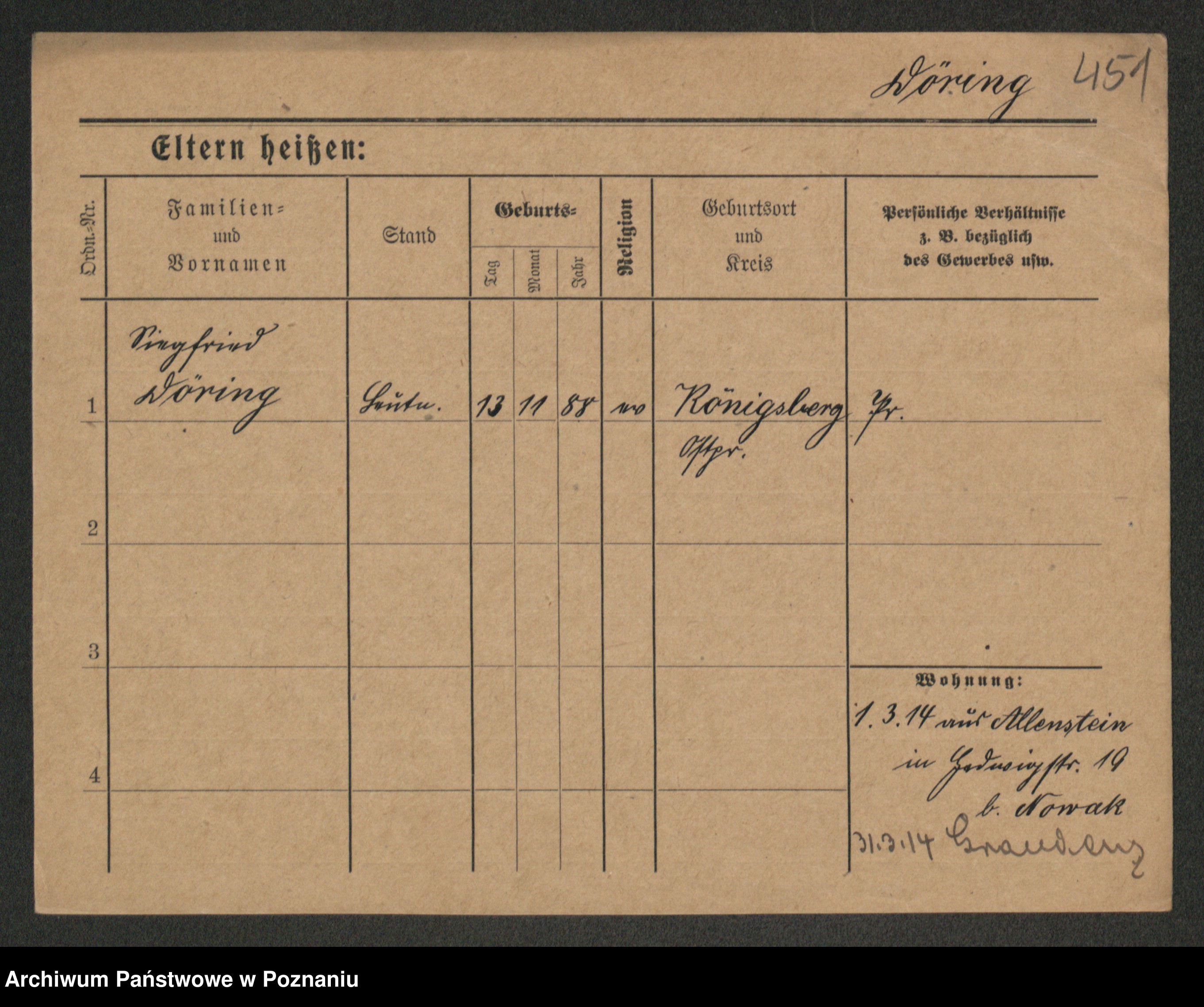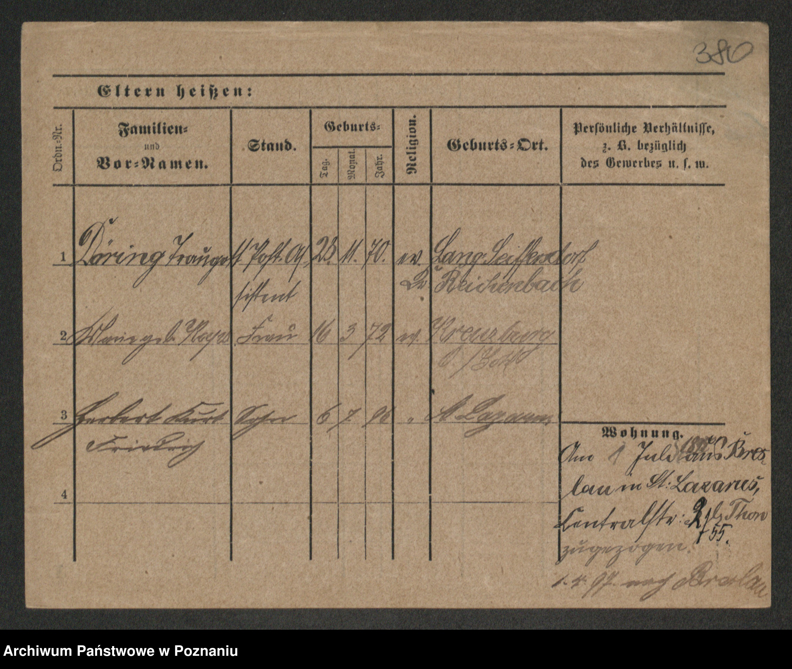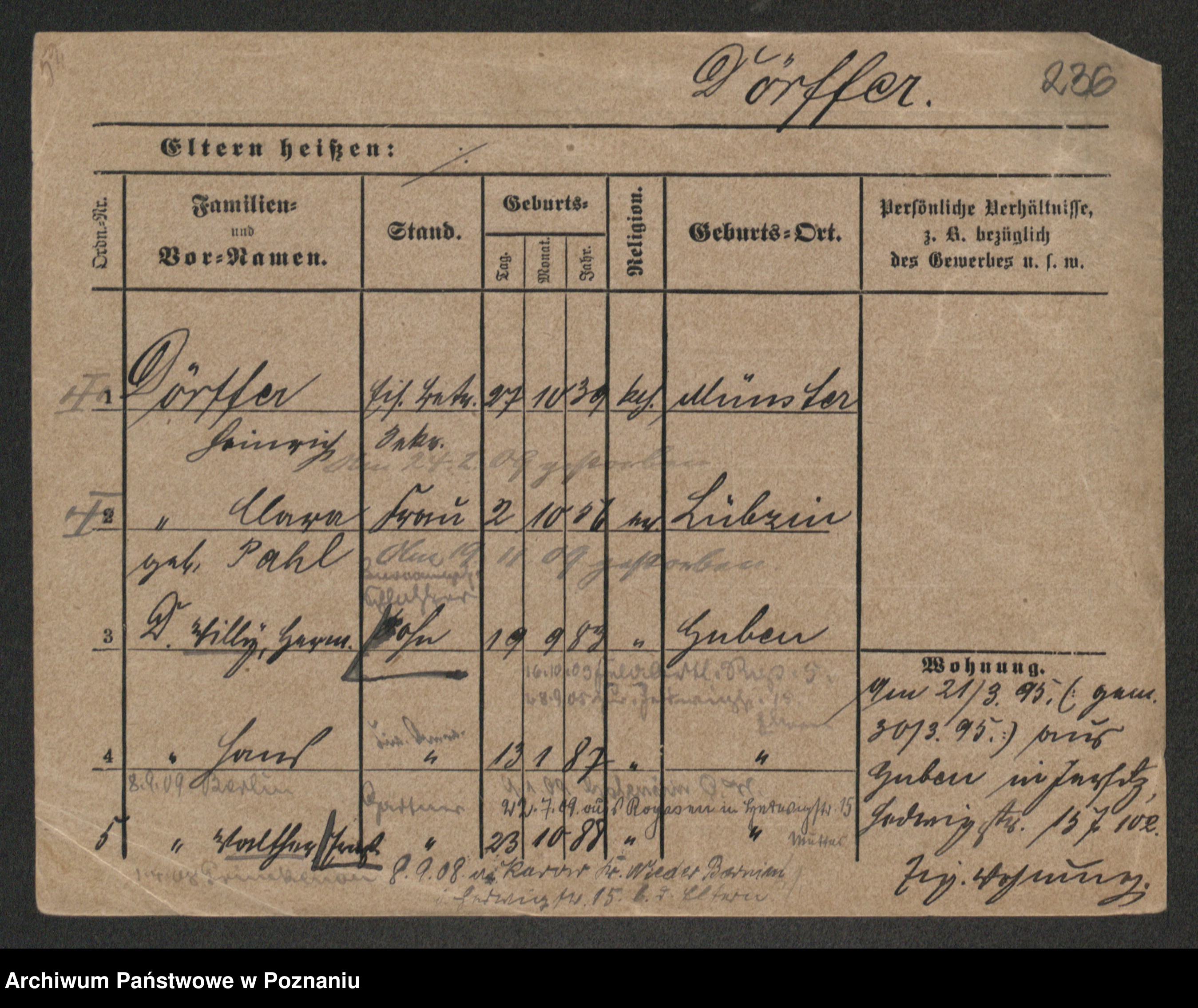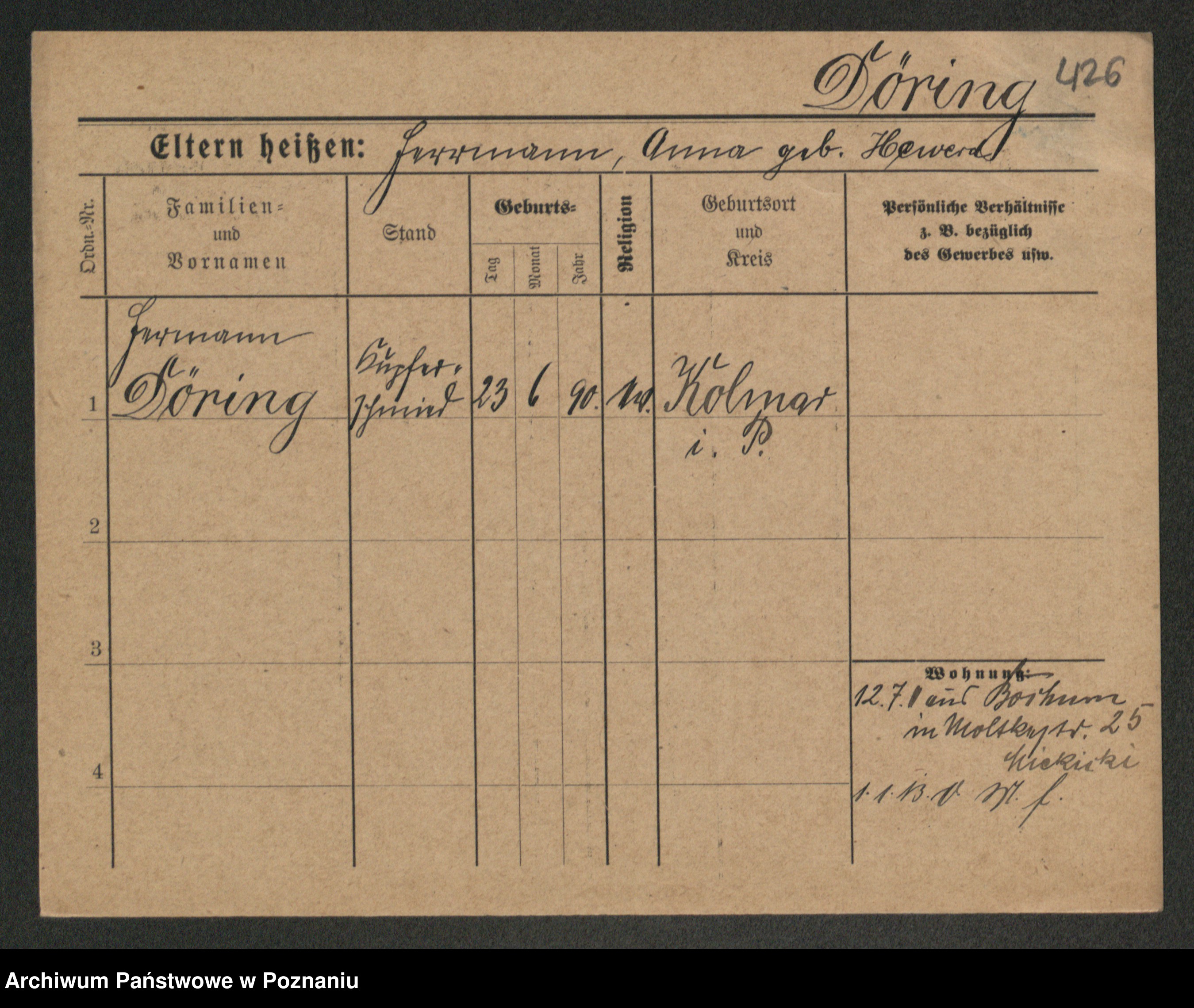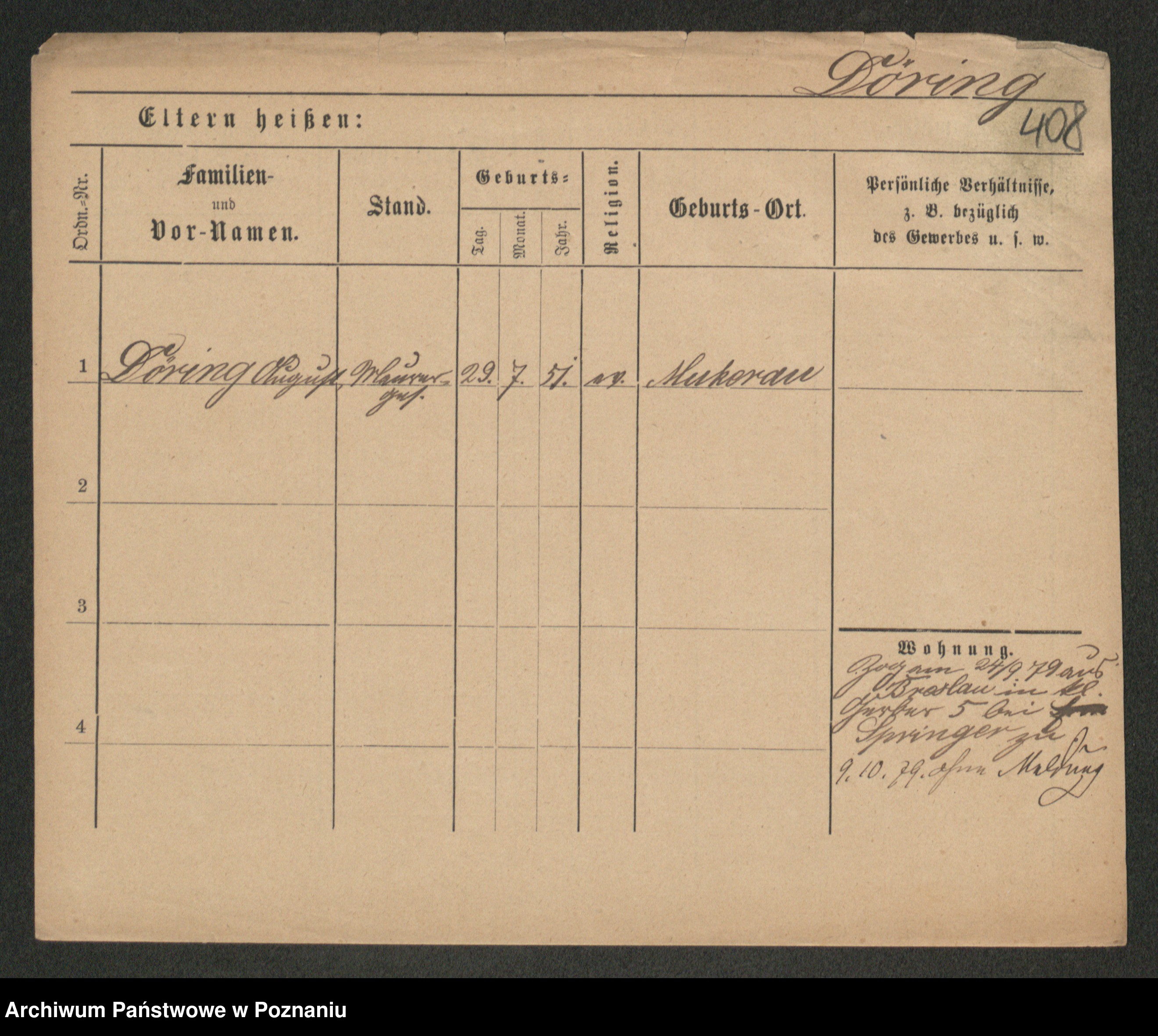 Podgląd karty osobowej dostępny jest po kliknięciu na nazwisko lub ikonkę karty. Można dokonywać powiększenia (ikony na górze) lub przechodzić między kolejnymi skanami (strzałki po bokach).