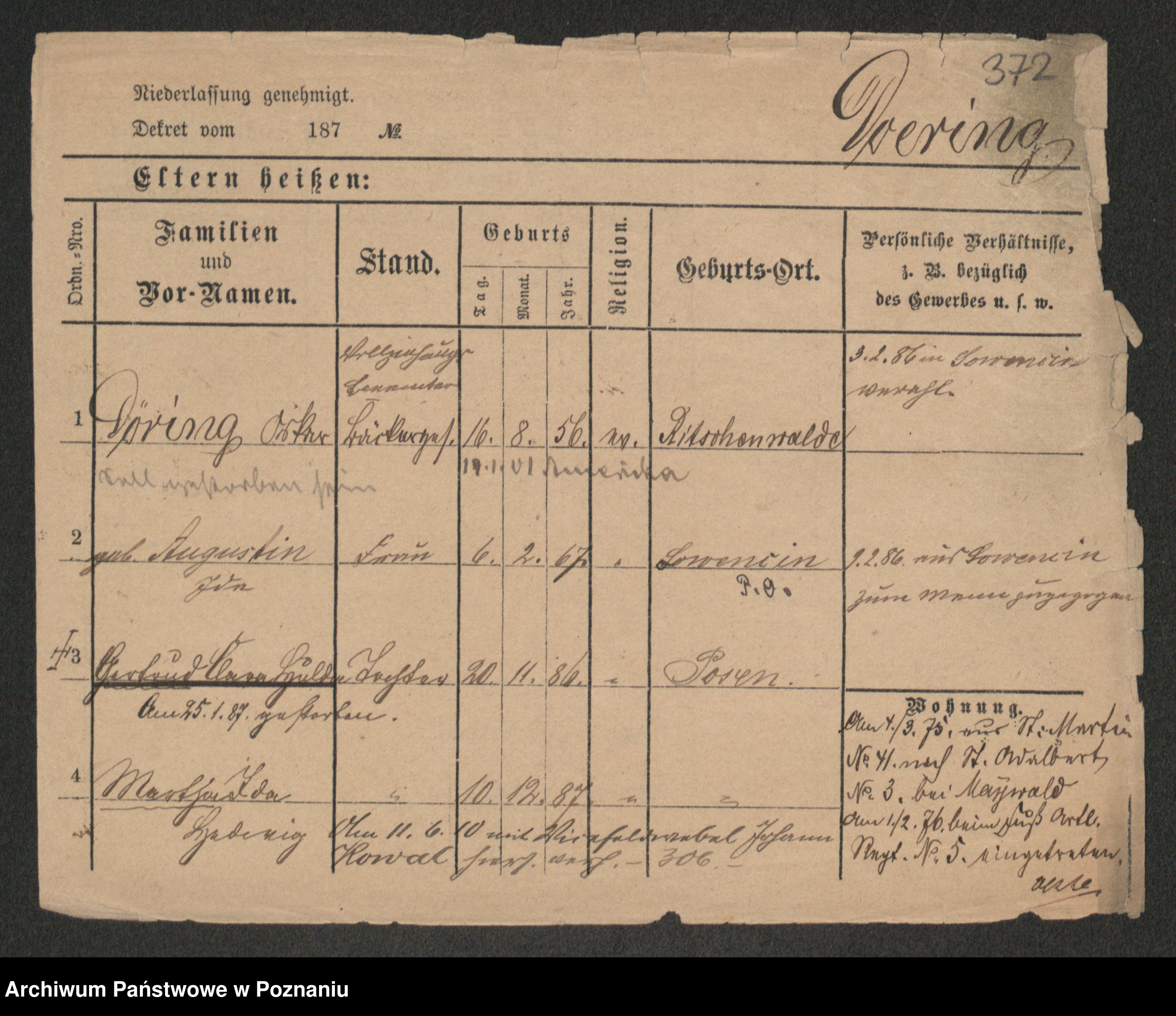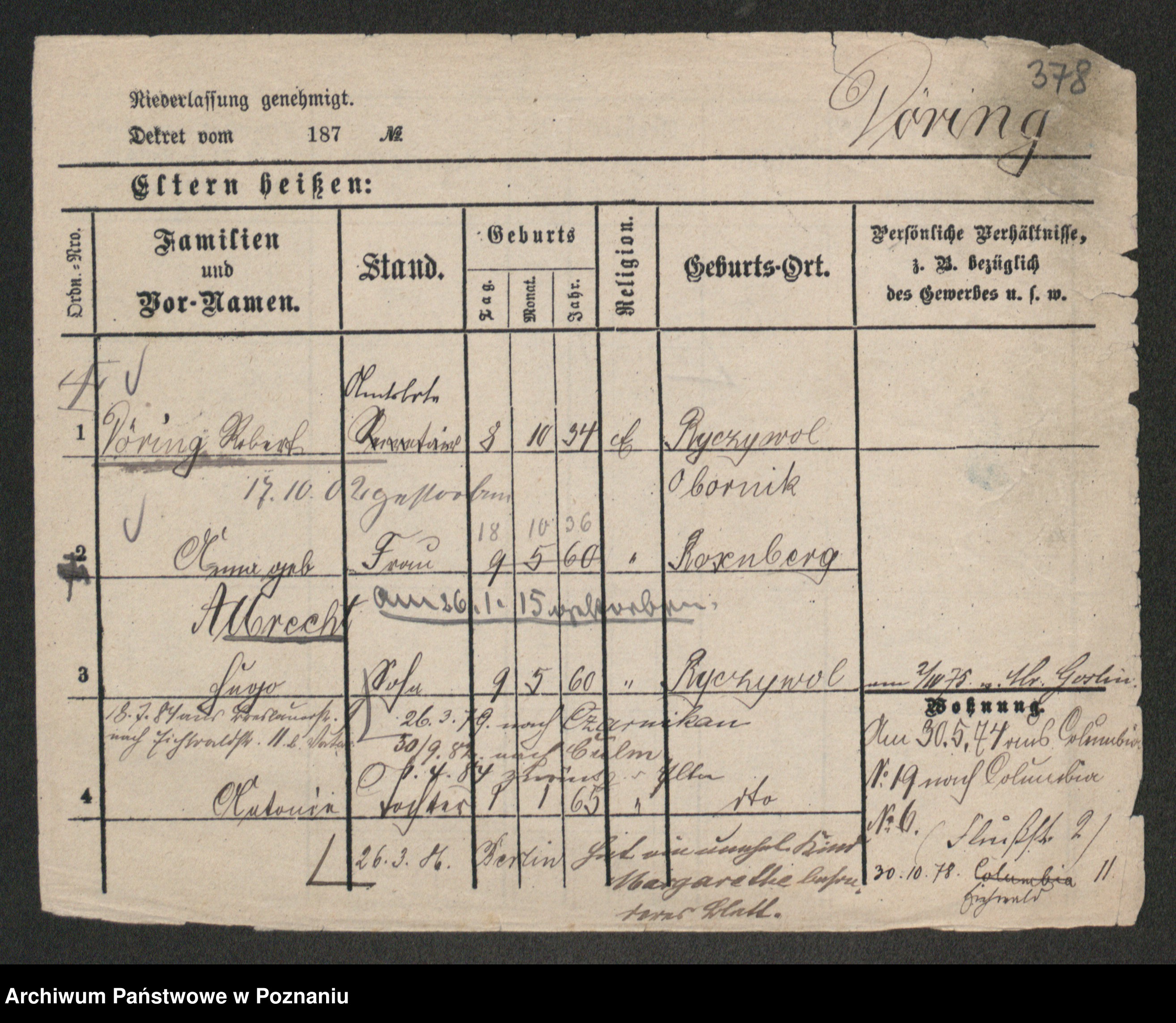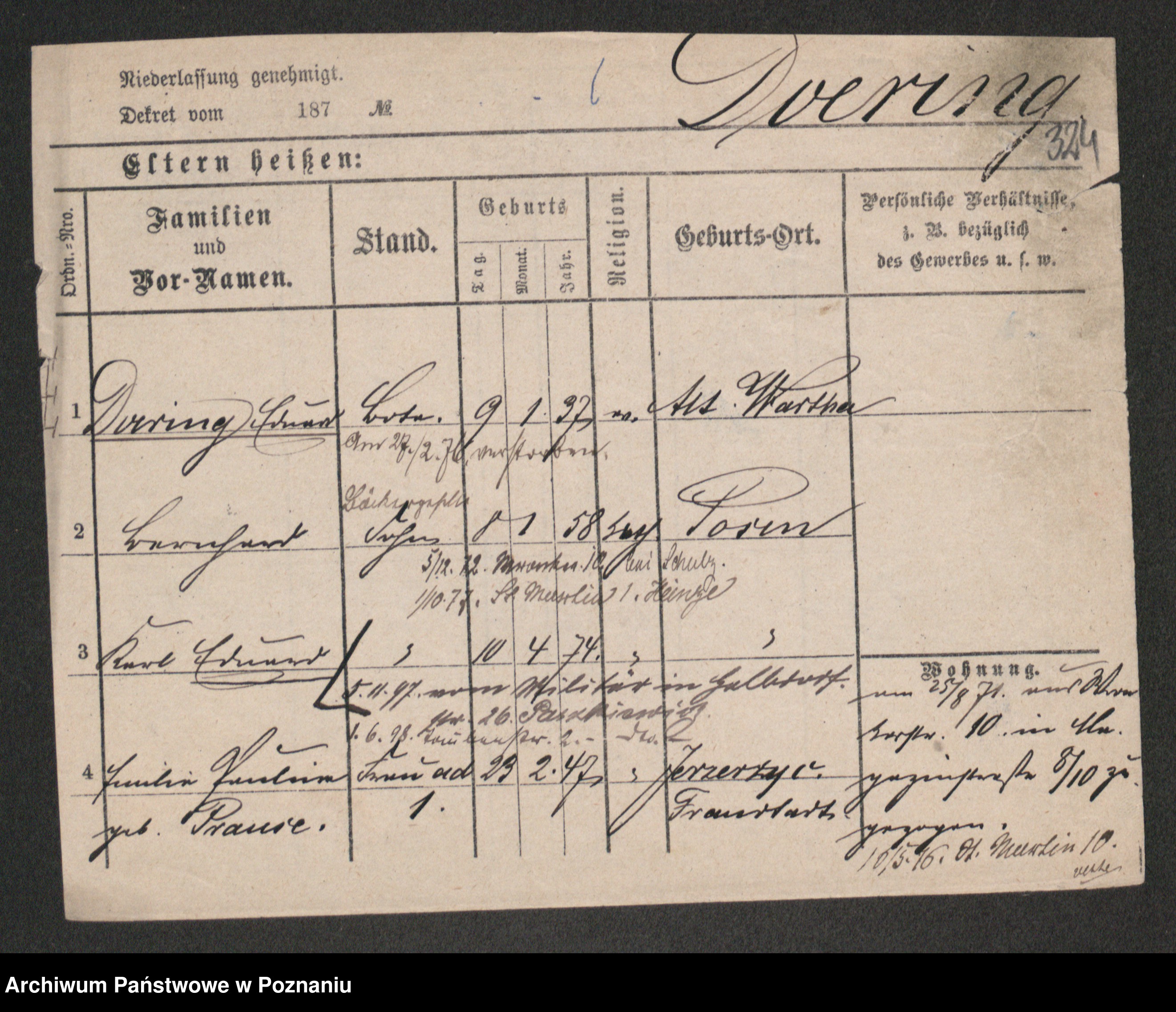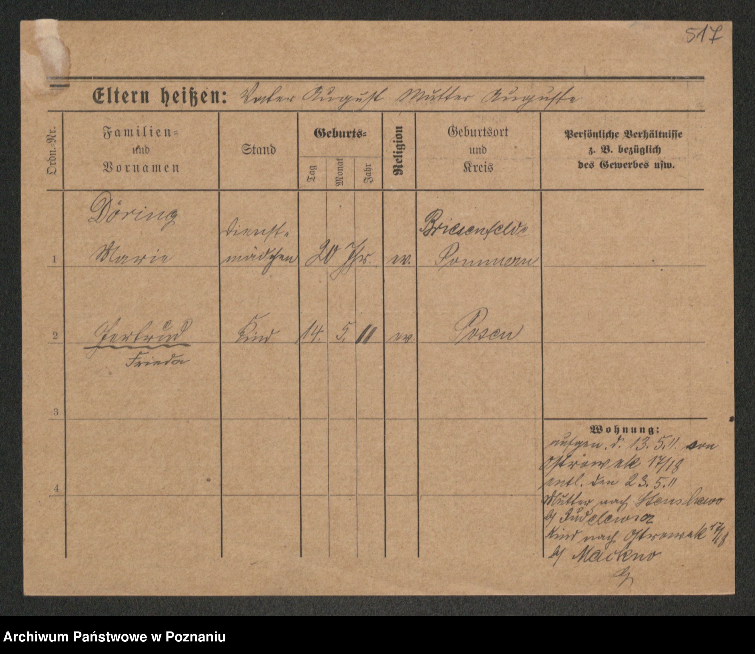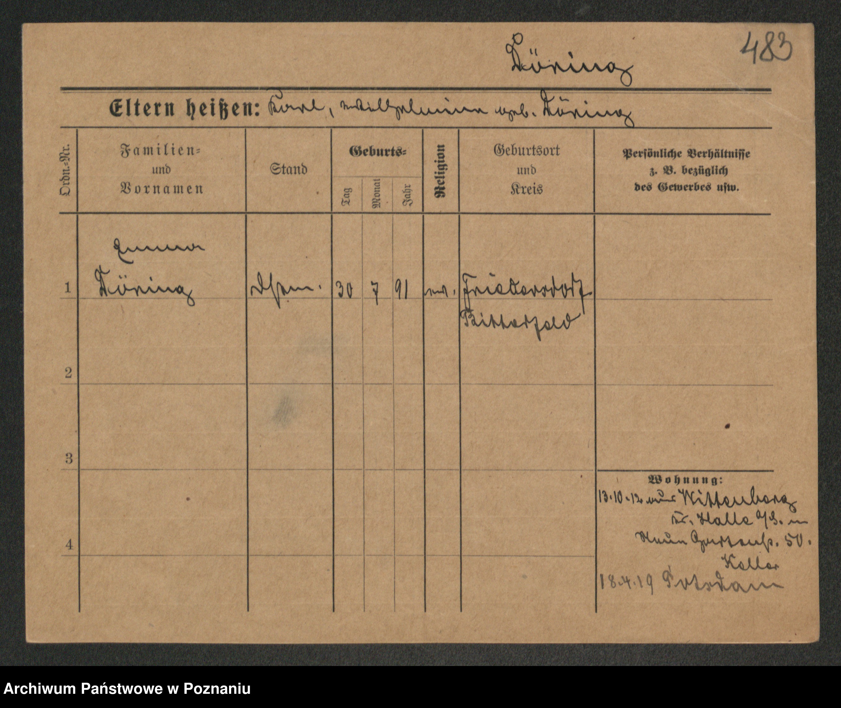 Podgląd karty osobowej dostępny jest po kliknięciu na nazwisko lub ikonkę karty. Można dokonywać powiększenia (ikony na górze) lub przechodzić między kolejnymi skanami (strzałki po bokach).