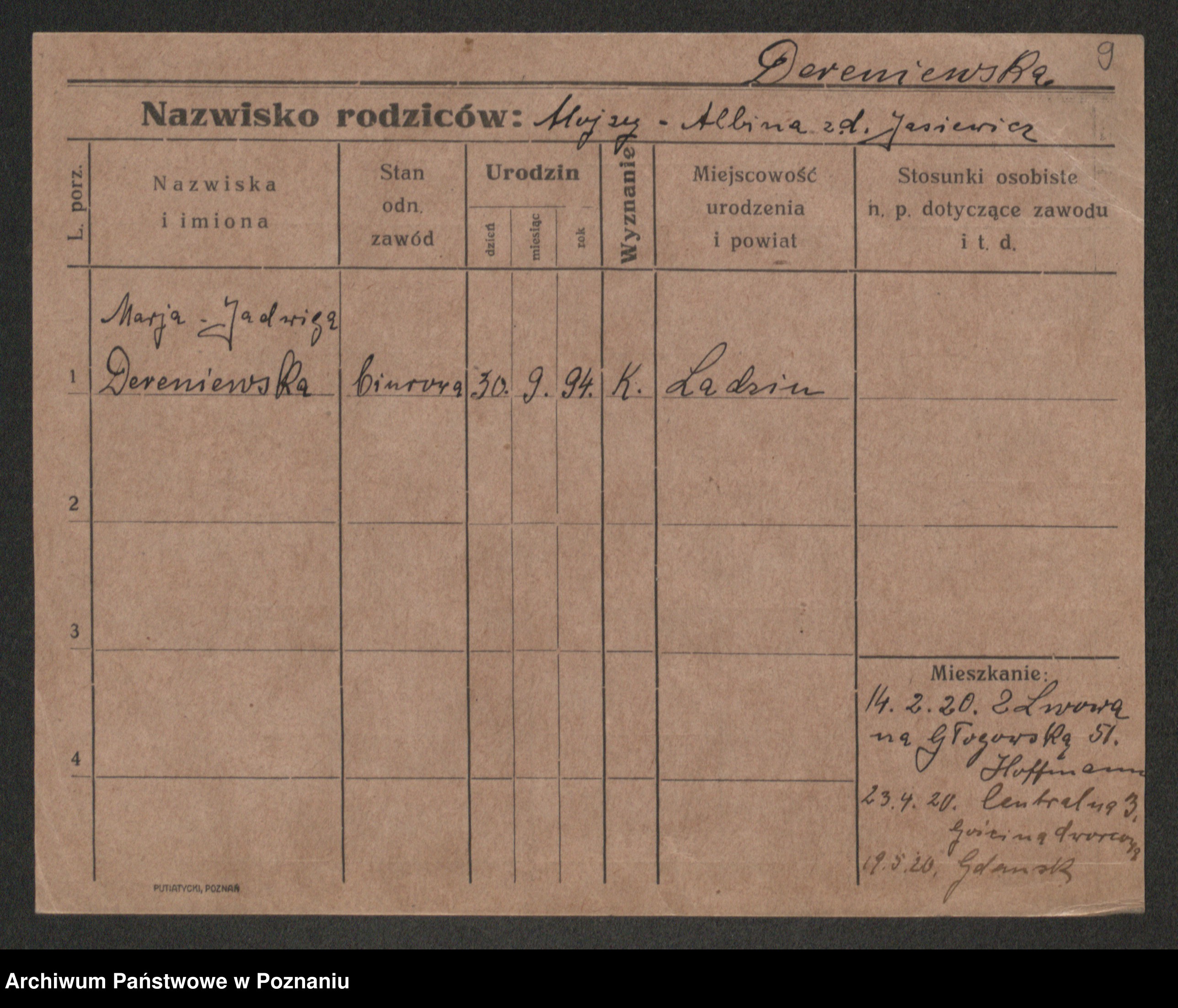 Dereniewska, Marja Jadwiga