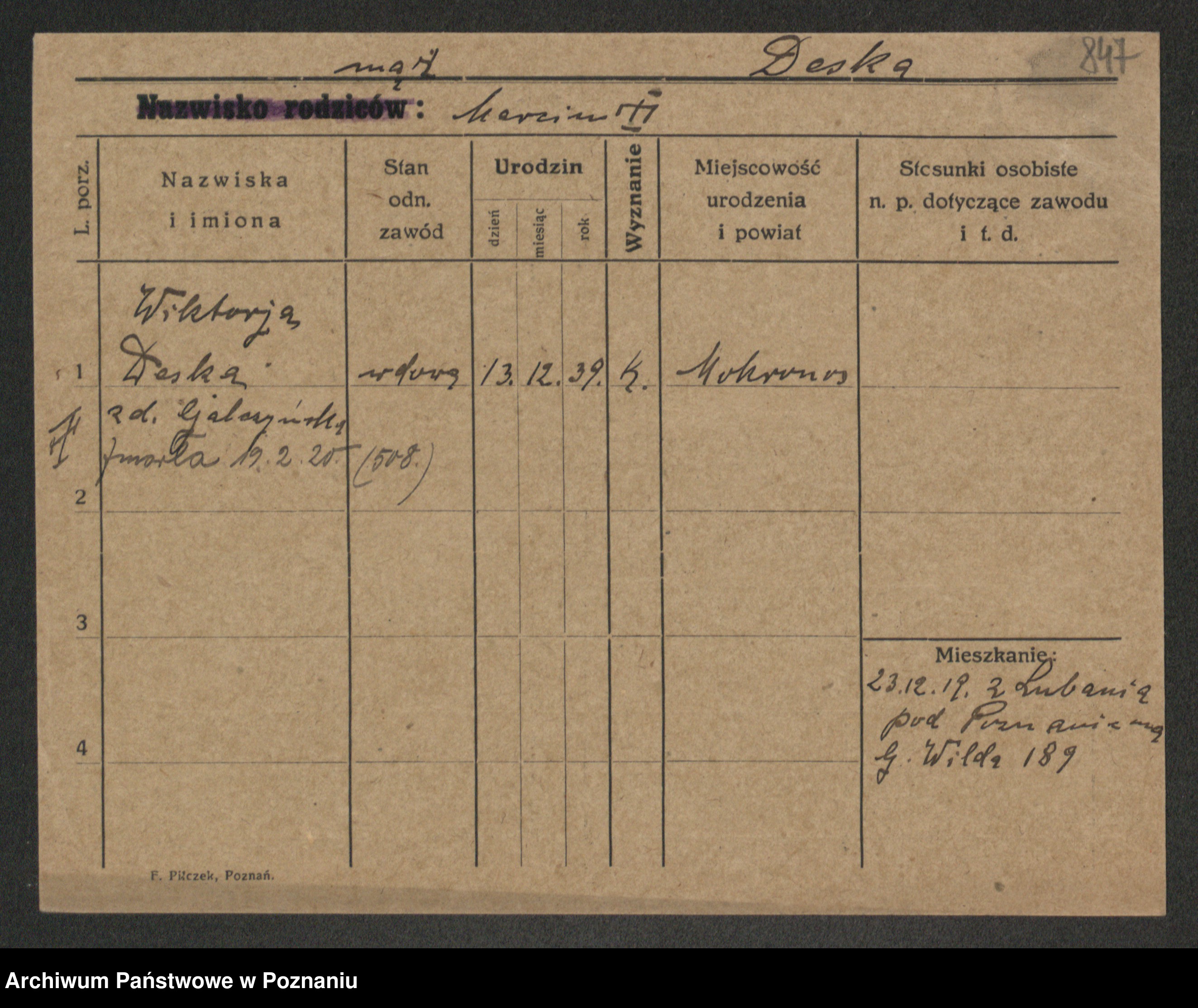 Deszkiewicz z d. Rożanowski, Zofja