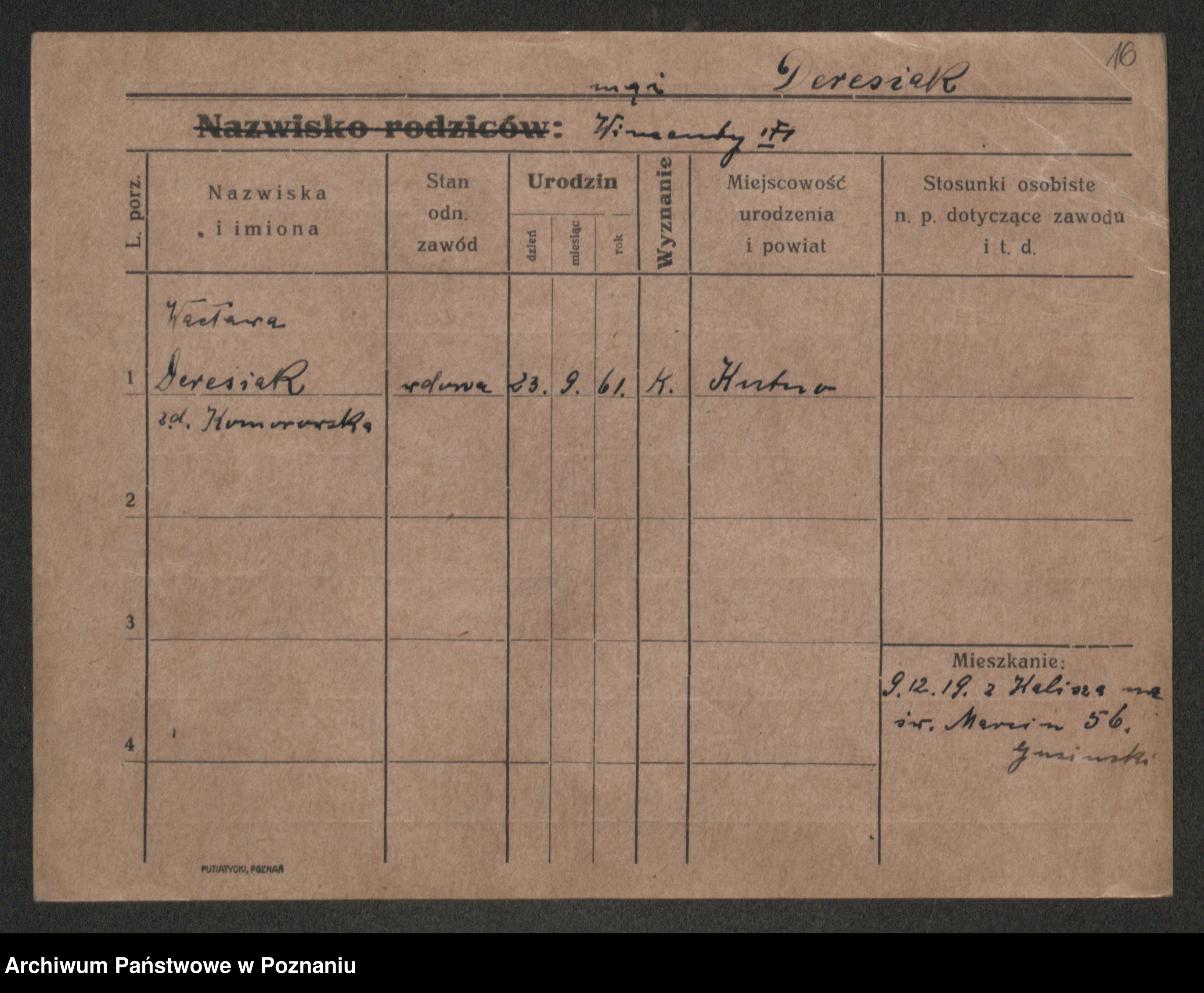 Deresiak z d. Komorowska, Wacława