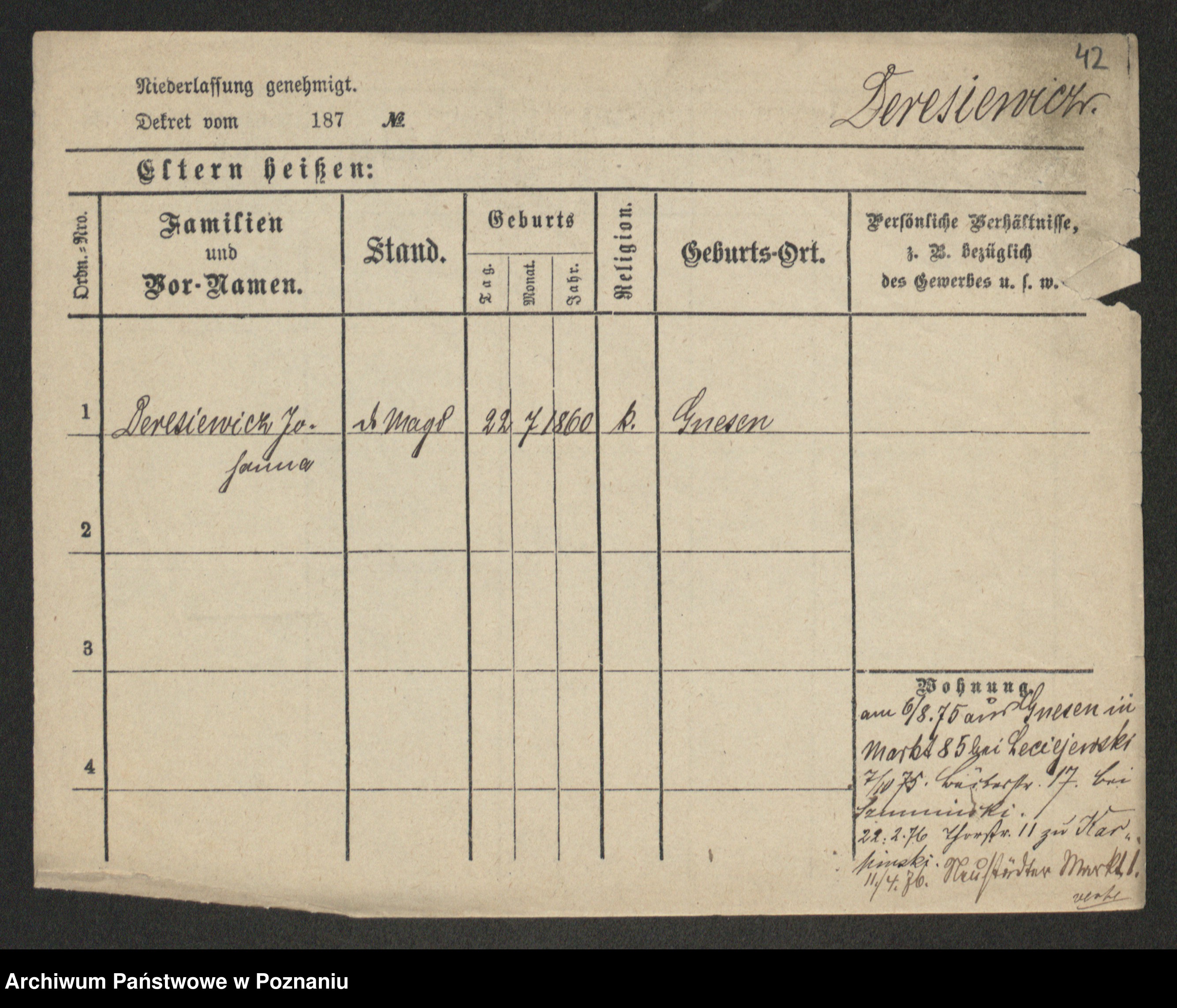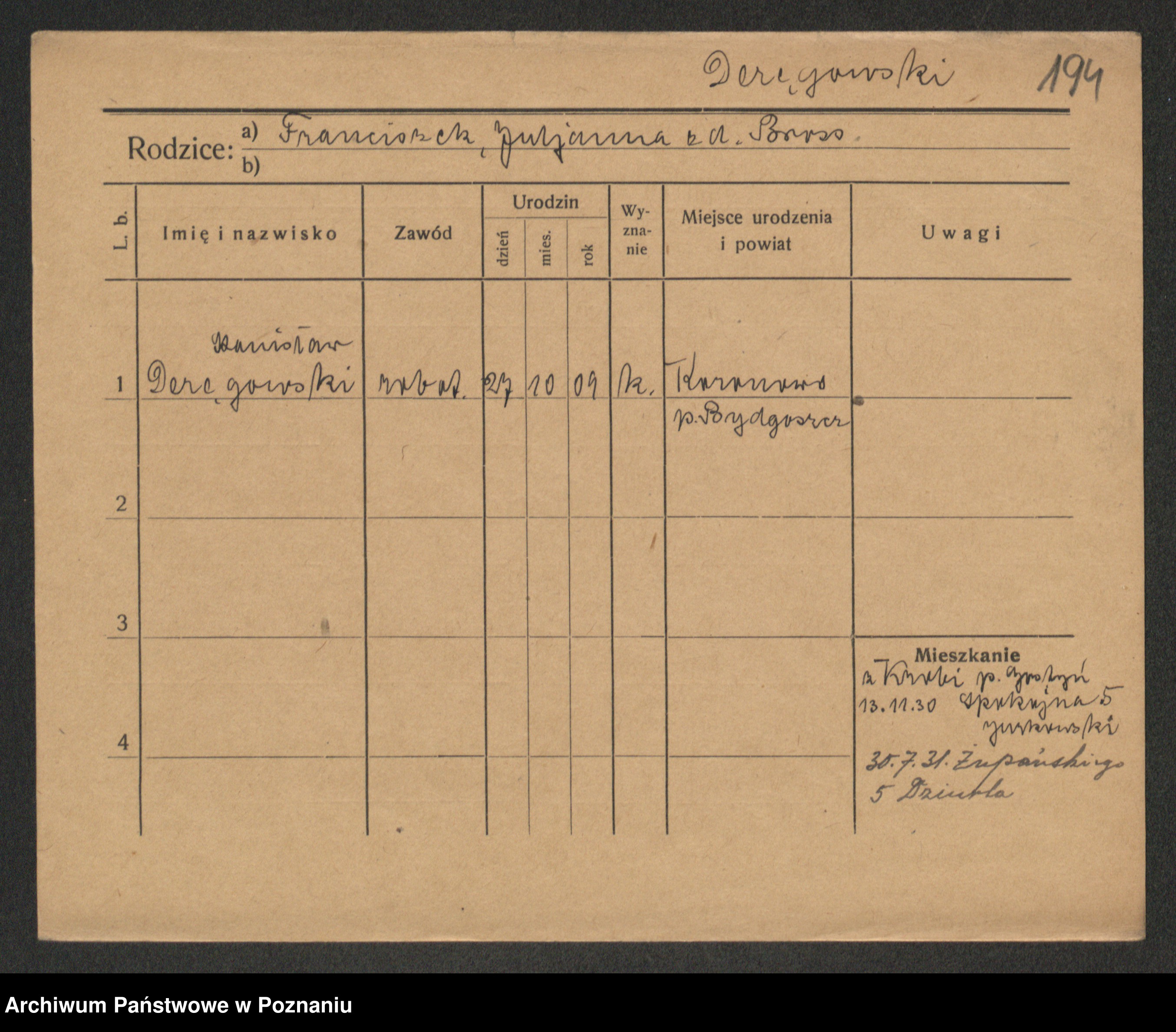 Dereszynski z d. Kaczmarek, Agnes
