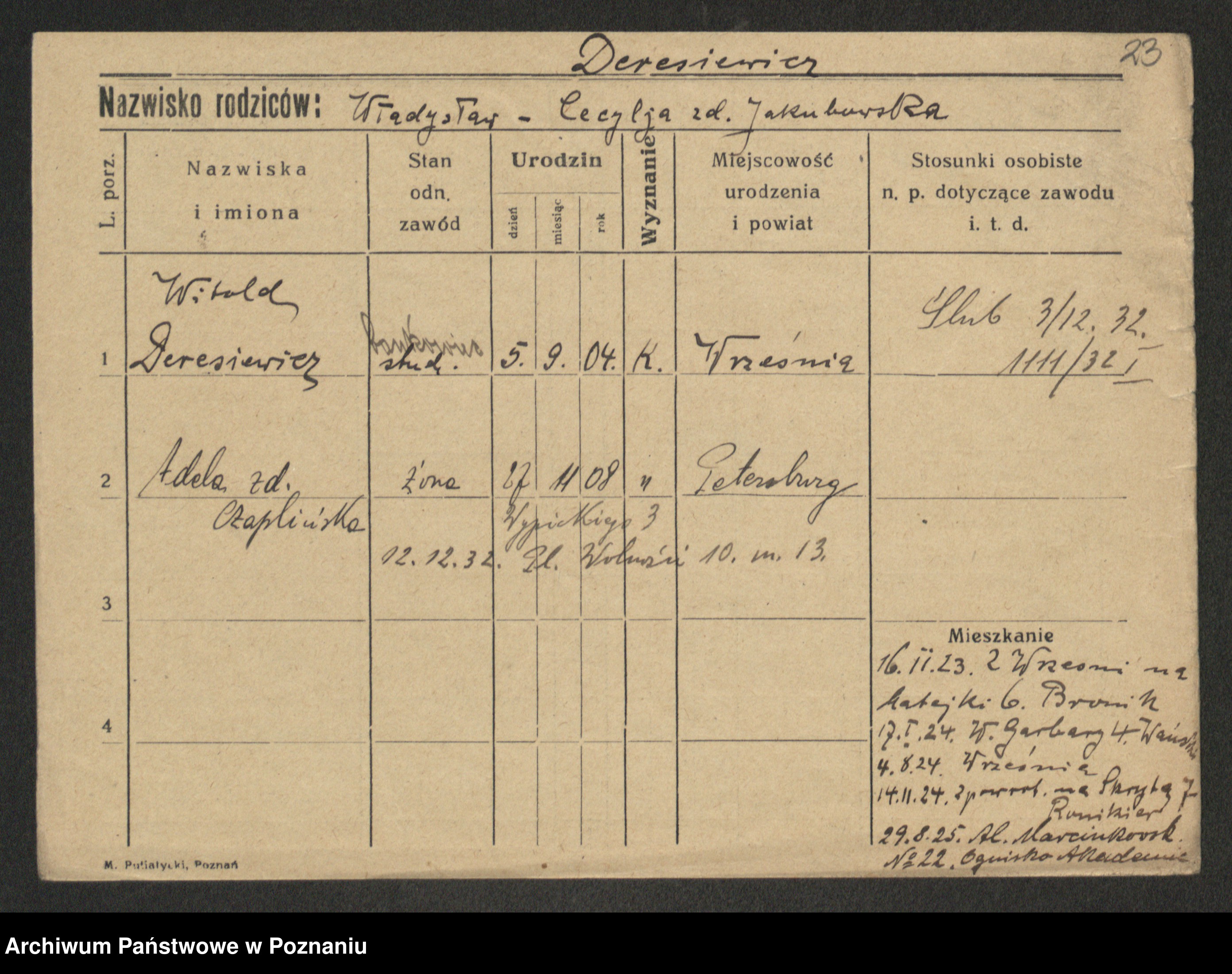 Deresiewicz z d. Czaplińśka, Adela