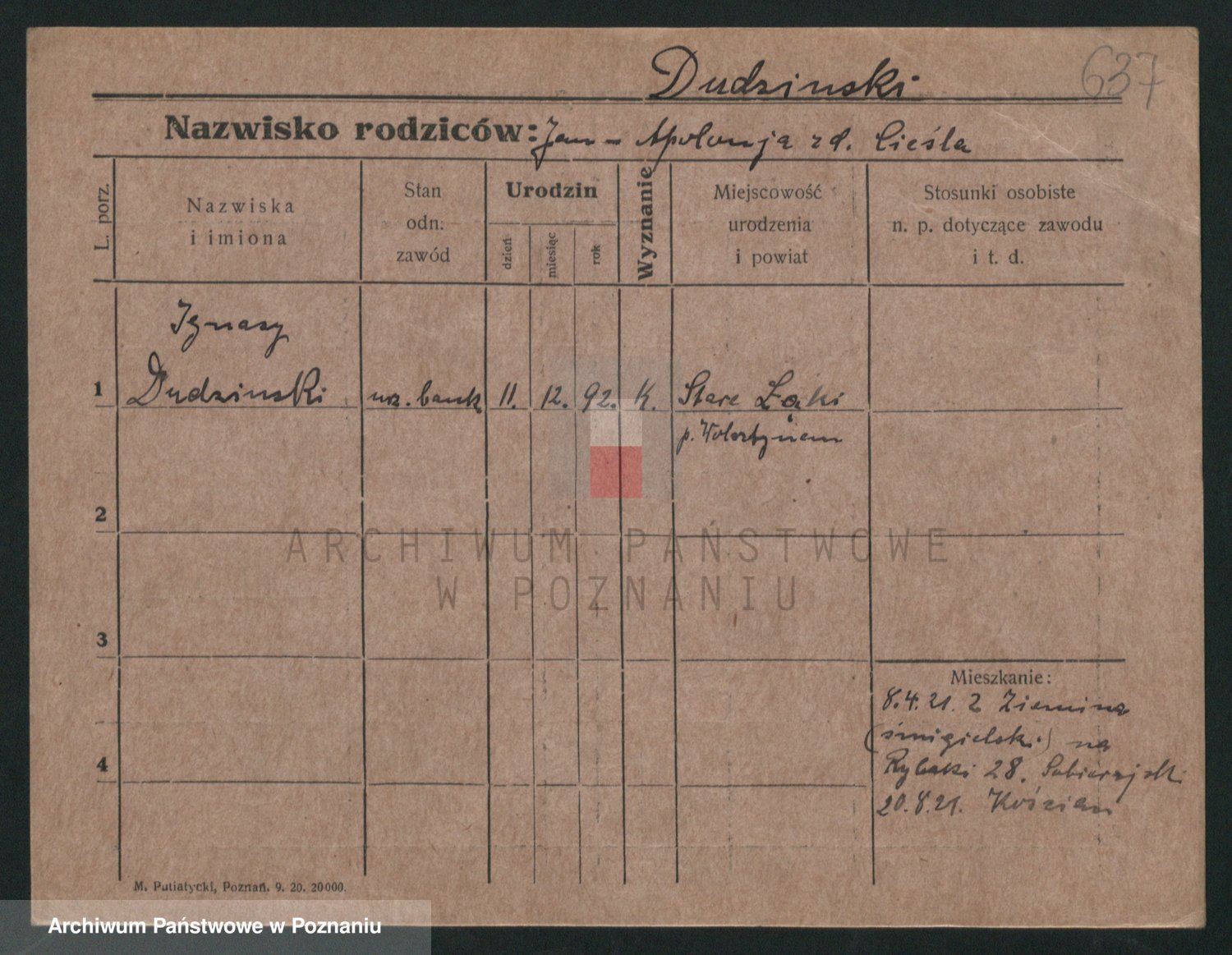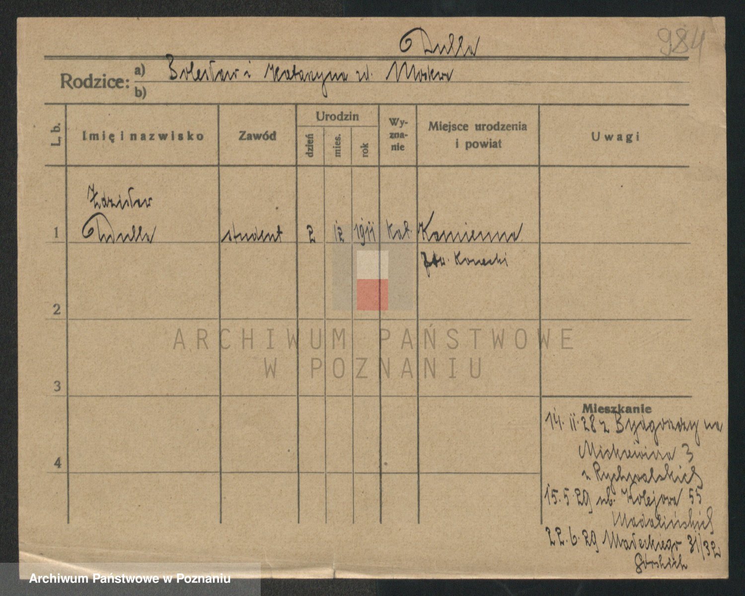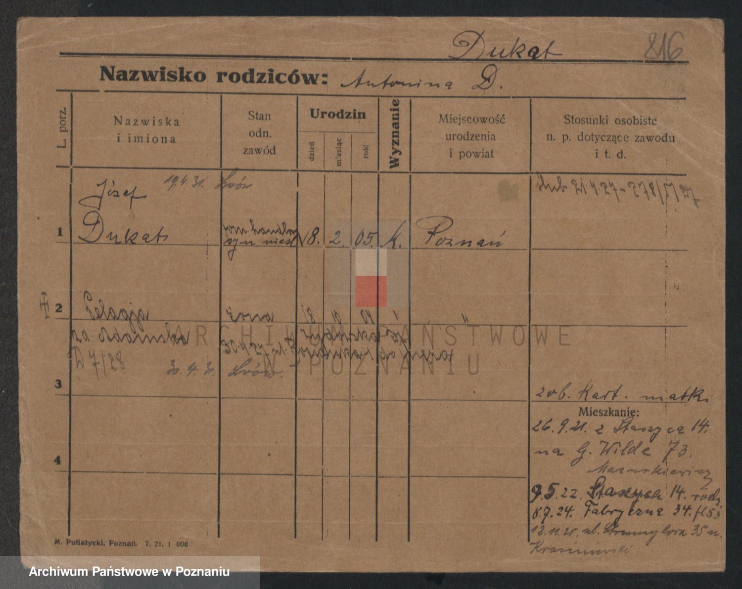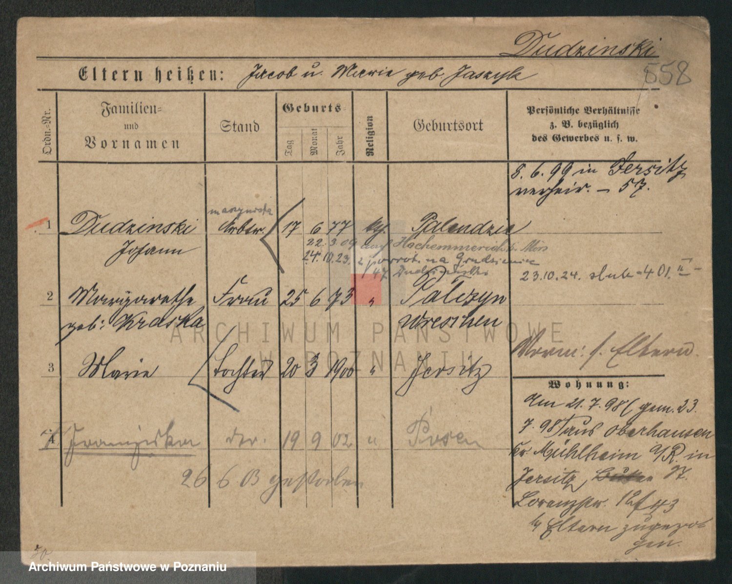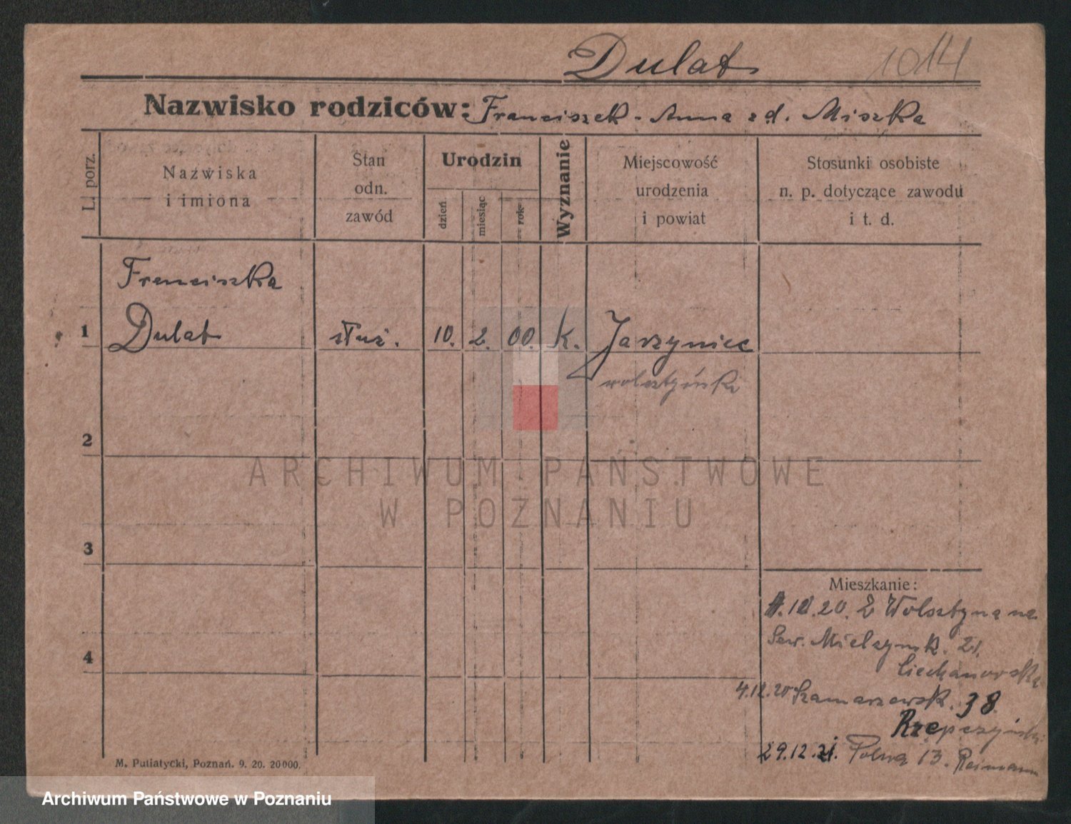 Podgląd karty osobowej dostępny jest po kliknięciu na nazwisko lub ikonkę karty. Można dokonywać powiększenia (ikony na górze) lub przechodzić między kolejnymi skanami (strzałki po bokach).