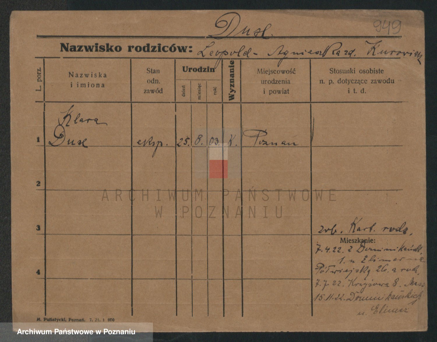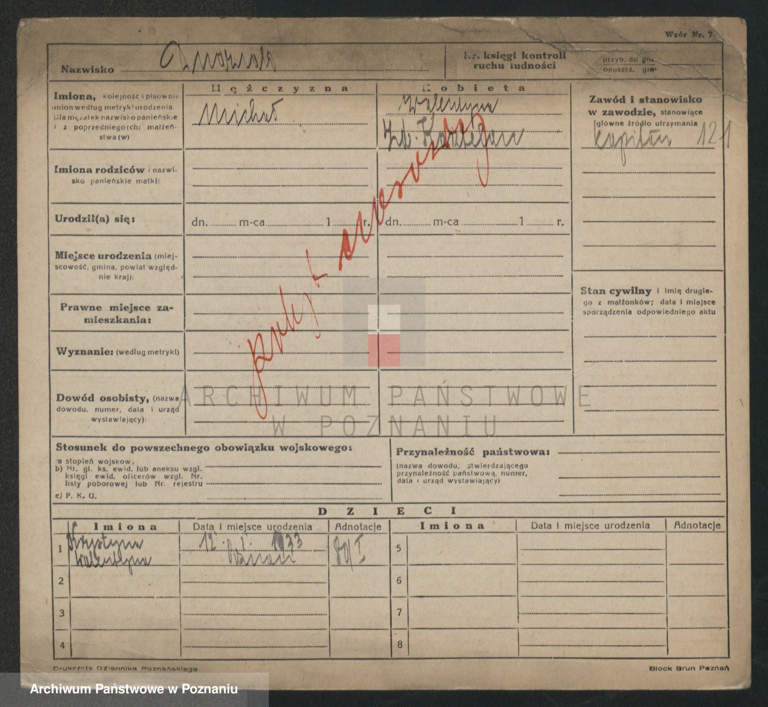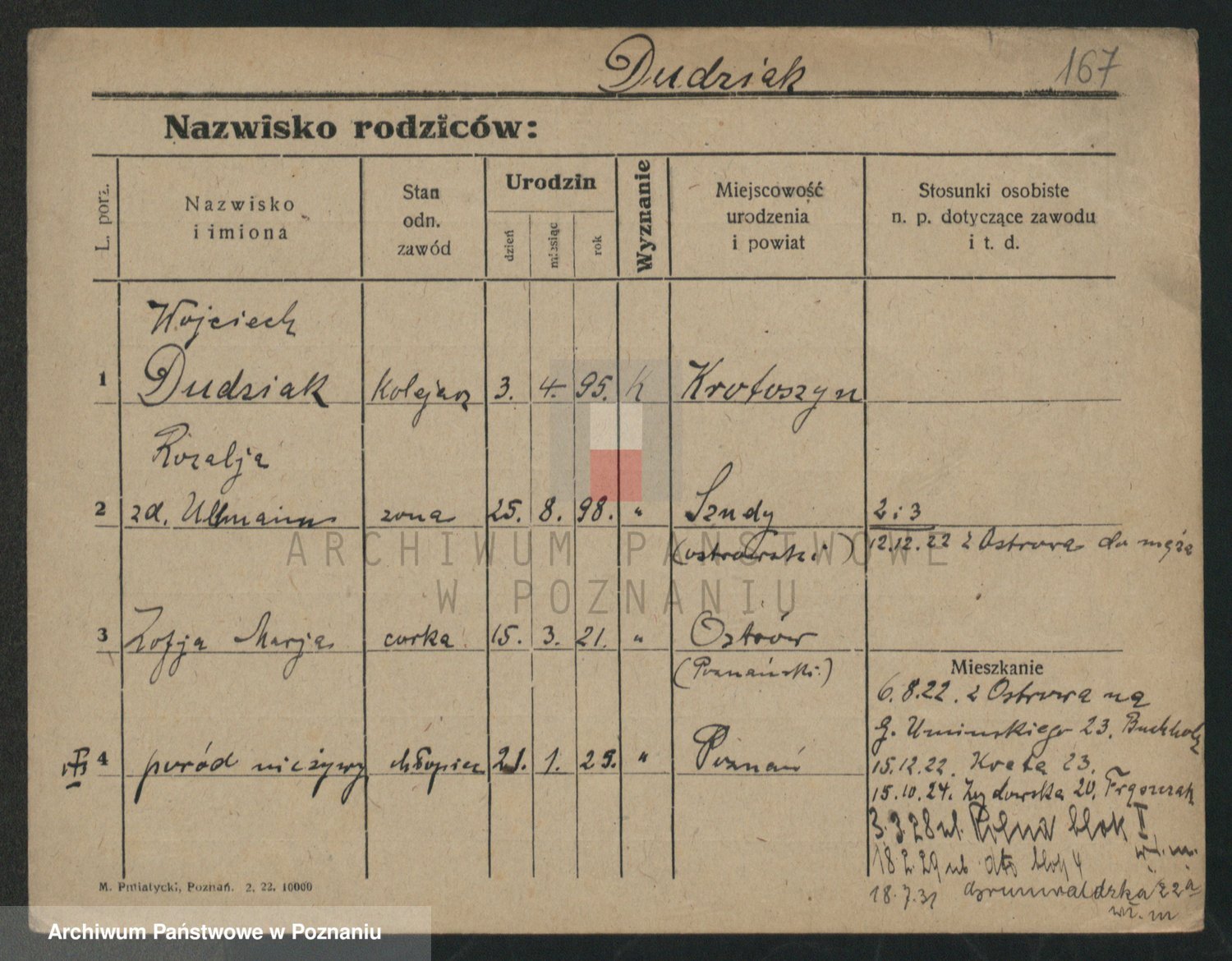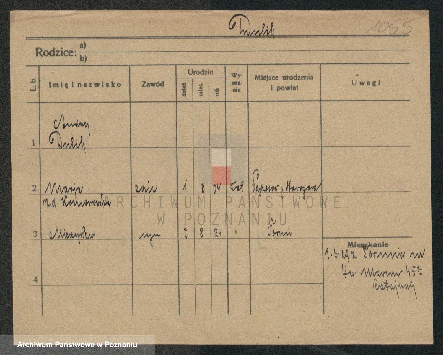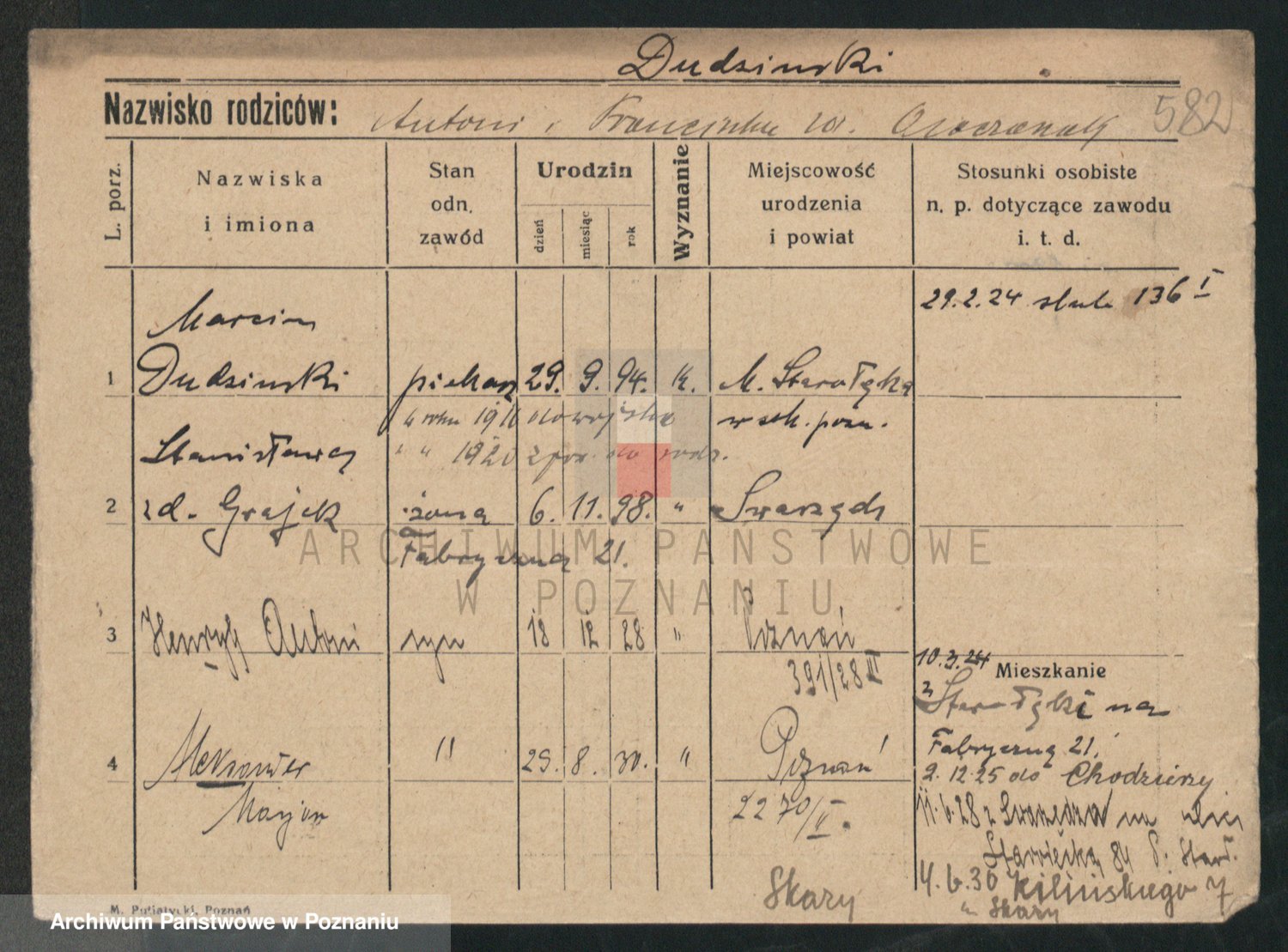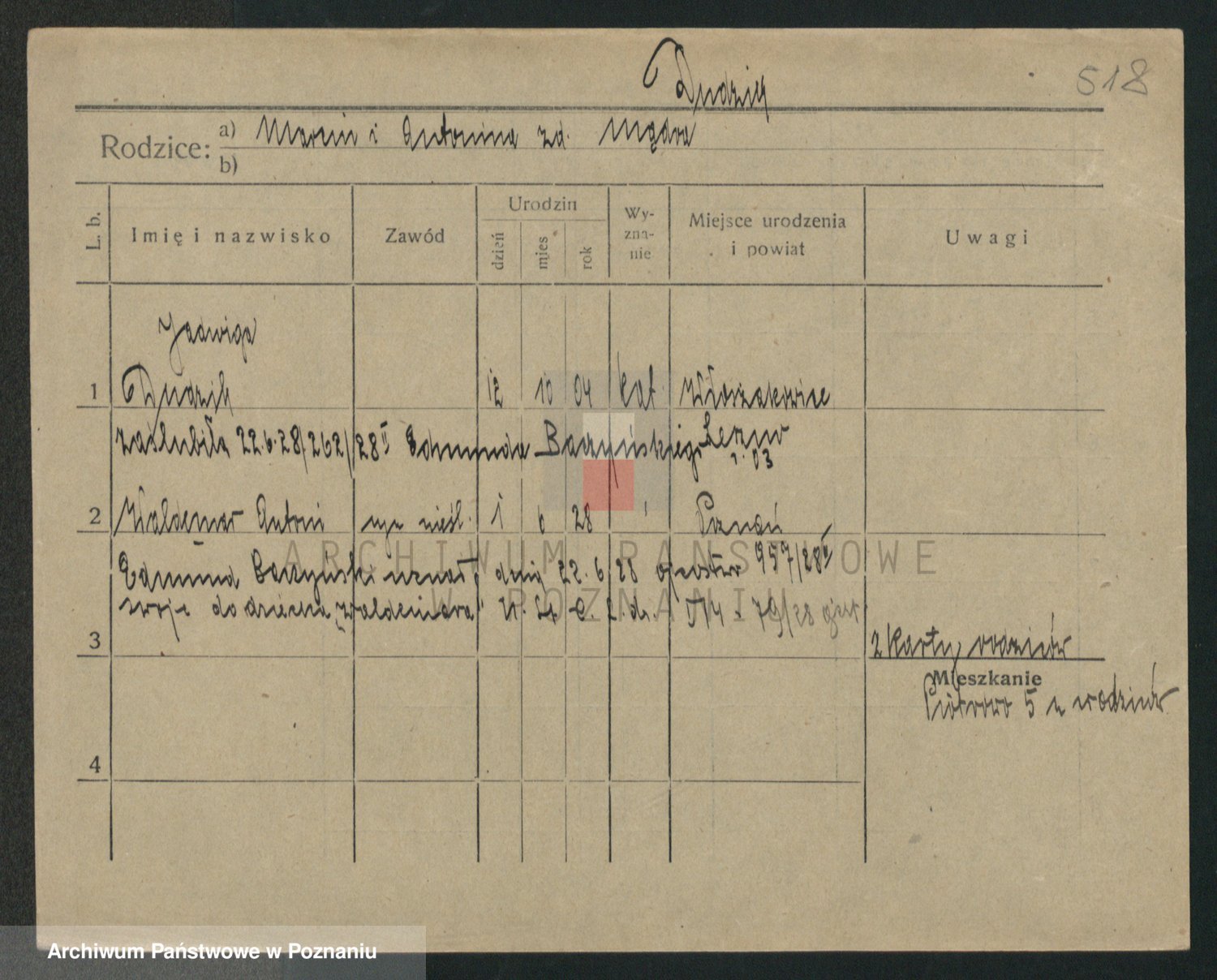 Podgląd karty osobowej dostępny jest po kliknięciu na nazwisko lub ikonkę karty. Można dokonywać powiększenia (ikony na górze) lub przechodzić między kolejnymi skanami (strzałki po bokach).