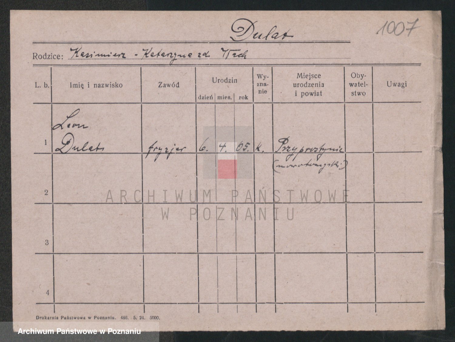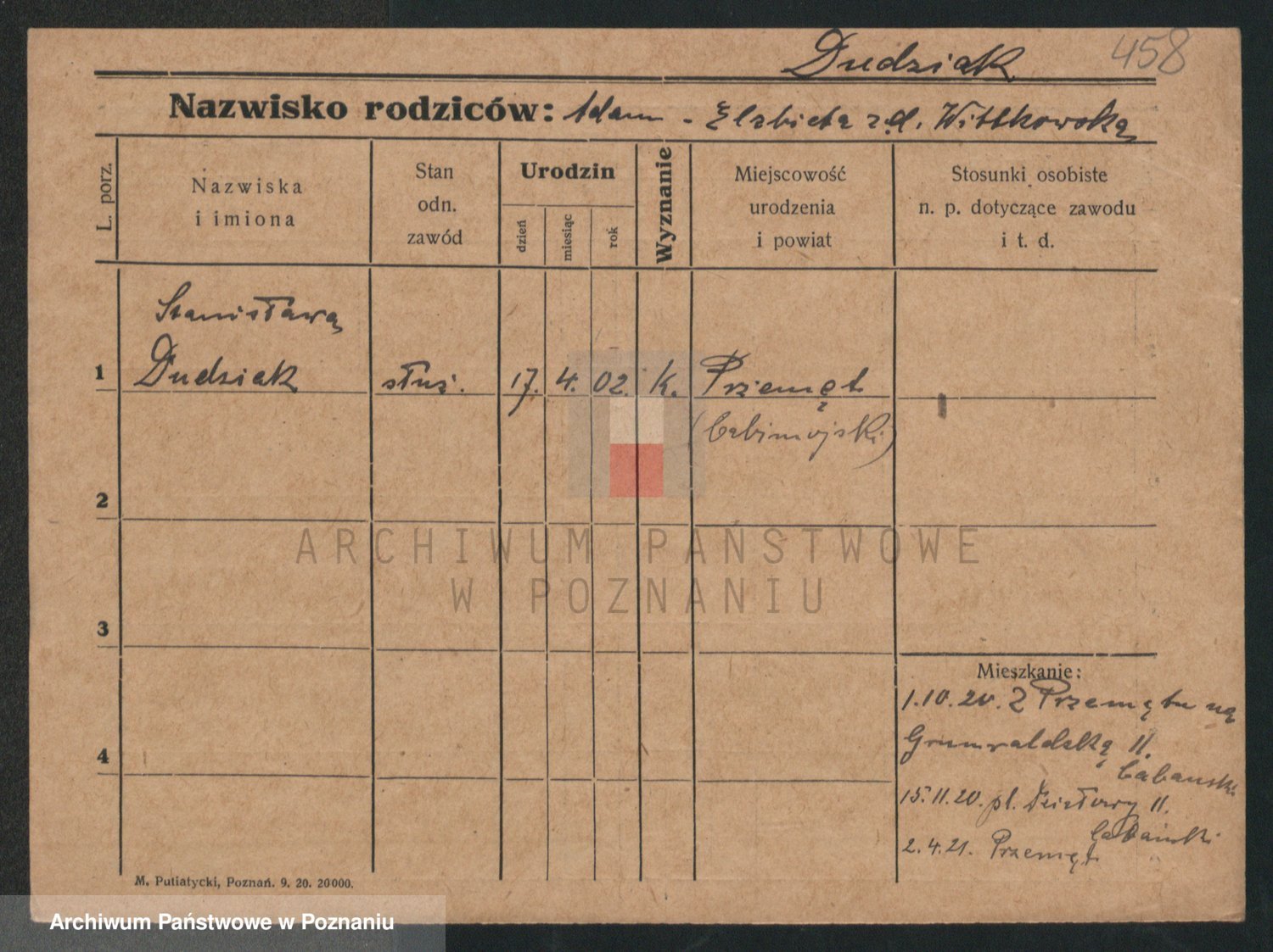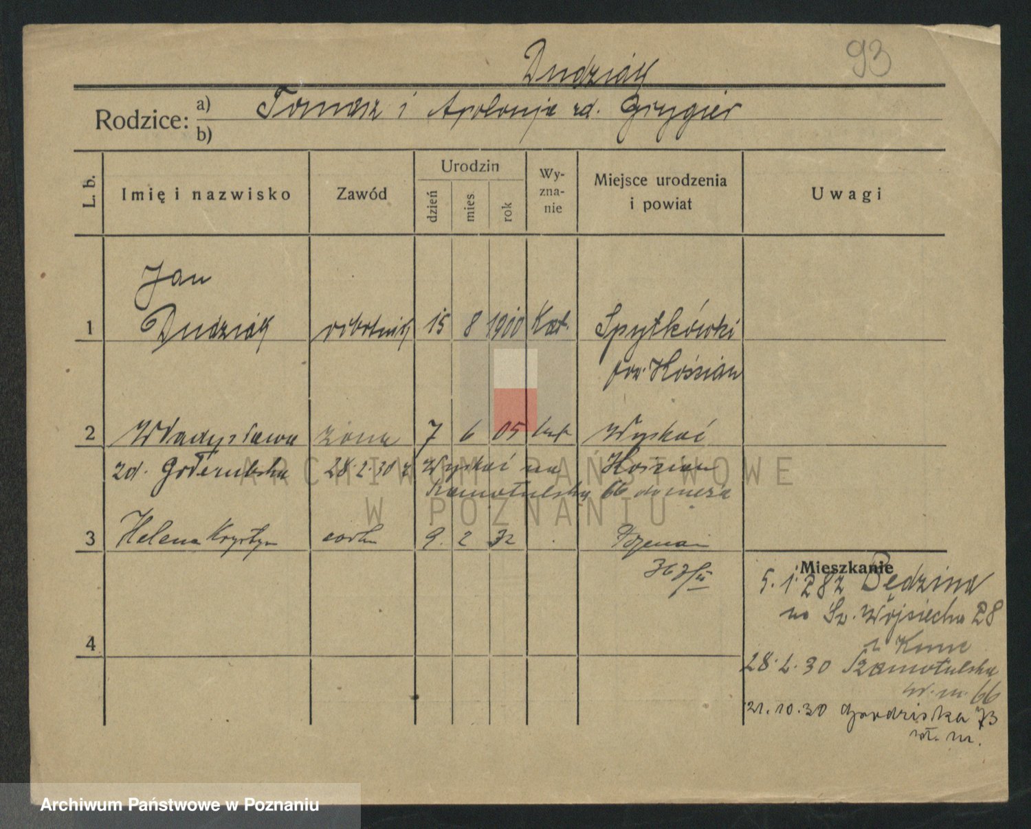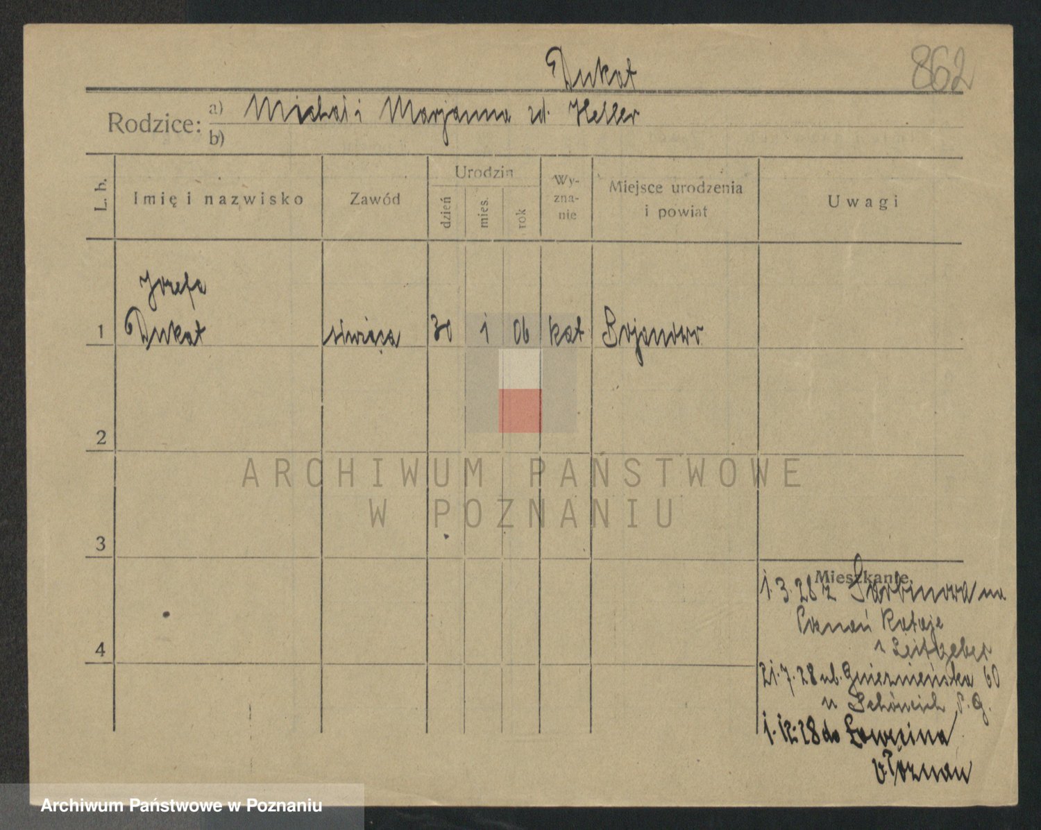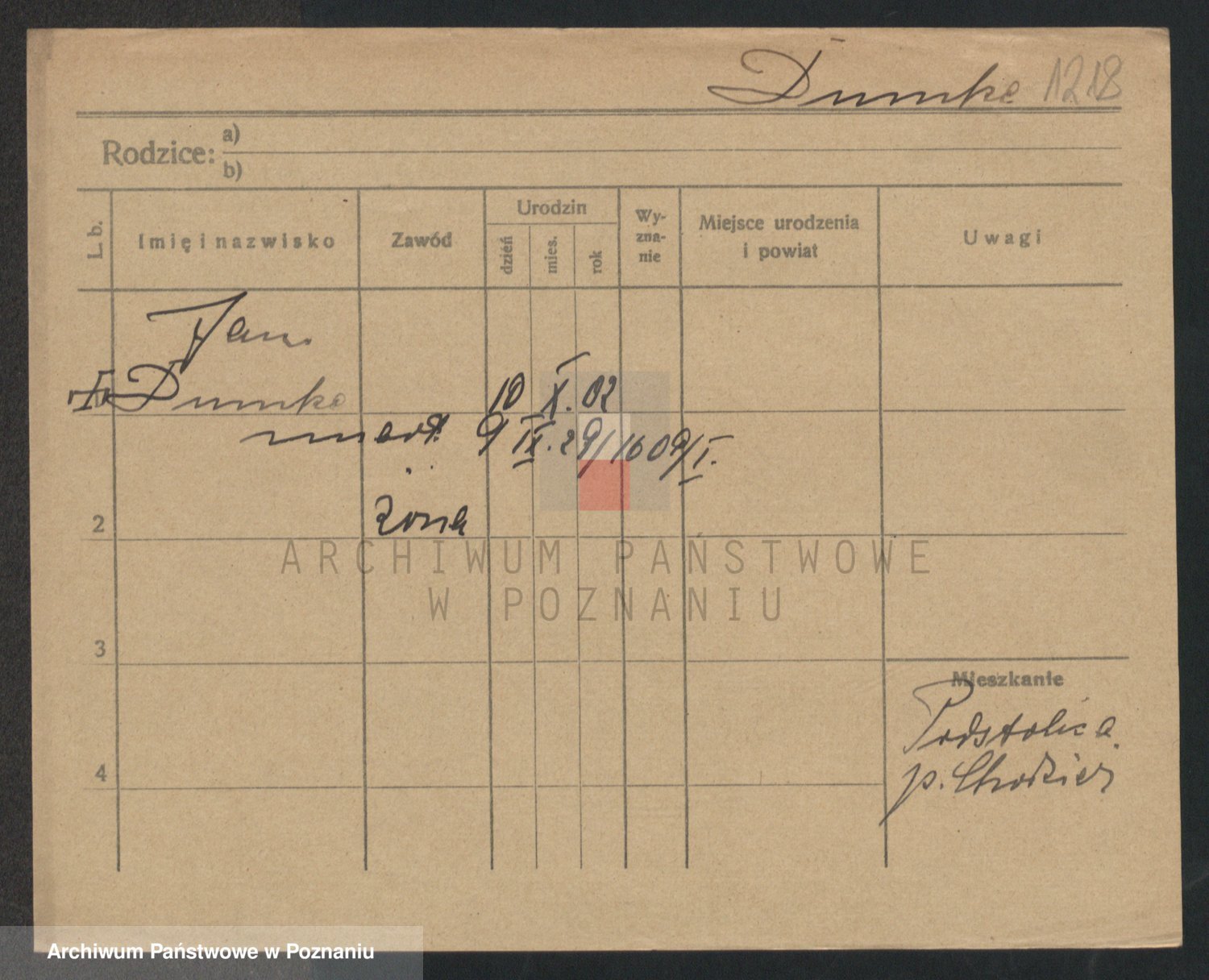 Podgląd karty osobowej dostępny jest po kliknięciu na nazwisko lub ikonkę karty. Można dokonywać powiększenia (ikony na górze) lub przechodzić między kolejnymi skanami (strzałki po bokach).