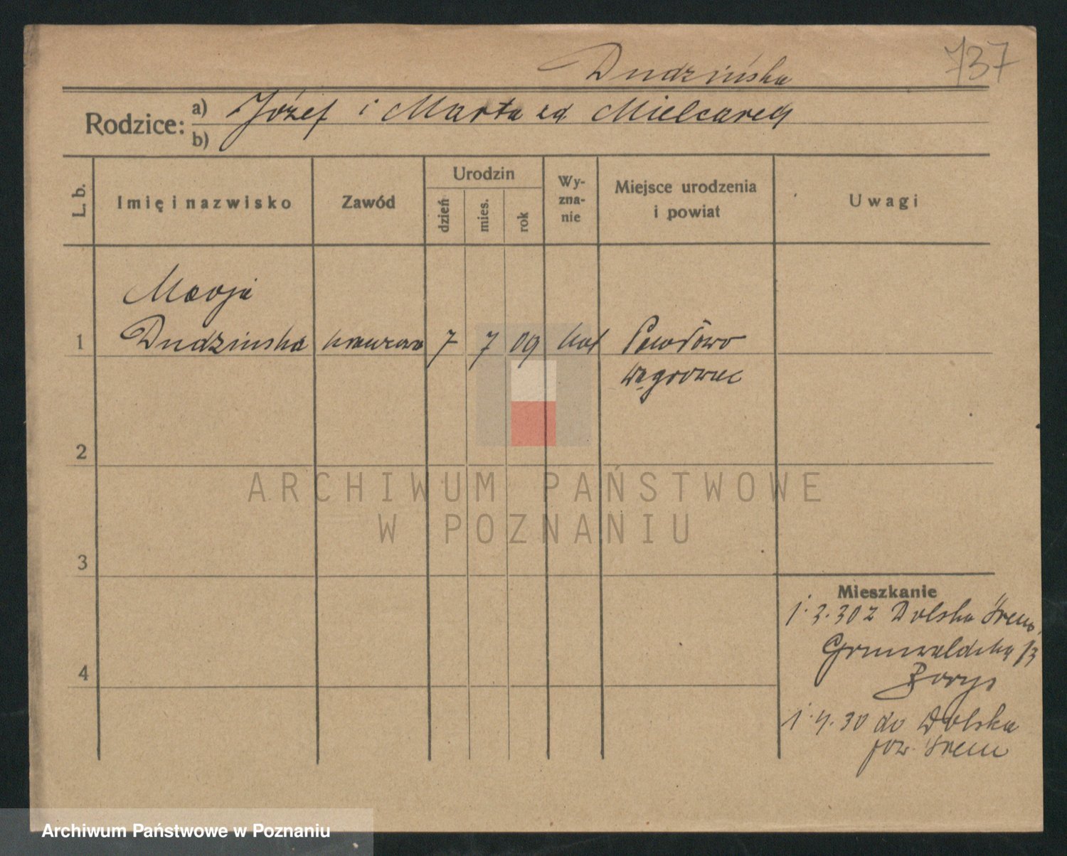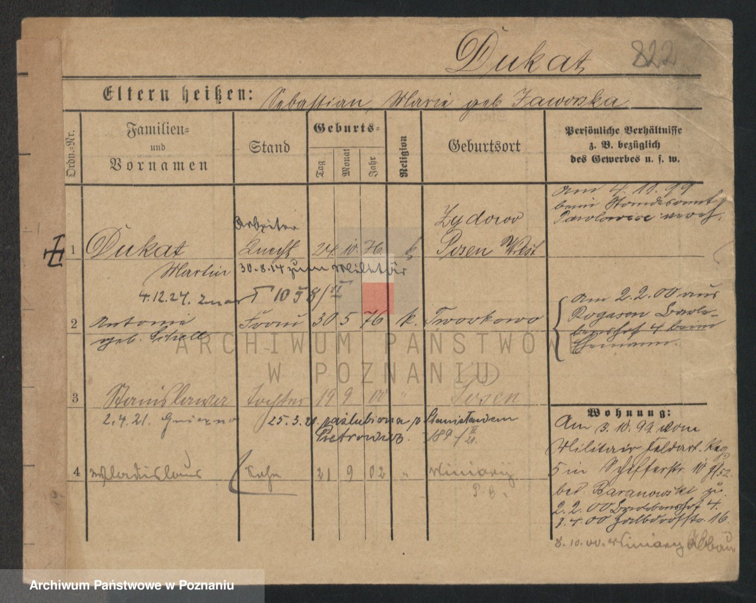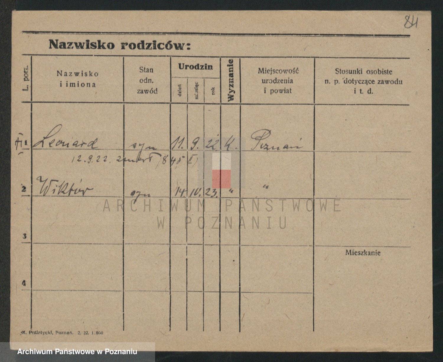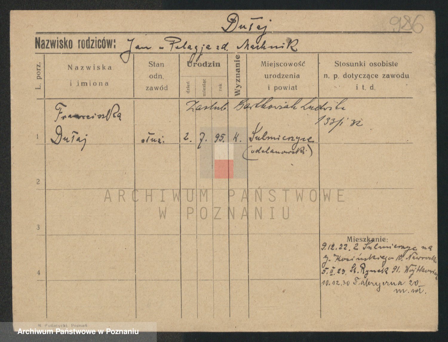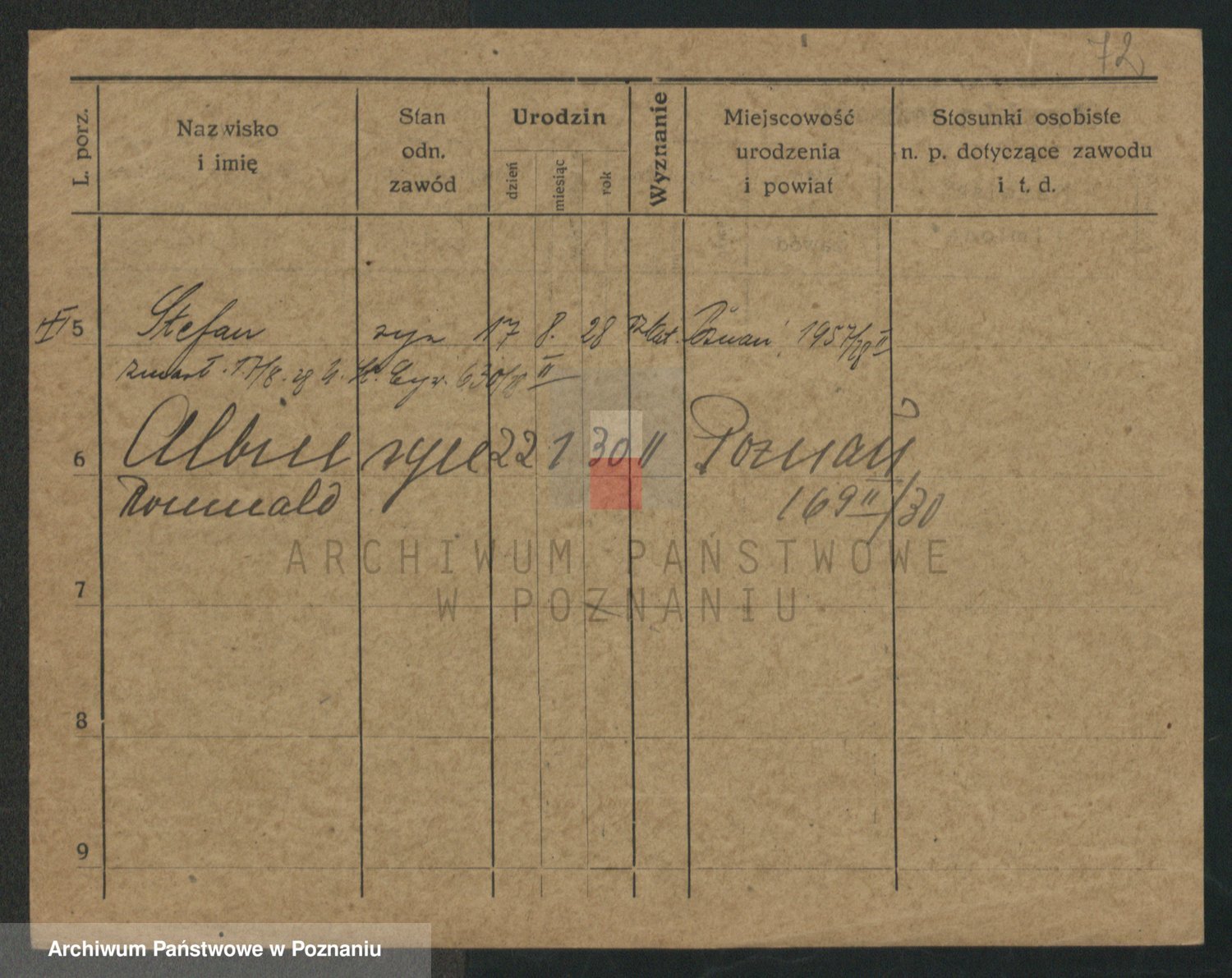 Podgląd karty osobowej dostępny jest po kliknięciu na nazwisko lub ikonkę karty. Można dokonywać powiększenia (ikony na górze) lub przechodzić między kolejnymi skanami (strzałki po bokach).