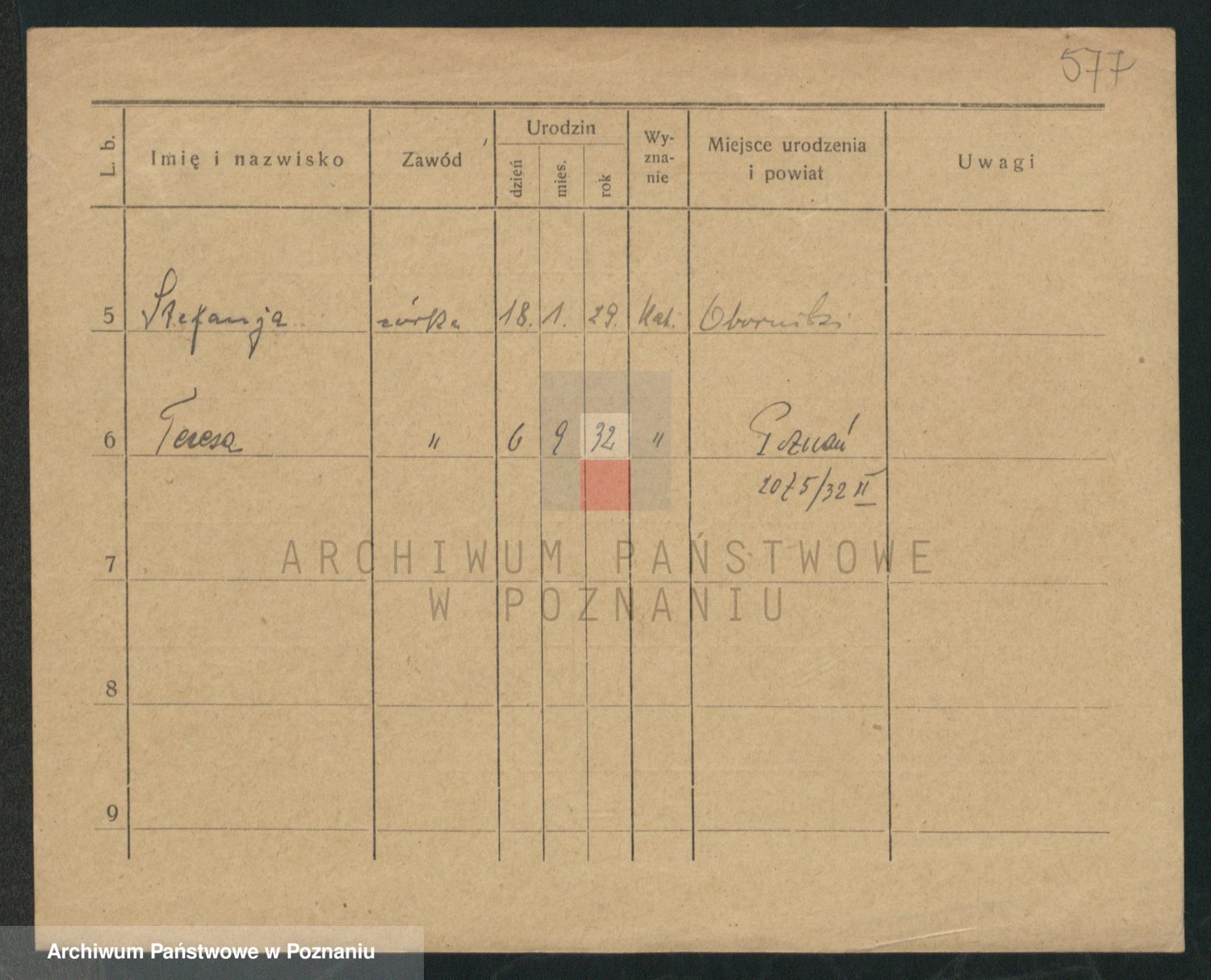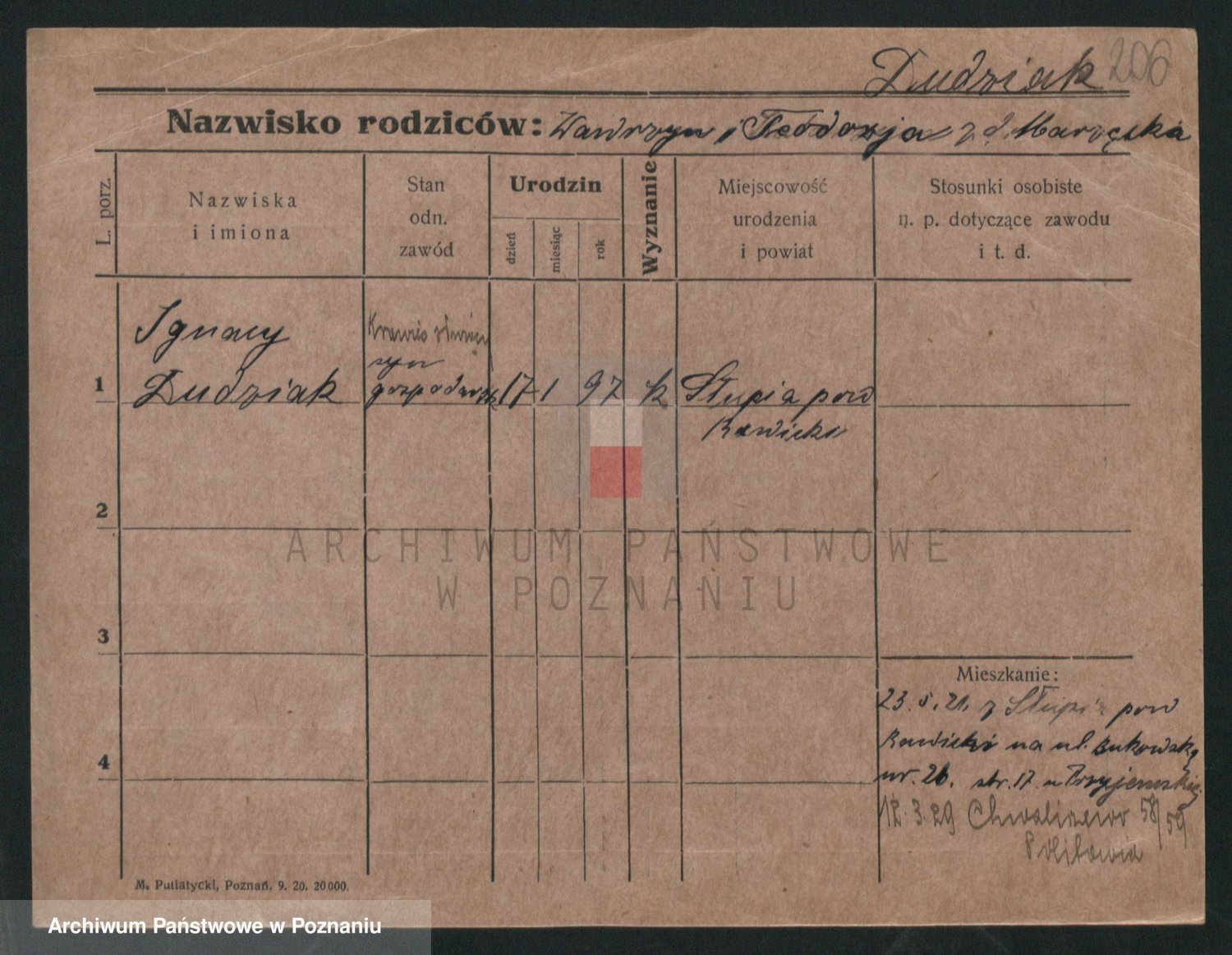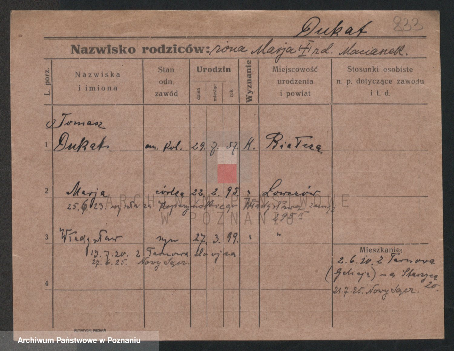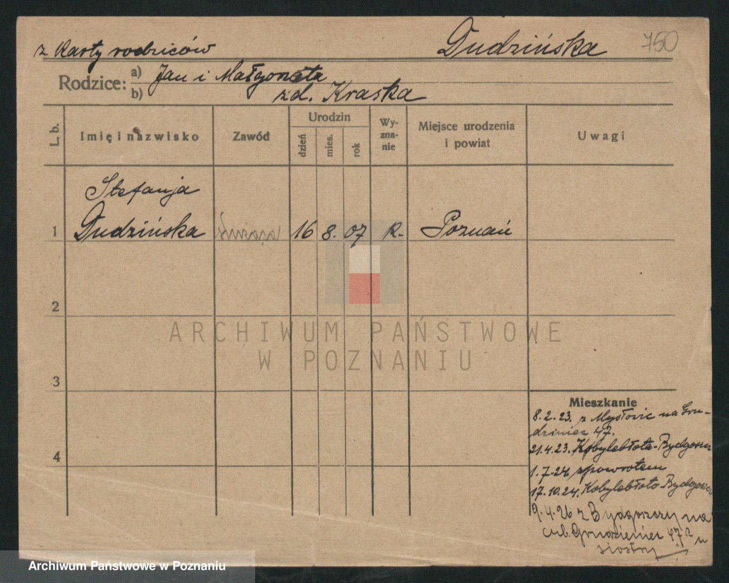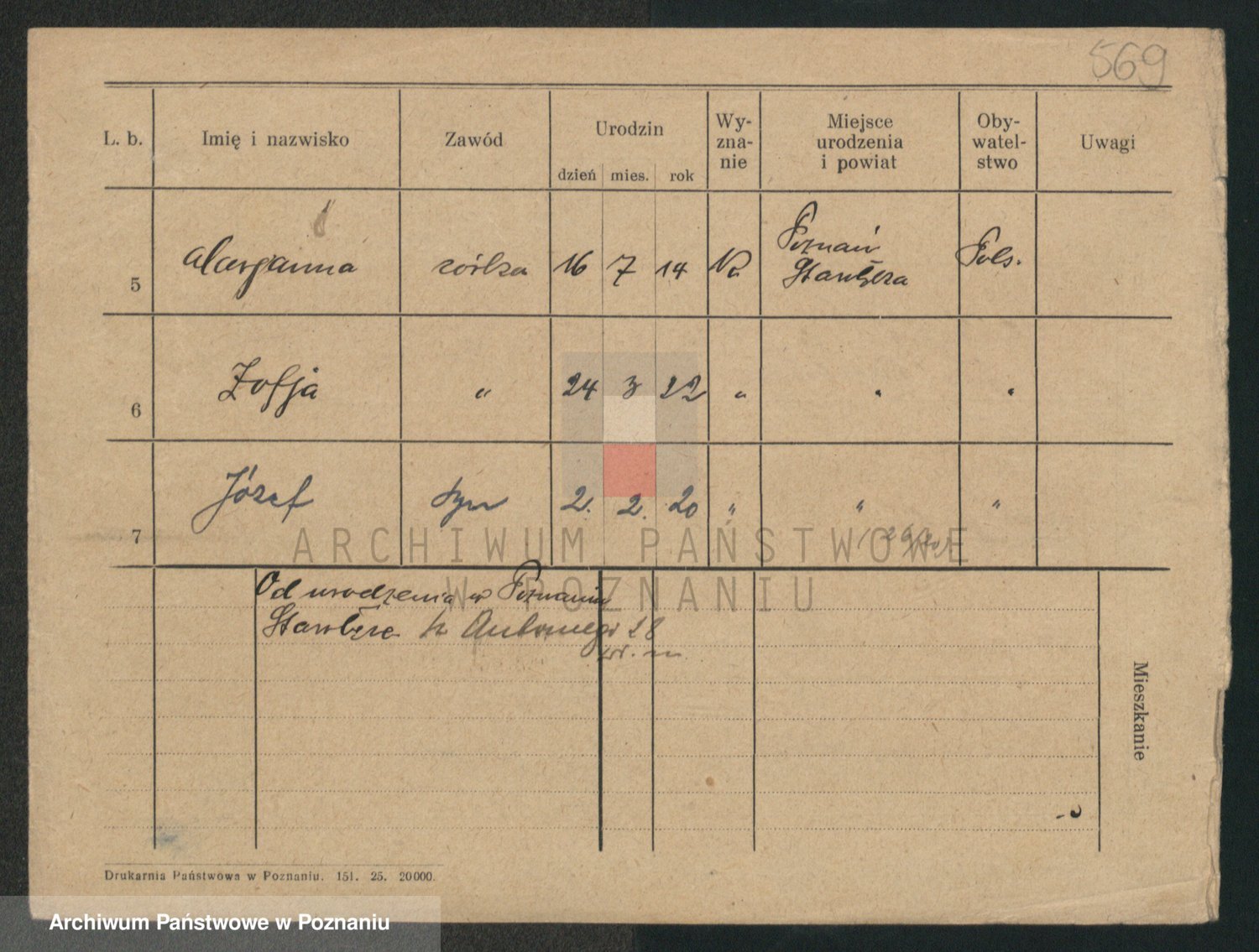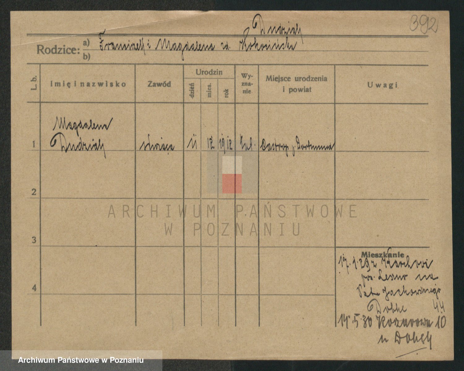 Podgląd karty osobowej dostępny jest po kliknięciu na nazwisko lub ikonkę karty. Można dokonywać powiększenia (ikony na górze) lub przechodzić między kolejnymi skanami (strzałki po bokach).