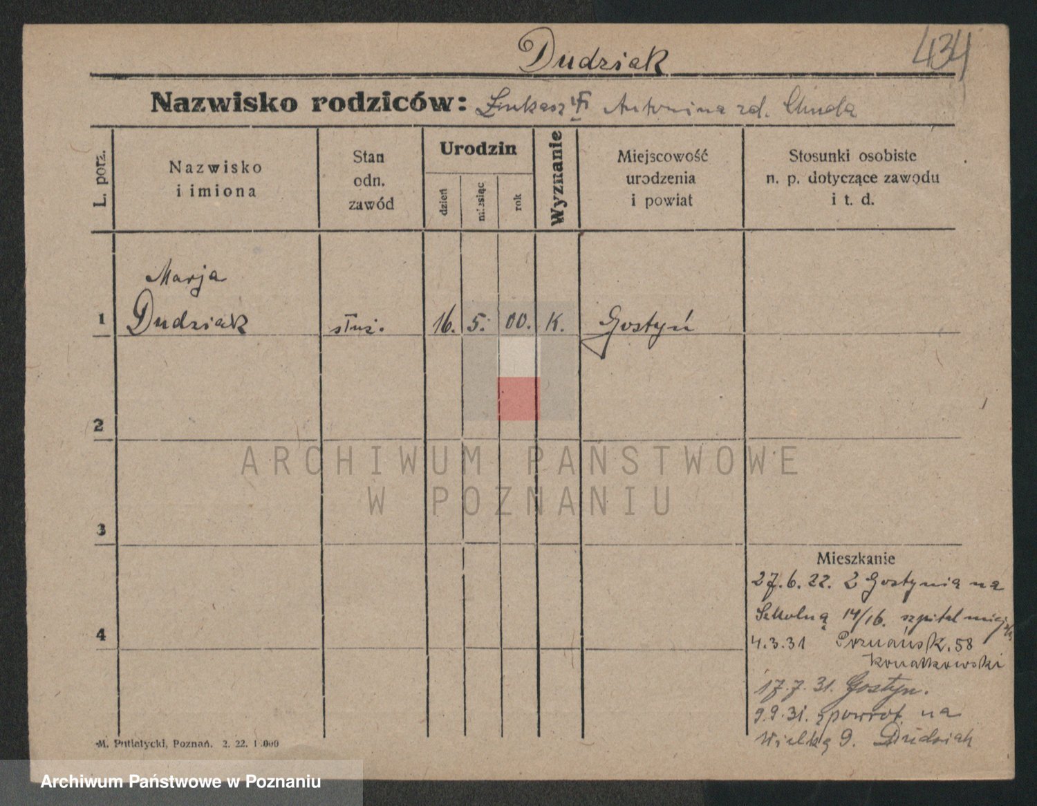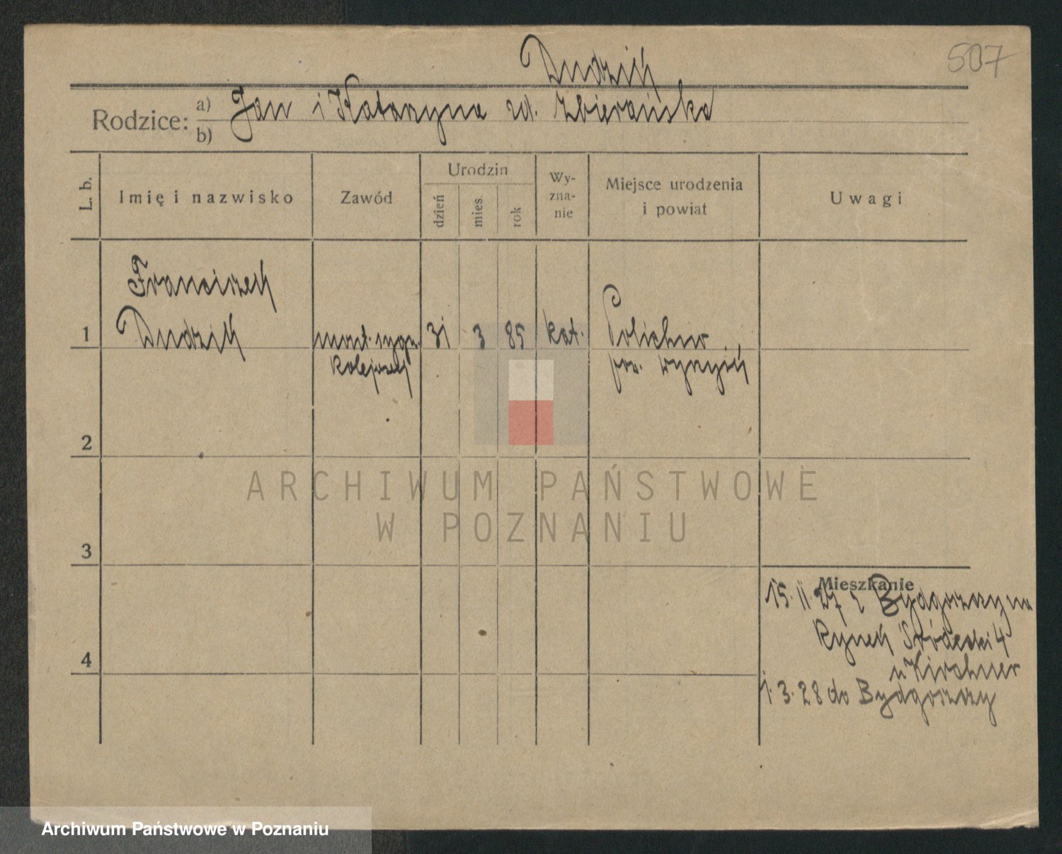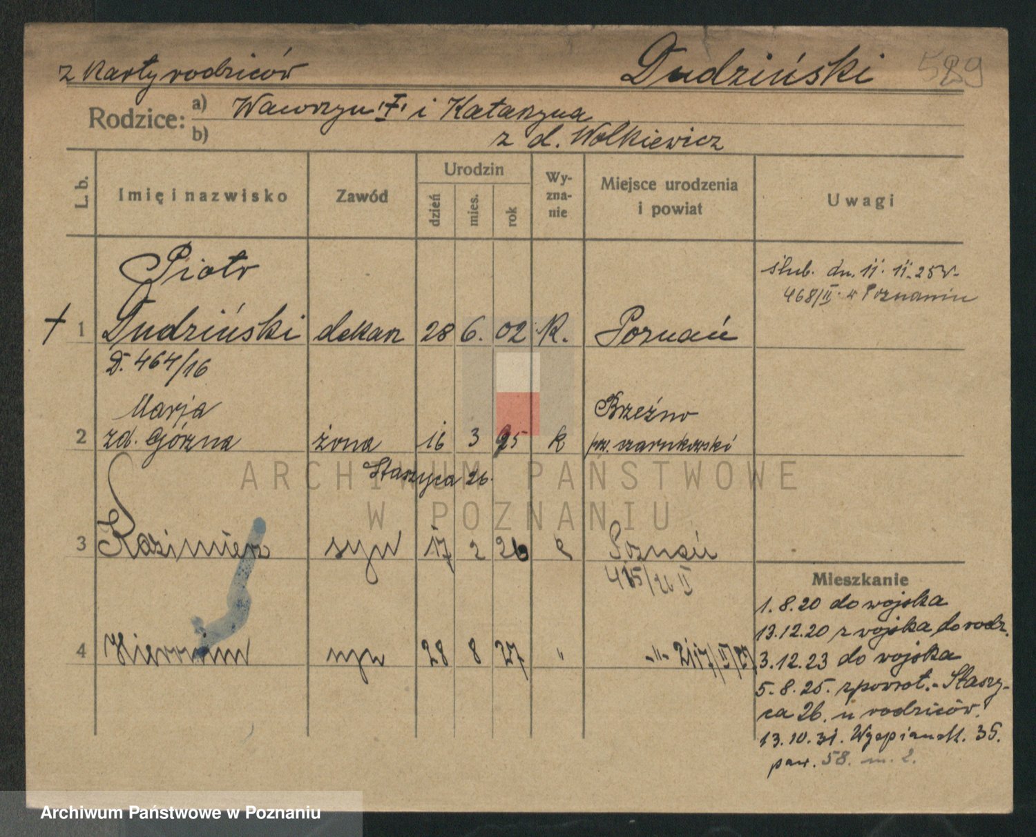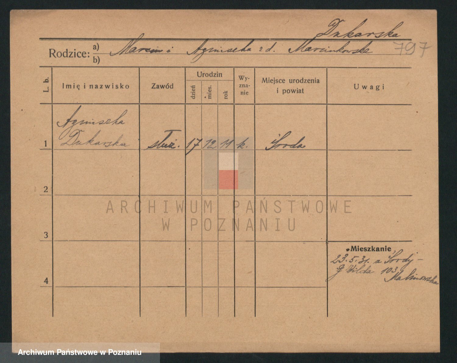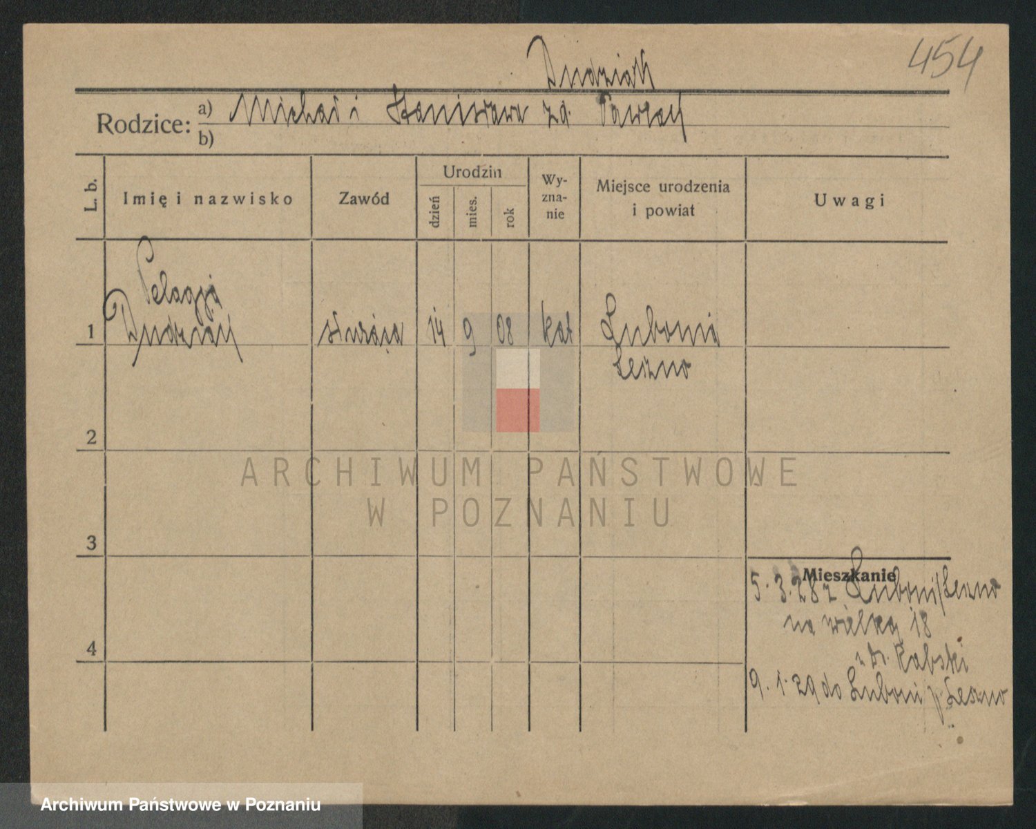 Podgląd karty osobowej dostępny jest po kliknięciu na nazwisko lub ikonkę karty. Można dokonywać powiększenia (ikony na górze) lub przechodzić między kolejnymi skanami (strzałki po bokach).