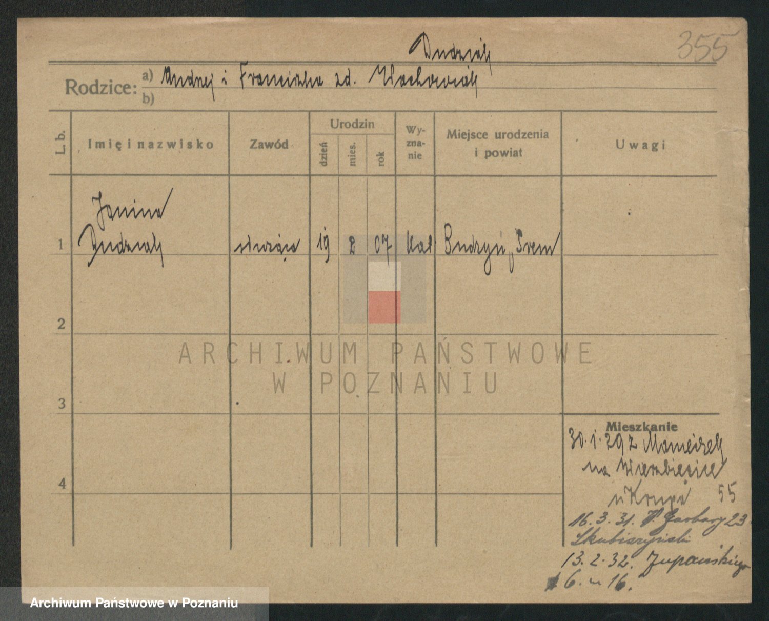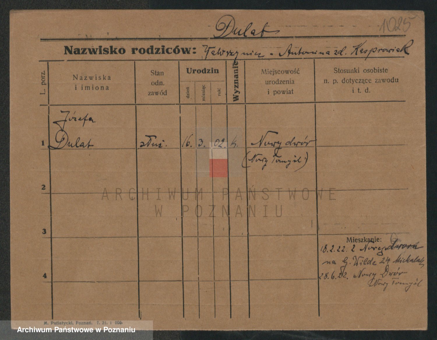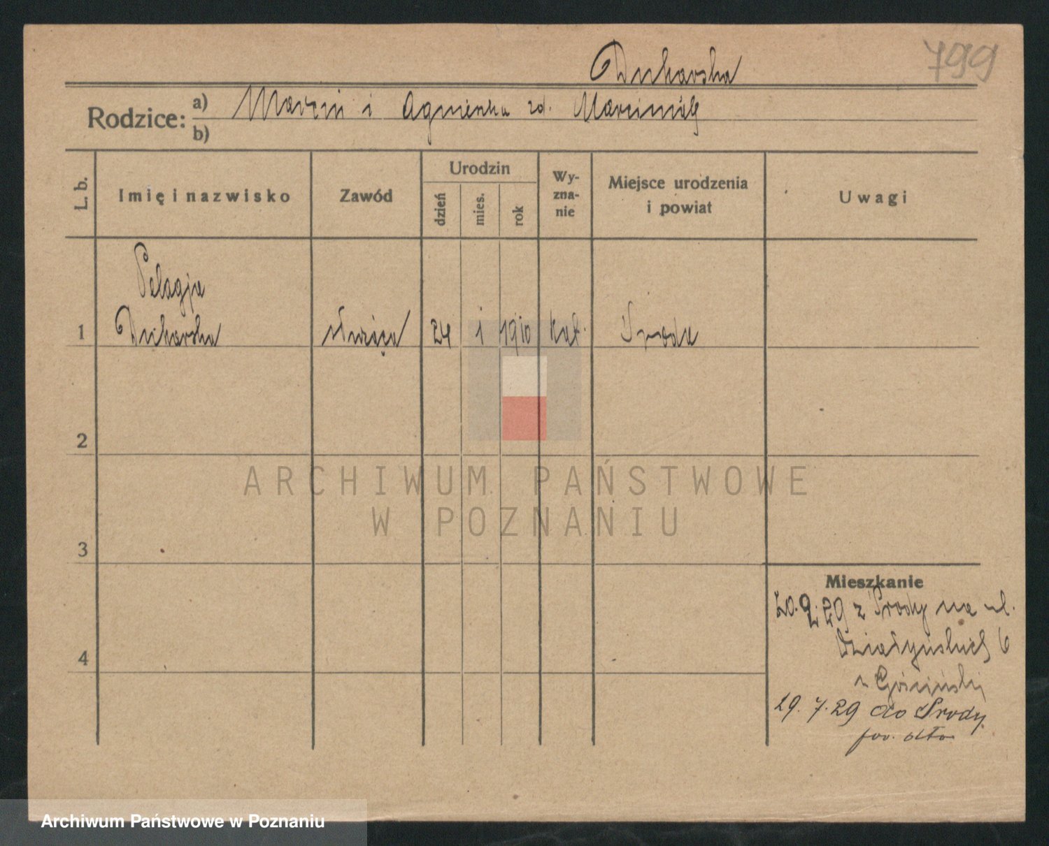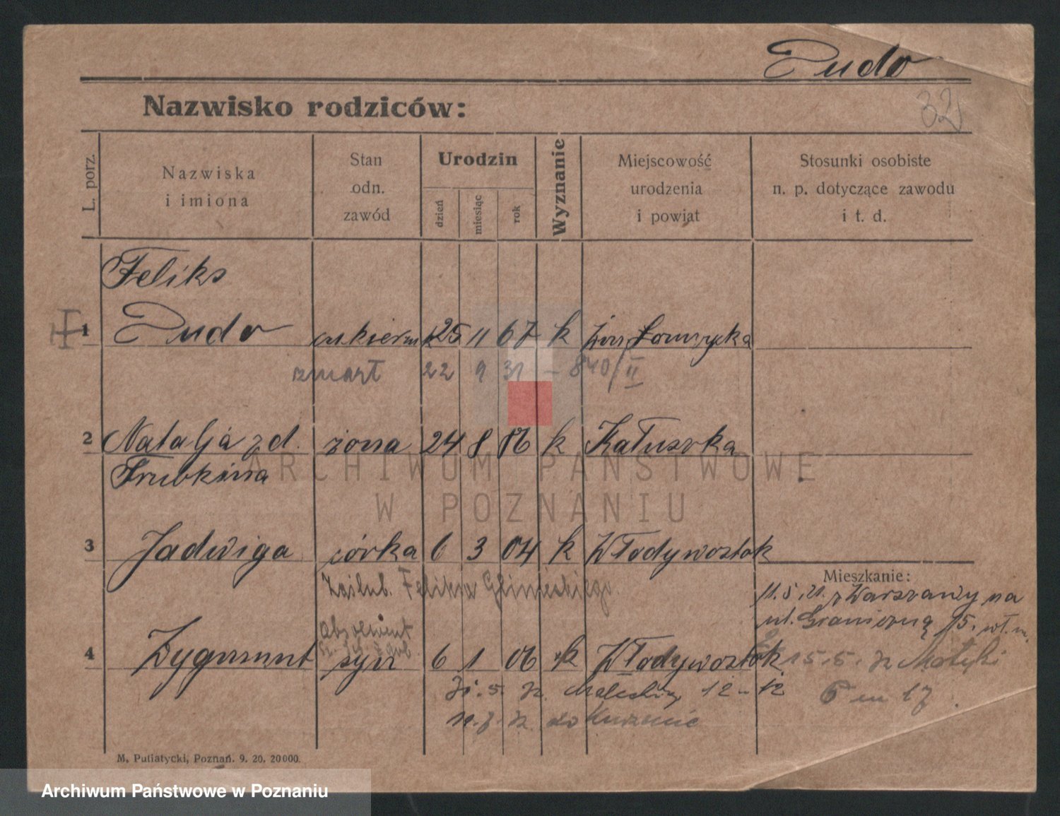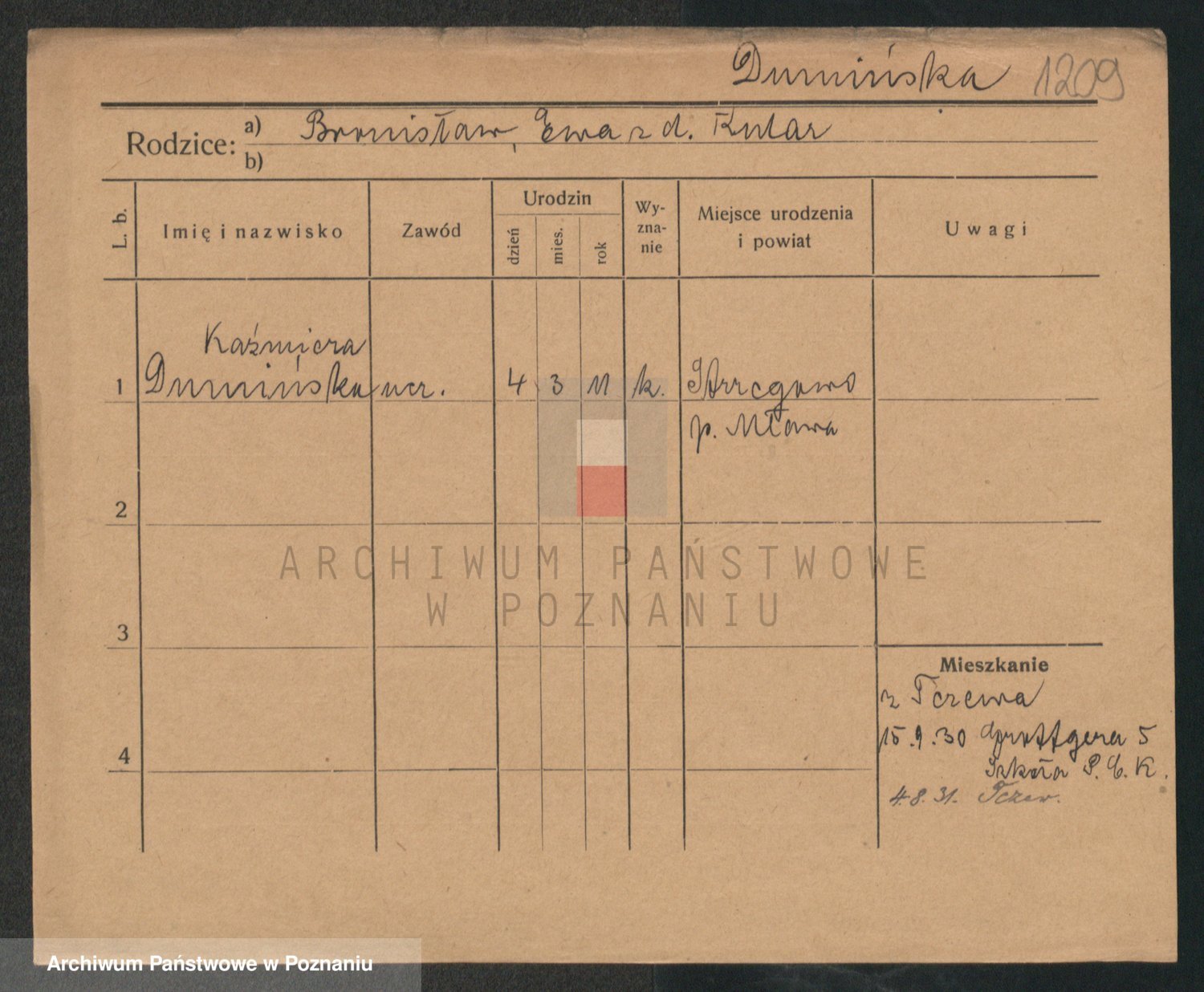 Podgląd karty osobowej dostępny jest po kliknięciu na nazwisko lub ikonkę karty. Można dokonywać powiększenia (ikony na górze) lub przechodzić między kolejnymi skanami (strzałki po bokach).