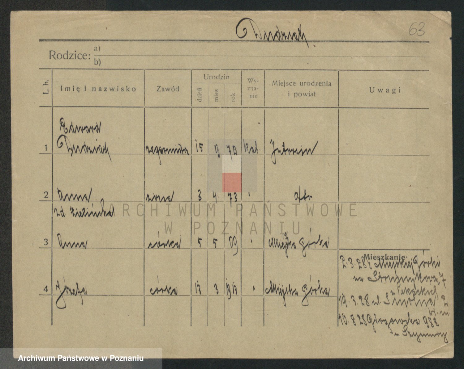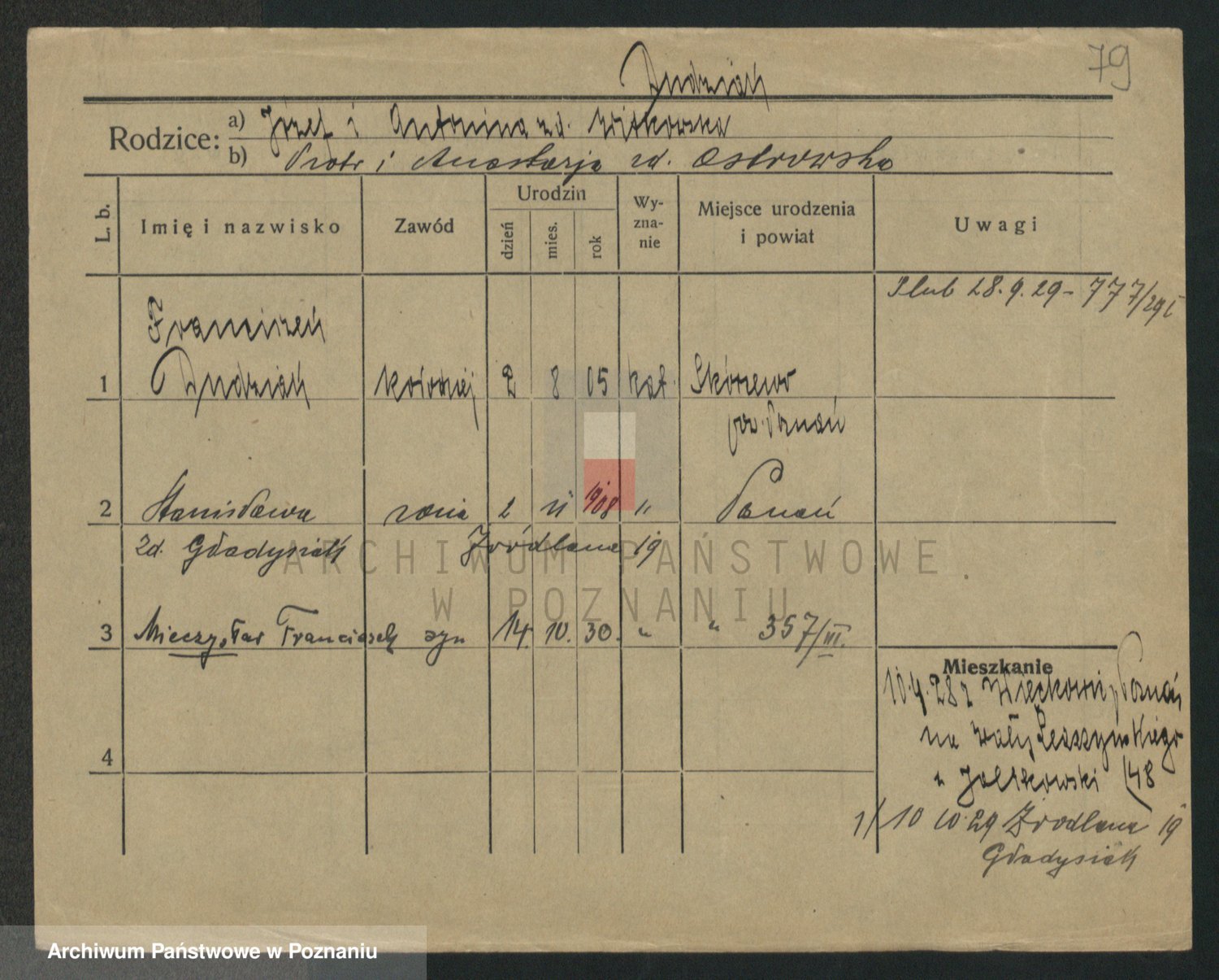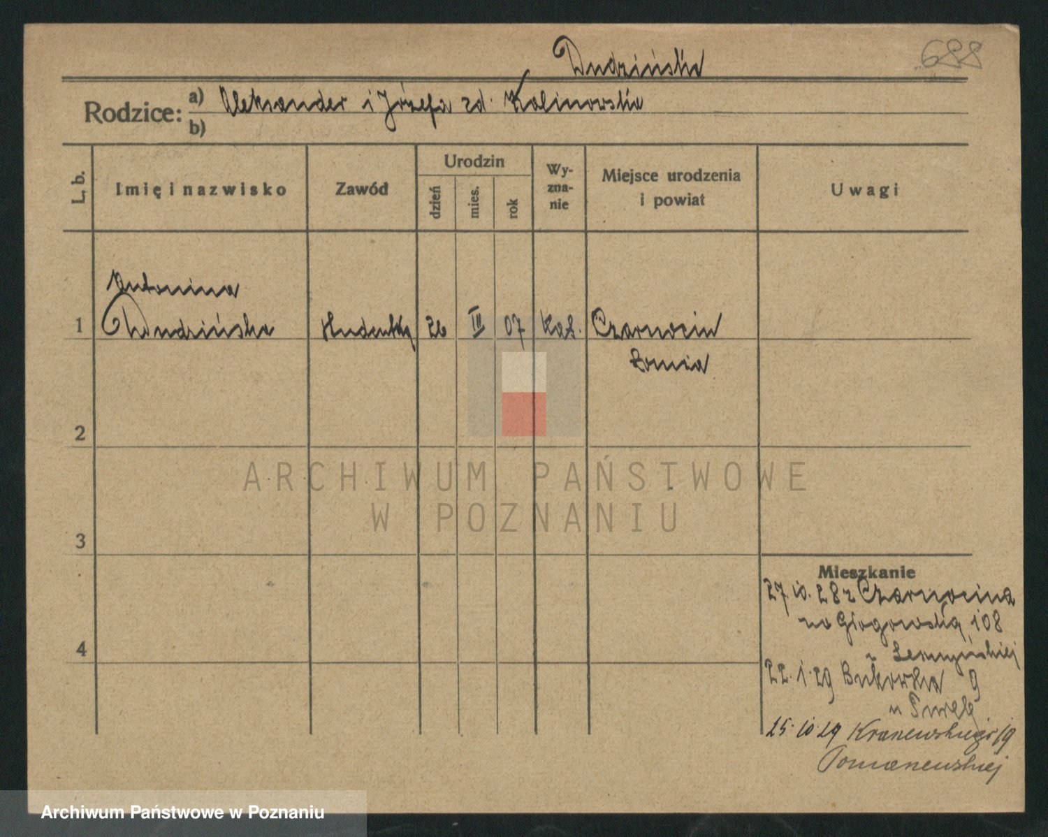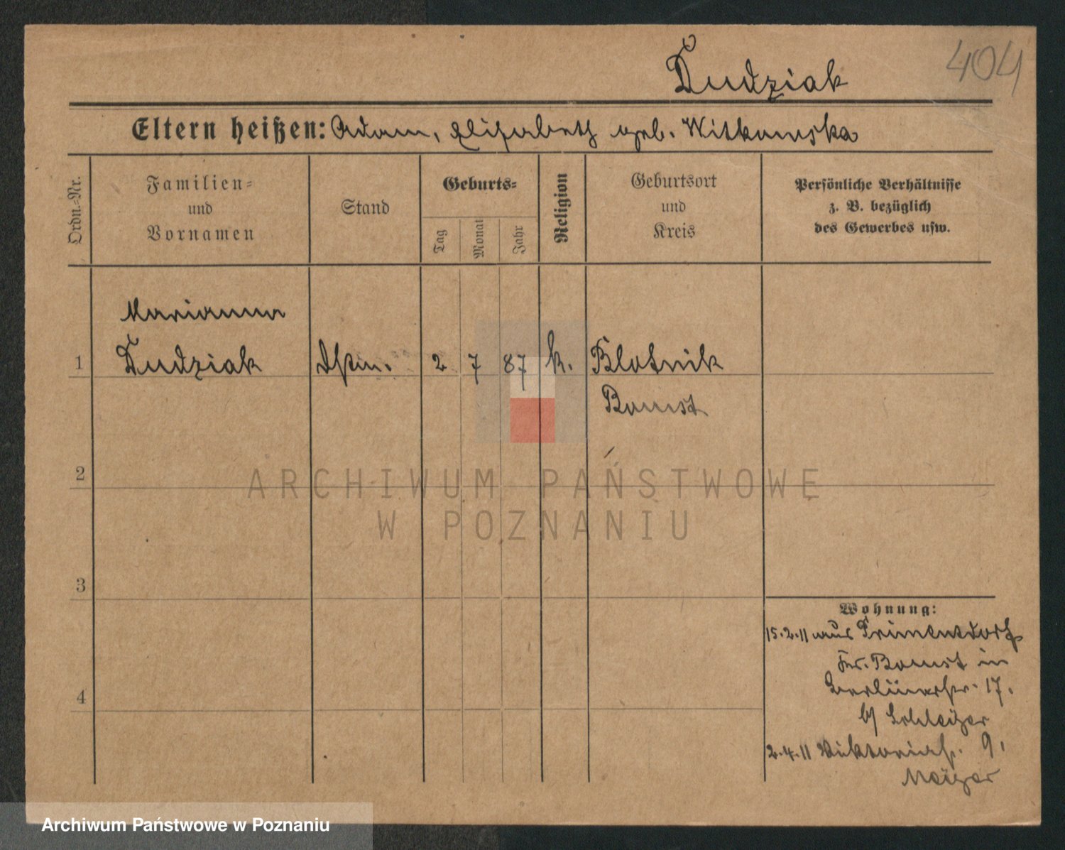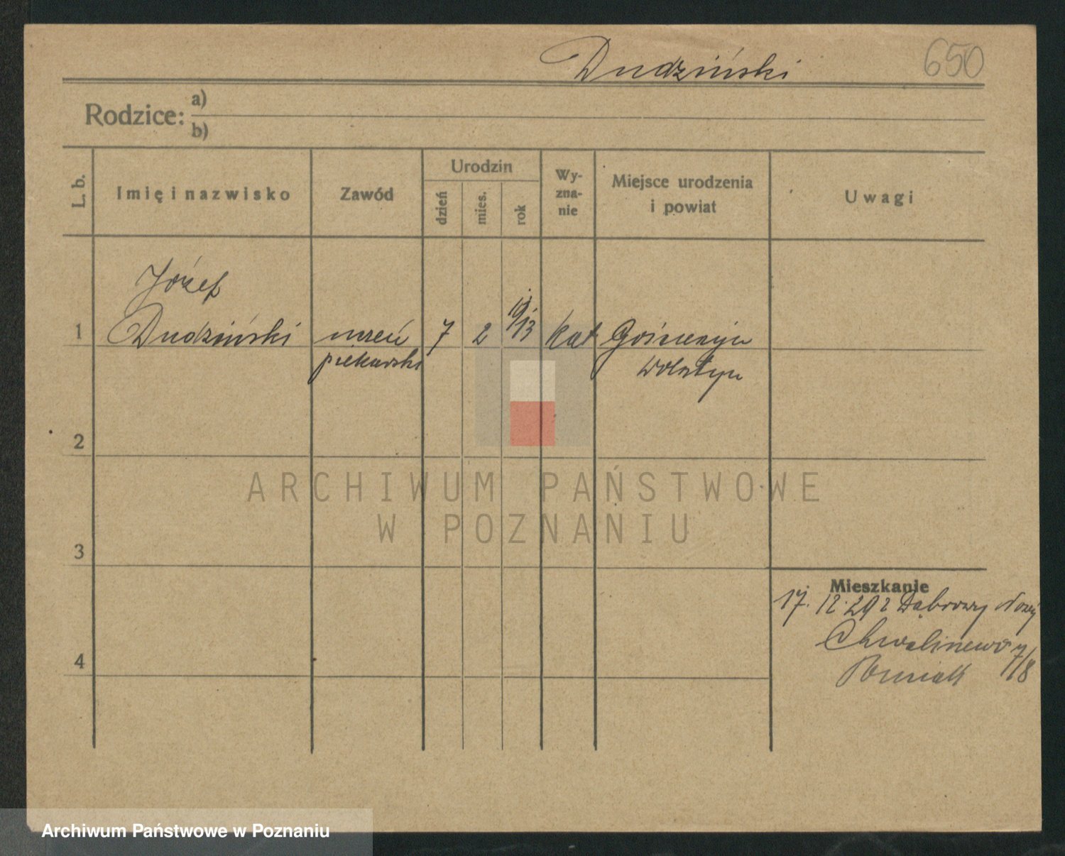 Podgląd karty osobowej dostępny jest po kliknięciu na nazwisko lub ikonkę karty. Można dokonywać powiększenia (ikony na górze) lub przechodzić między kolejnymi skanami (strzałki po bokach).