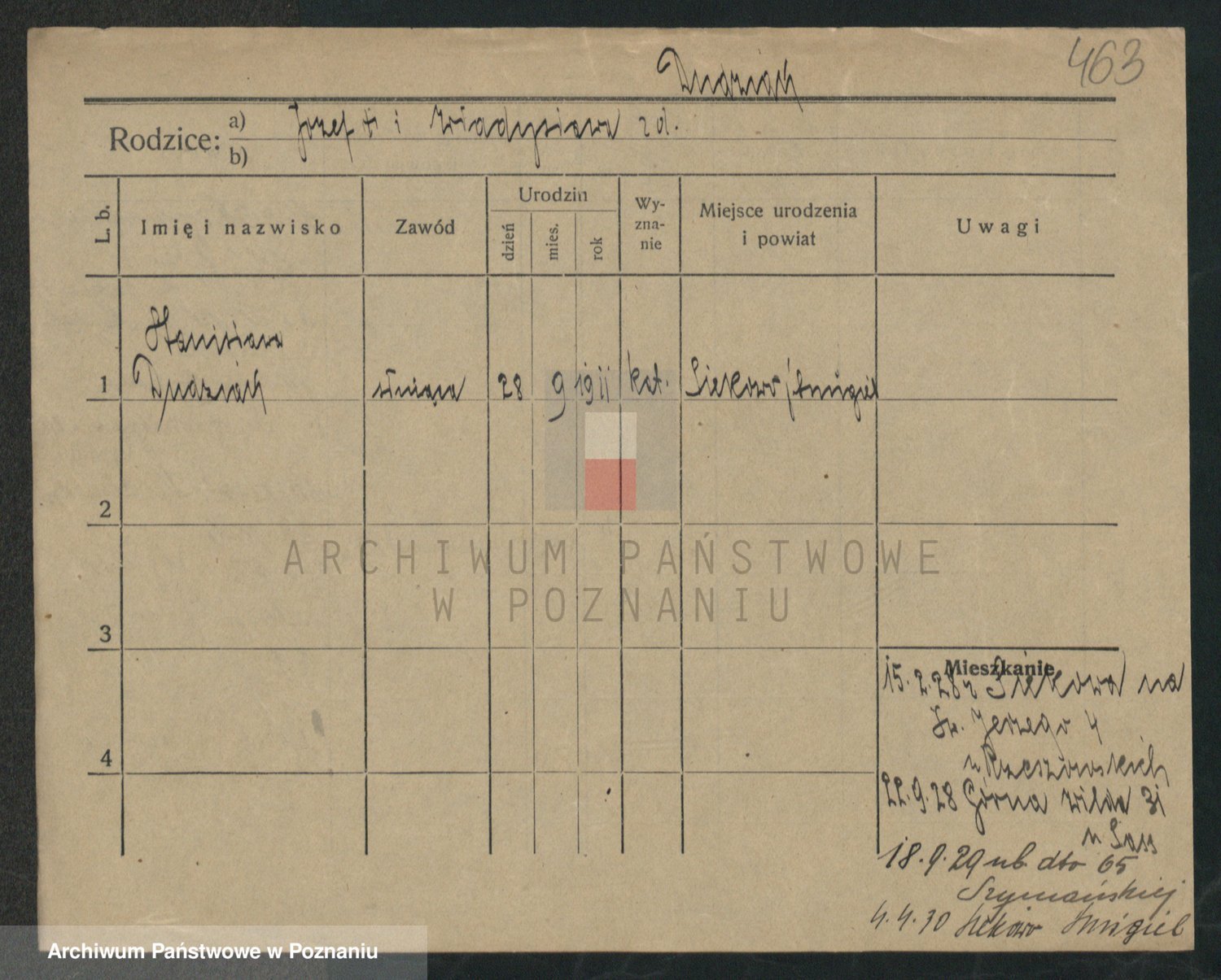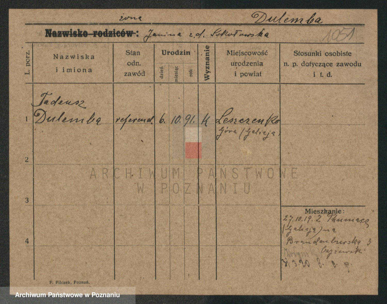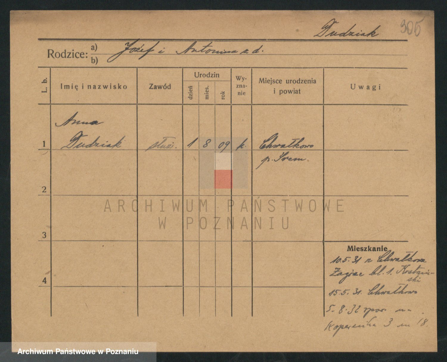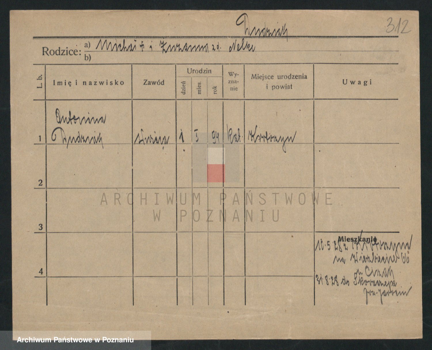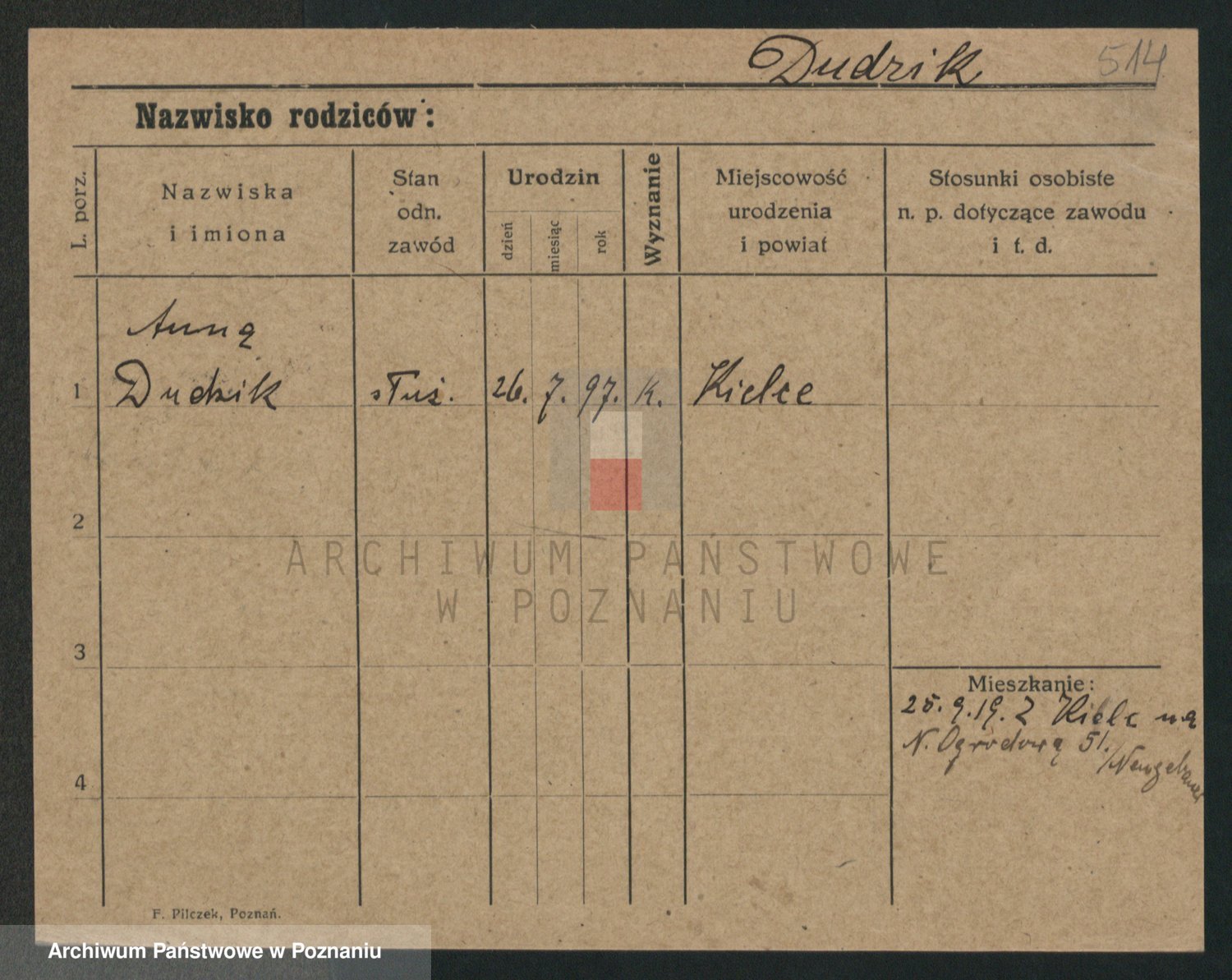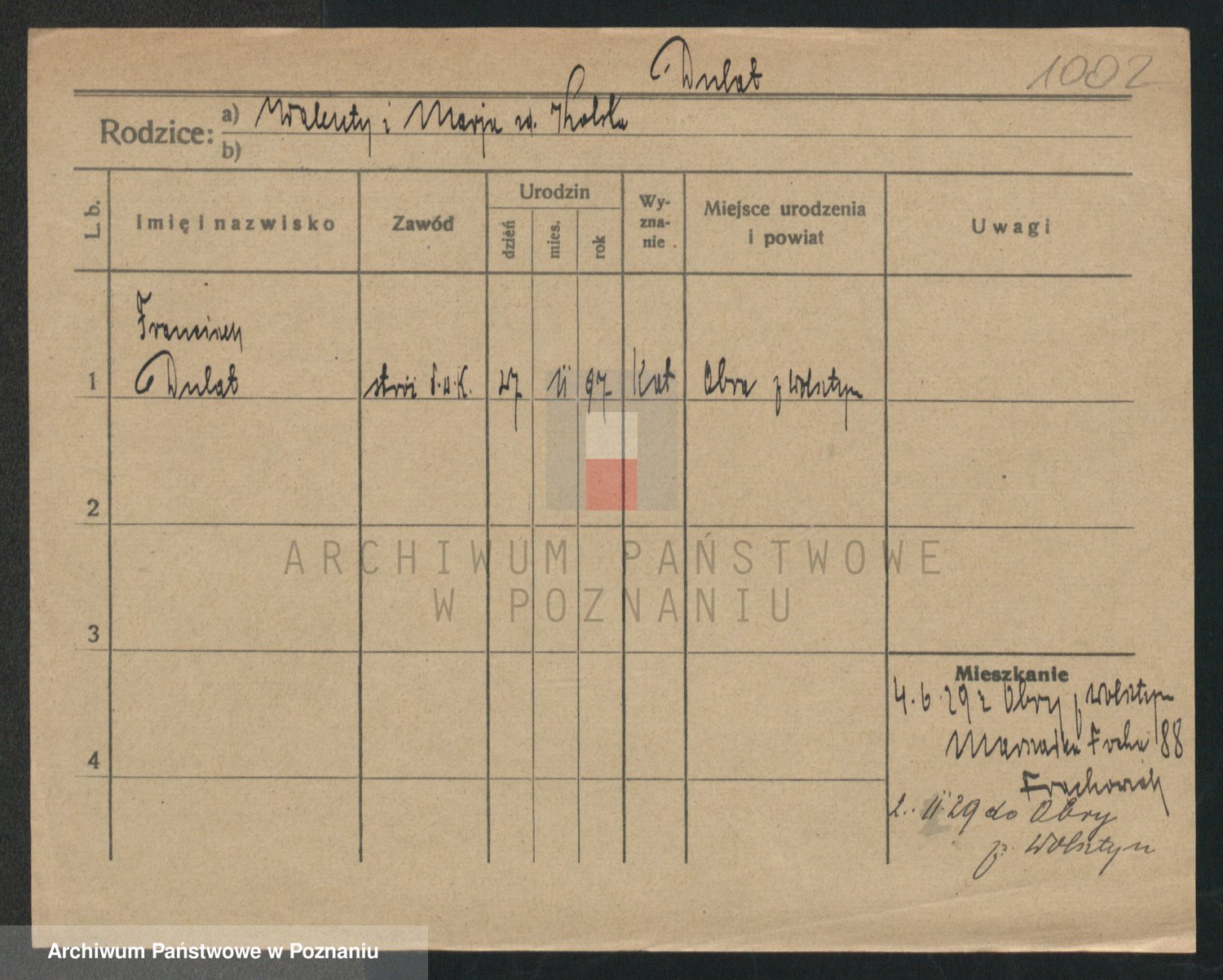 Podgląd karty osobowej dostępny jest po kliknięciu na nazwisko lub ikonkę karty. Można dokonywać powiększenia (ikony na górze) lub przechodzić między kolejnymi skanami (strzałki po bokach).