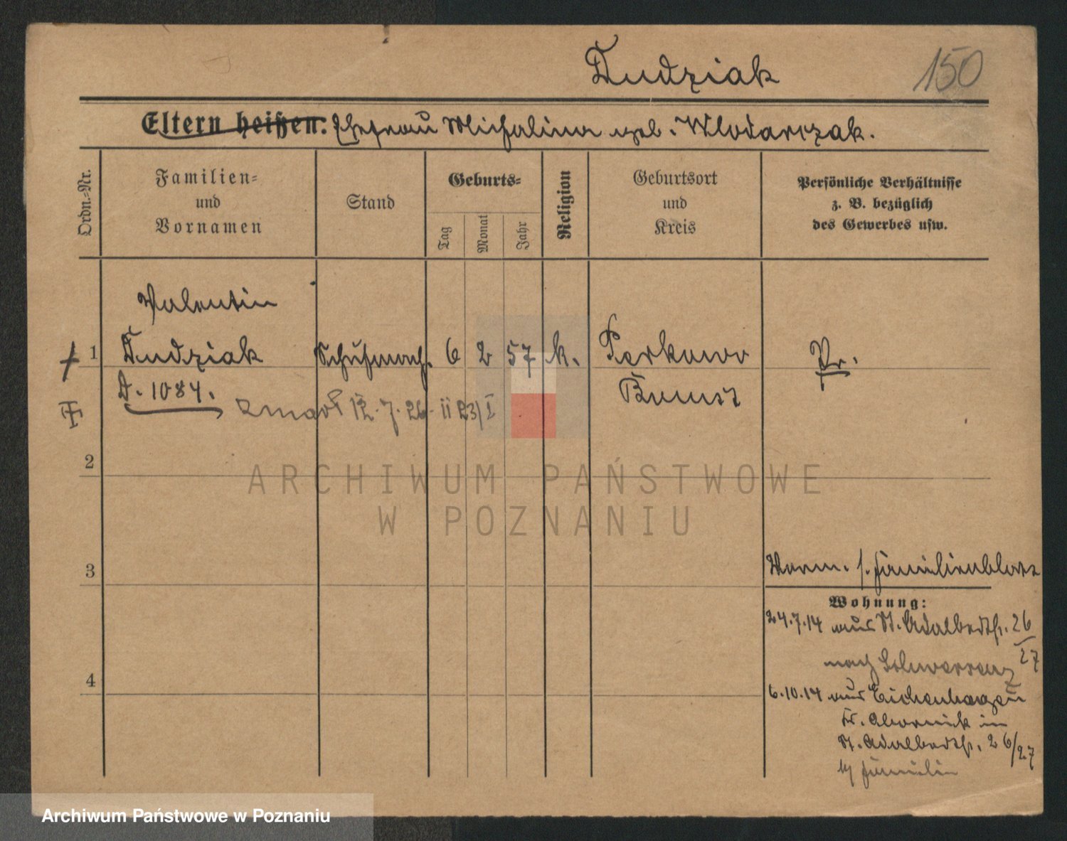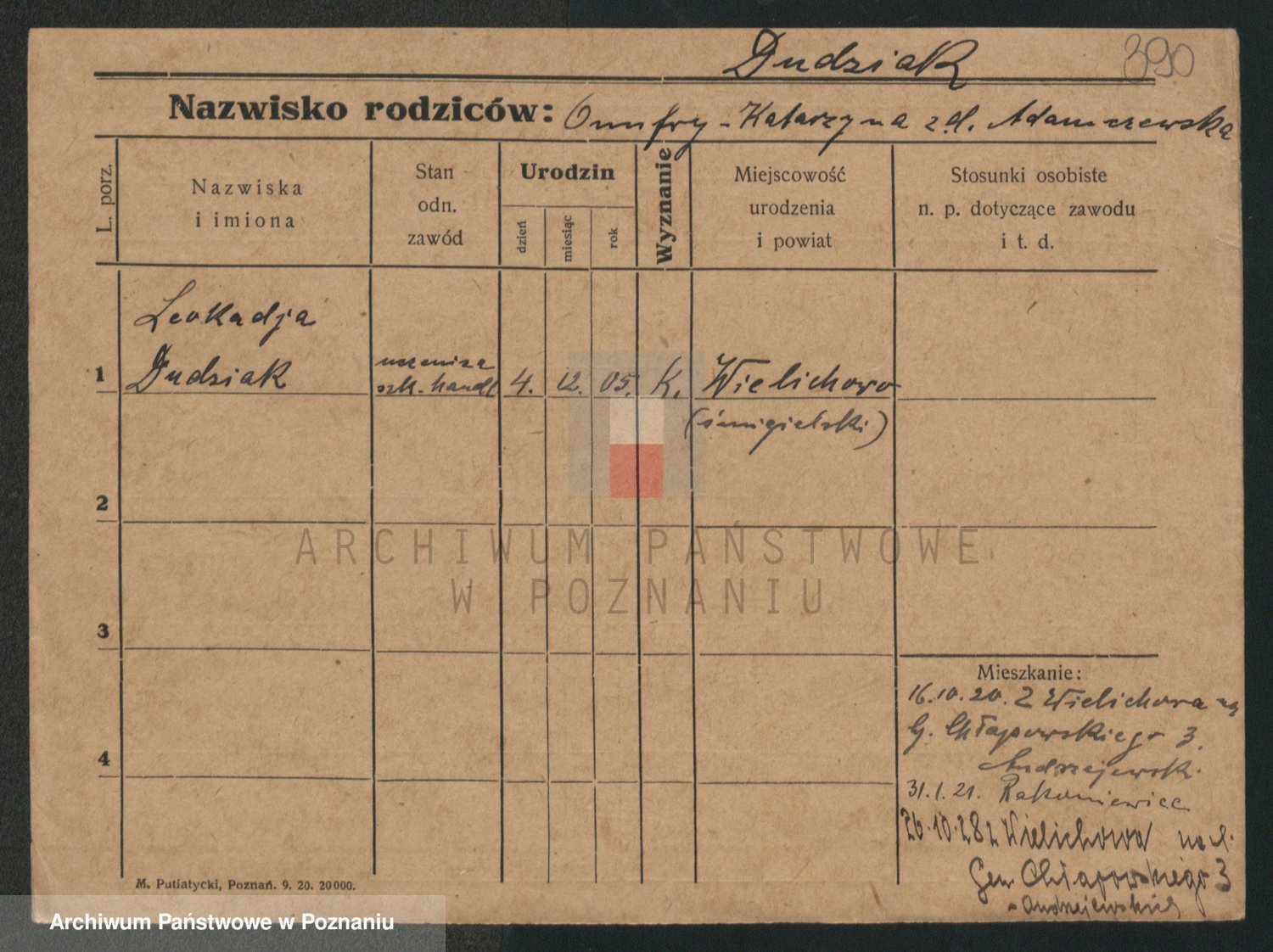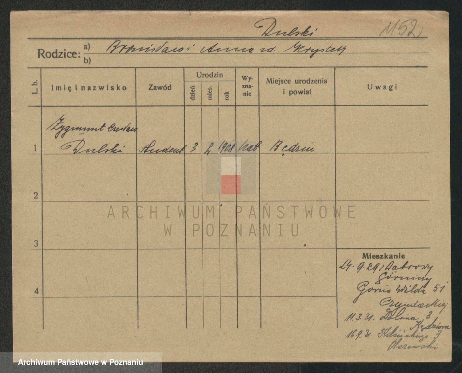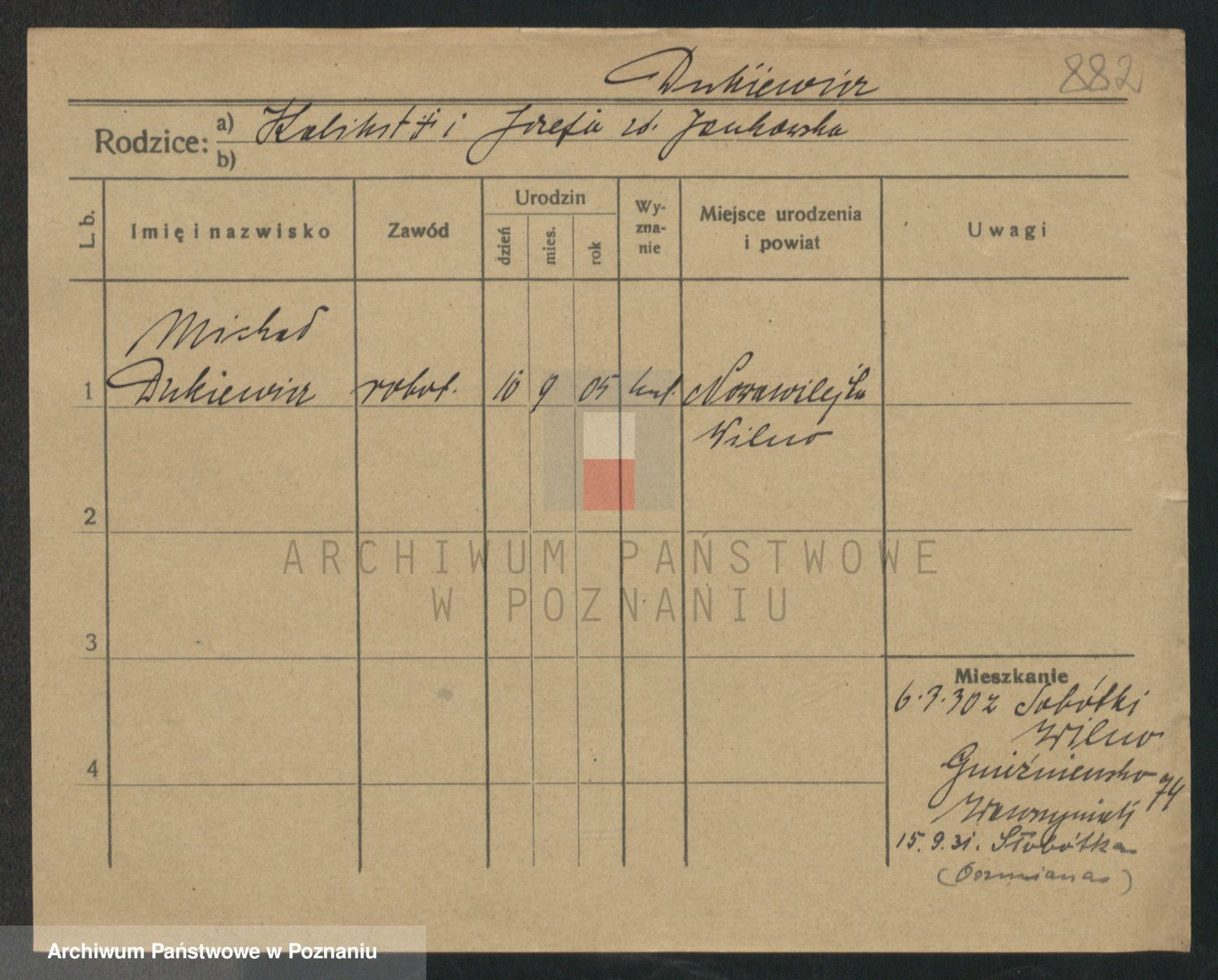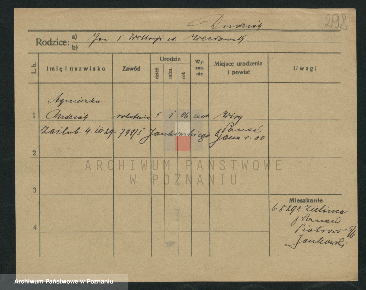 Podgląd karty osobowej dostępny jest po kliknięciu na nazwisko lub ikonkę karty. Można dokonywać powiększenia (ikony na górze) lub przechodzić między kolejnymi skanami (strzałki po bokach).