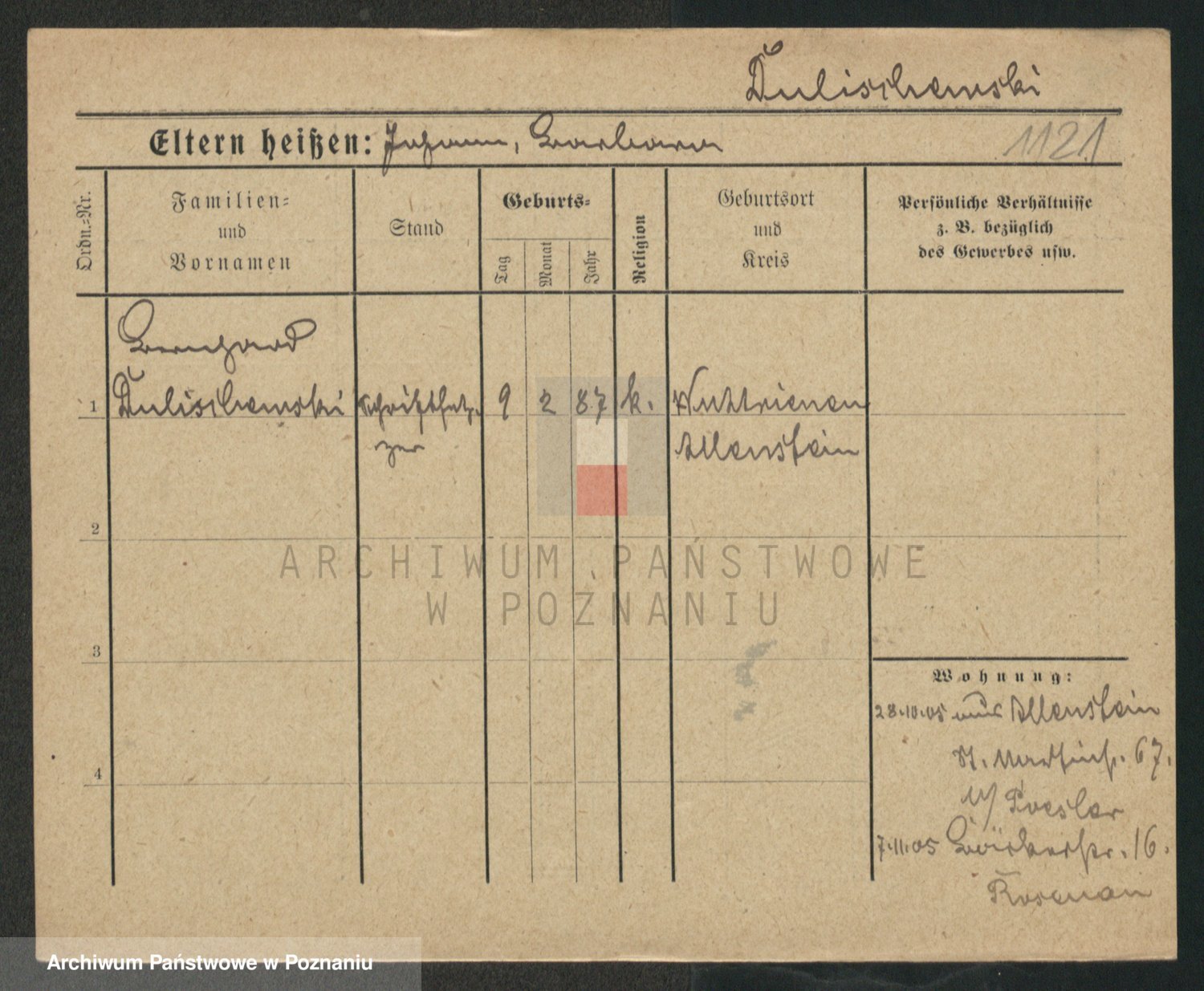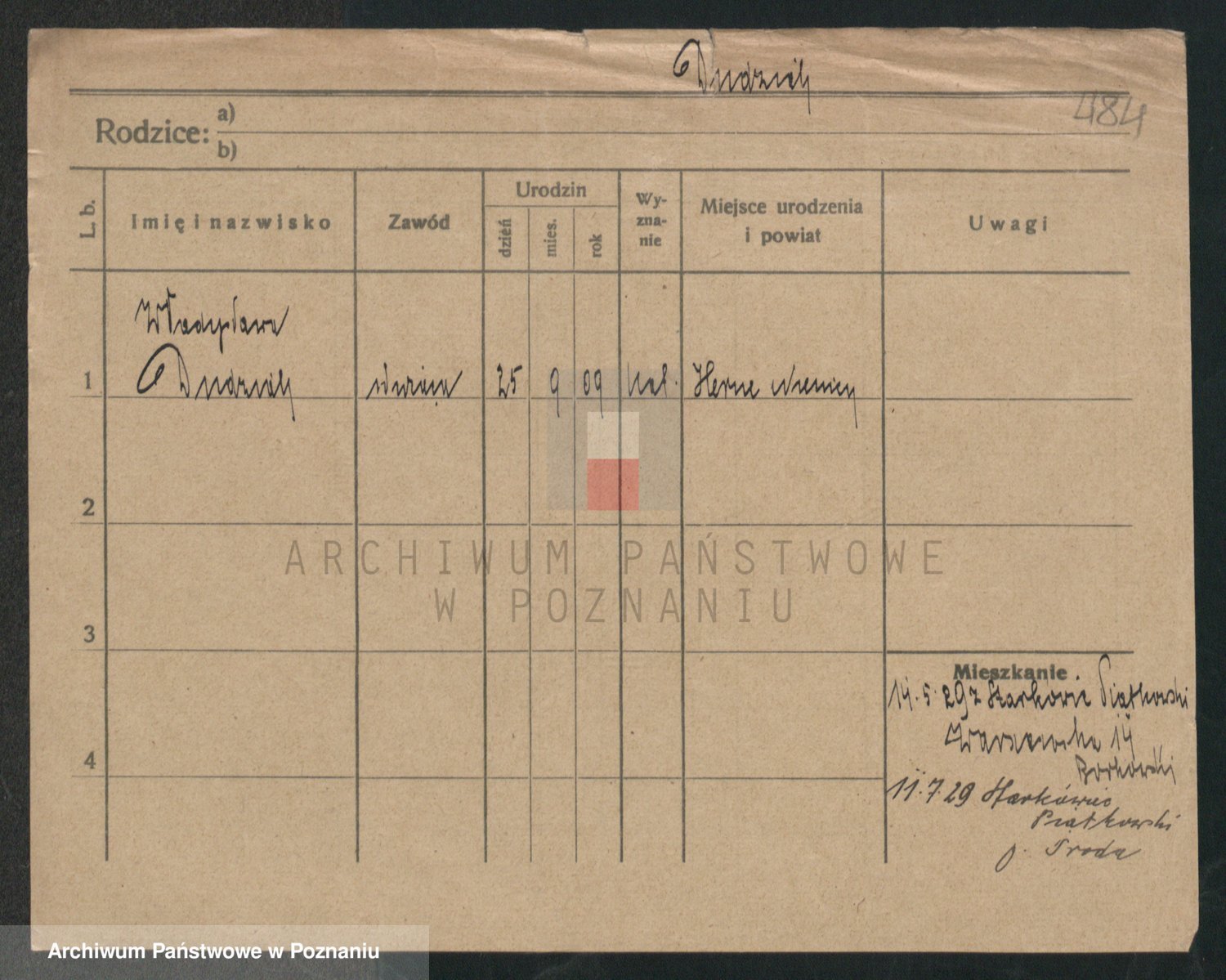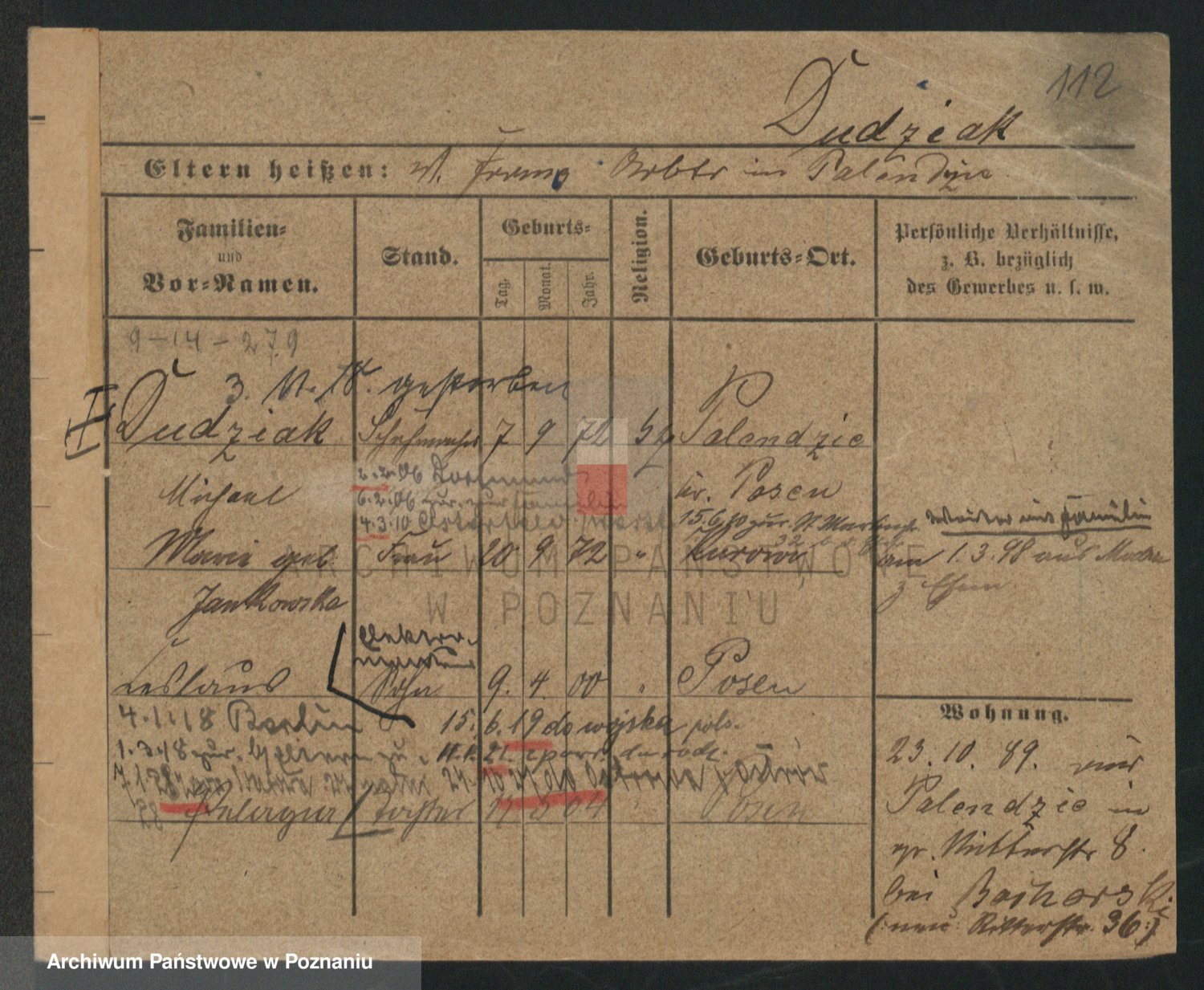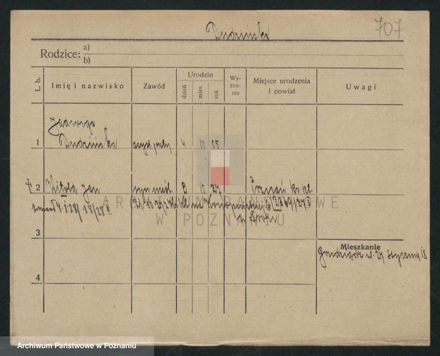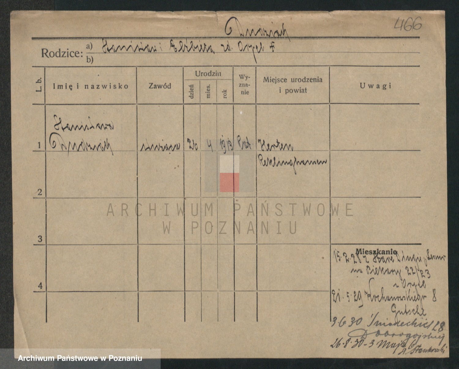 Podgląd karty osobowej dostępny jest po kliknięciu na nazwisko lub ikonkę karty. Można dokonywać powiększenia (ikony na górze) lub przechodzić między kolejnymi skanami (strzałki po bokach).