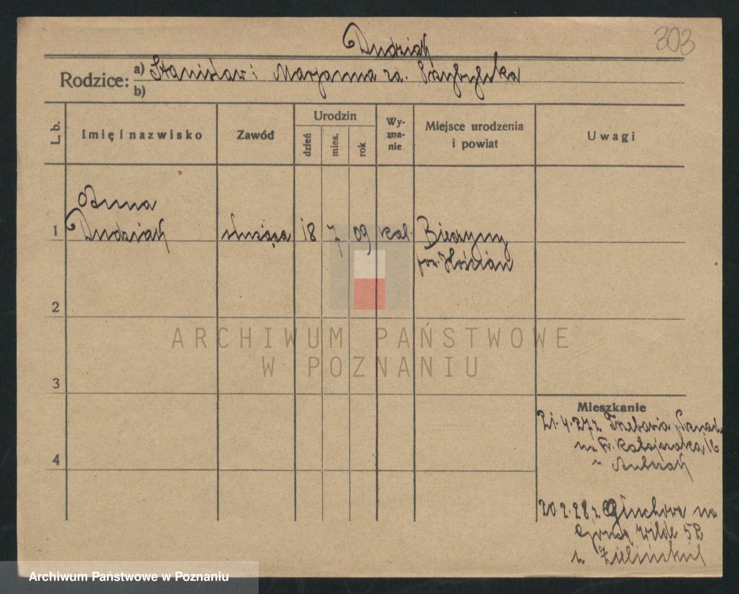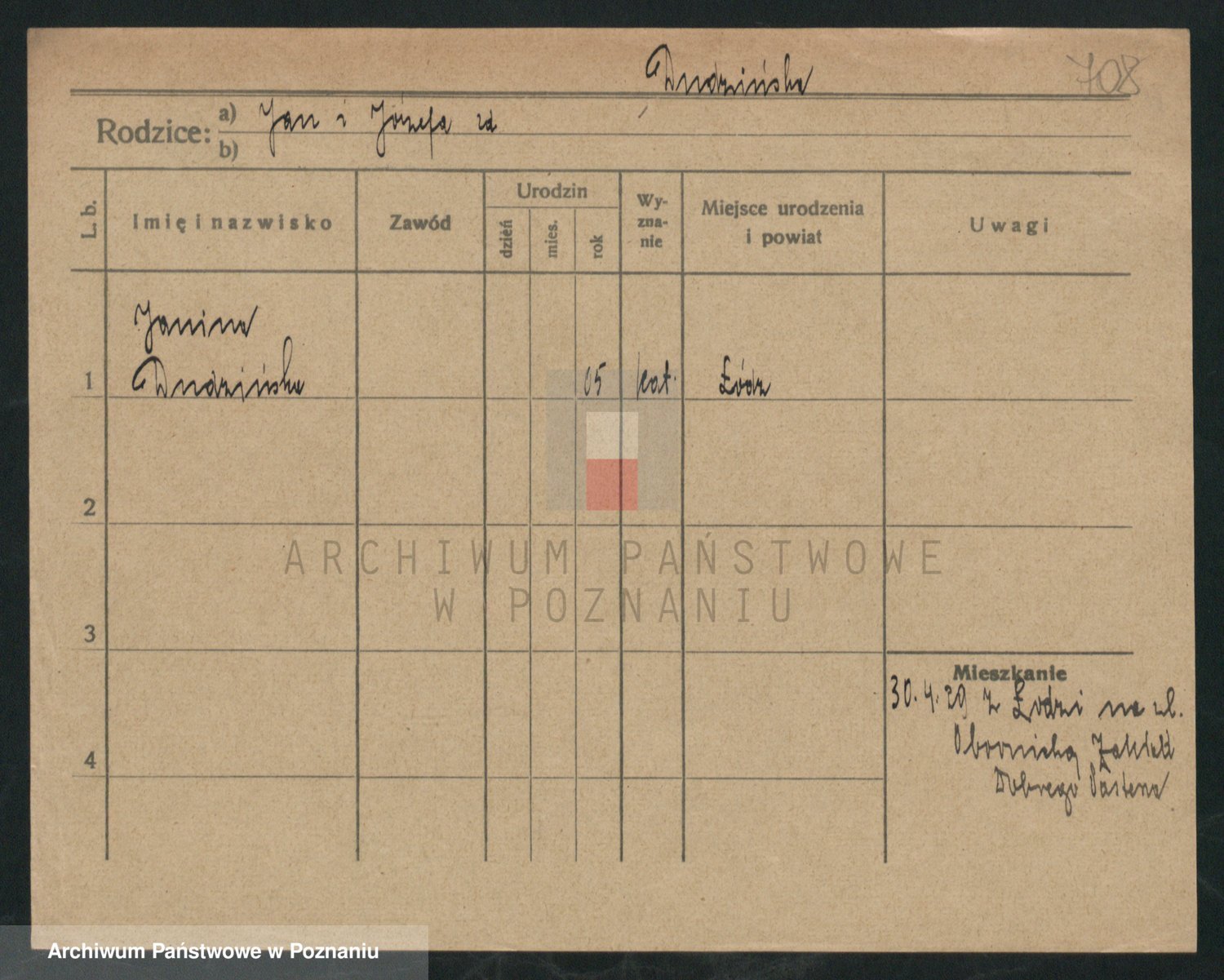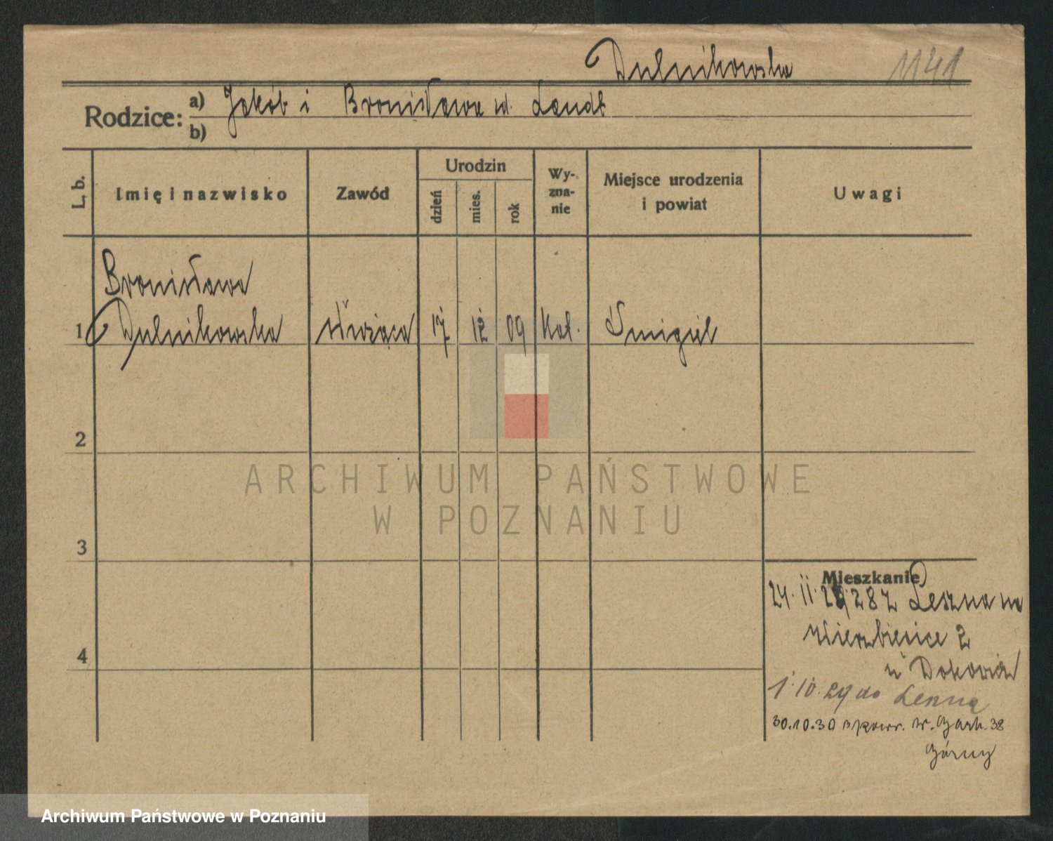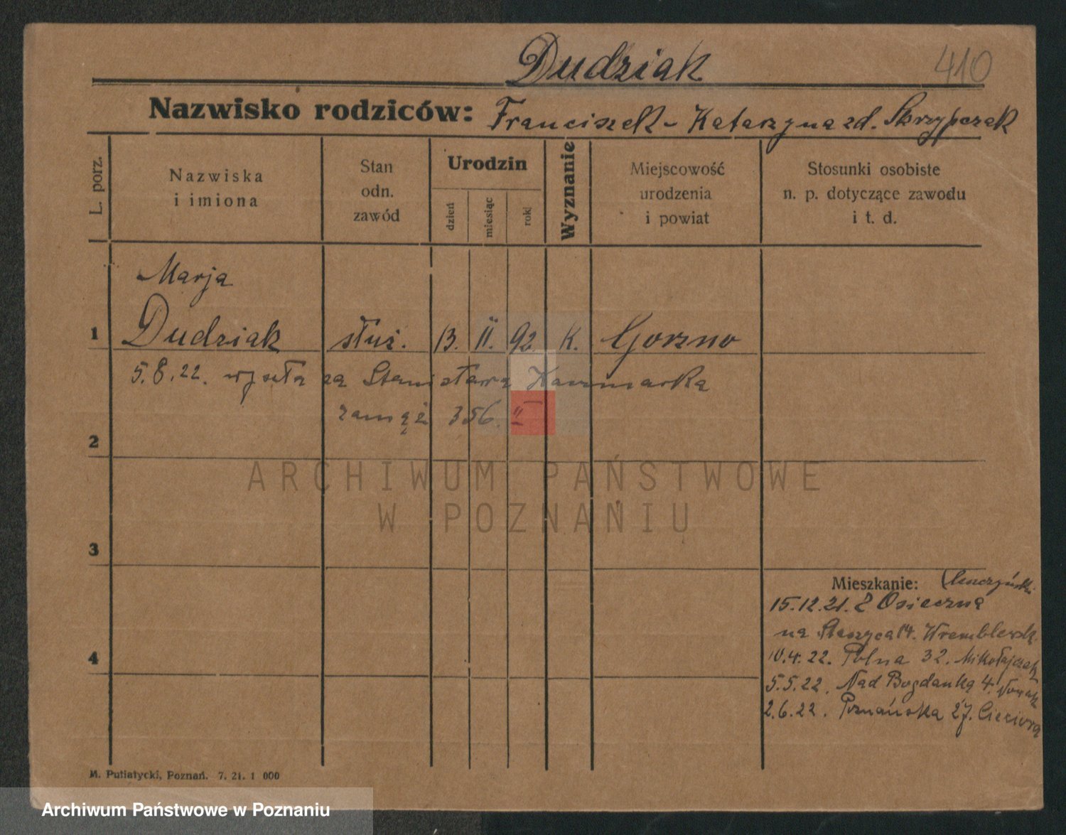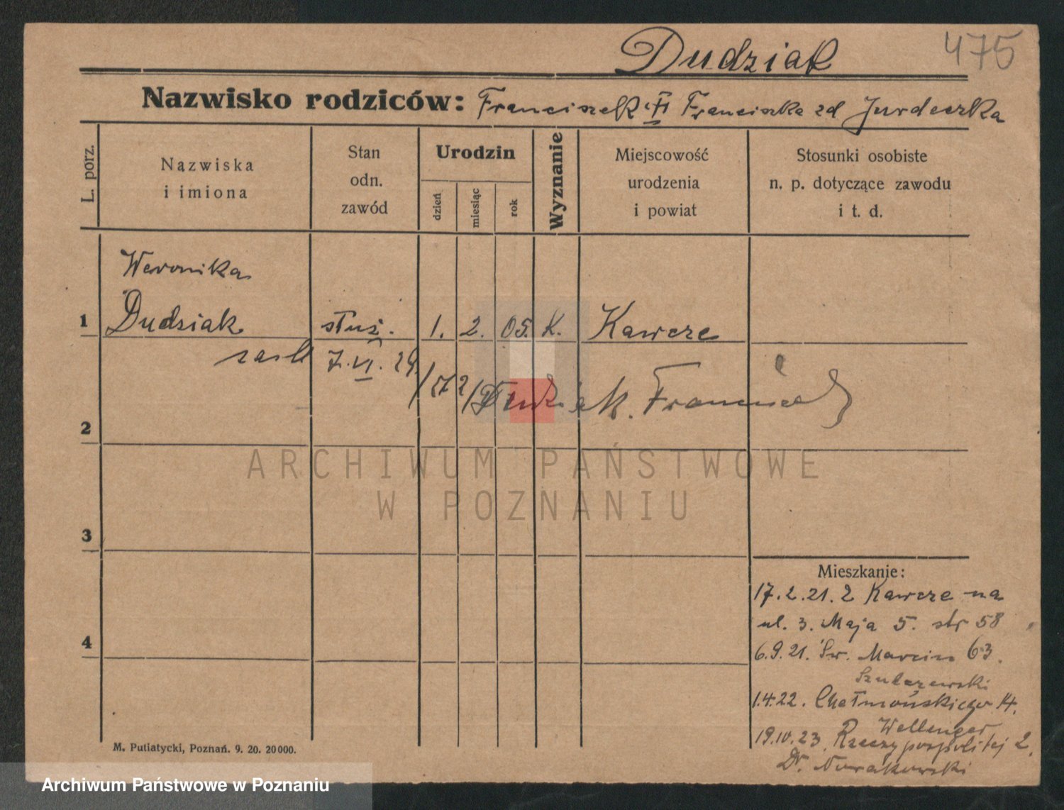 Podgląd karty osobowej dostępny jest po kliknięciu na nazwisko lub ikonkę karty. Można dokonywać powiększenia (ikony na górze) lub przechodzić między kolejnymi skanami (strzałki po bokach).