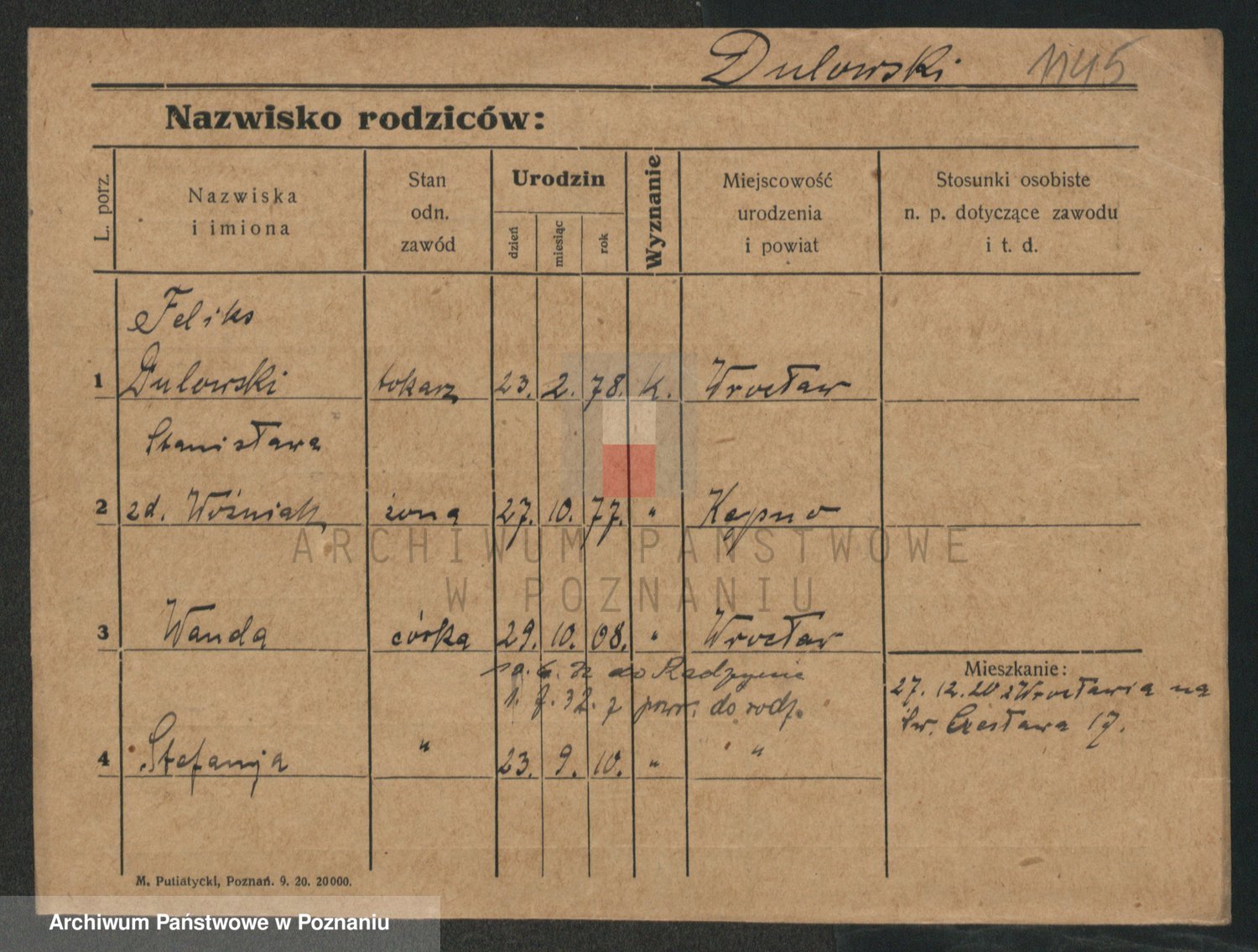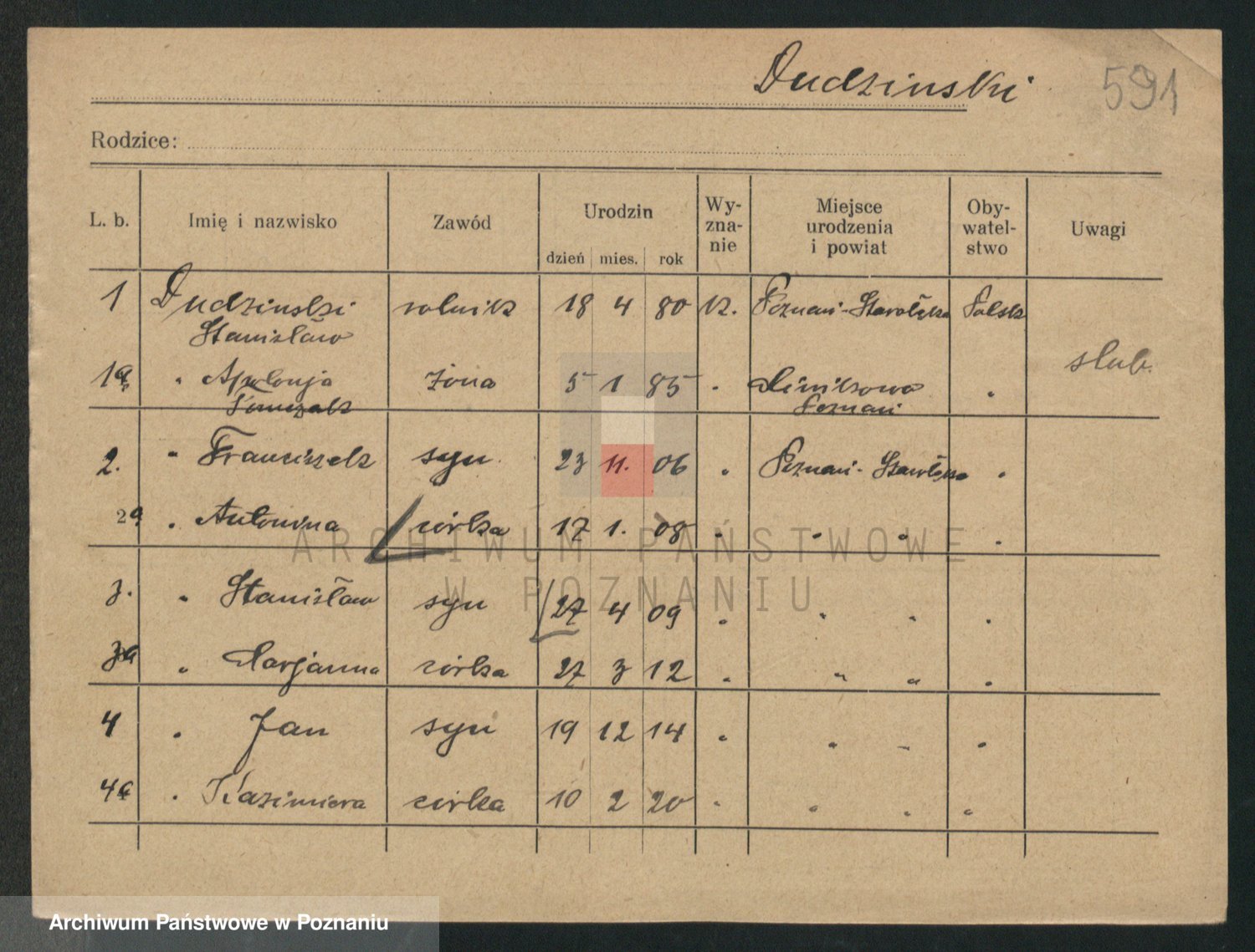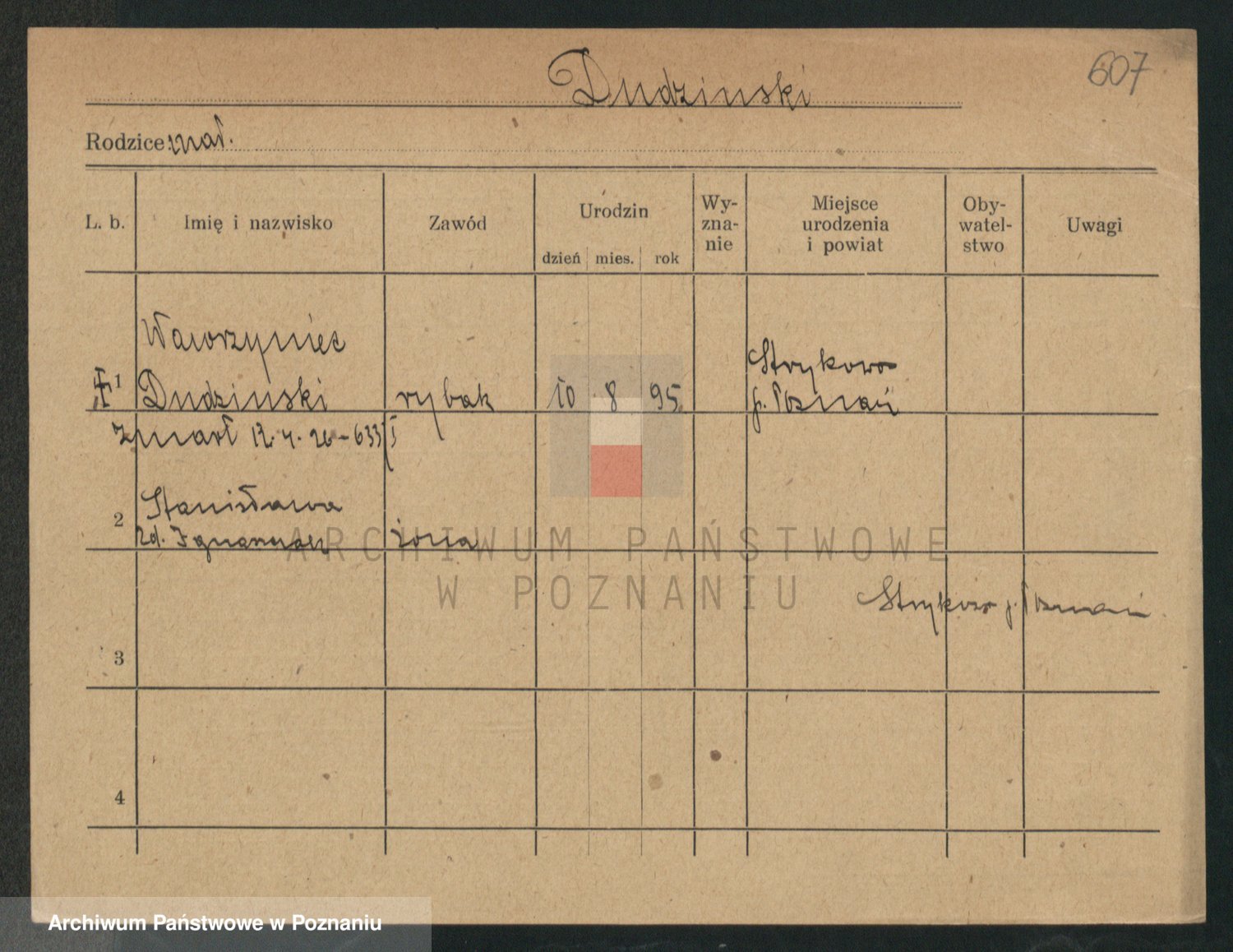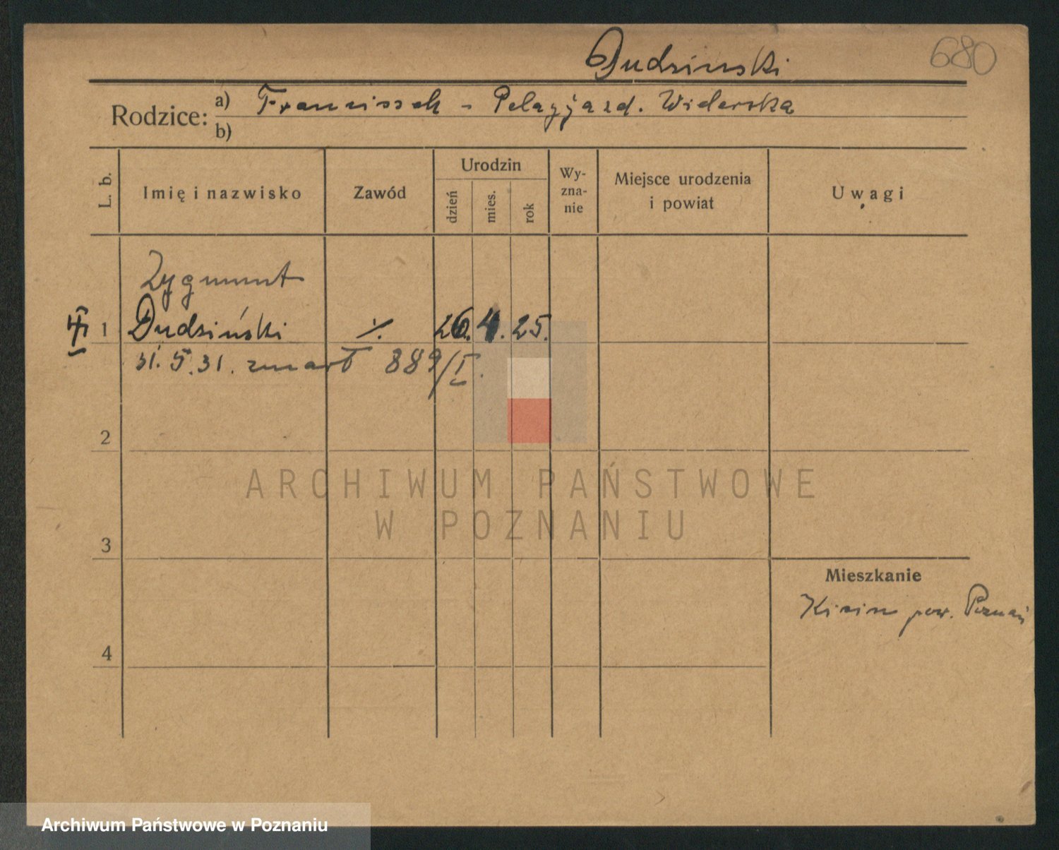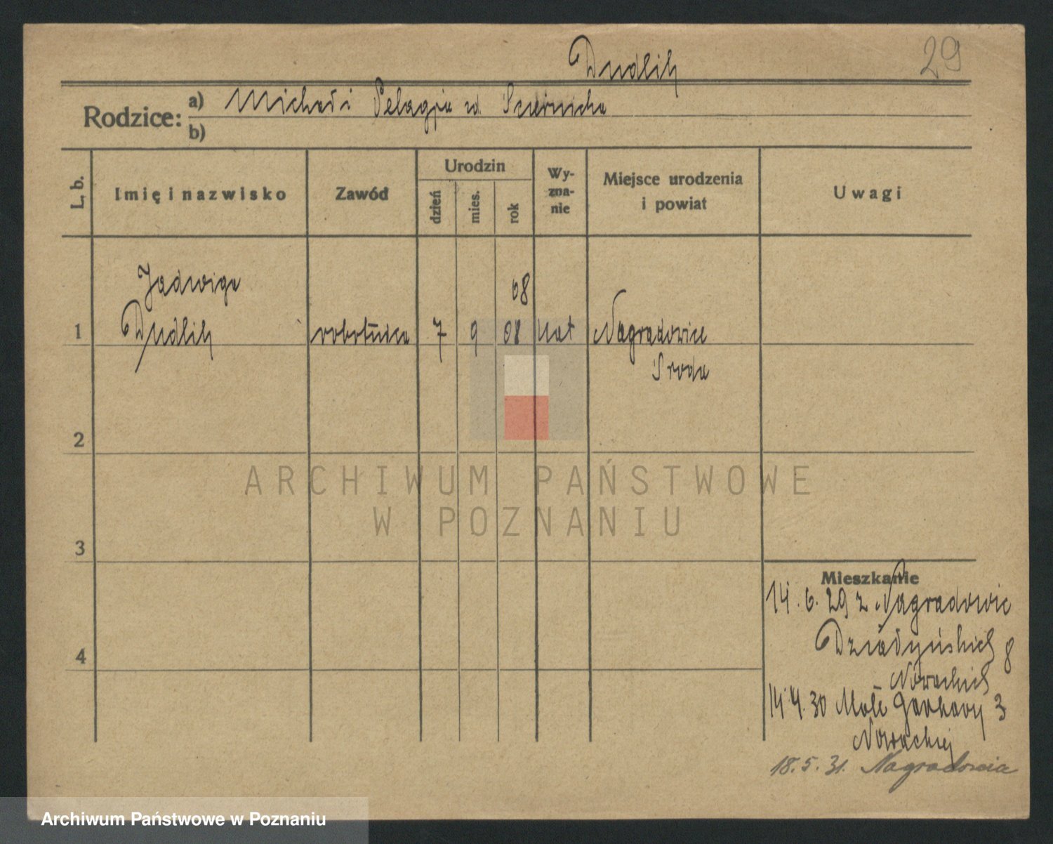 Podgląd karty osobowej dostępny jest po kliknięciu na nazwisko lub ikonkę karty. Można dokonywać powiększenia (ikony na górze) lub przechodzić między kolejnymi skanami (strzałki po bokach).
