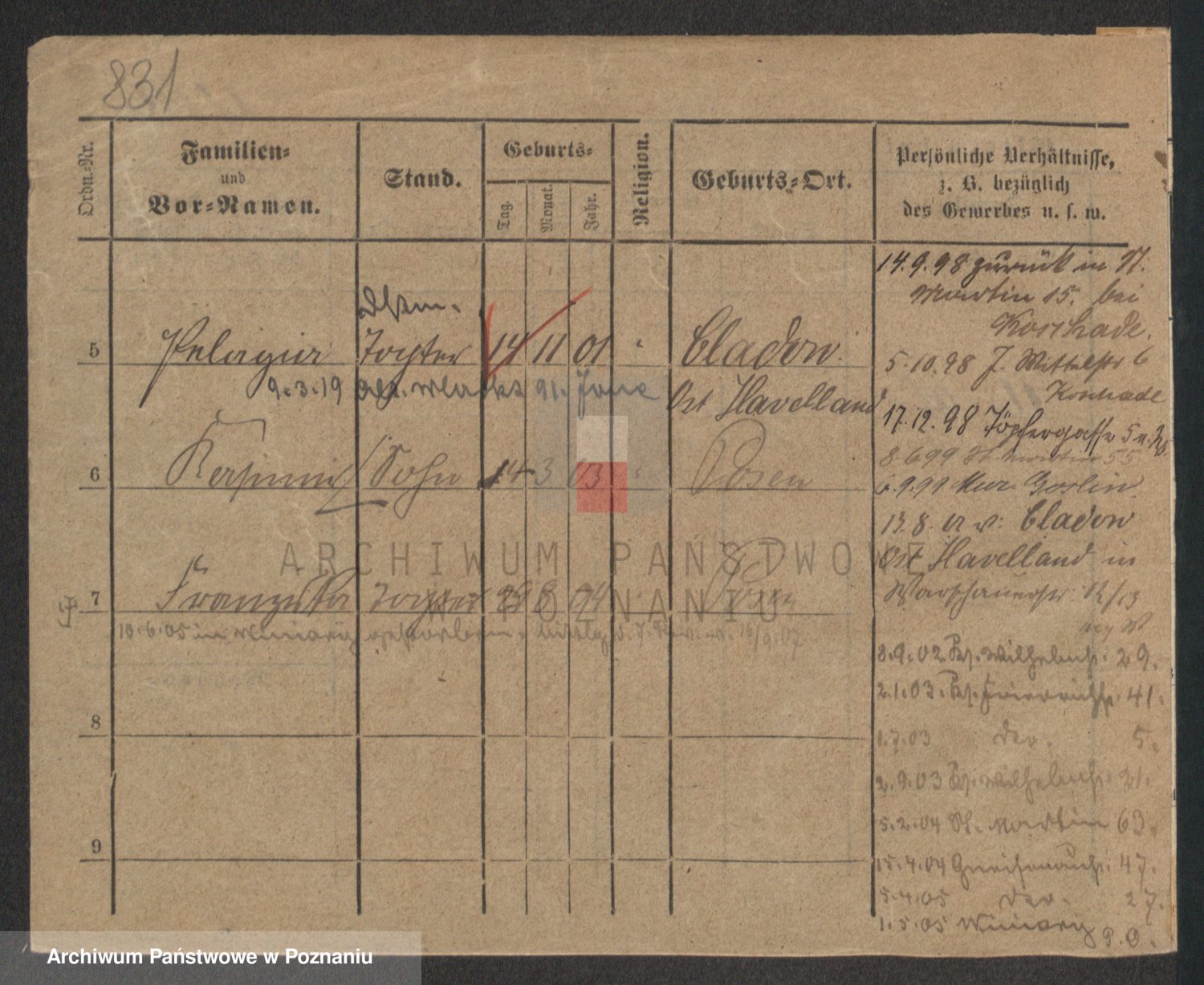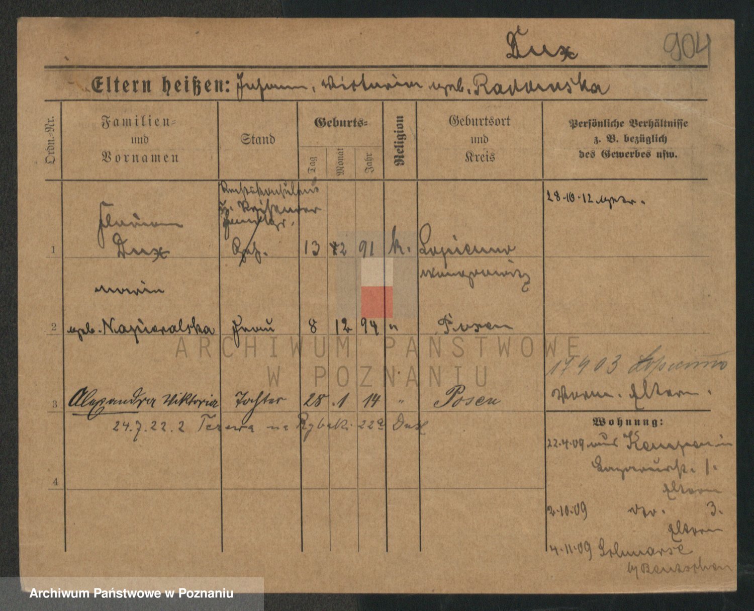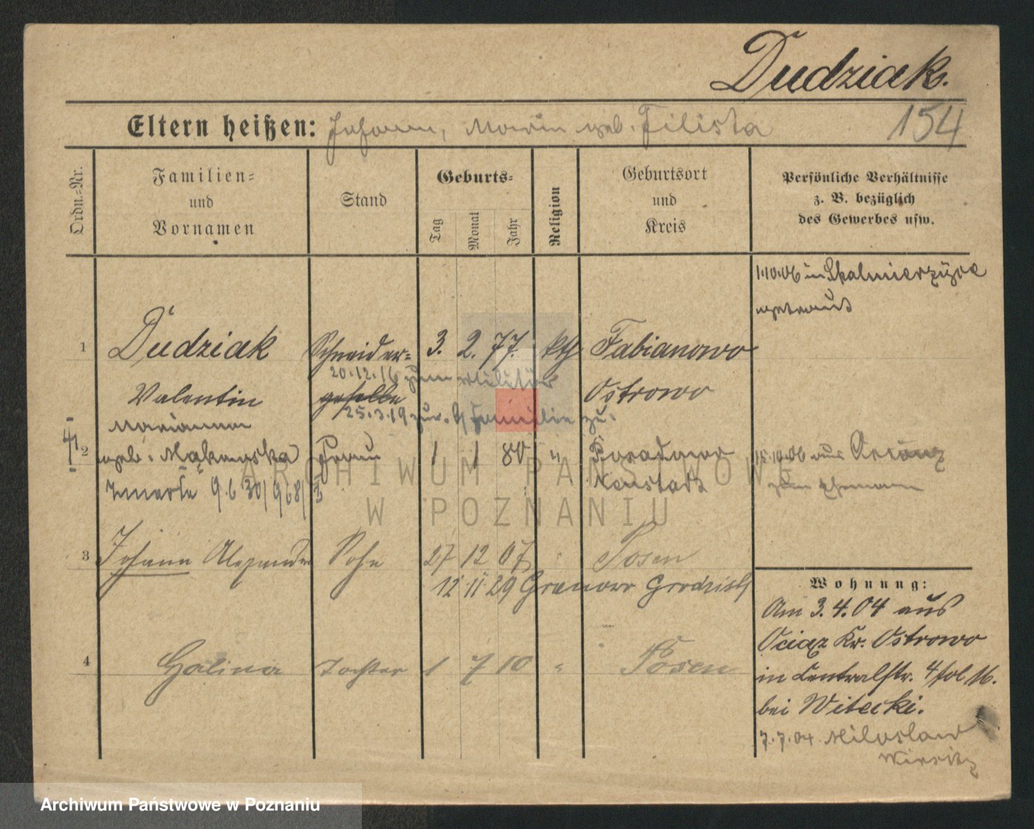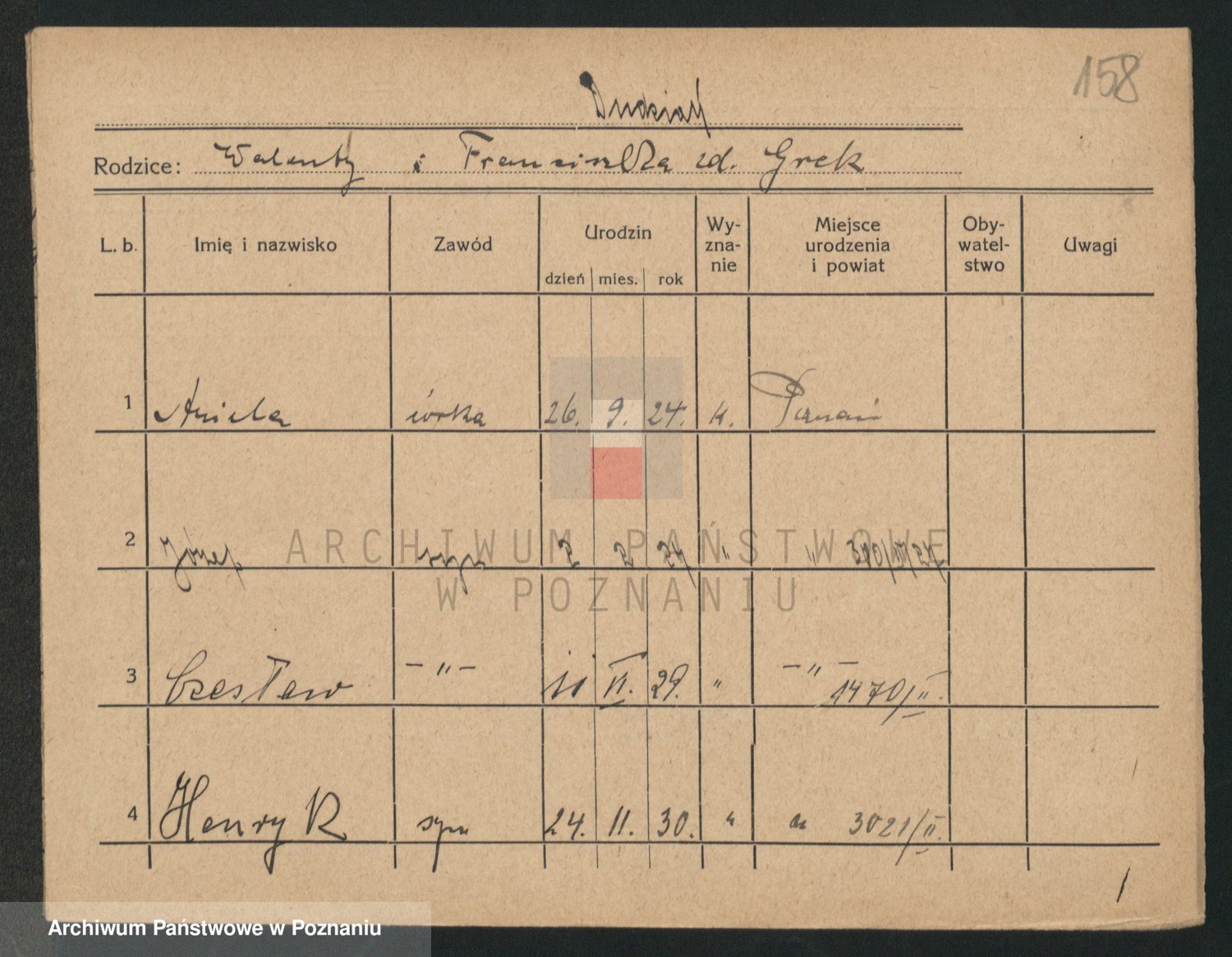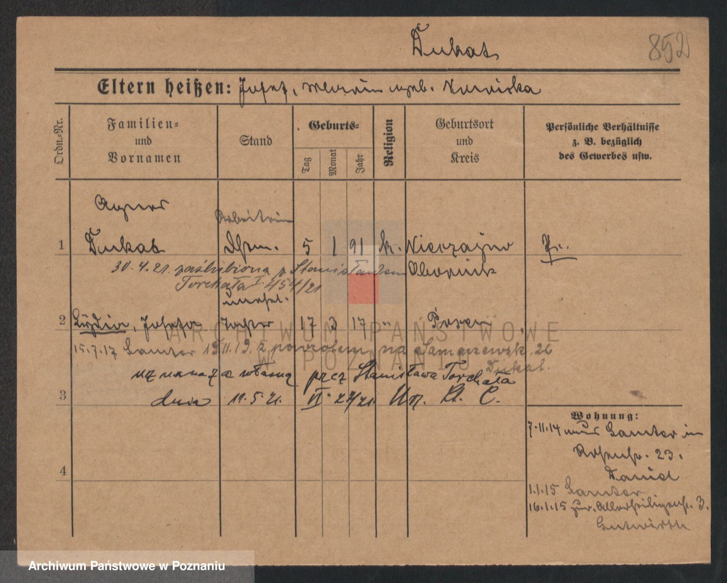 Podgląd karty osobowej dostępny jest po kliknięciu na nazwisko lub ikonkę karty. Można dokonywać powiększenia (ikony na górze) lub przechodzić między kolejnymi skanami (strzałki po bokach).