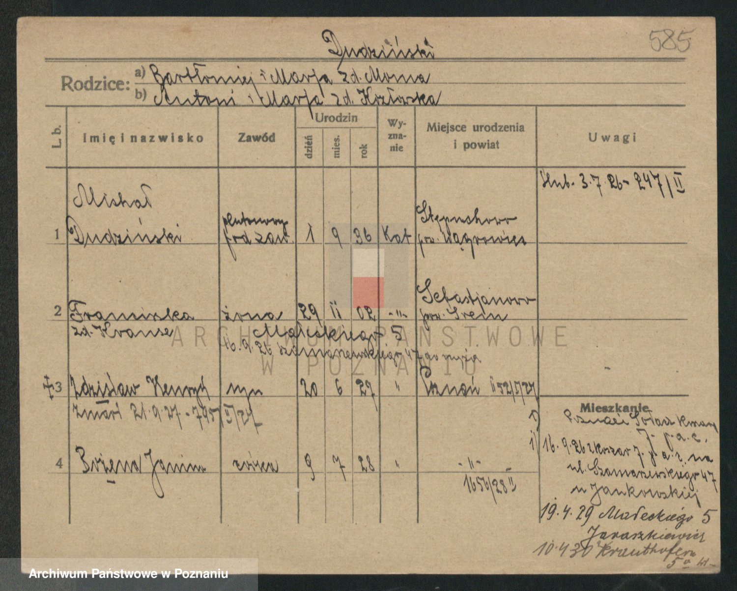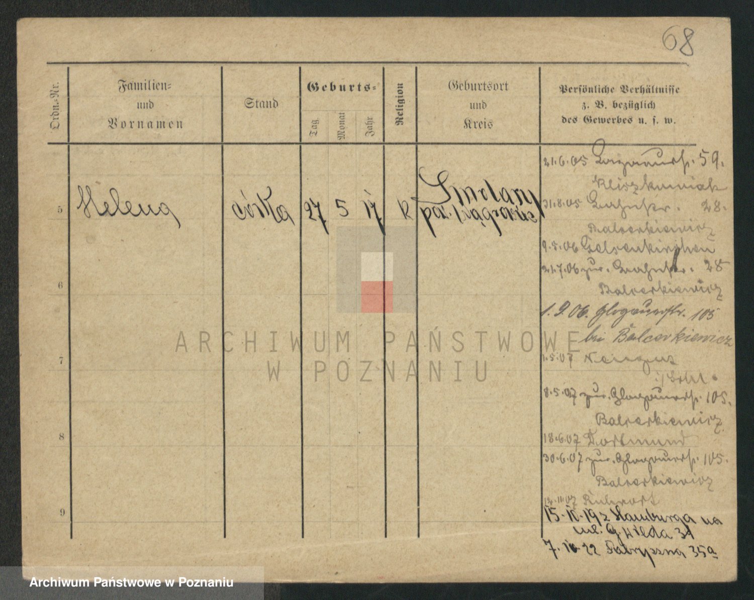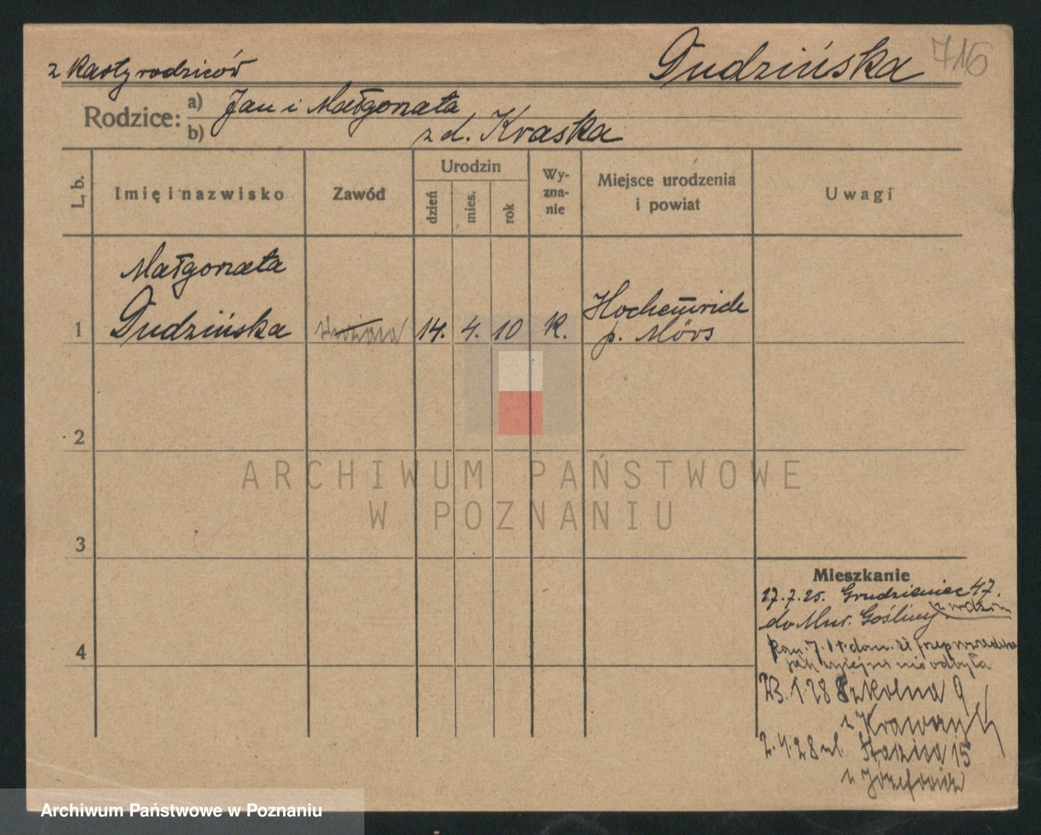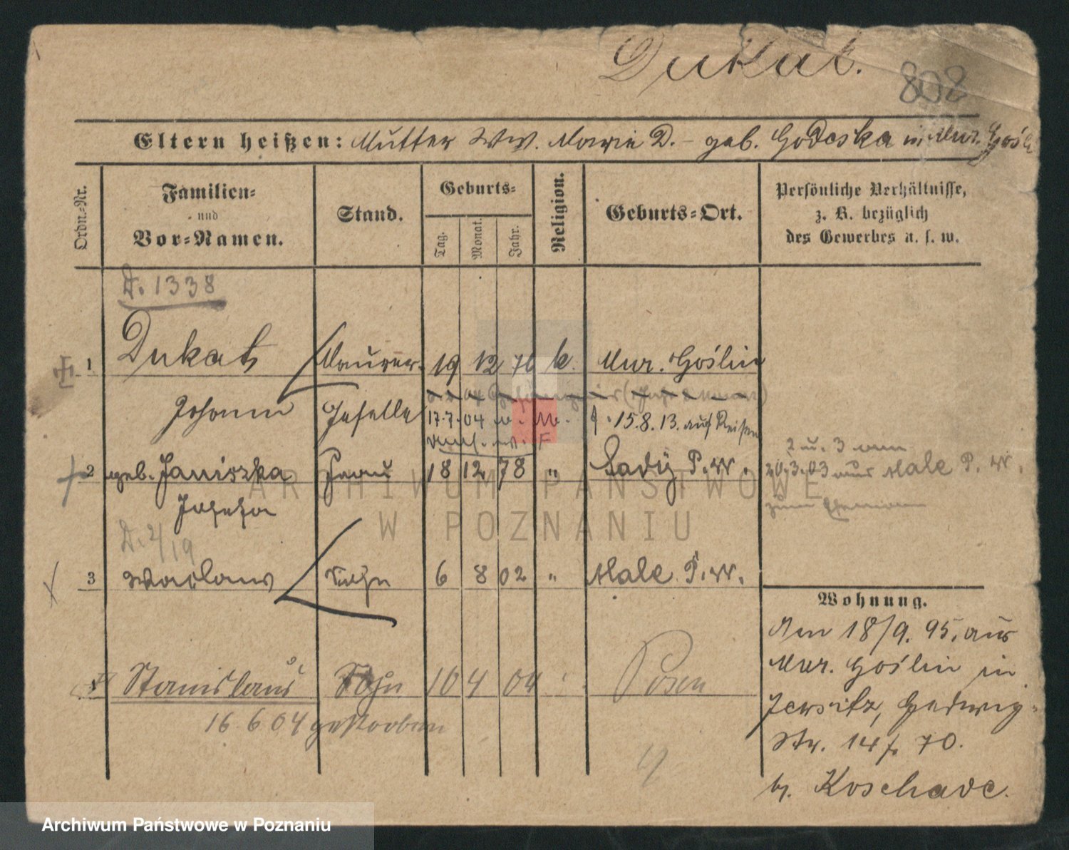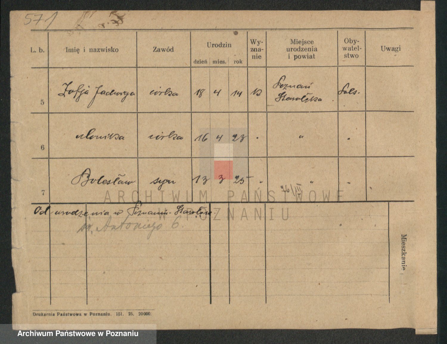 Podgląd karty osobowej dostępny jest po kliknięciu na nazwisko lub ikonkę karty. Można dokonywać powiększenia (ikony na górze) lub przechodzić między kolejnymi skanami (strzałki po bokach).