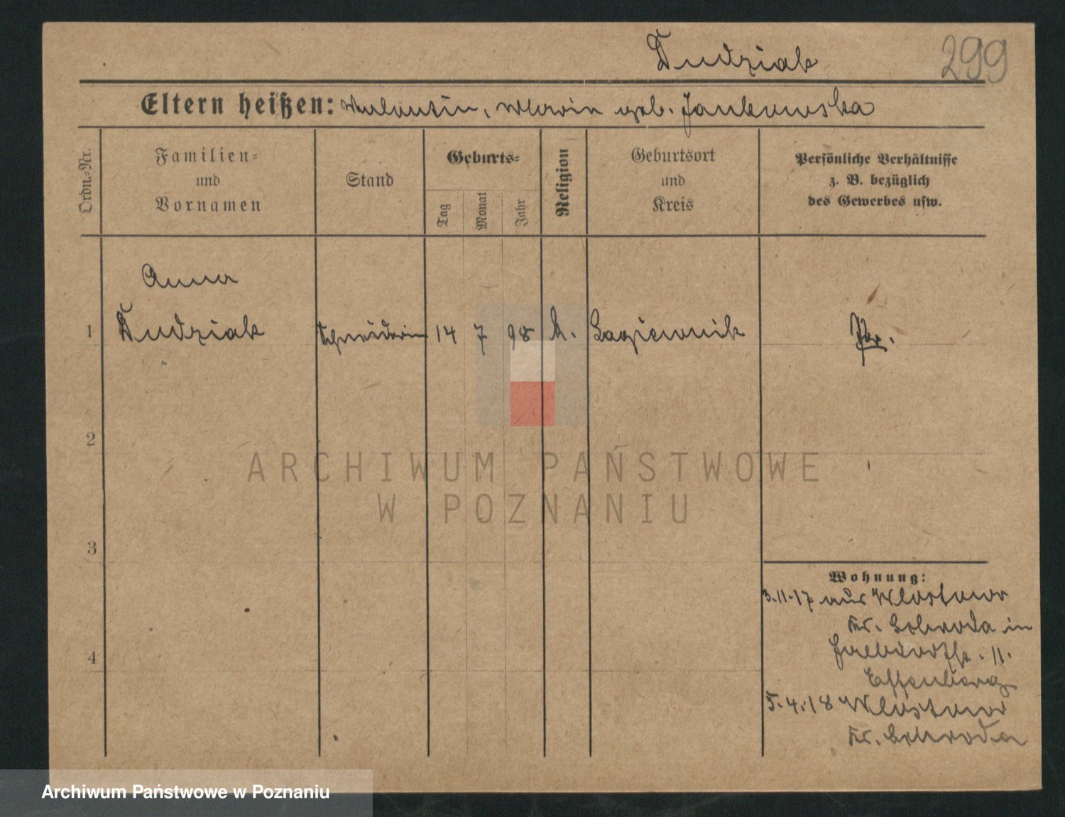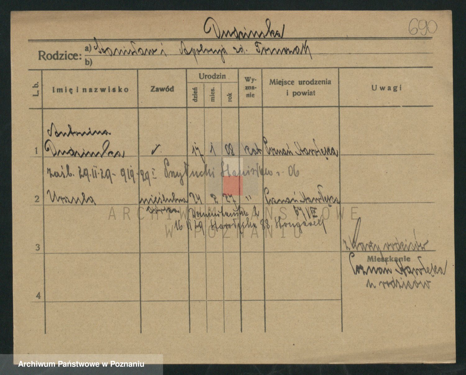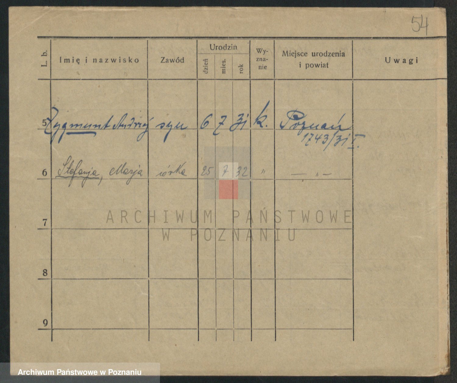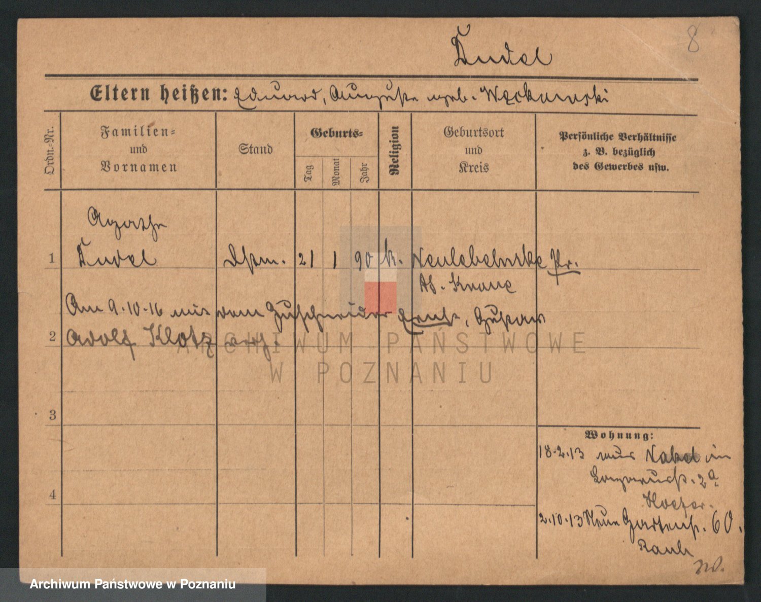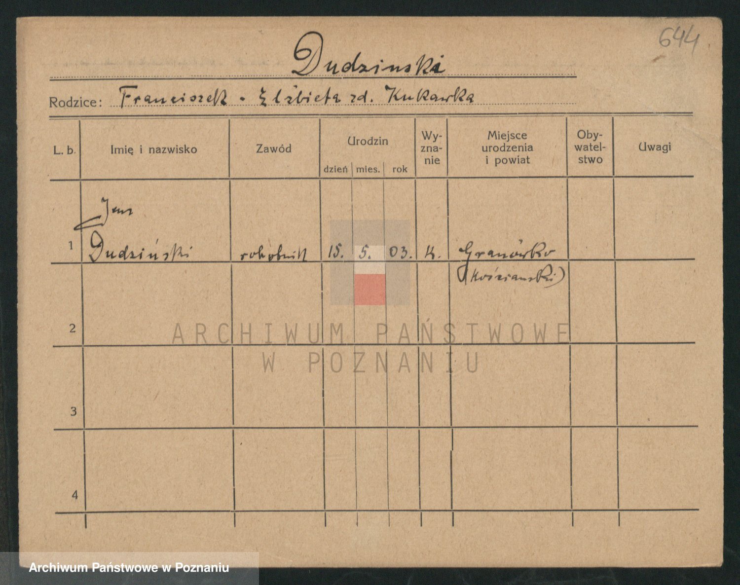 Podgląd karty osobowej dostępny jest po kliknięciu na nazwisko lub ikonkę karty. Można dokonywać powiększenia (ikony na górze) lub przechodzić między kolejnymi skanami (strzałki po bokach).