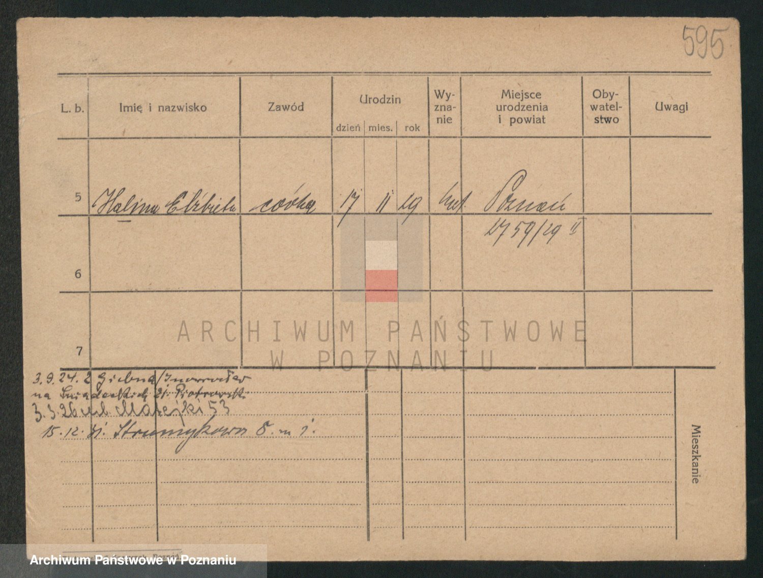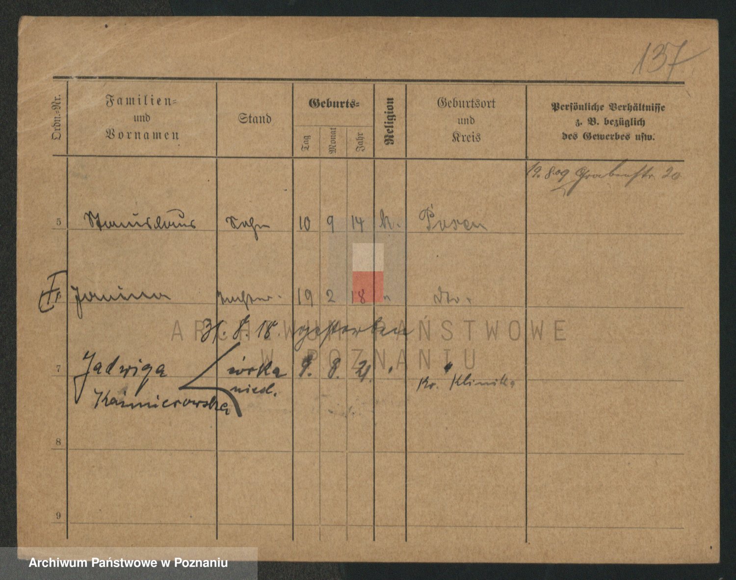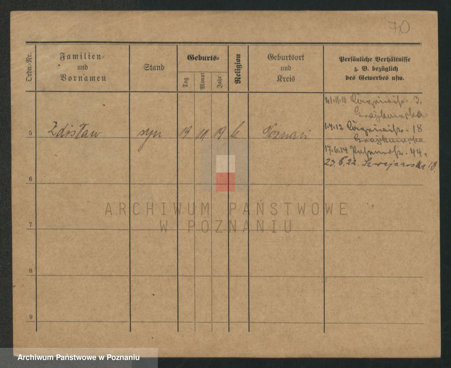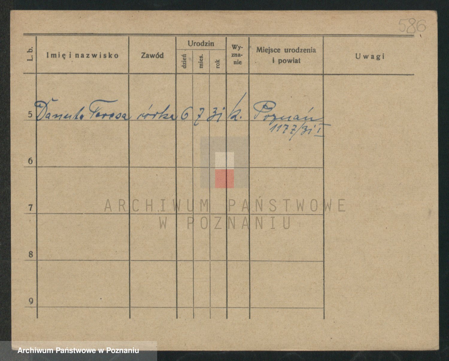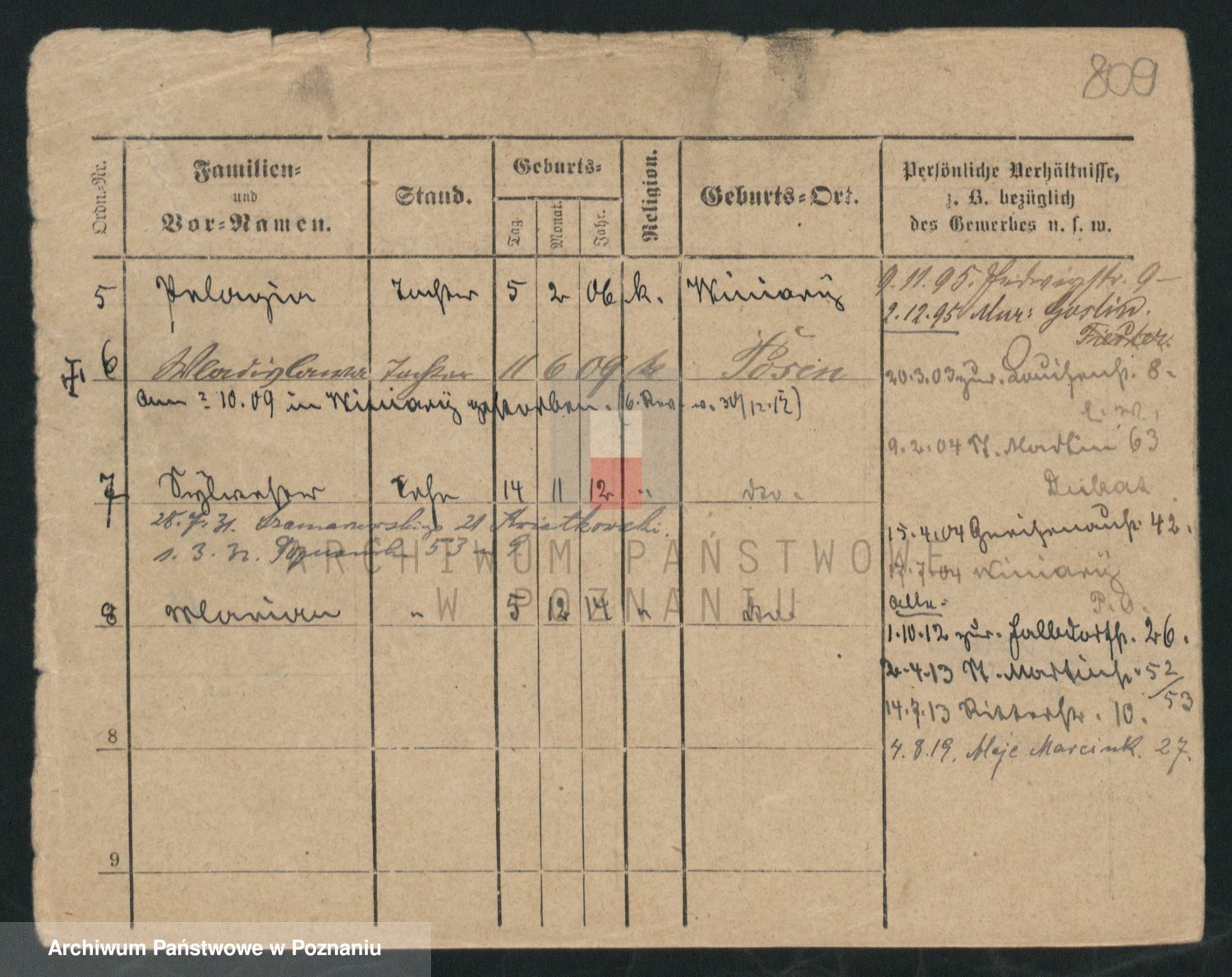 Podgląd karty osobowej dostępny jest po kliknięciu na nazwisko lub ikonkę karty. Można dokonywać powiększenia (ikony na górze) lub przechodzić między kolejnymi skanami (strzałki po bokach).