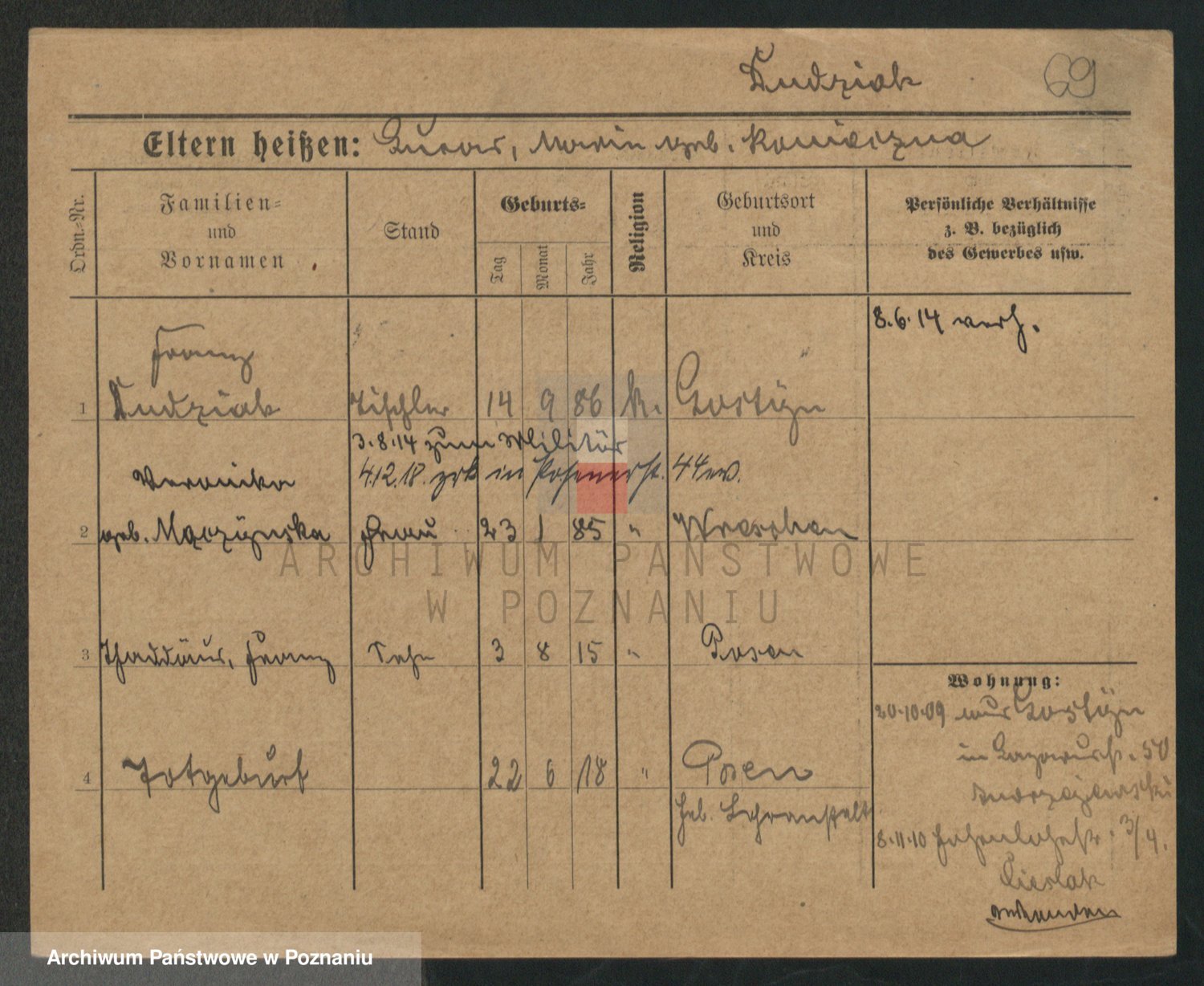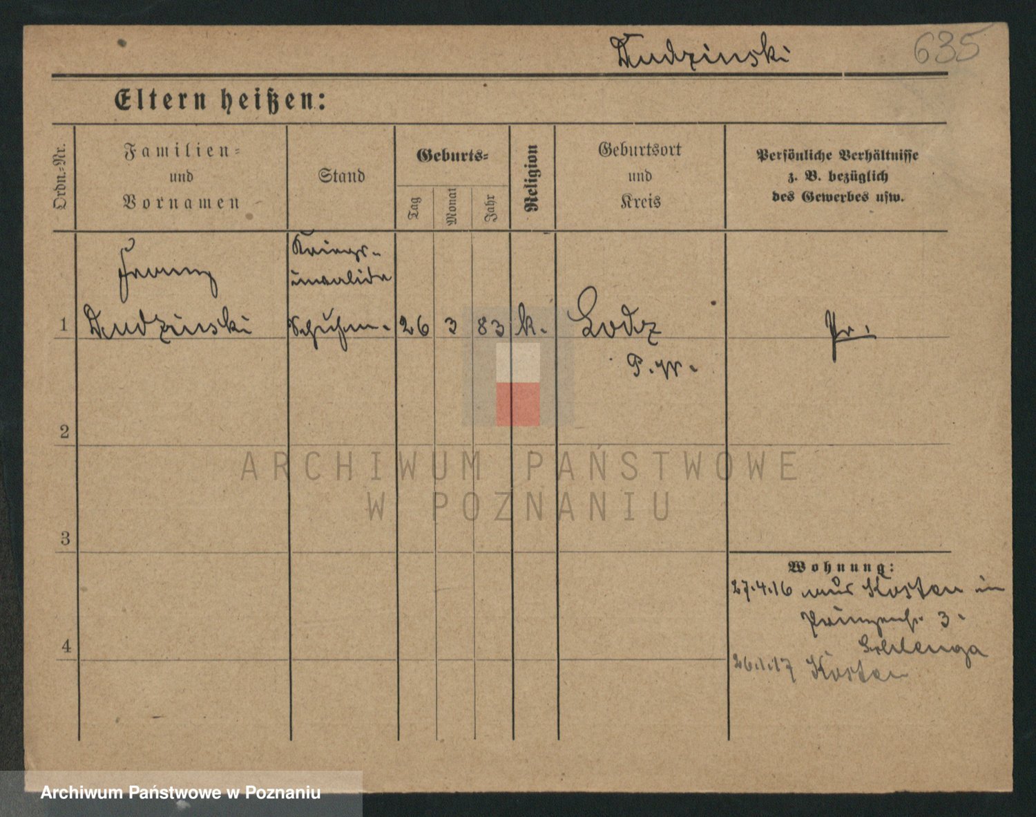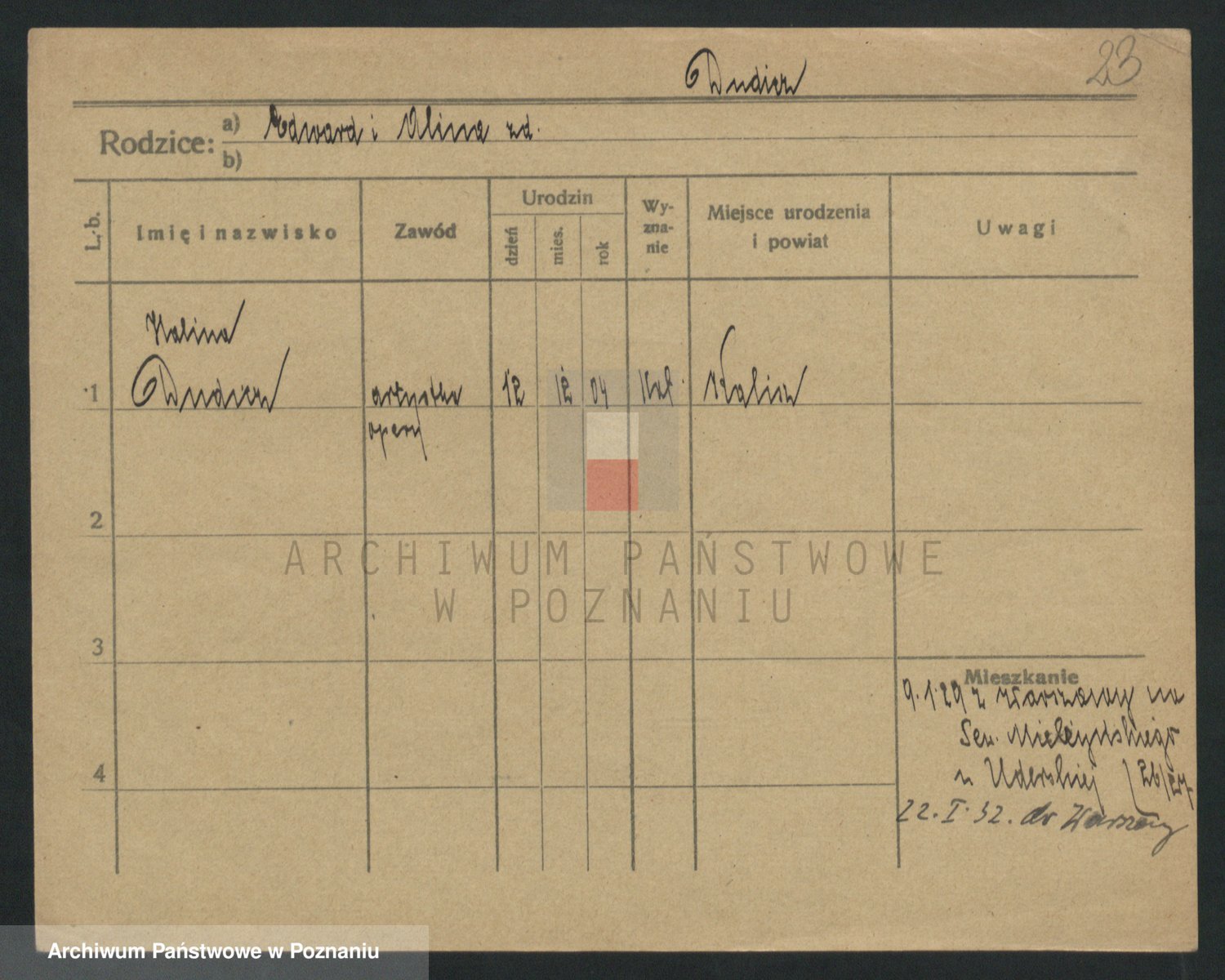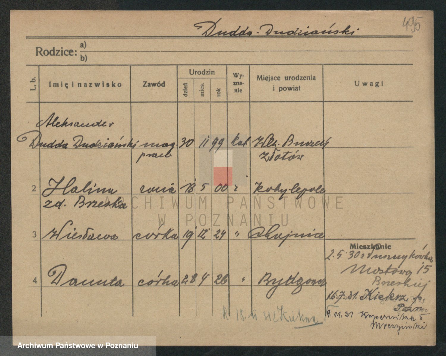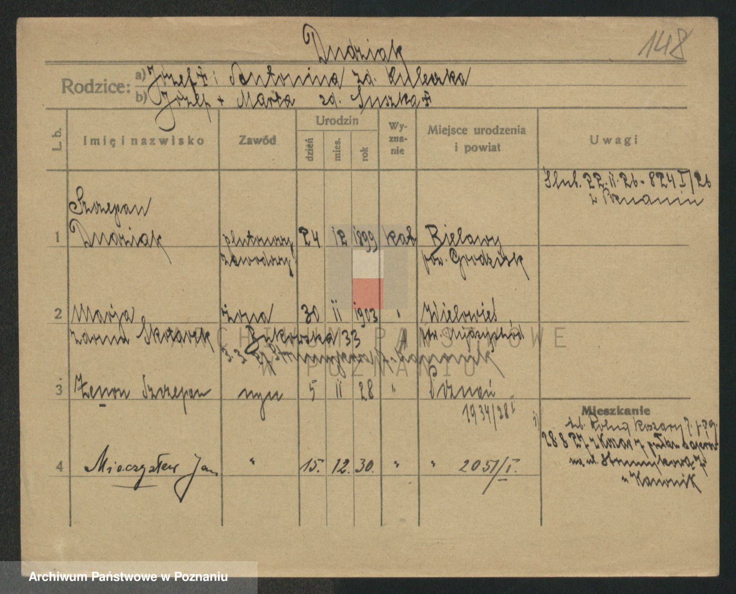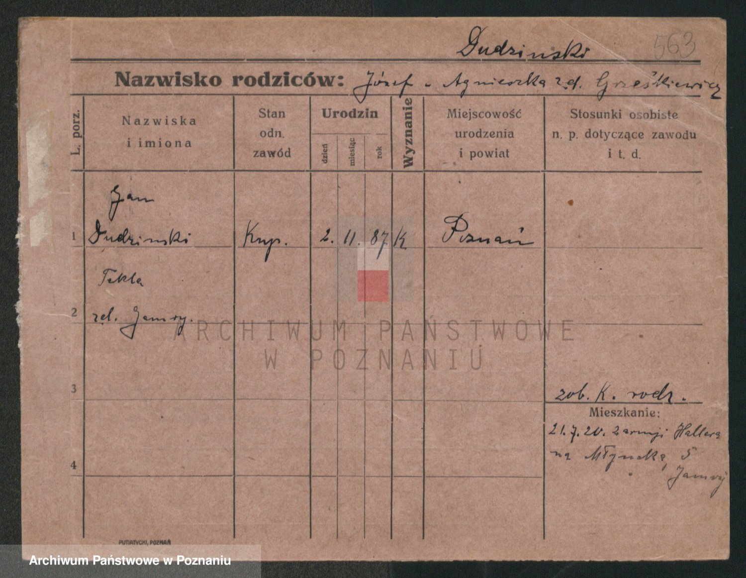 Podgląd karty osobowej dostępny jest po kliknięciu na nazwisko lub ikonkę karty. Można dokonywać powiększenia (ikony na górze) lub przechodzić między kolejnymi skanami (strzałki po bokach).