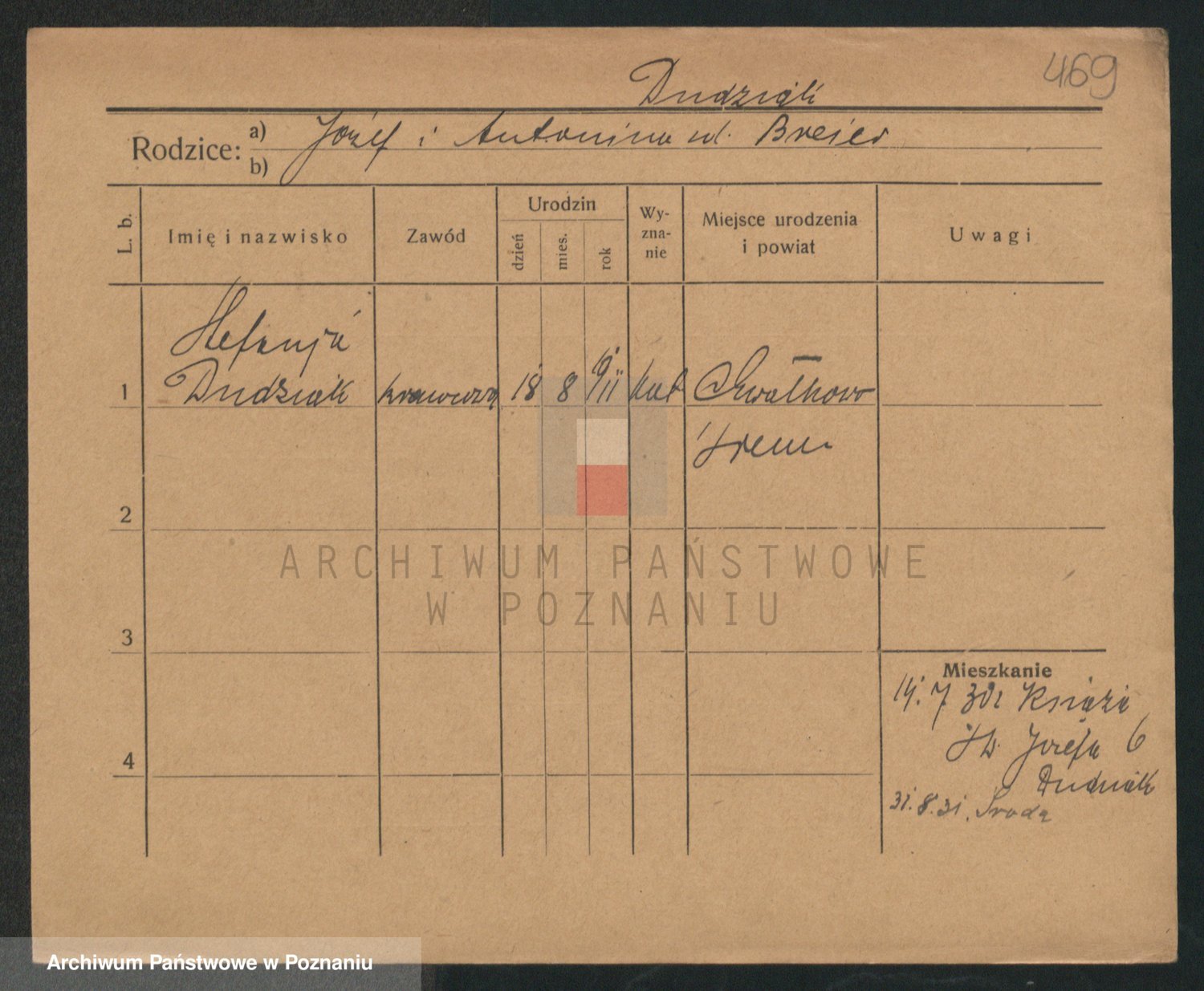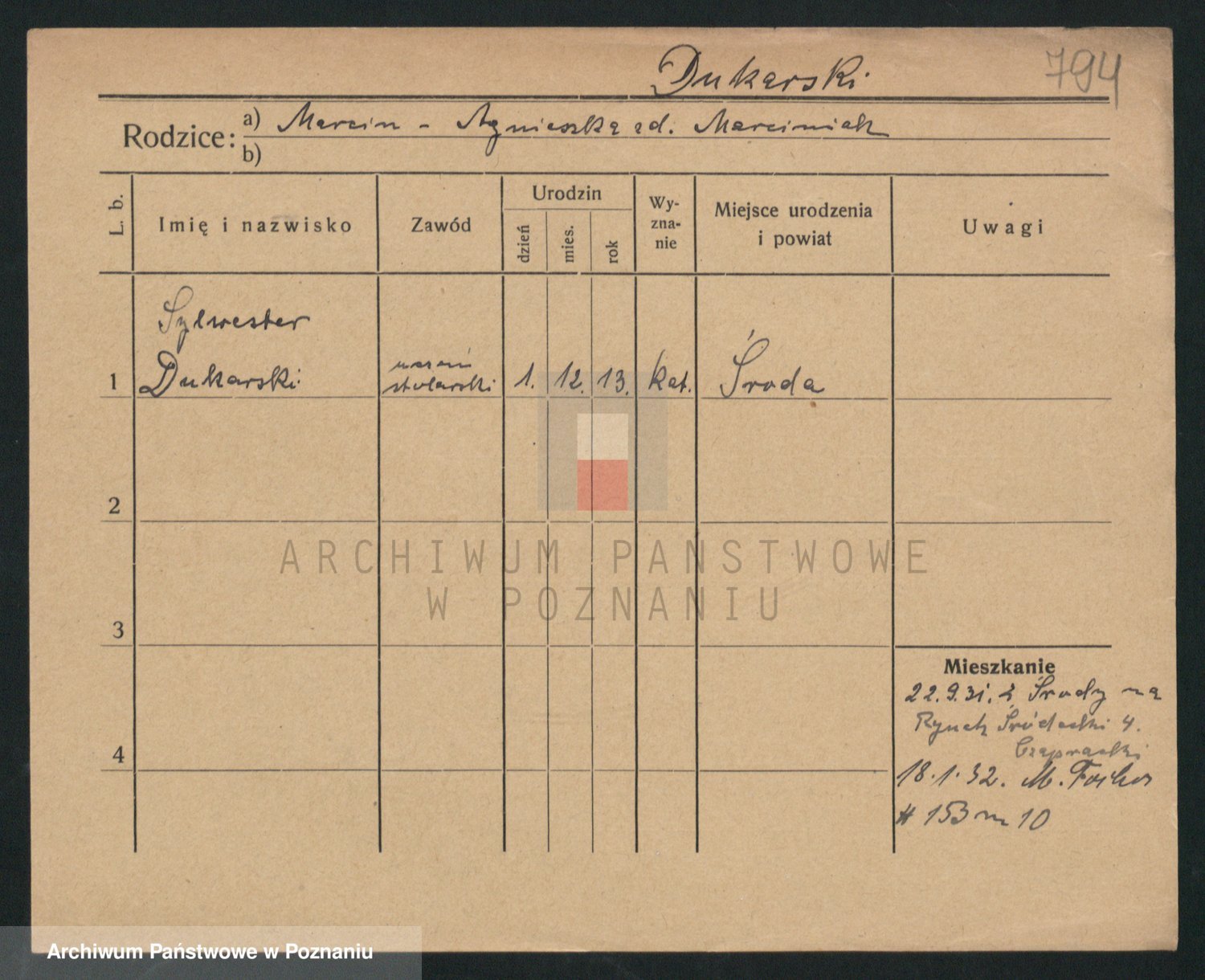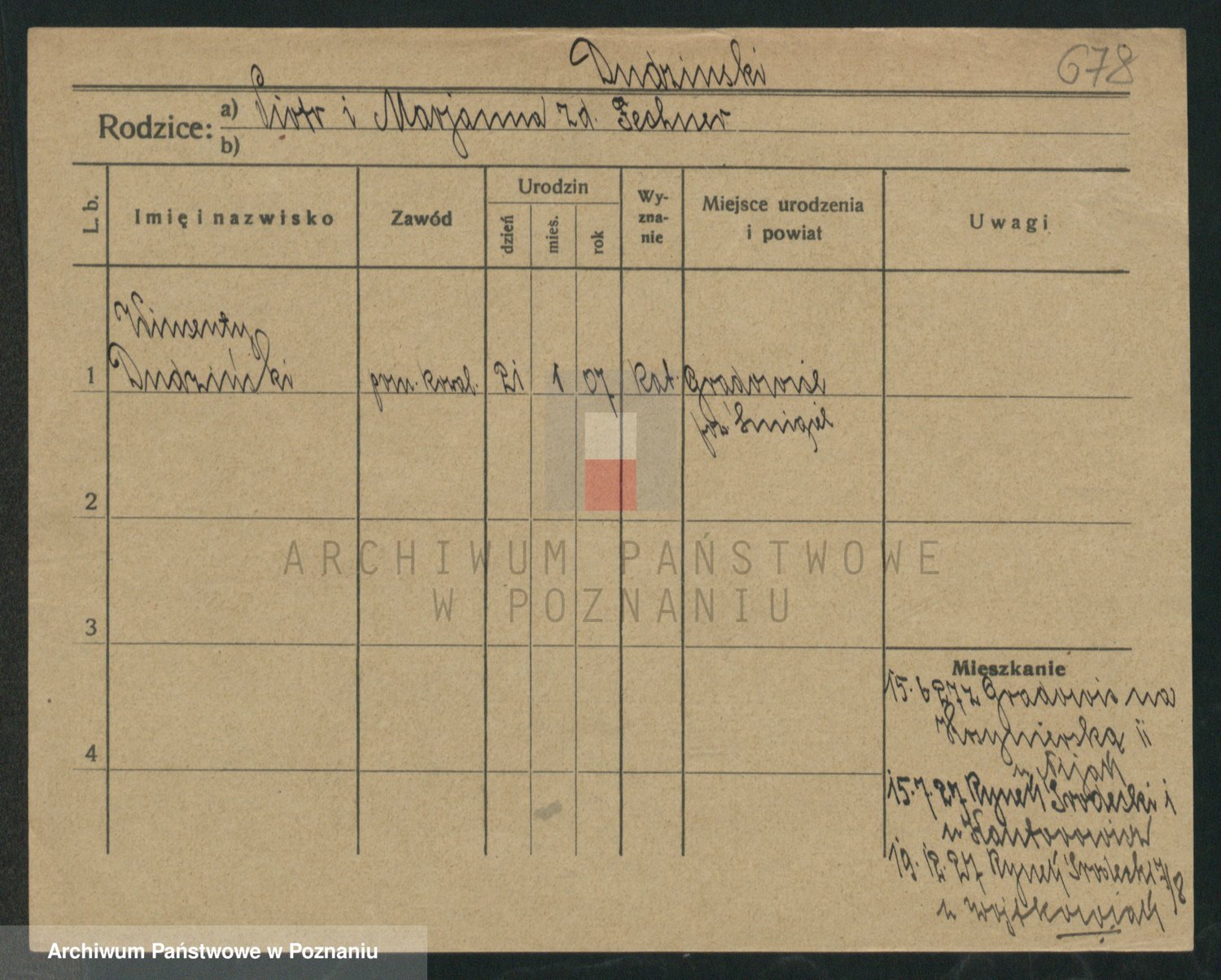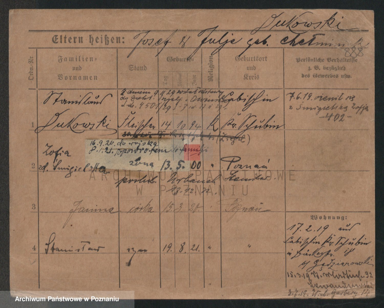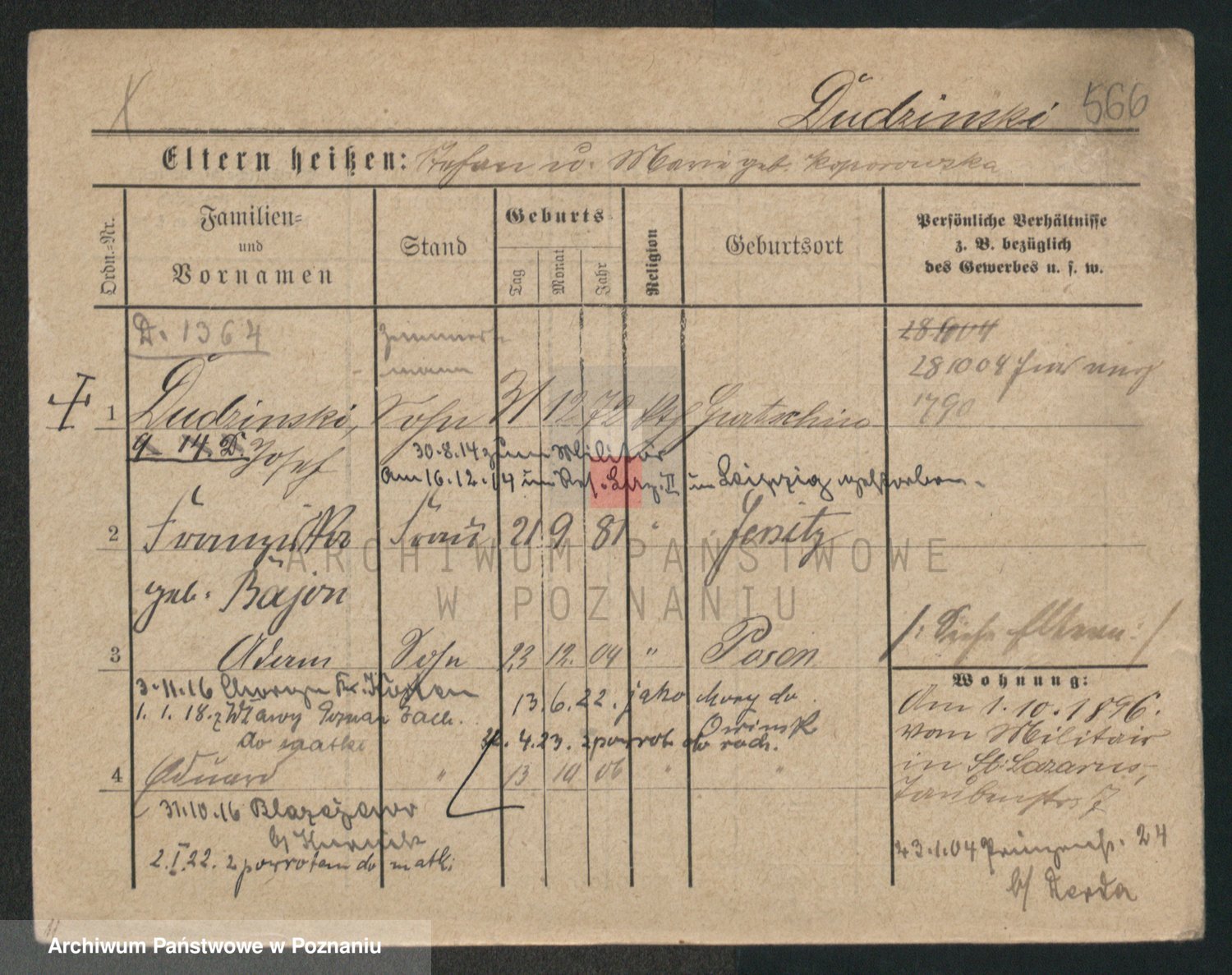 Podgląd karty osobowej dostępny jest po kliknięciu na nazwisko lub ikonkę karty. Można dokonywać powiększenia (ikony na górze) lub przechodzić między kolejnymi skanami (strzałki po bokach).