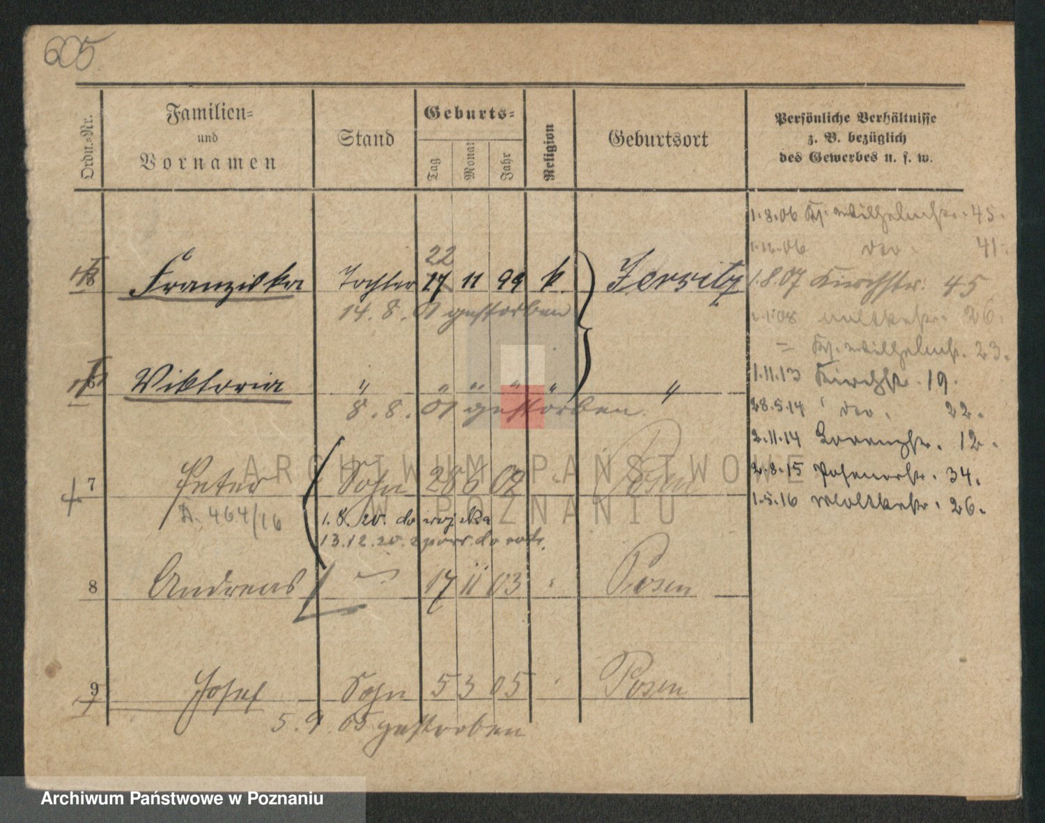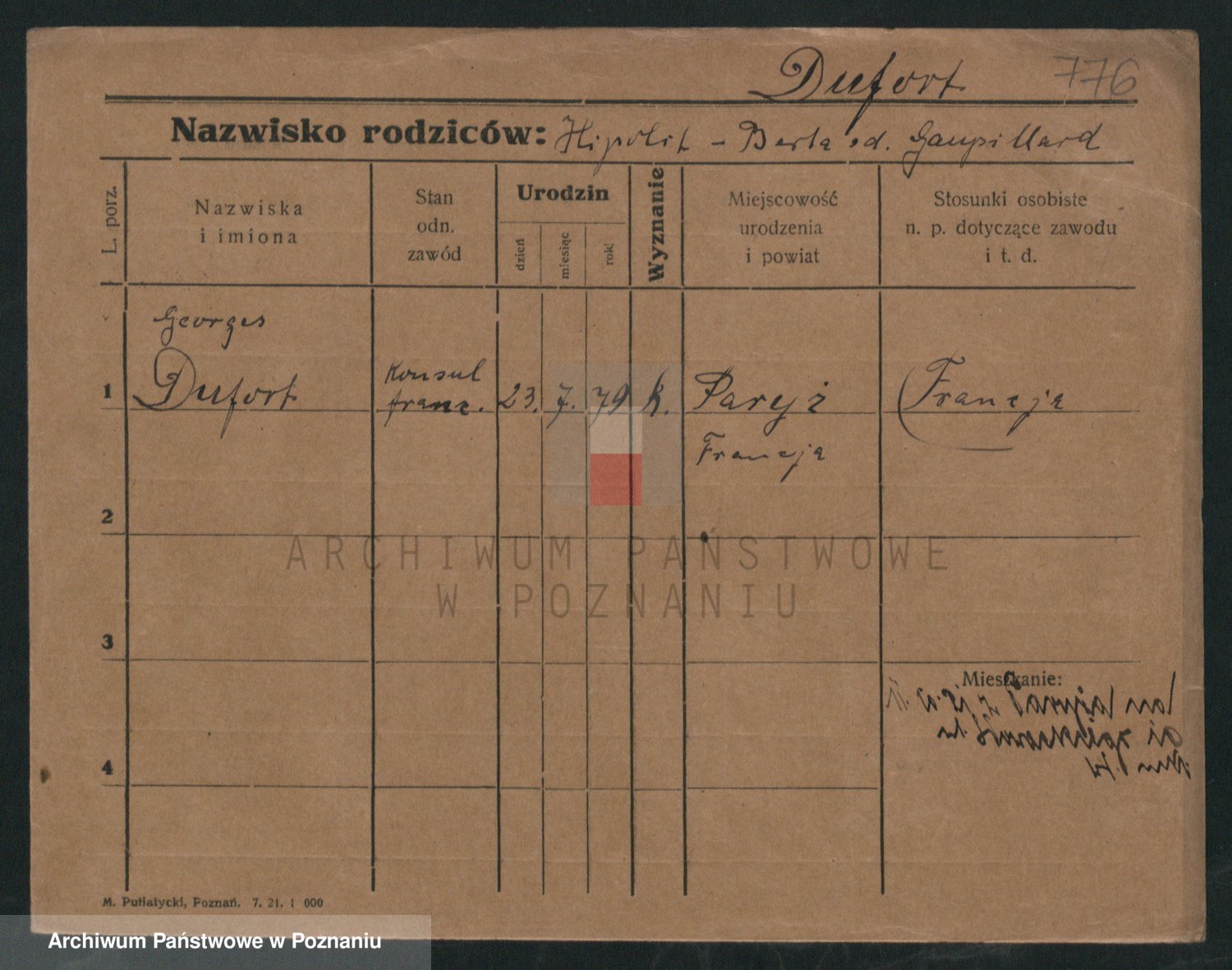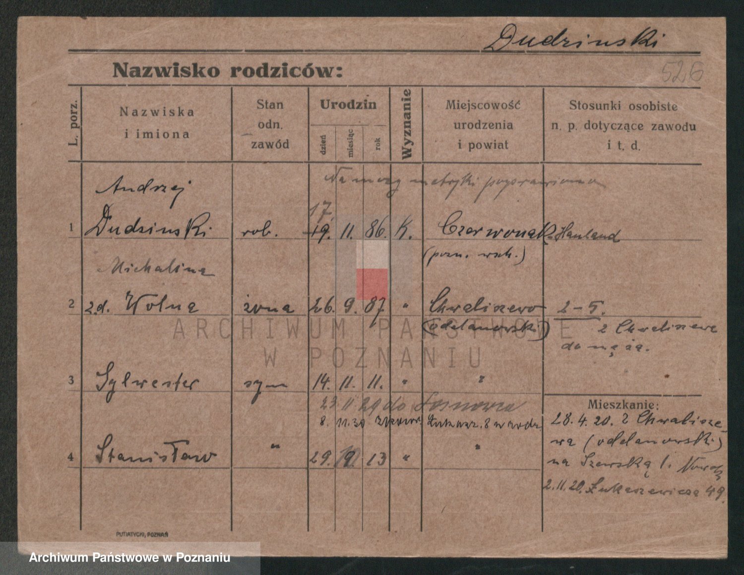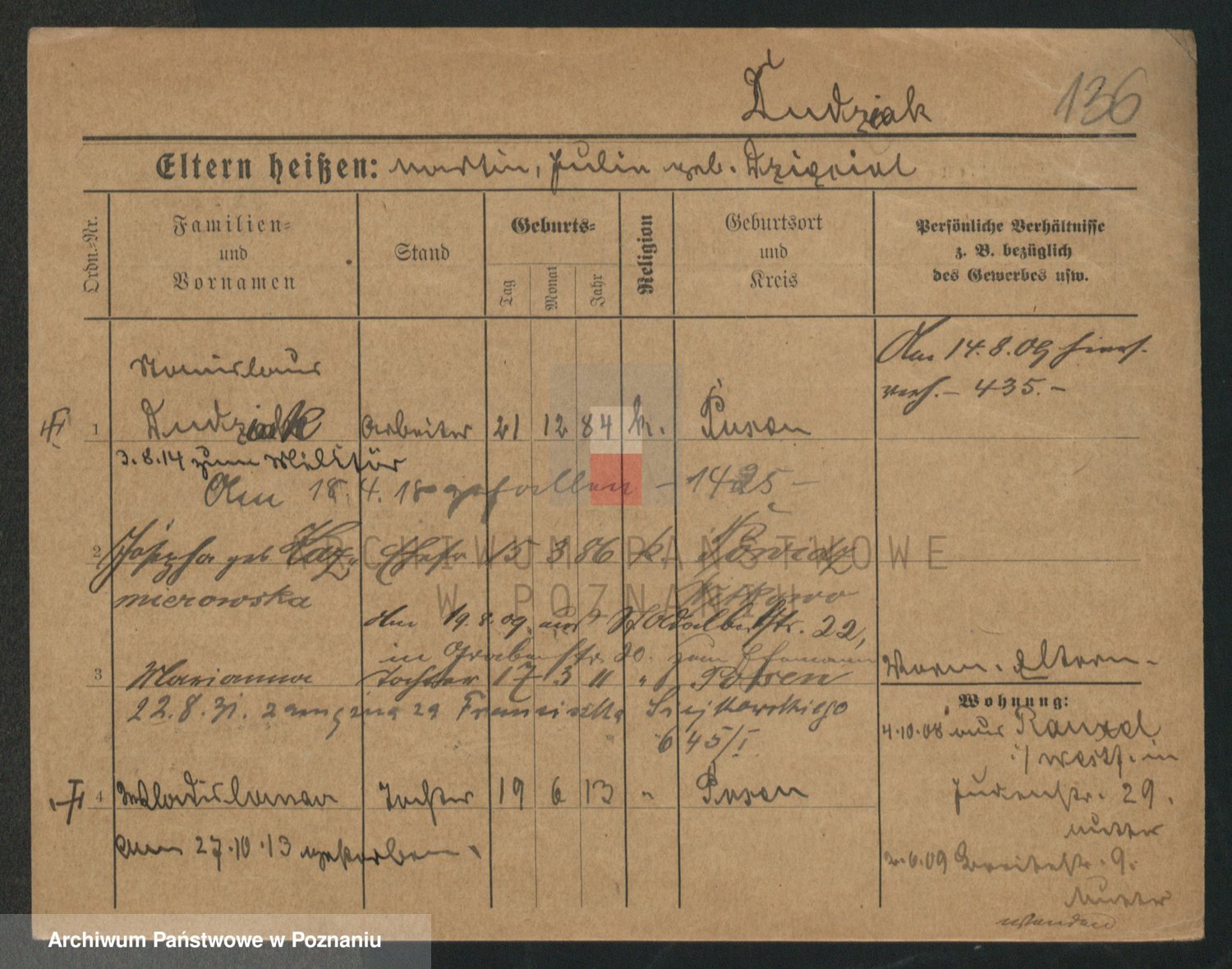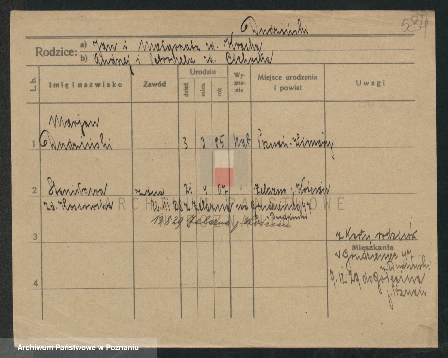 Podgląd karty osobowej dostępny jest po kliknięciu na nazwisko lub ikonkę karty. Można dokonywać powiększenia (ikony na górze) lub przechodzić między kolejnymi skanami (strzałki po bokach).