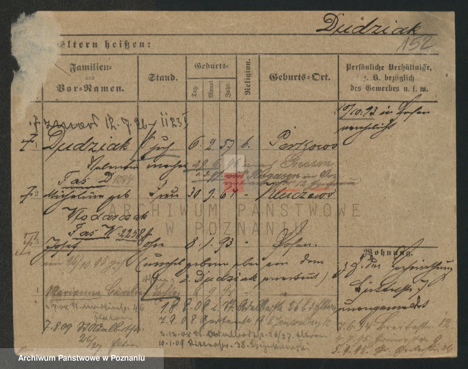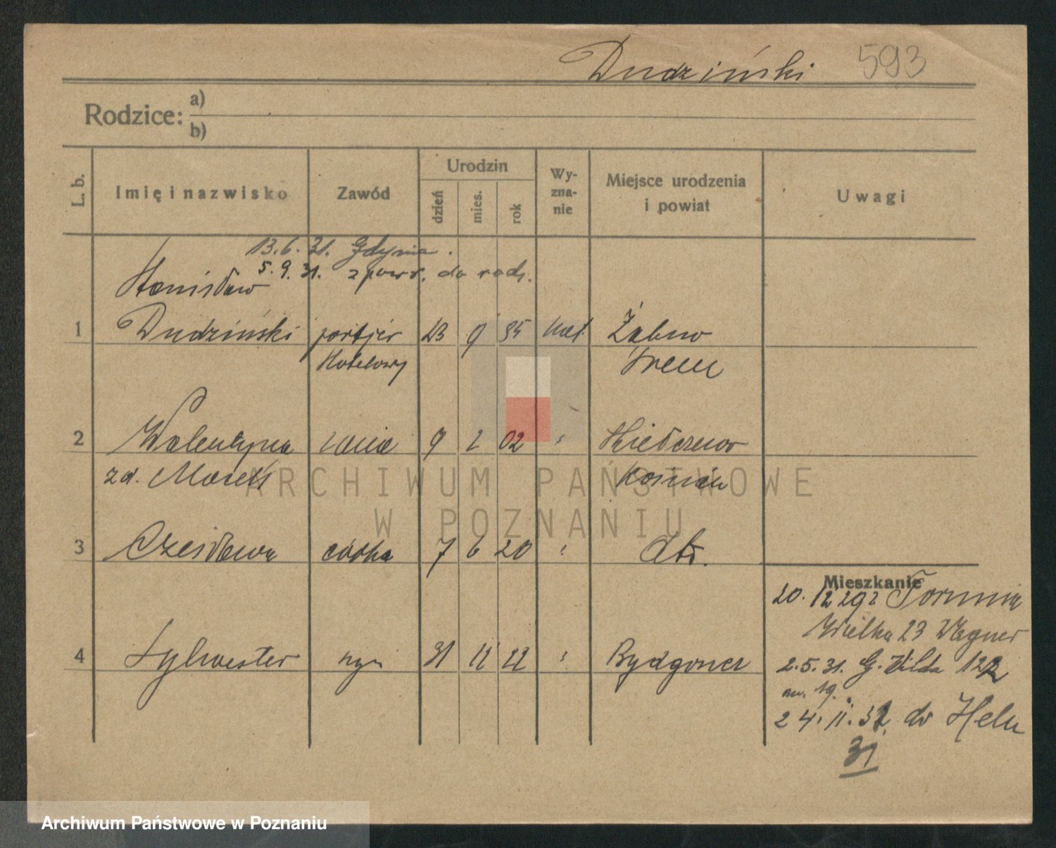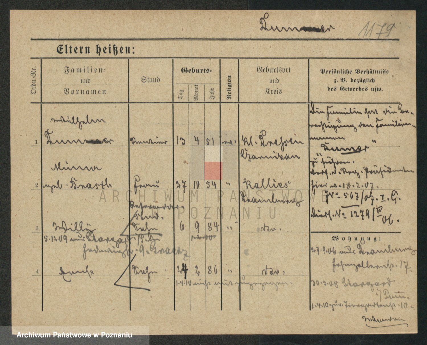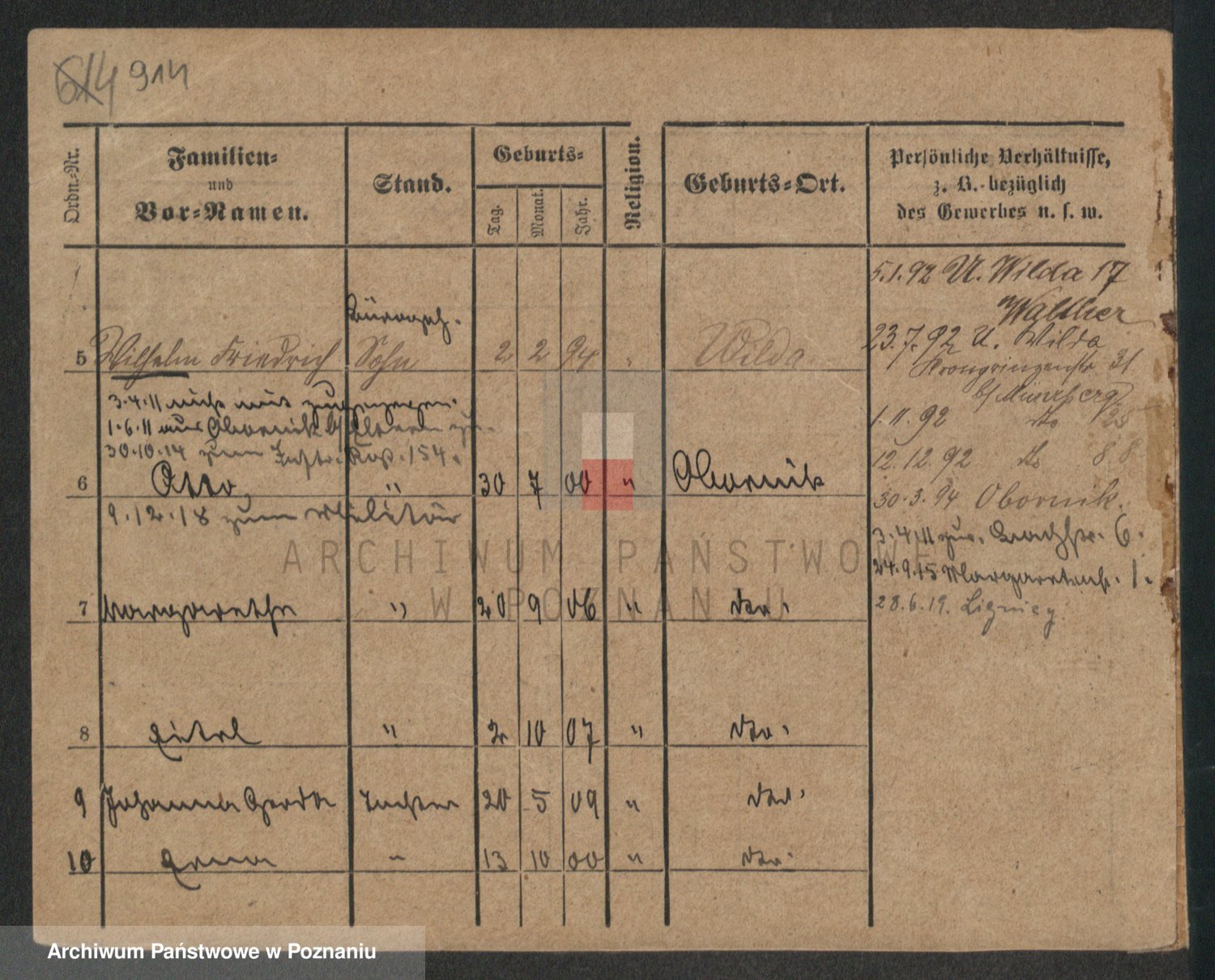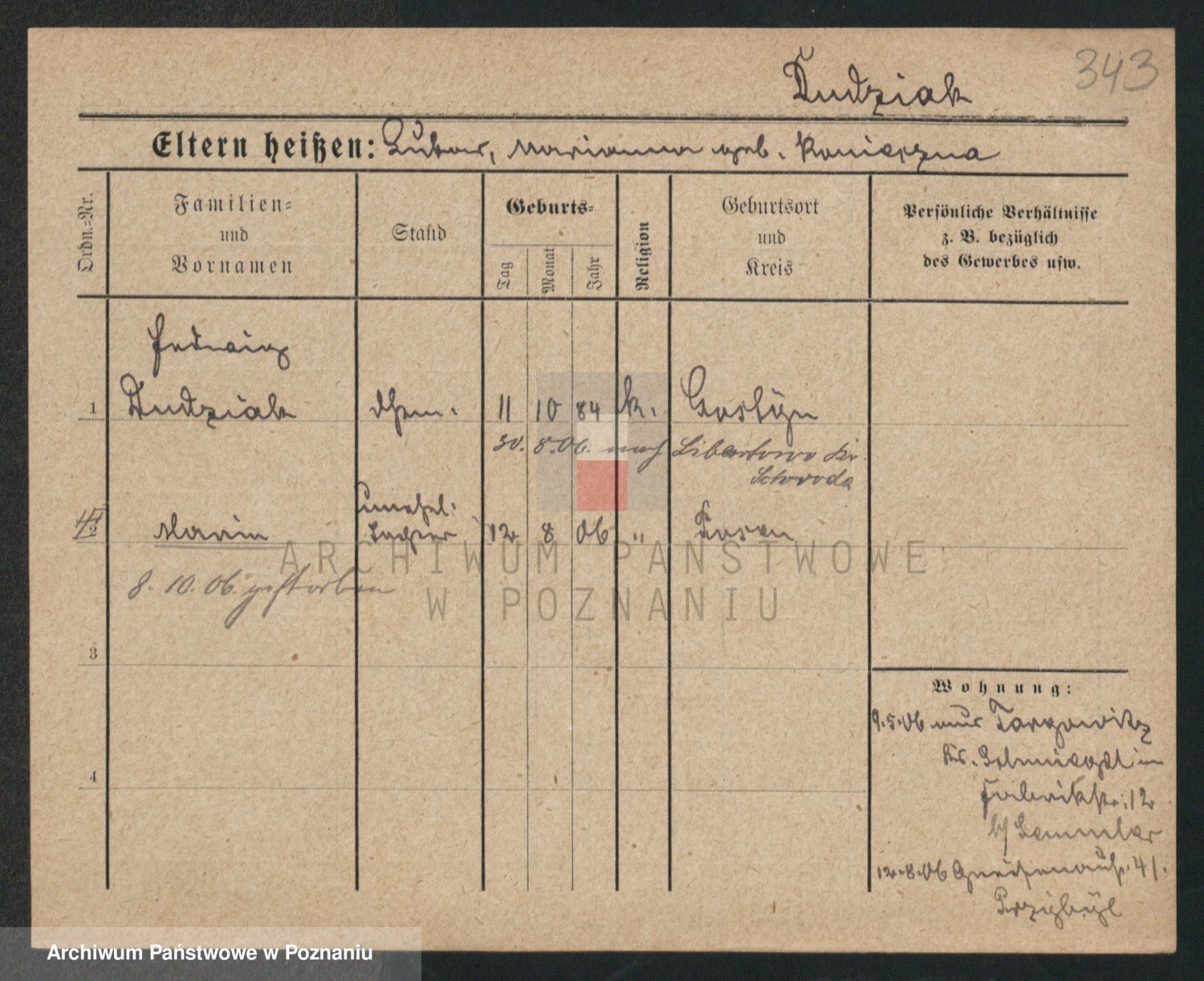 Podgląd karty osobowej dostępny jest po kliknięciu na nazwisko lub ikonkę karty. Można dokonywać powiększenia (ikony na górze) lub przechodzić między kolejnymi skanami (strzałki po bokach).