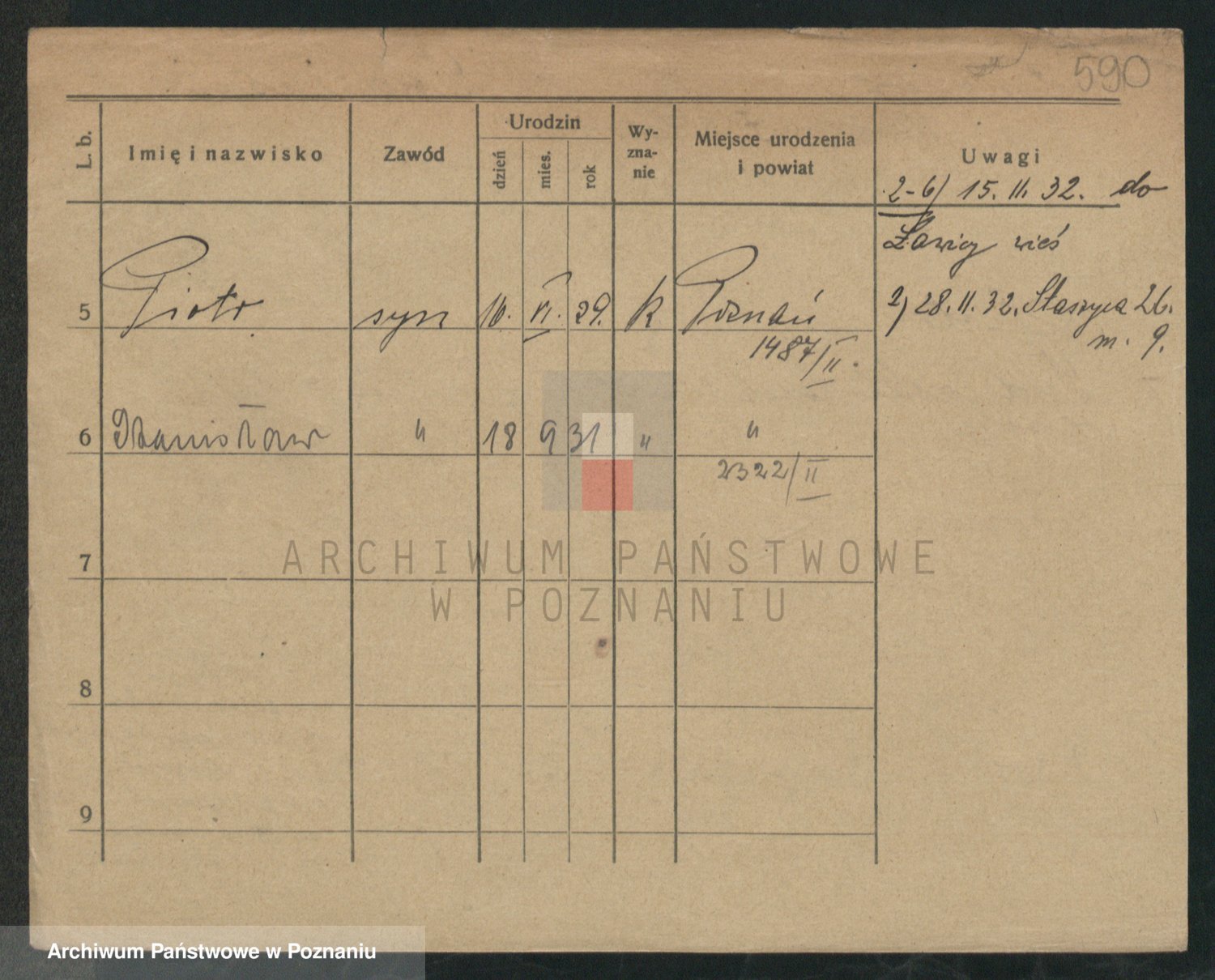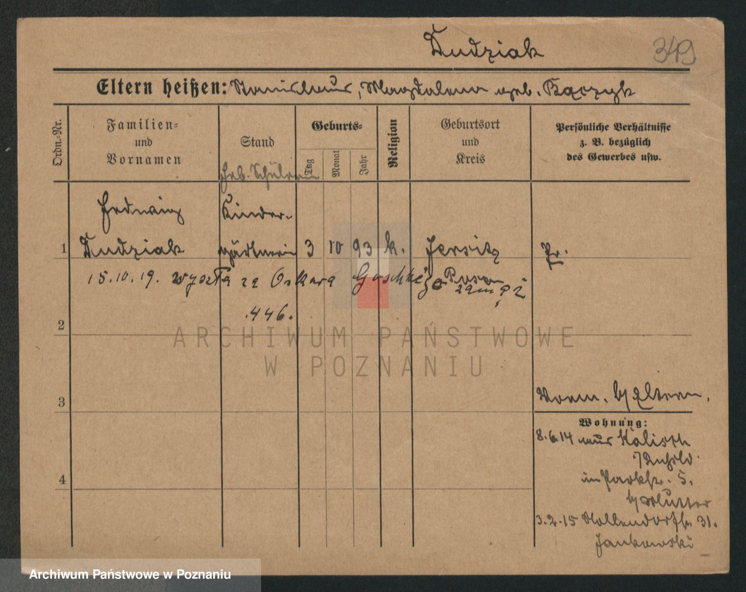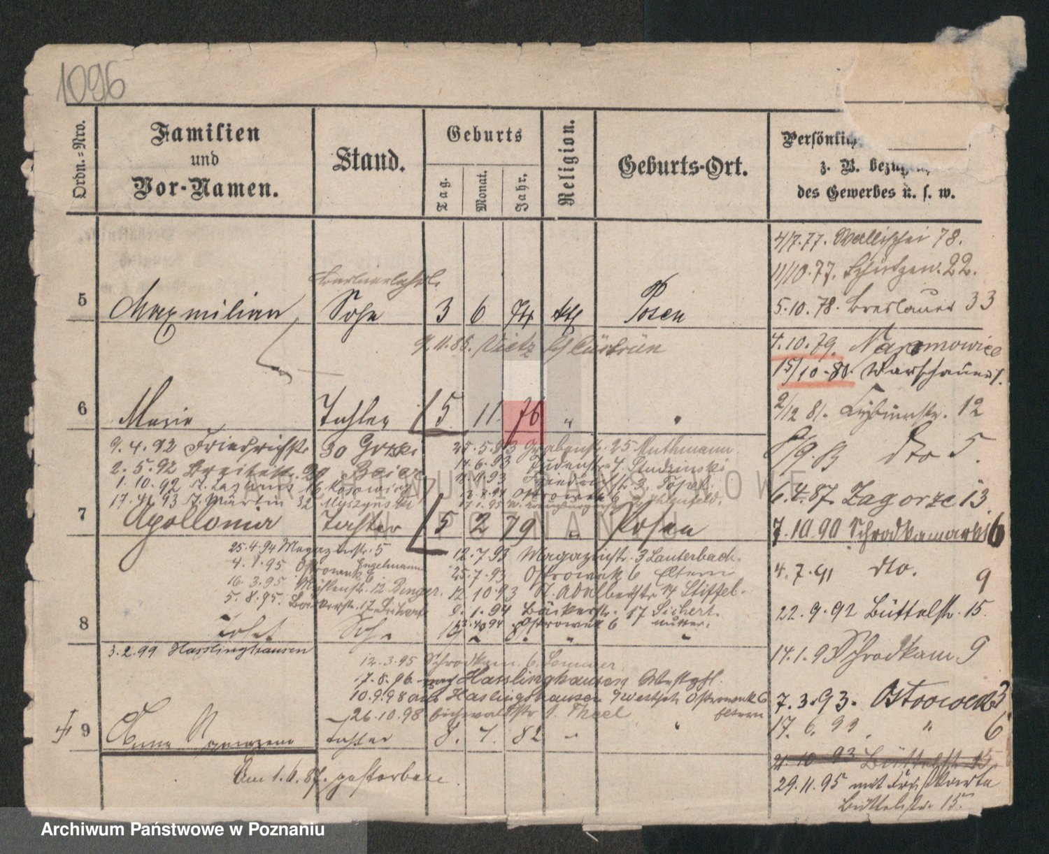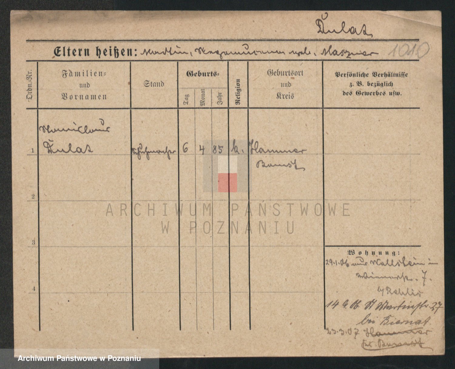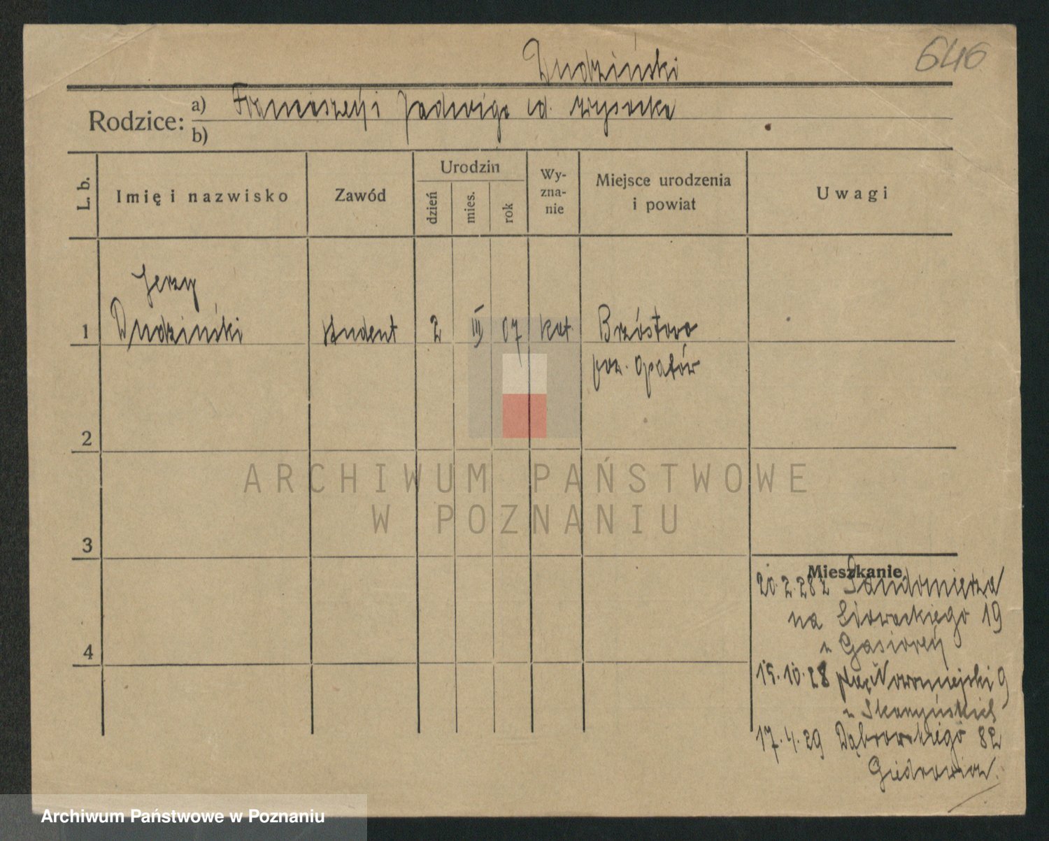 Podgląd karty osobowej dostępny jest po kliknięciu na nazwisko lub ikonkę karty. Można dokonywać powiększenia (ikony na górze) lub przechodzić między kolejnymi skanami (strzałki po bokach).