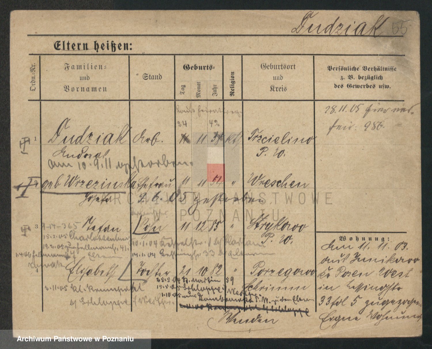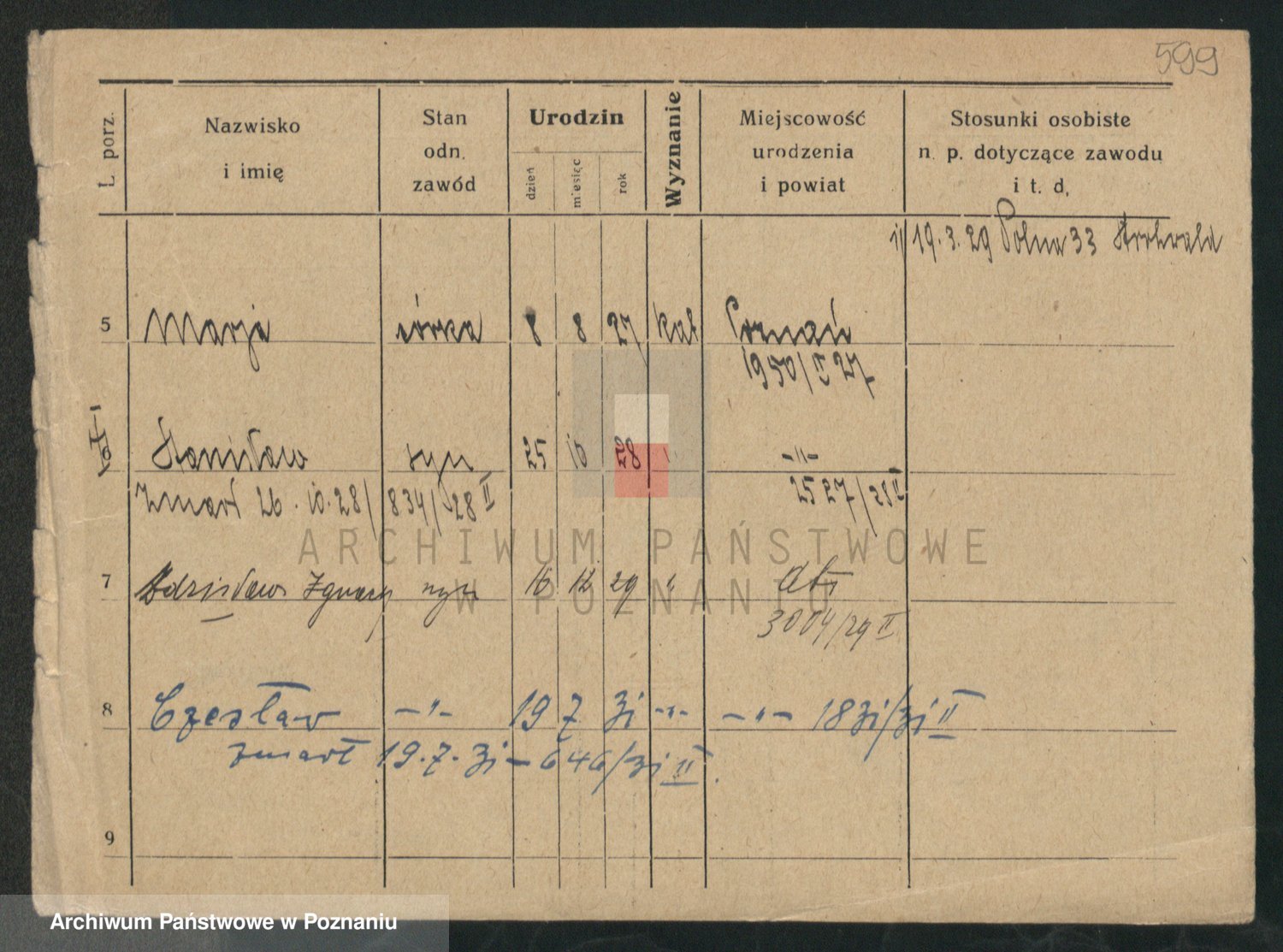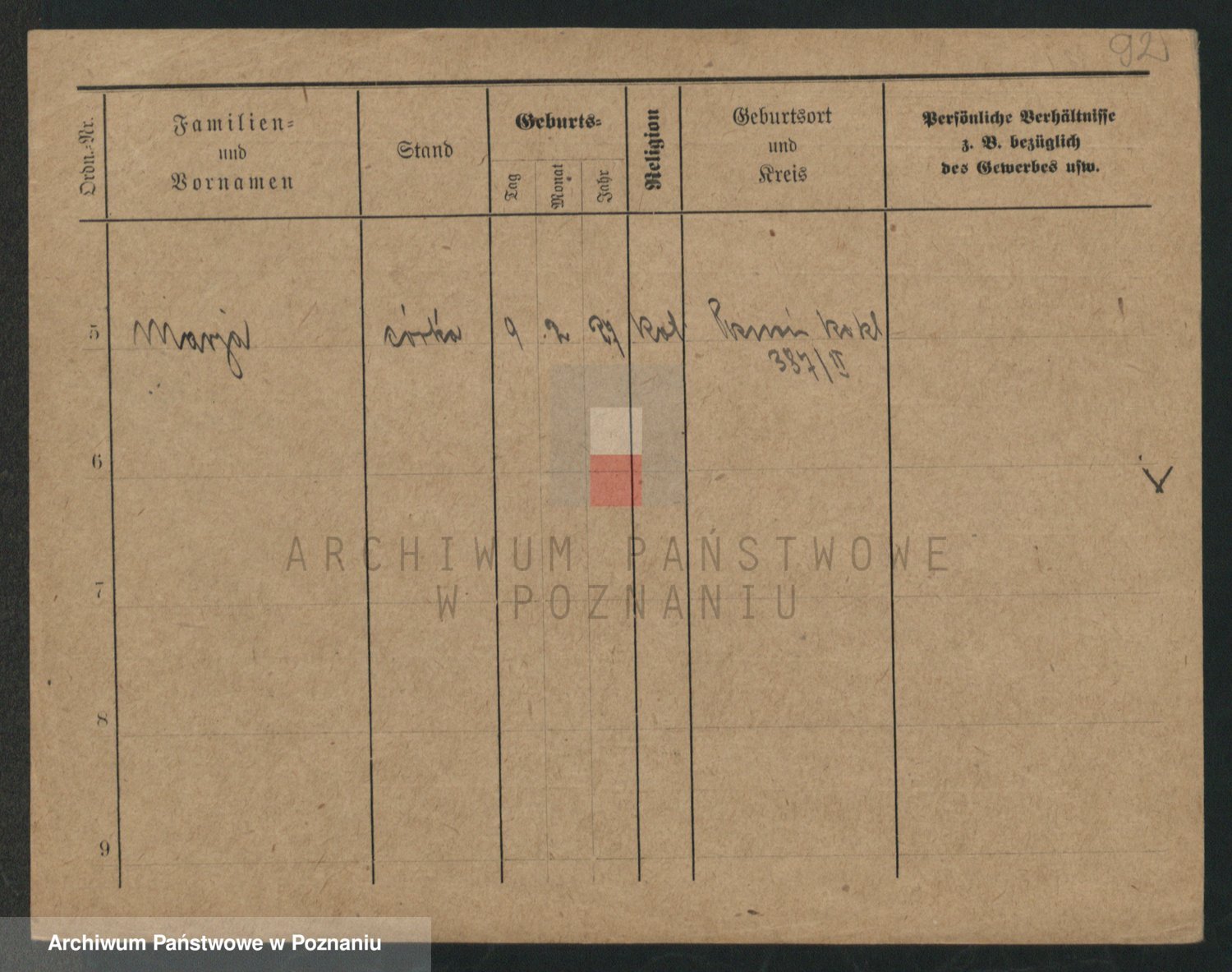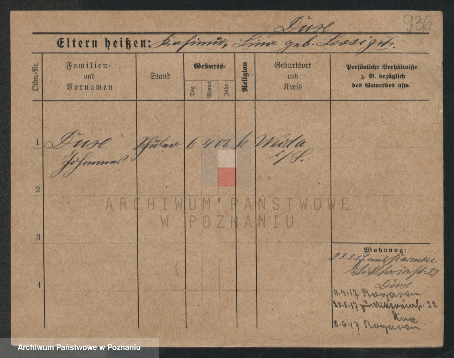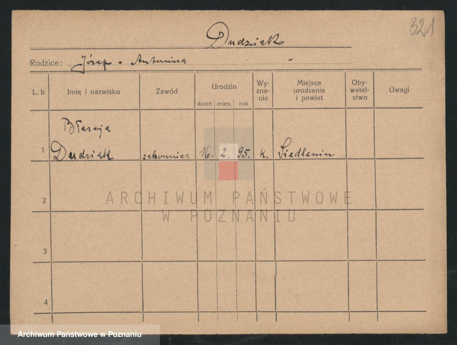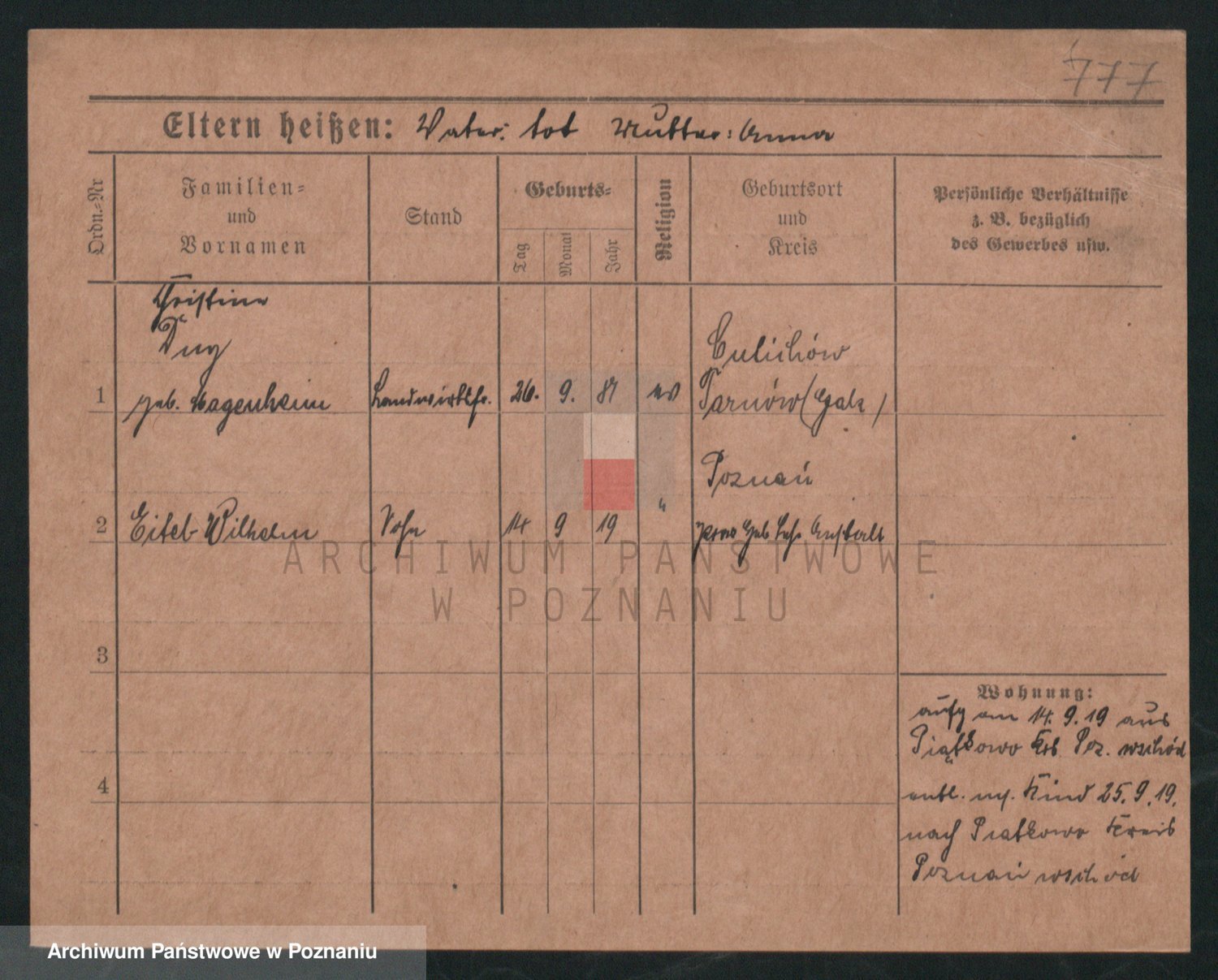 Podgląd karty osobowej dostępny jest po kliknięciu na nazwisko lub ikonkę karty. Można dokonywać powiększenia (ikony na górze) lub przechodzić między kolejnymi skanami (strzałki po bokach).