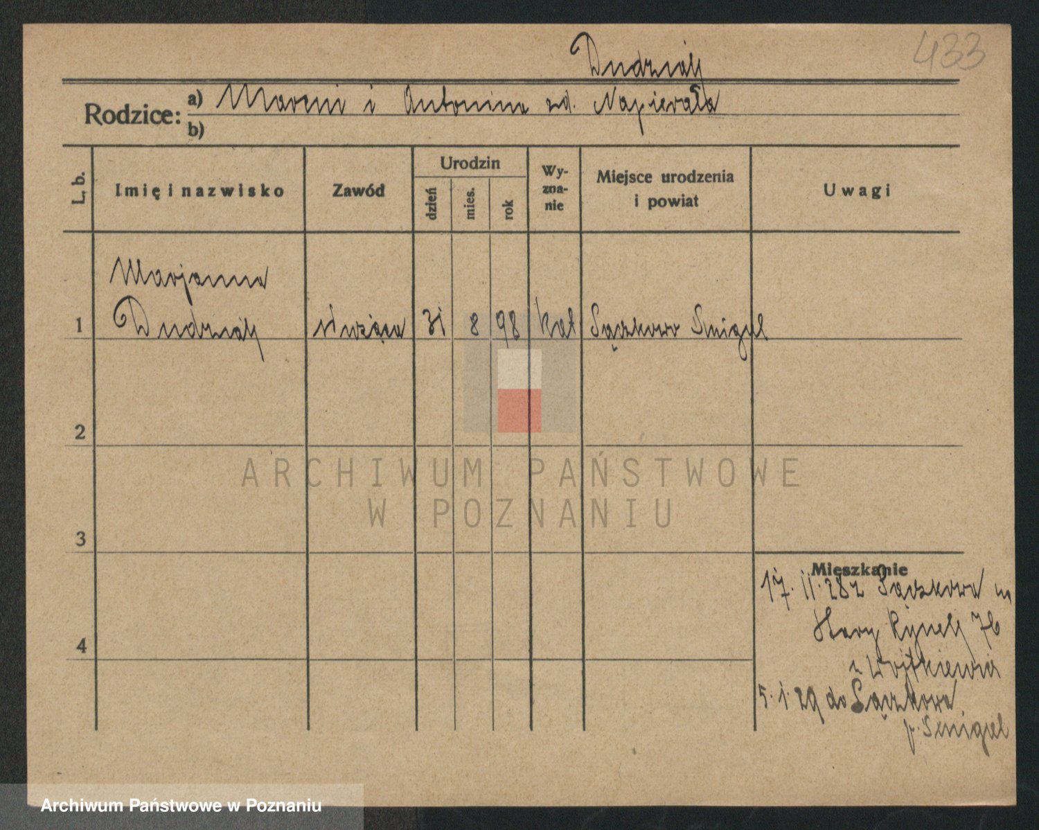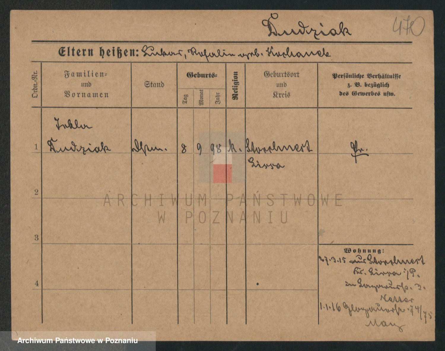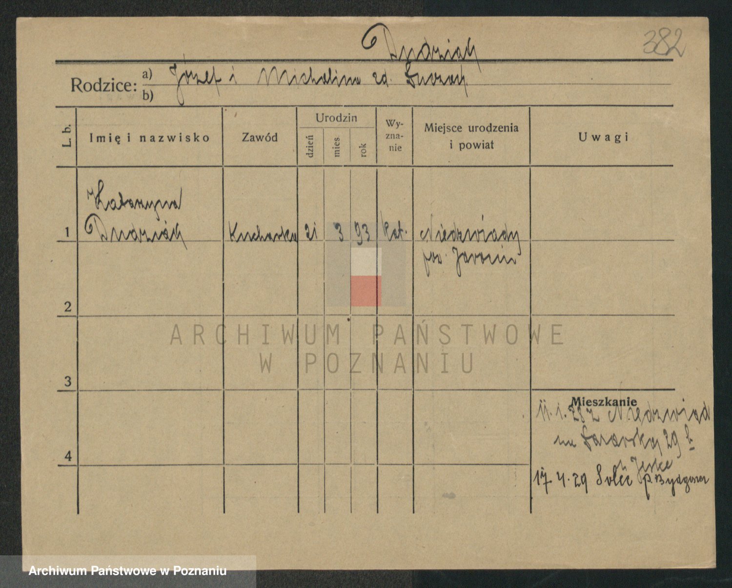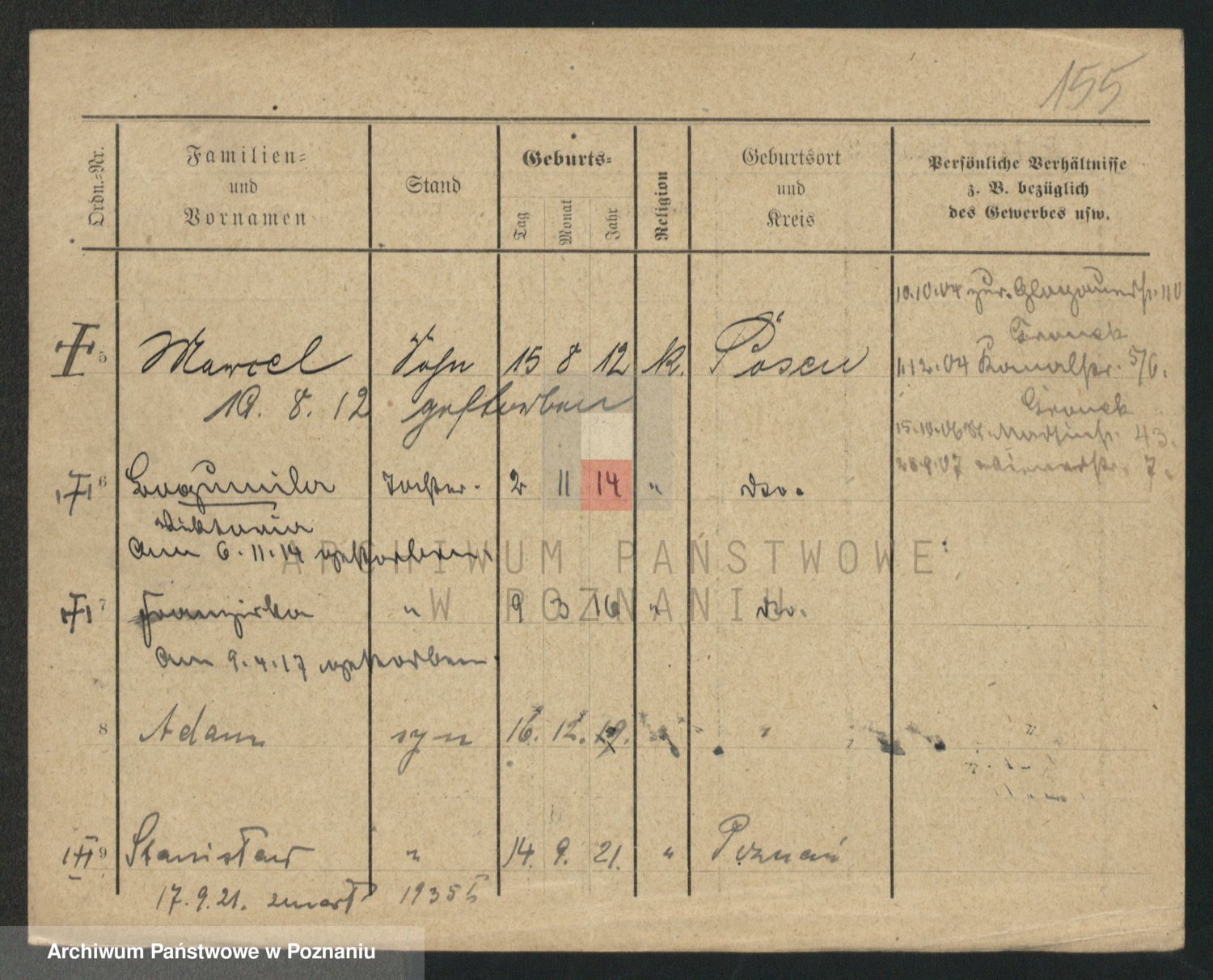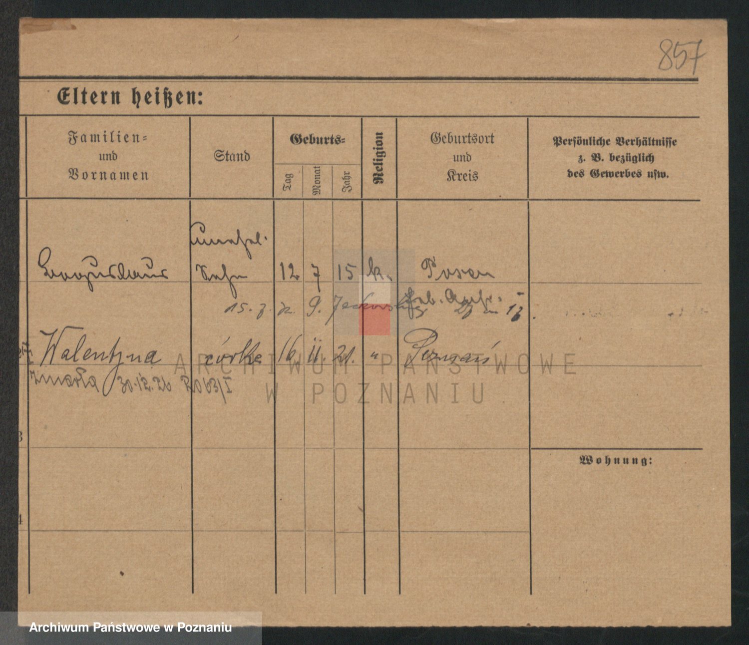 Podgląd karty osobowej dostępny jest po kliknięciu na nazwisko lub ikonkę karty. Można dokonywać powiększenia (ikony na górze) lub przechodzić między kolejnymi skanami (strzałki po bokach).