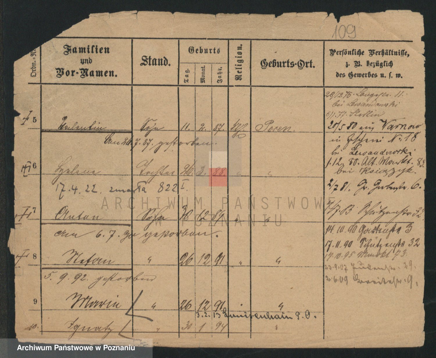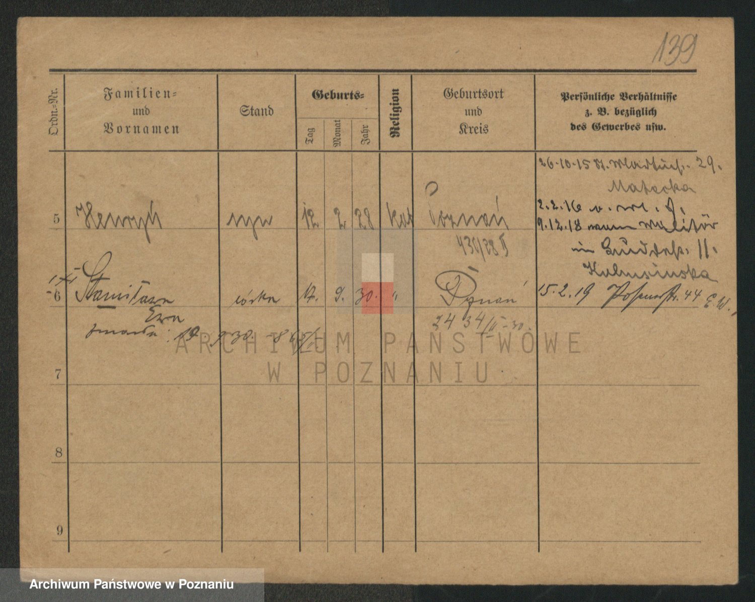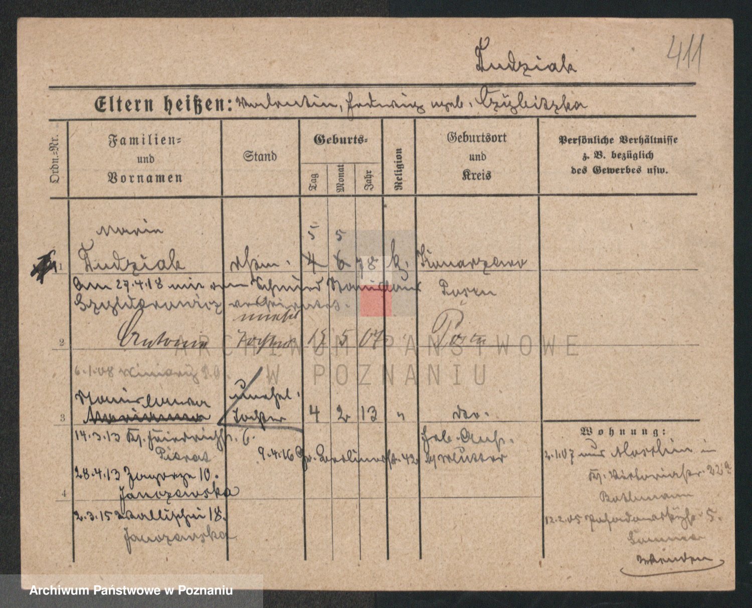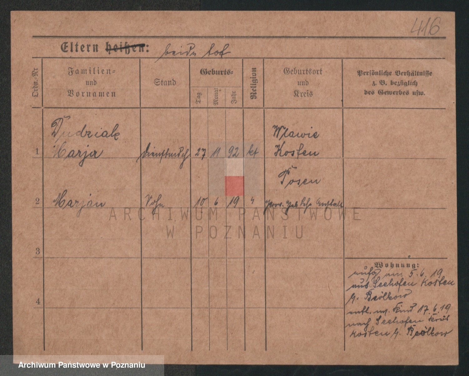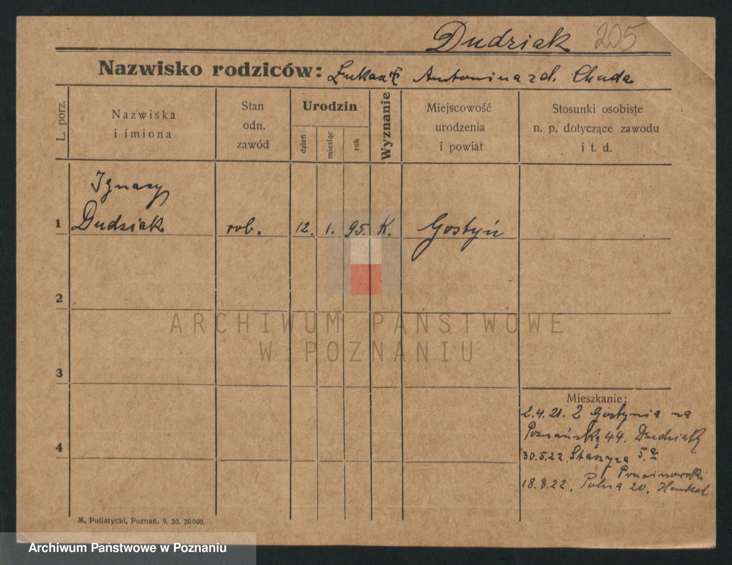 Podgląd karty osobowej dostępny jest po kliknięciu na nazwisko lub ikonkę karty. Można dokonywać powiększenia (ikony na górze) lub przechodzić między kolejnymi skanami (strzałki po bokach).
