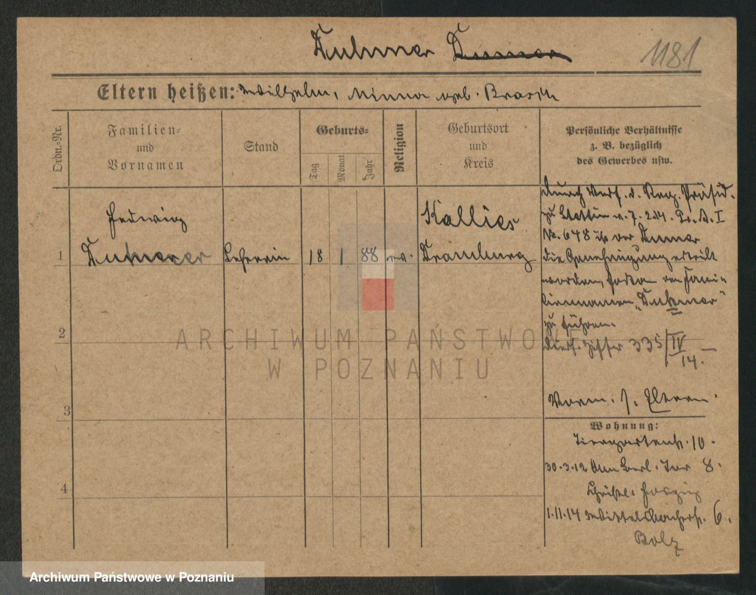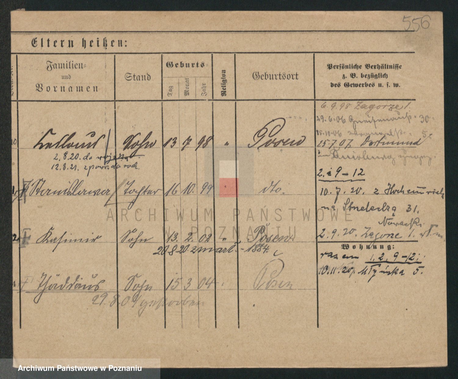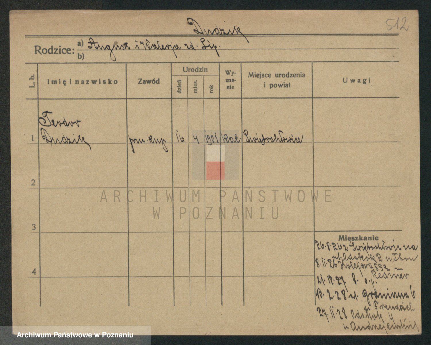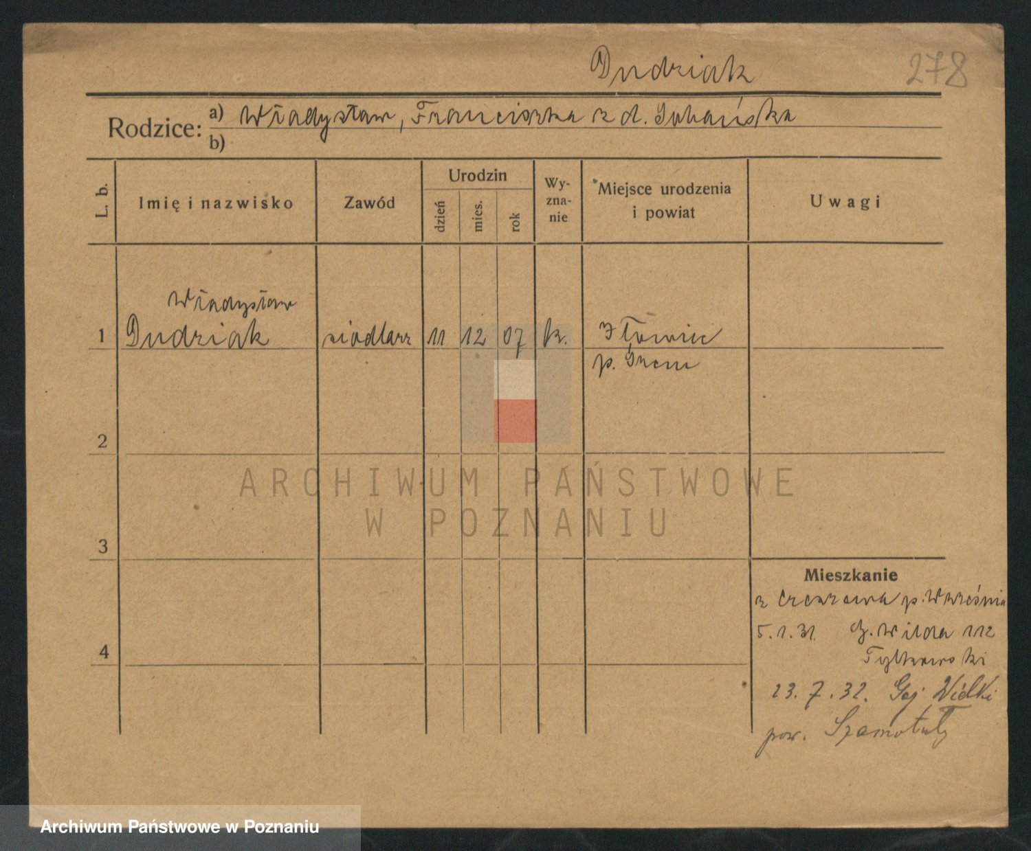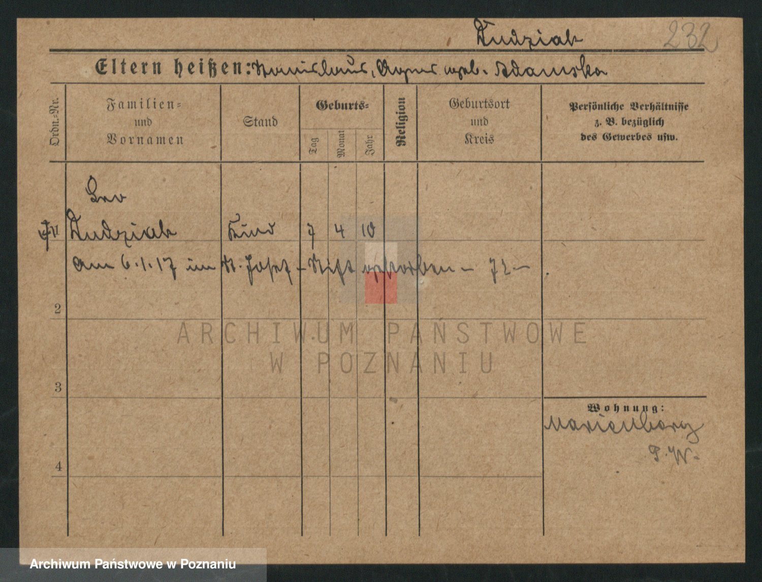 Podgląd karty osobowej dostępny jest po kliknięciu na nazwisko lub ikonkę karty. Można dokonywać powiększenia (ikony na górze) lub przechodzić między kolejnymi skanami (strzałki po bokach).