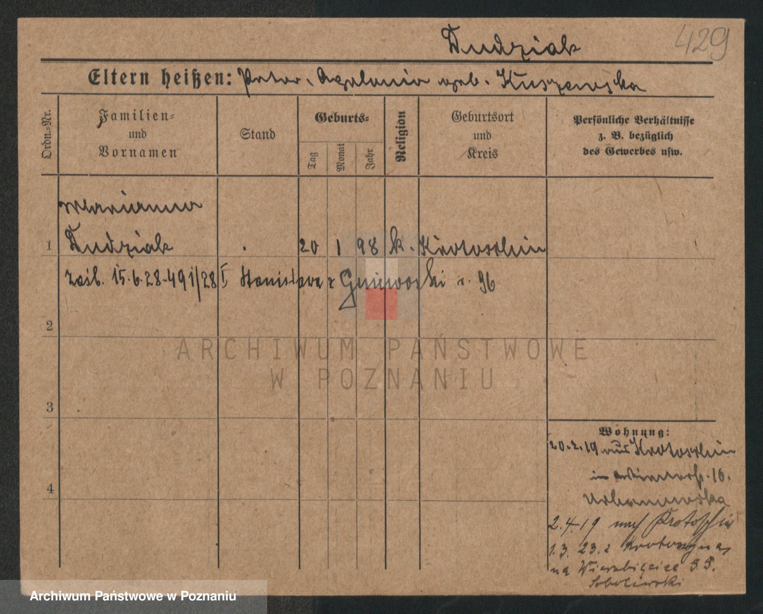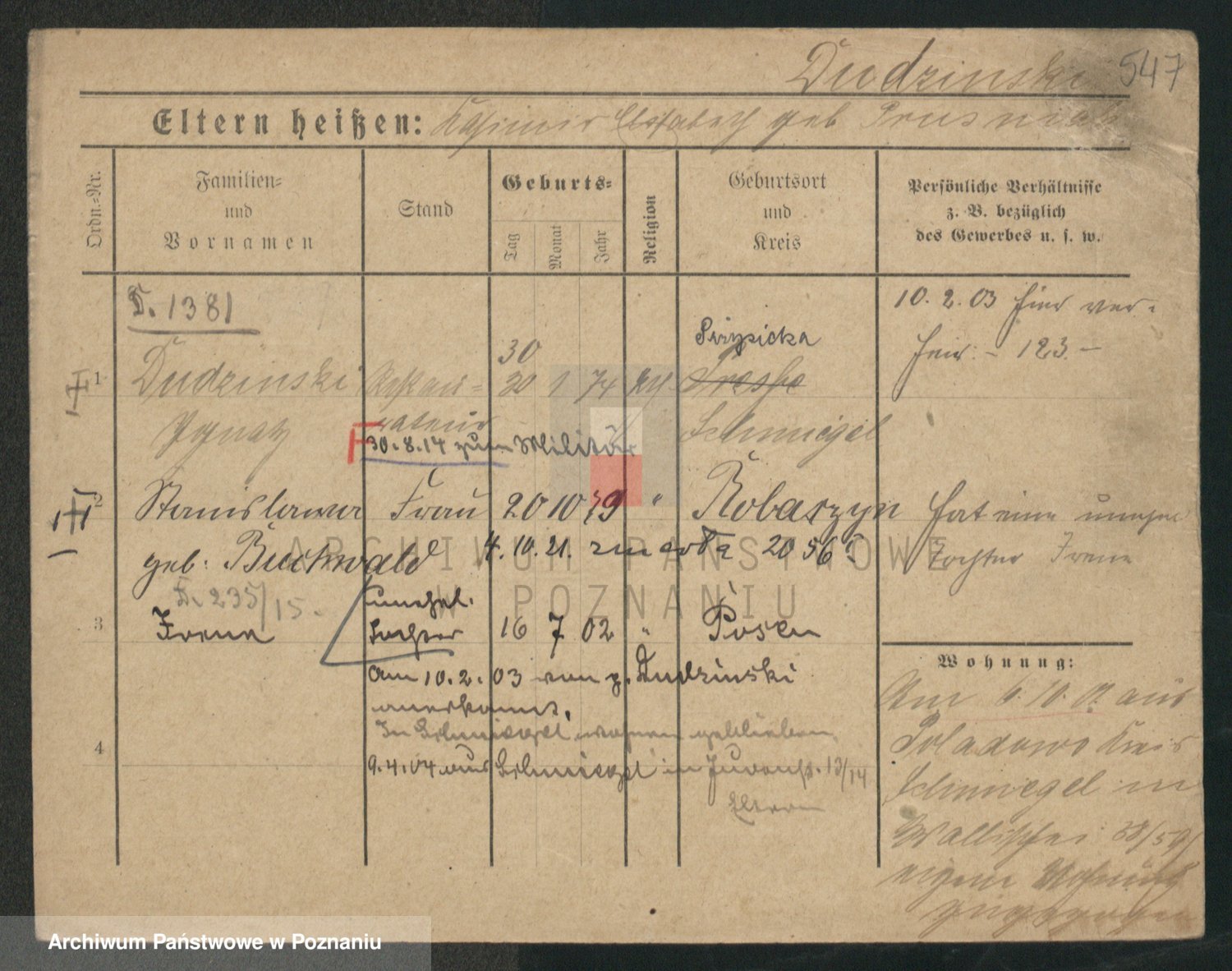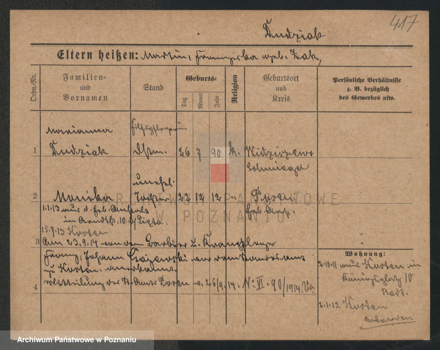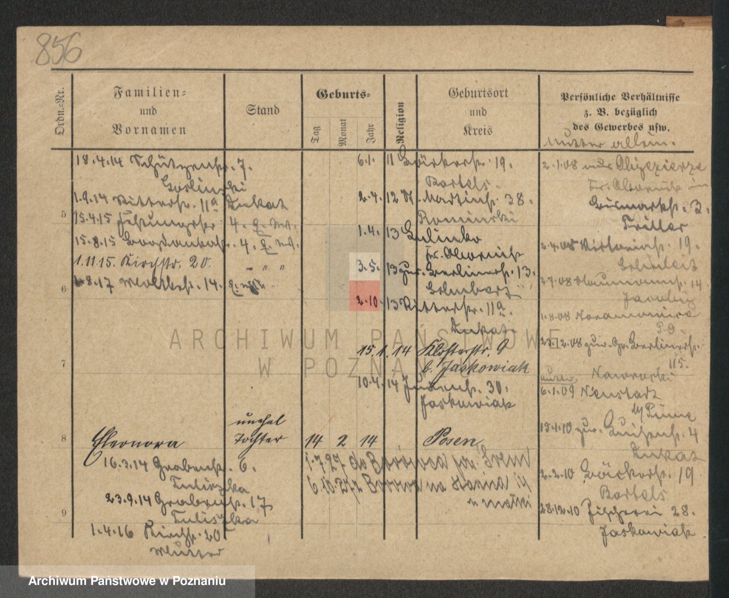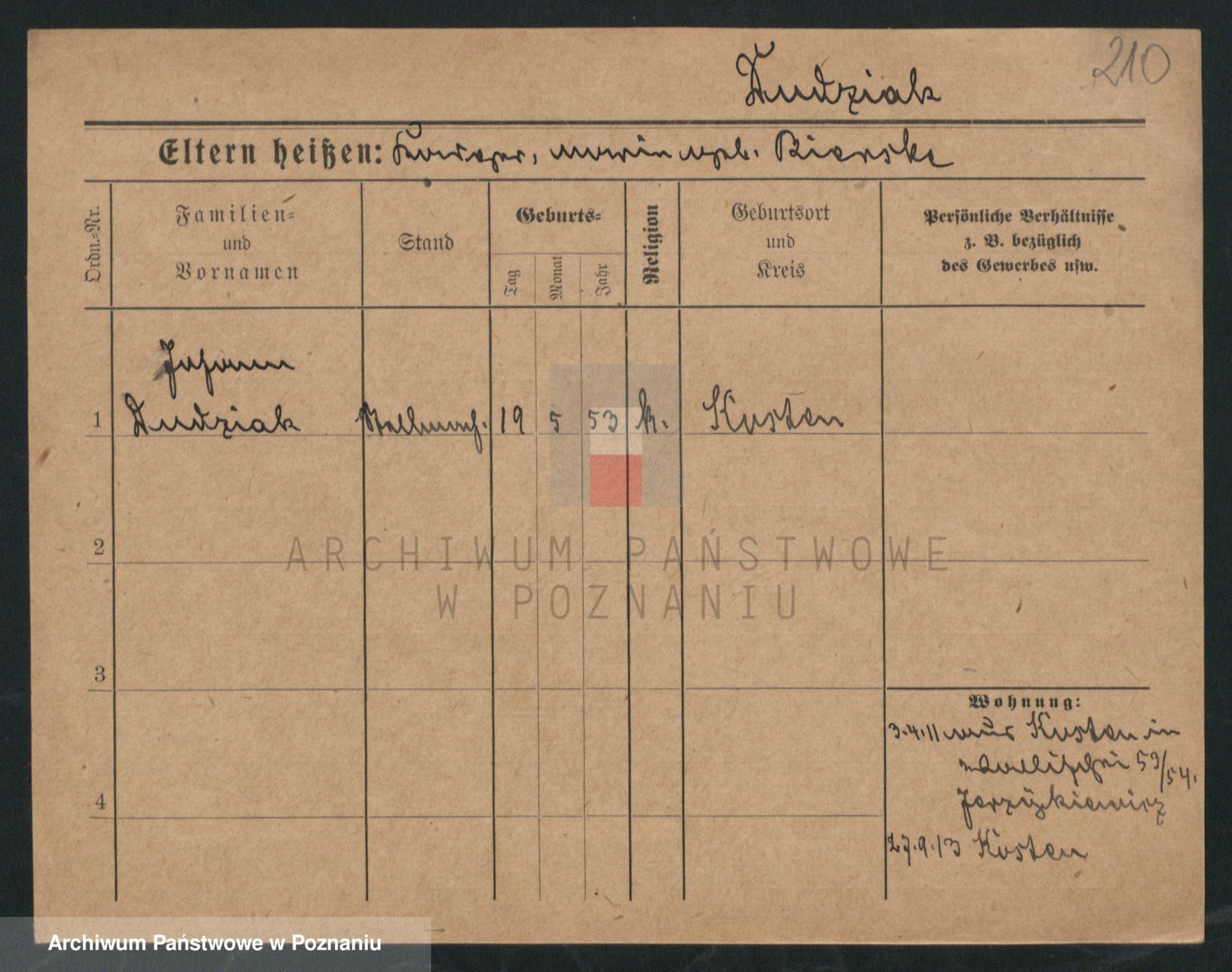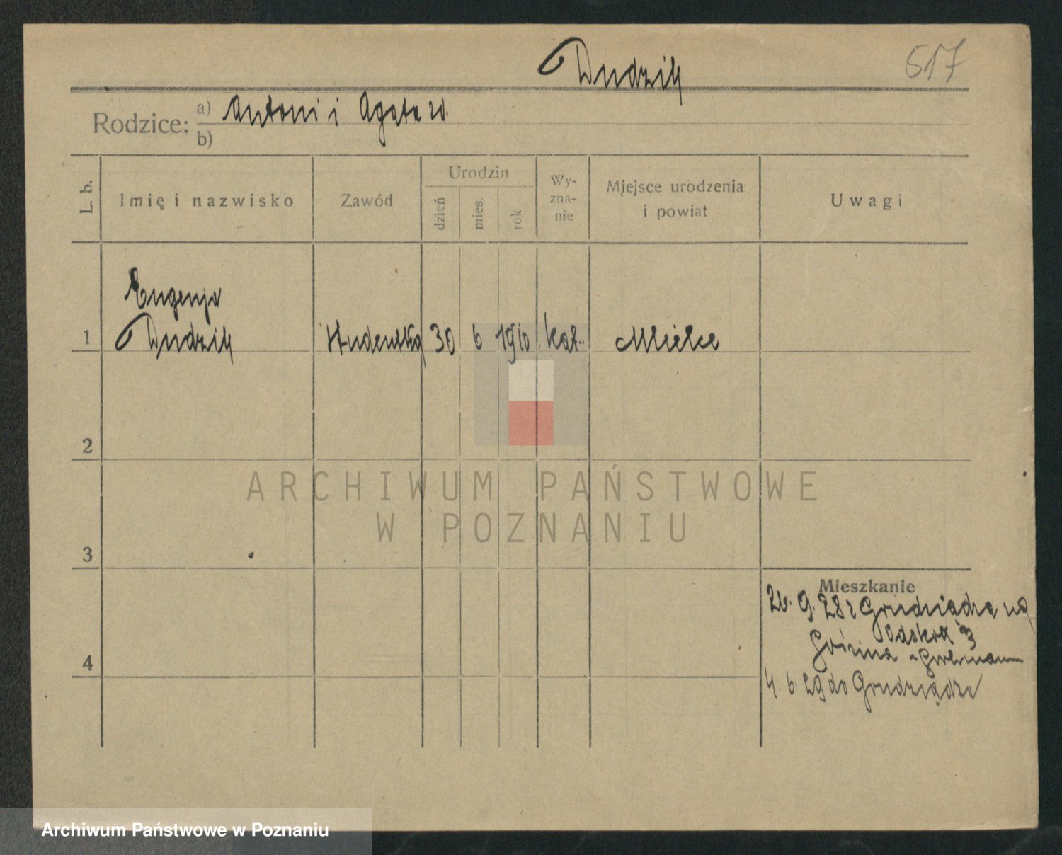 Podgląd karty osobowej dostępny jest po kliknięciu na nazwisko lub ikonkę karty. Można dokonywać powiększenia (ikony na górze) lub przechodzić między kolejnymi skanami (strzałki po bokach).