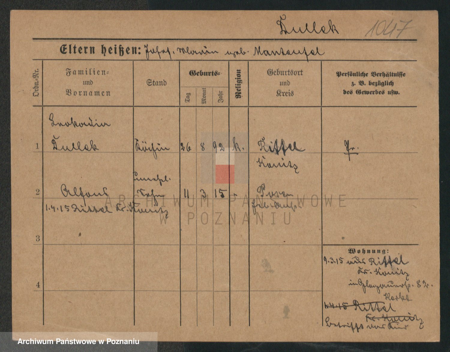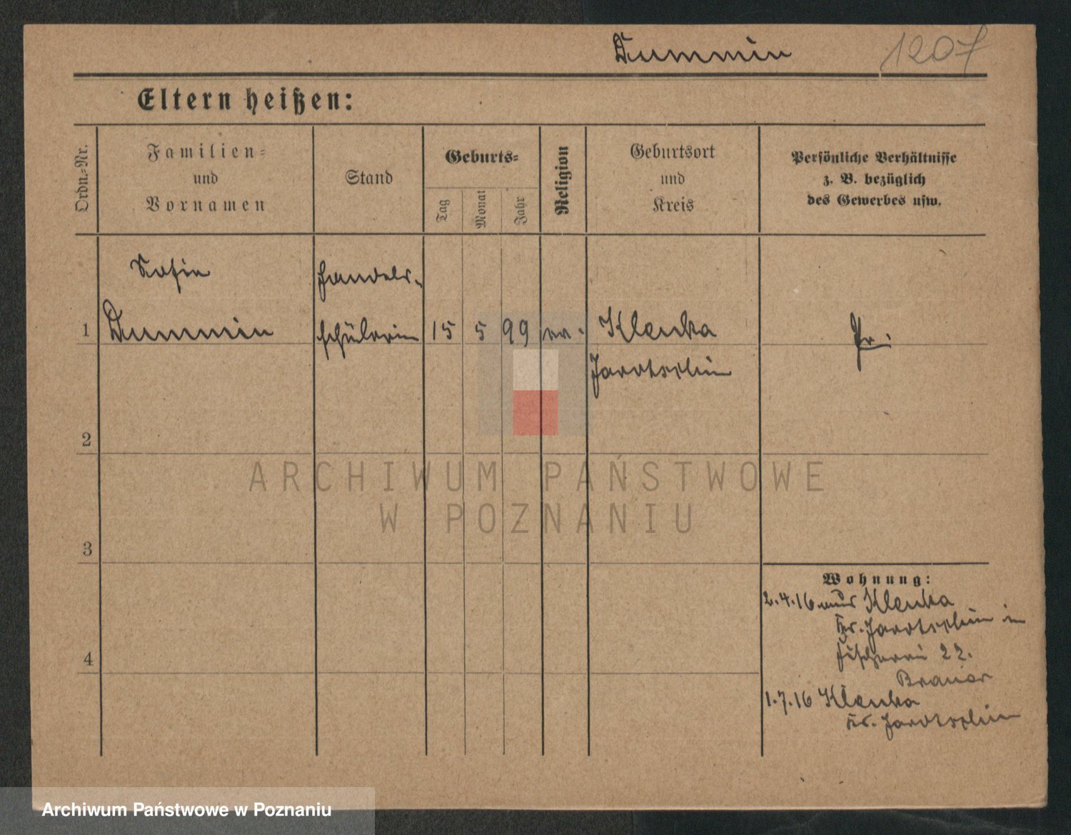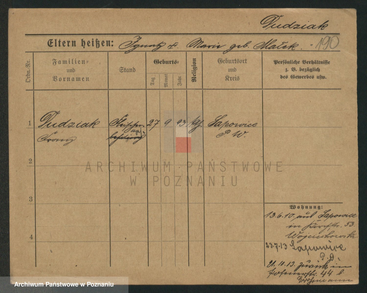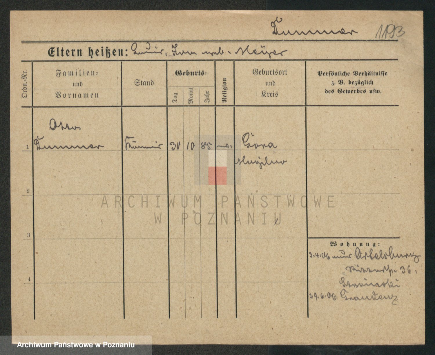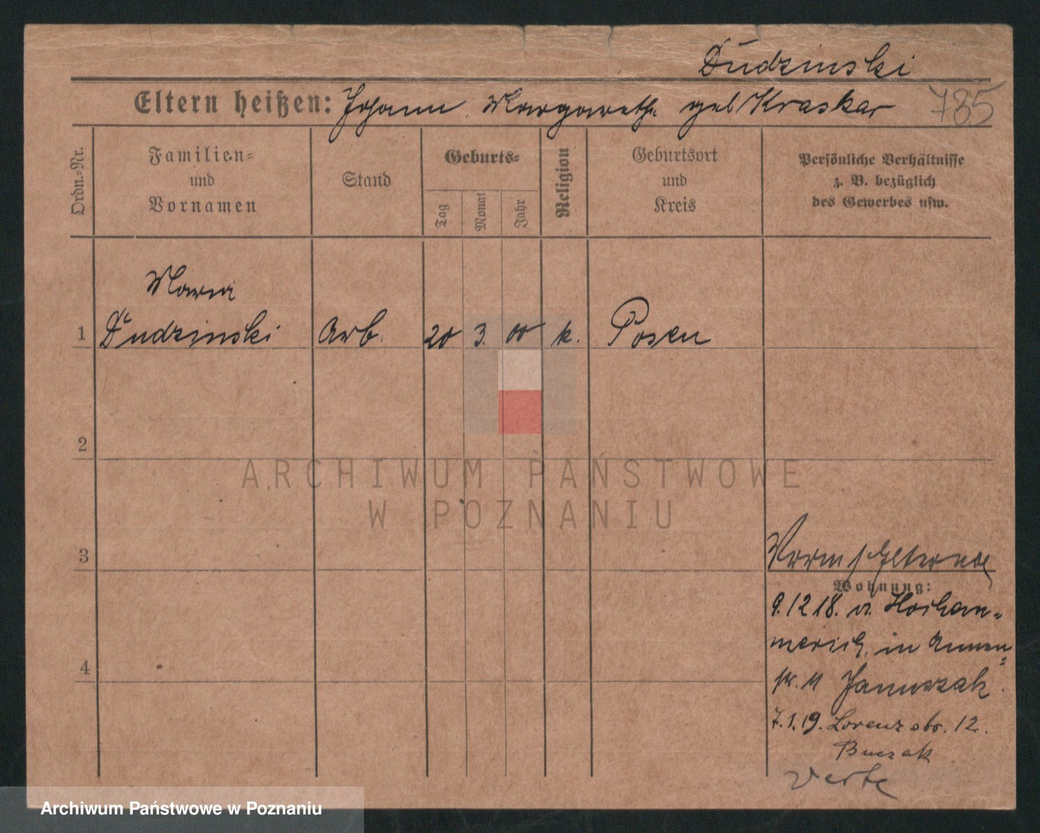 Podgląd karty osobowej dostępny jest po kliknięciu na nazwisko lub ikonkę karty. Można dokonywać powiększenia (ikony na górze) lub przechodzić między kolejnymi skanami (strzałki po bokach).