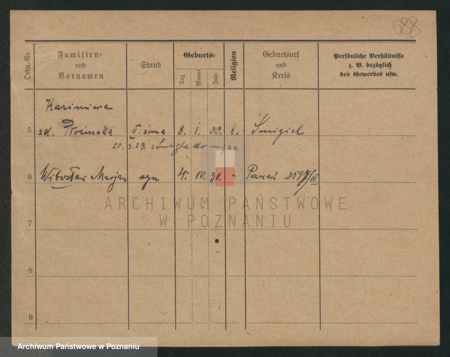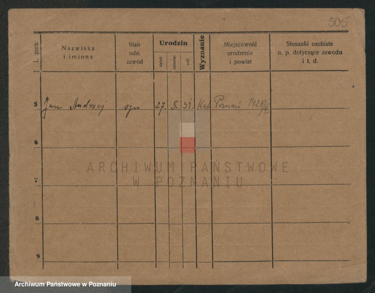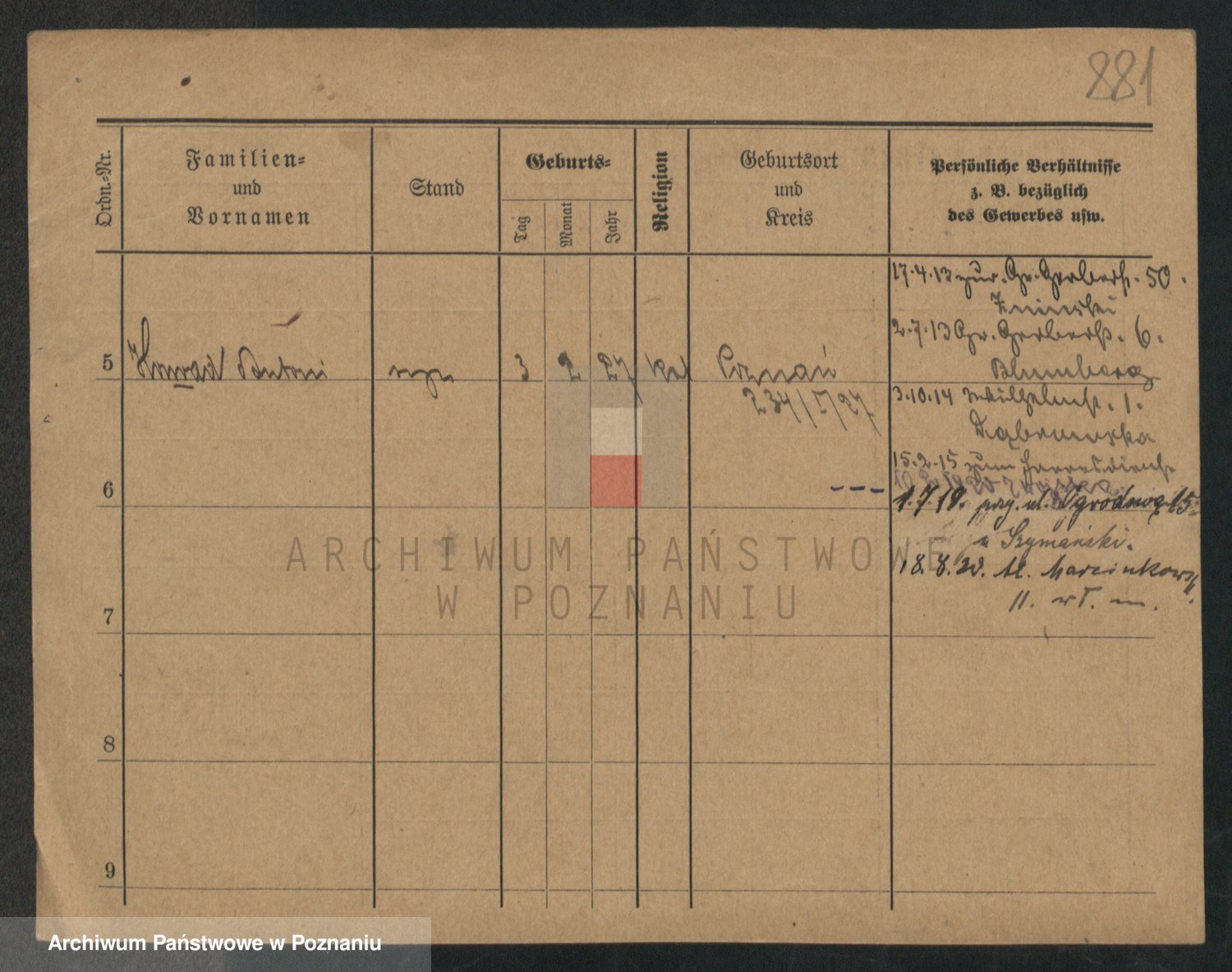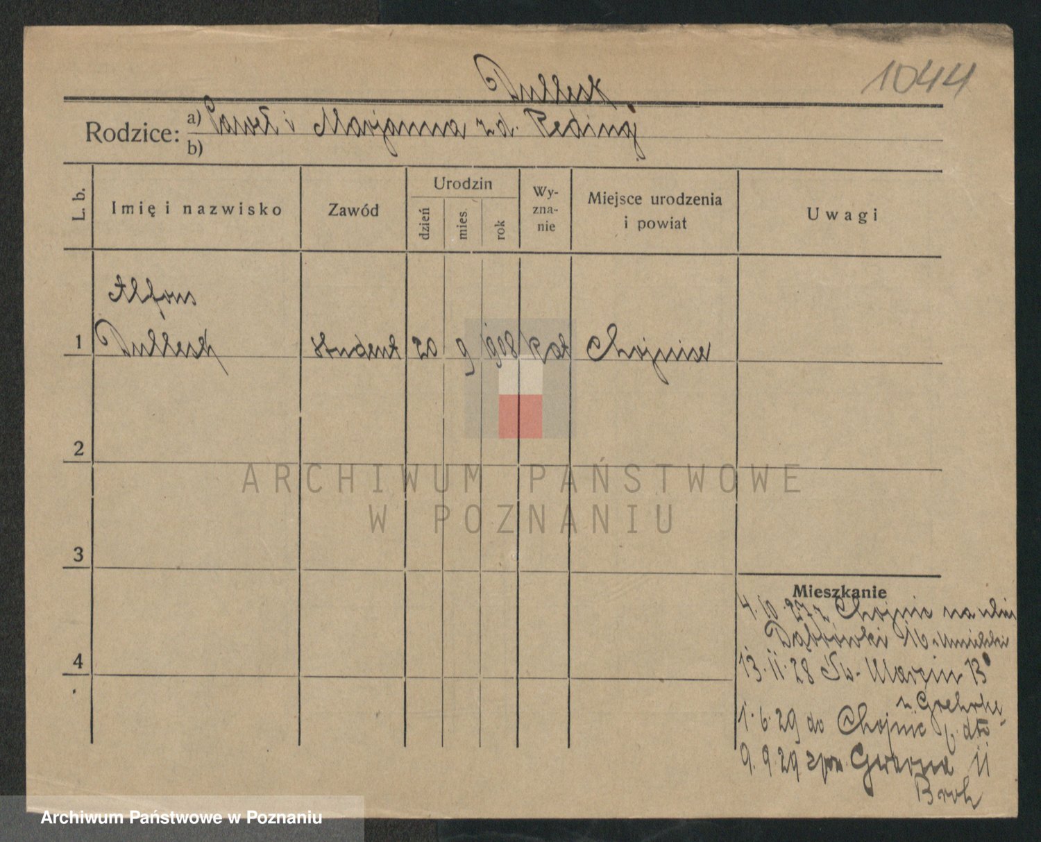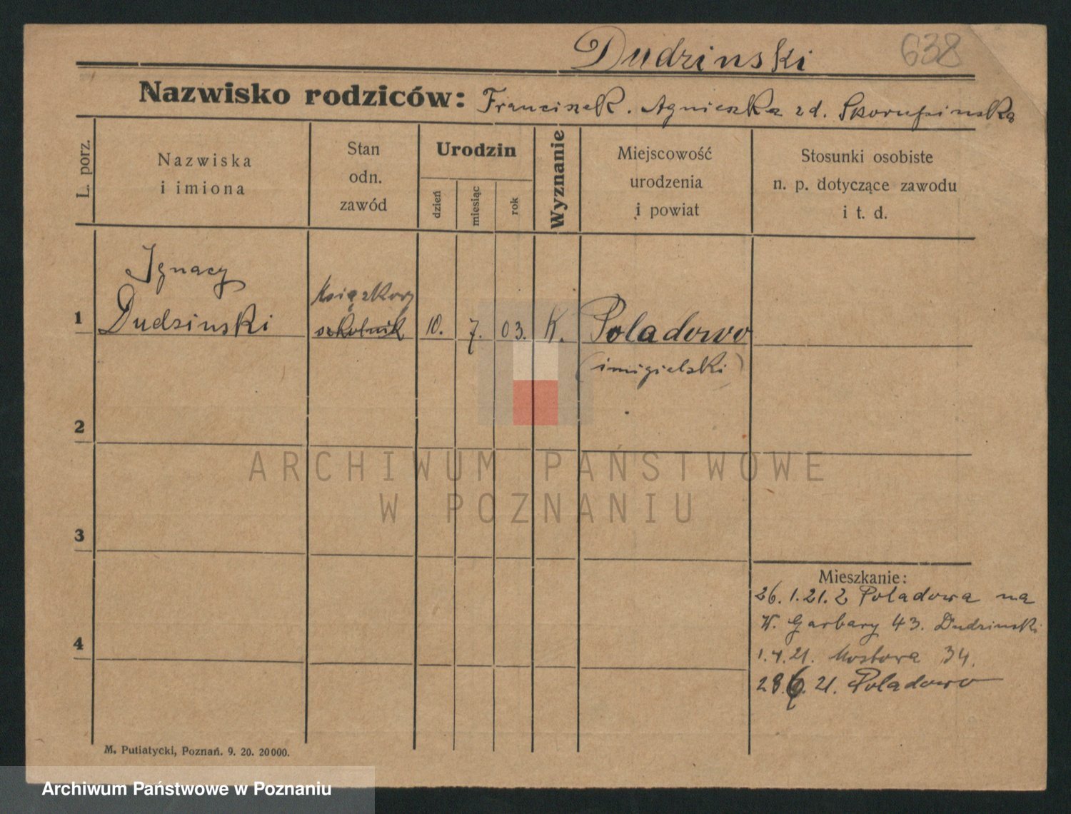 Podgląd karty osobowej dostępny jest po kliknięciu na nazwisko lub ikonkę karty. Można dokonywać powiększenia (ikony na górze) lub przechodzić między kolejnymi skanami (strzałki po bokach).