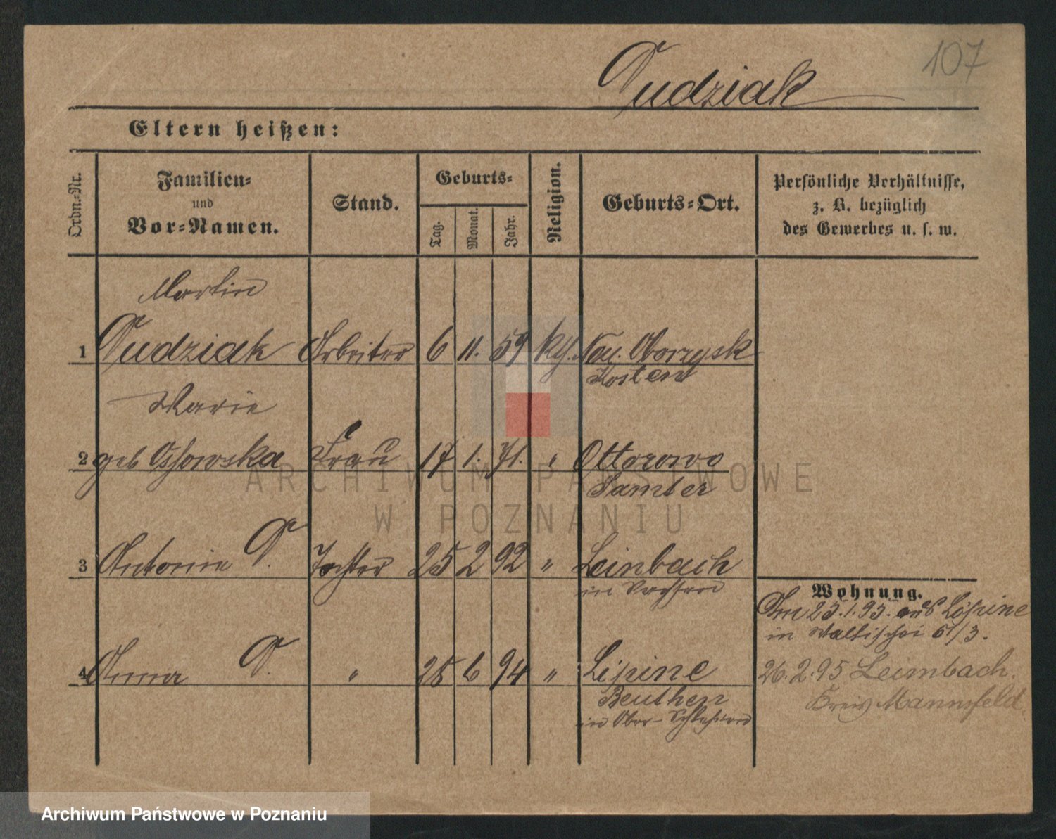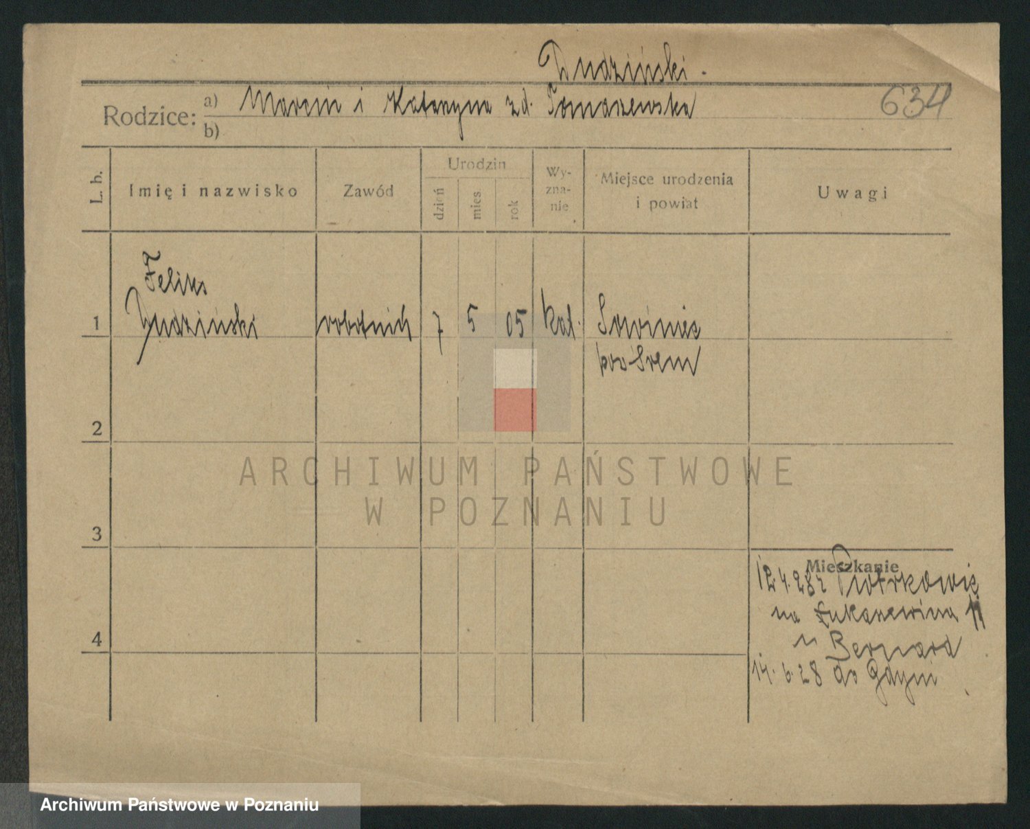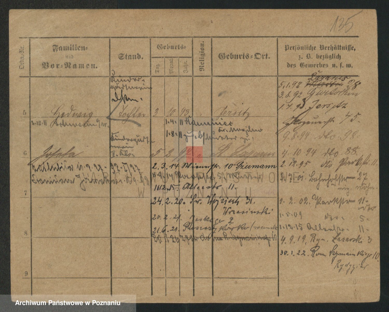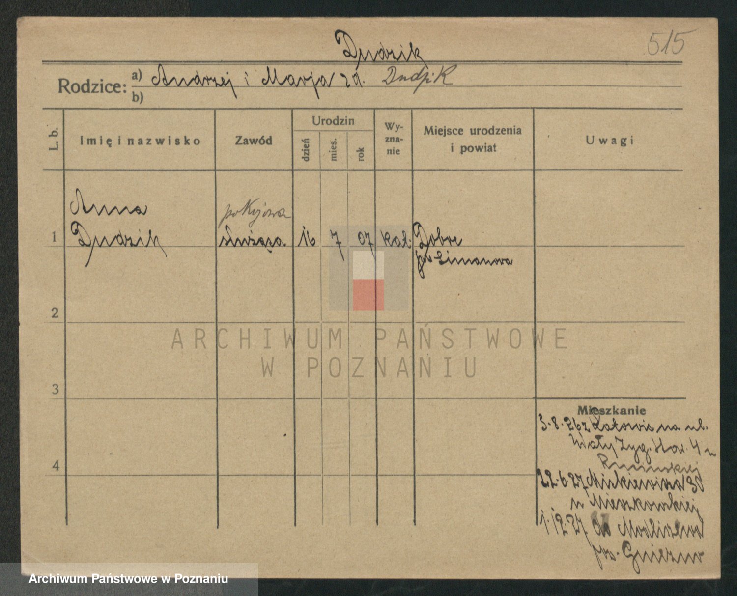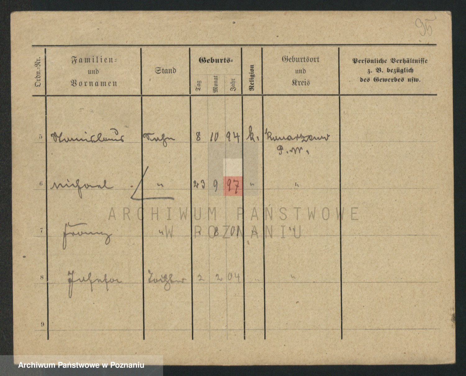 Podgląd karty osobowej dostępny jest po kliknięciu na nazwisko lub ikonkę karty. Można dokonywać powiększenia (ikony na górze) lub przechodzić między kolejnymi skanami (strzałki po bokach).